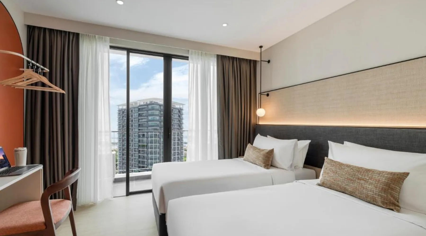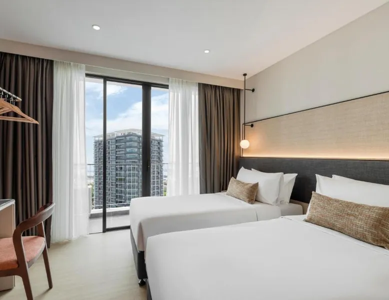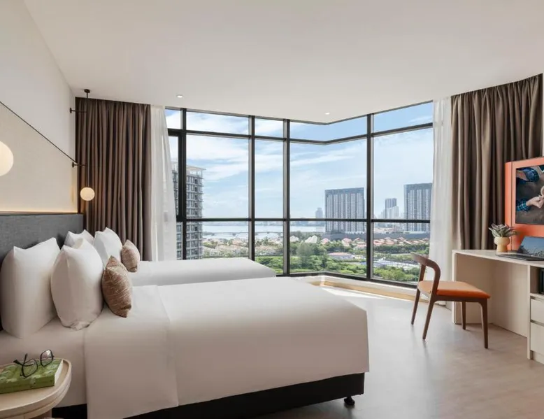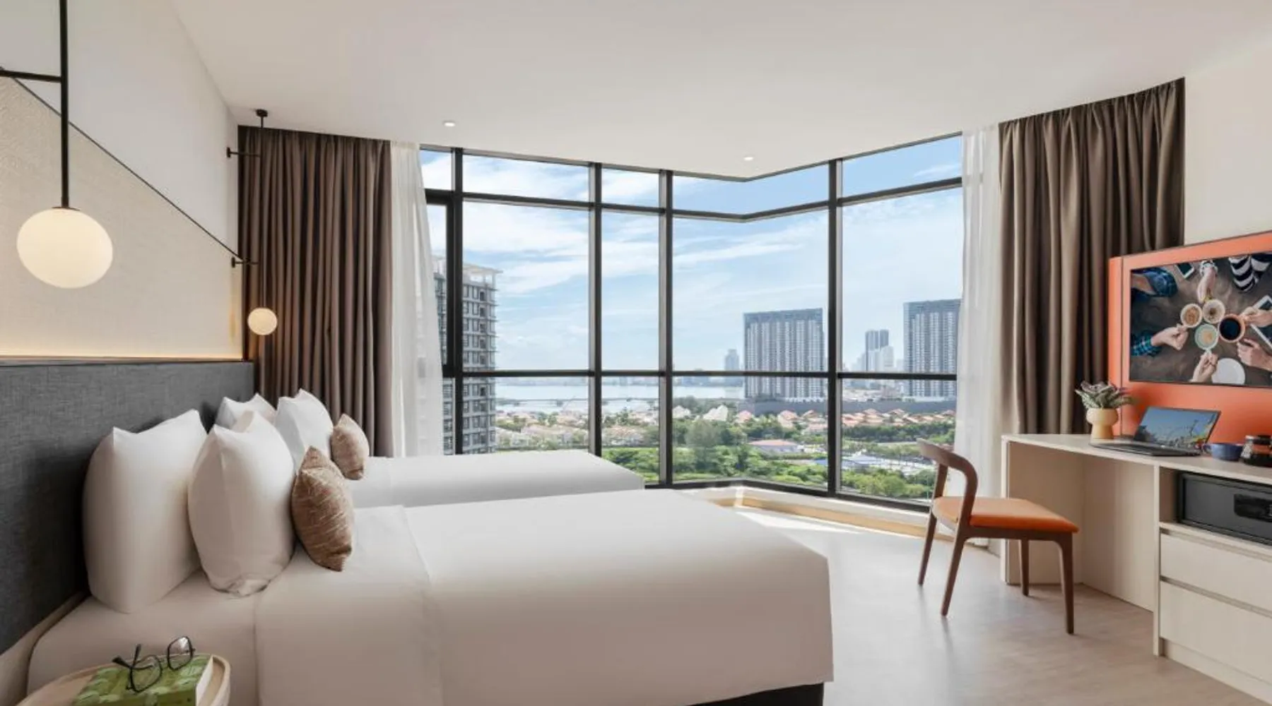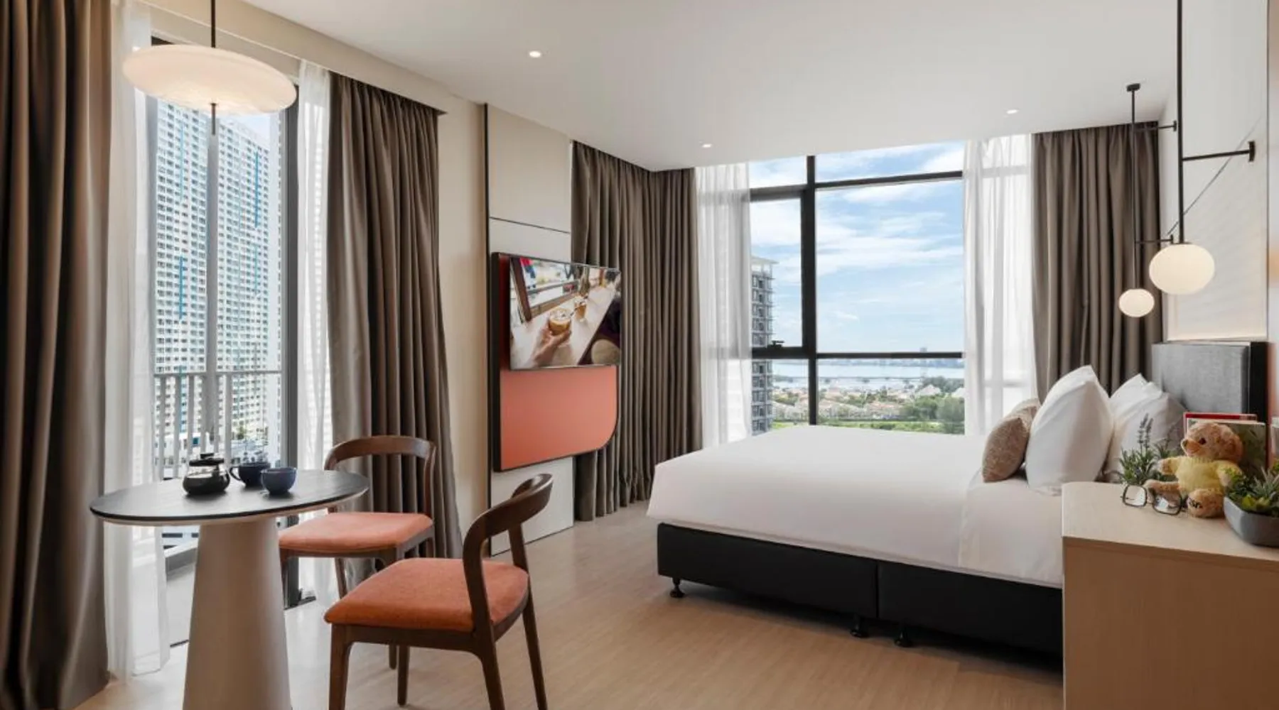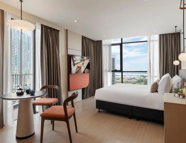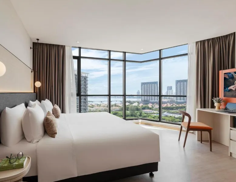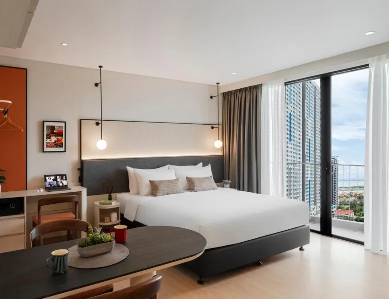 Comfortable Accommodations: Citadines Tanjung Tokong Penang in George Town offers family rooms with air-conditioning, private bathrooms, and city views. Each room includes a work desk, free toiletries, and a refrigerator. Exceptional Facilities: Guests can enjoy a fitness center, indoor swimming pool, and free WiFi. Additional amenities include a fitness room, elevator, 24-hour front desk, daily housekeeping, and free on-site private parking. Prime Location: Located 12 mi from Penang International Airport, the hotel is a 13-minute walk from Tanjung Tokong Beach and 0.7 mi from Straits Quay. Nearby attractions include Penang Botanic Gardens (3.1 mi) and Penang Hill (7.5 mi). Highly Rated by Guests: Guests appreciate the excellent facilities, comfortable accommodations, and attentive staff, ensuring a pleasant stay. This spacious apartment comes with 1 living room, 2 separate bedrooms and 2 bathrooms with a walk-in shower and free toiletries. In the kitchen, guests will find a stovetop, a refrigerator, kitchenware and a microwave. The air-conditioned apartment features a flat-screen TV with satellite channels, soundproof walls, a seating area, a dining area as well as sea views. The unit has 3 beds.
