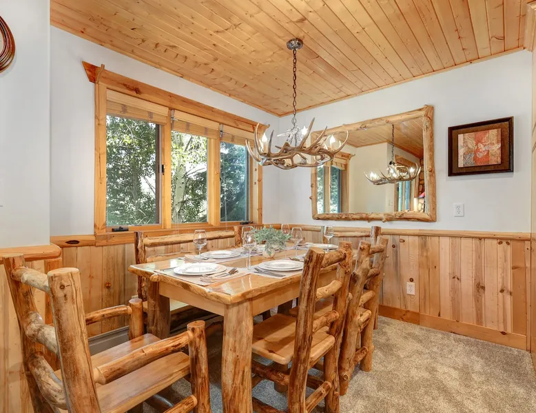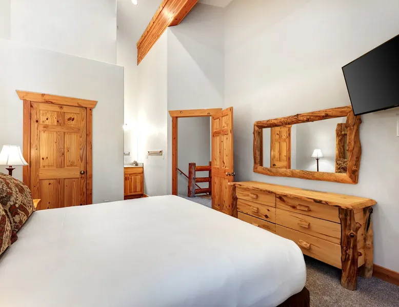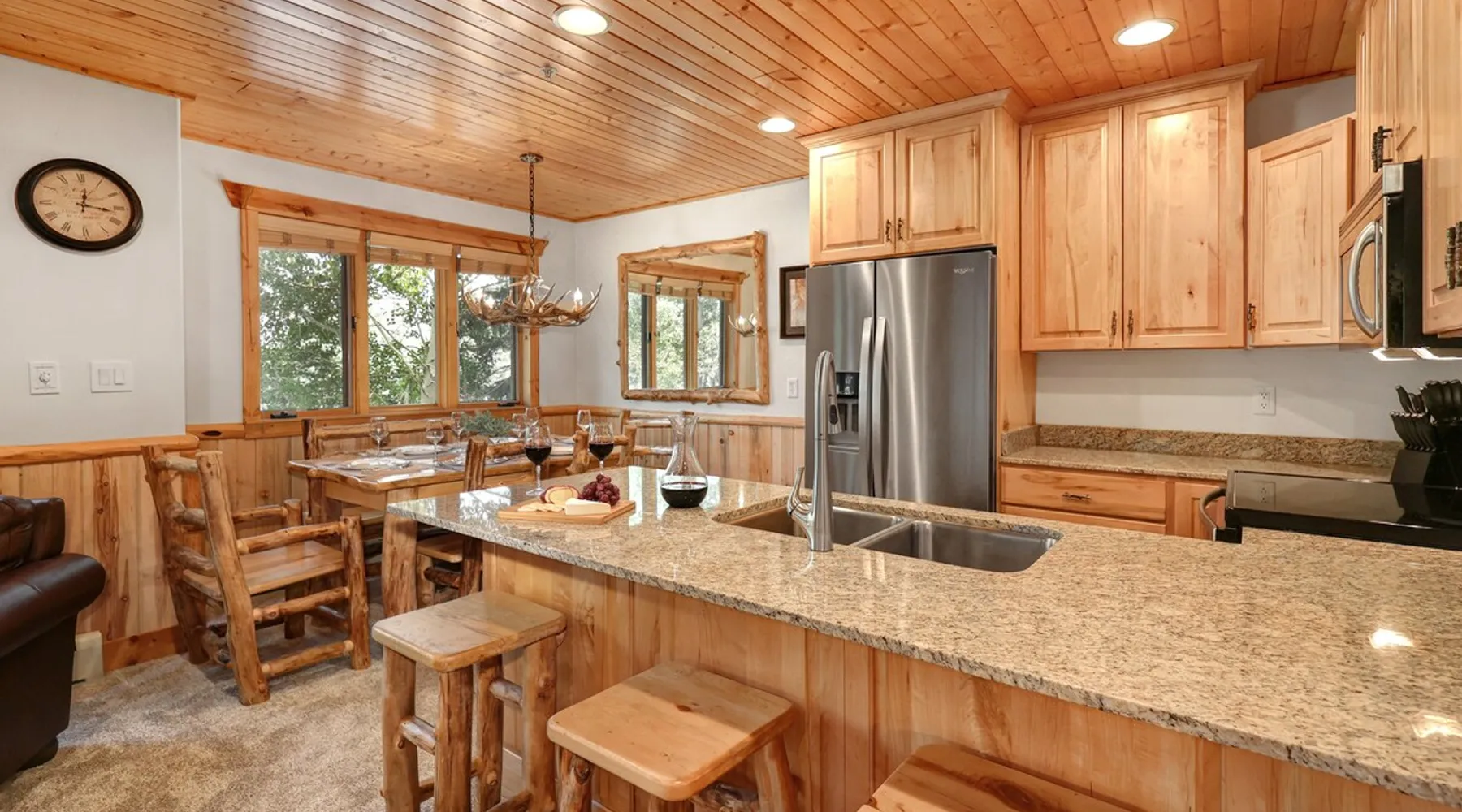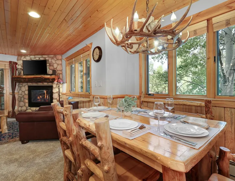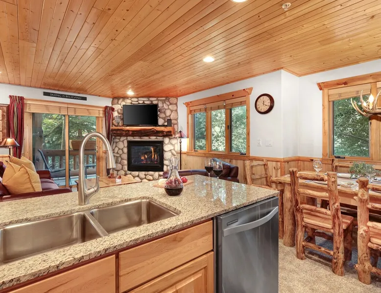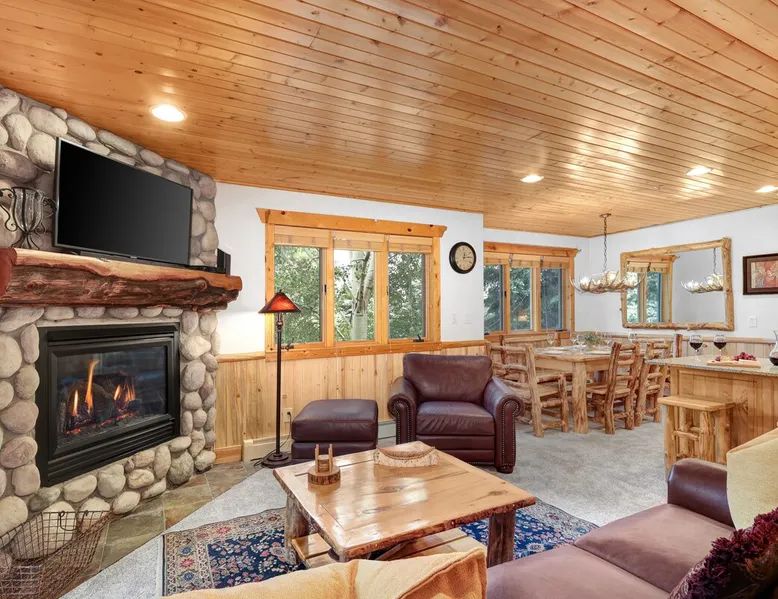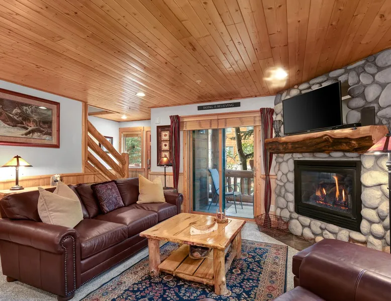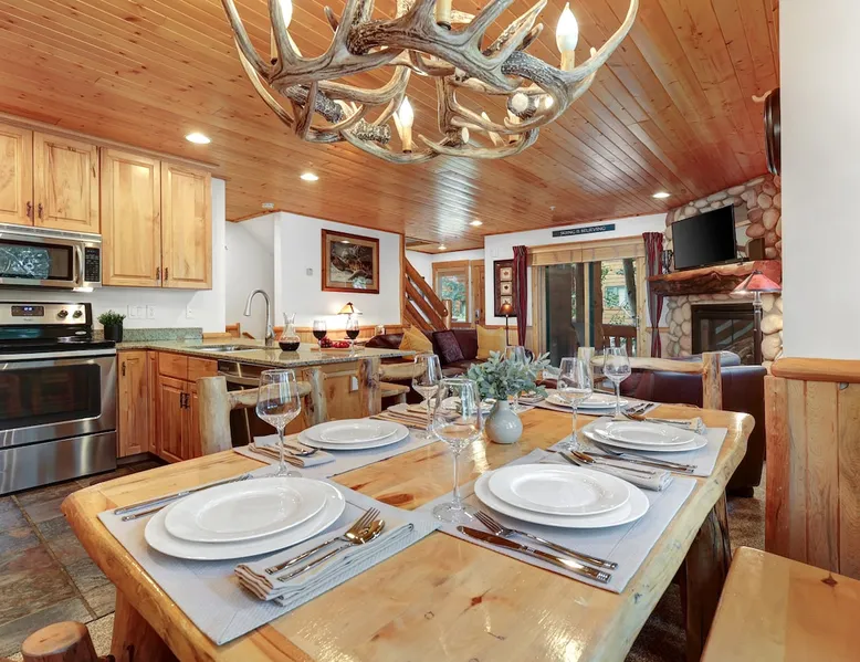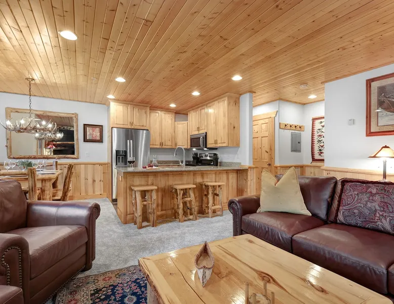 Timber Wolf Lodge is a well-appointed condo near Park City Mountain's Canyons Village that accommodates up to 6 guests. Access the slopes with an easy two-minute walk to the free bus or a short drive to the Canyons Cabriolet. Other things to note This cabin style condo creates the perfect setting for a mountain getaway. After a day exploring Park City, the living room offers a cozy spot to unwind, featuring a gas-burning fireplace with a river rock surround and flat-screen TV. The well-equipped, open-concept kitchen allows the home chef to easily prepare a meal while mingling with friends and family. The dining room table offers seating for 6 and the breakfast bar has seating for 3. A convenient powder room and washer and dryer are located just off the living room. Two bedrooms are located upstairs, and they both have a convenient en suite bathroom and flat-screen TV. The main suite offers a luxurious king-size bed, and the second bedroom has a comfortable queen-size bed. A queen-size sleeper sofa in the living room provides additional sleeping arrangements. Additional amenities include two common area hot tubs- located just steps away from the home, wi-fi, underground parking for 1 car, and outdoor parking for 1 additional car. Additionally, High Valley Transit simplifies free transit access to Deer Valley Resort, historic Main Street, and the Park City Outlets. The accompanying app details bus stops and locations for on-demand microtransit, allowing users to book rides just minutes before departure. Don’t miss all the year-round fun at Canyons Village—our complimentary concierge can keep you up-to-date on all the events. Deluxe rating. As an award-winning green business, Park City Lodging has been proud stewards of environmental and social responsibility in the Park City community since our founding in 1984.