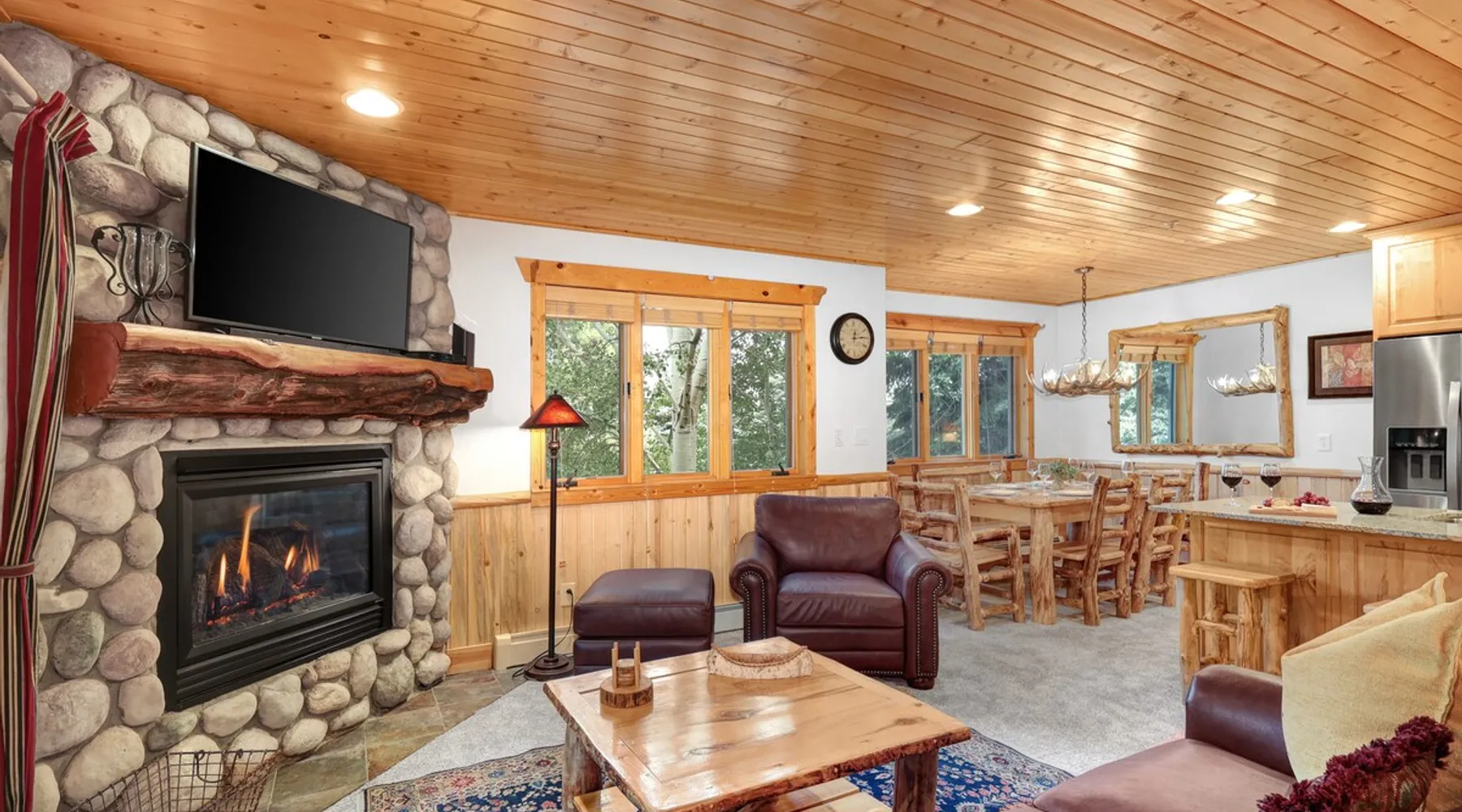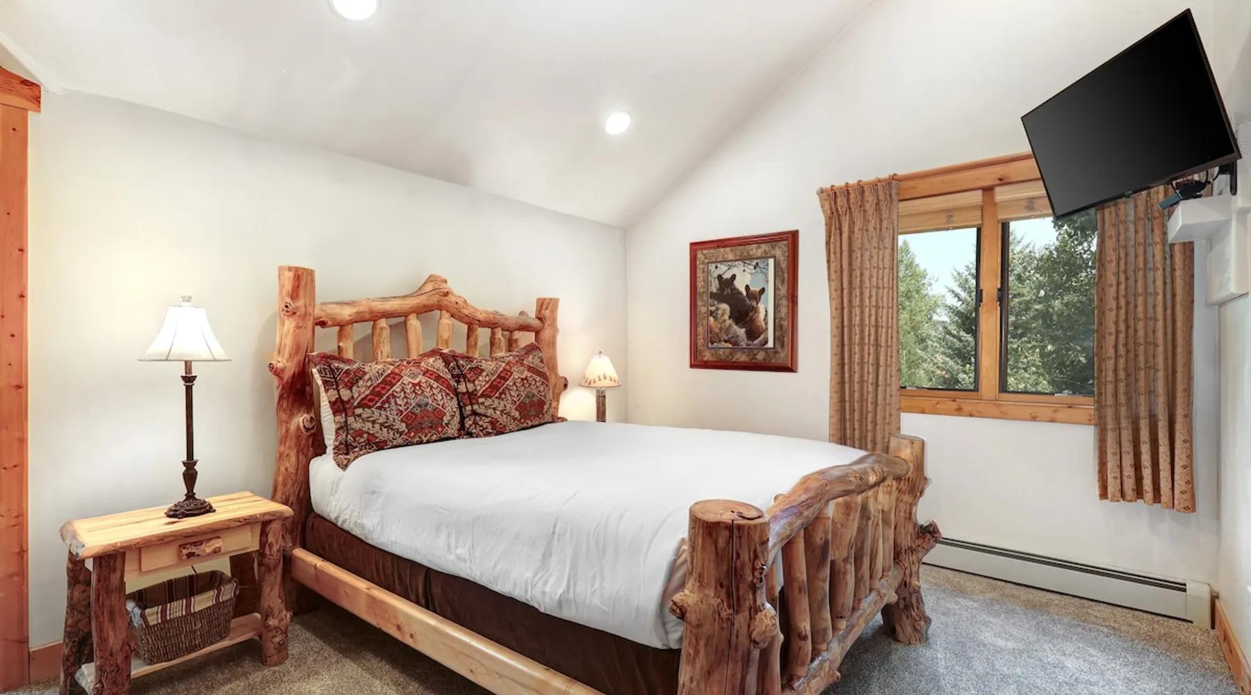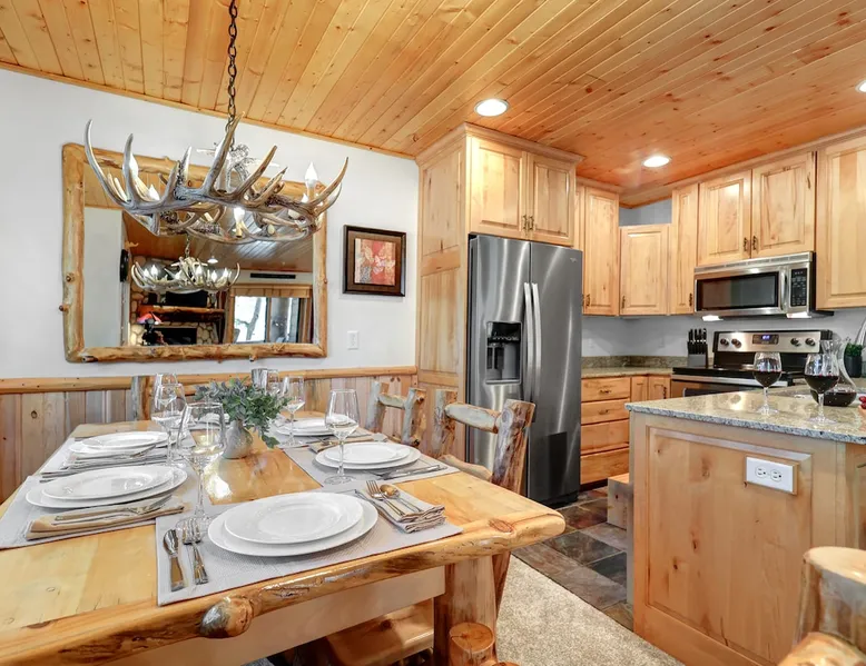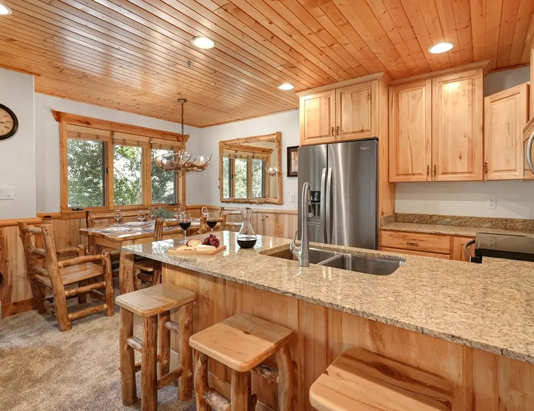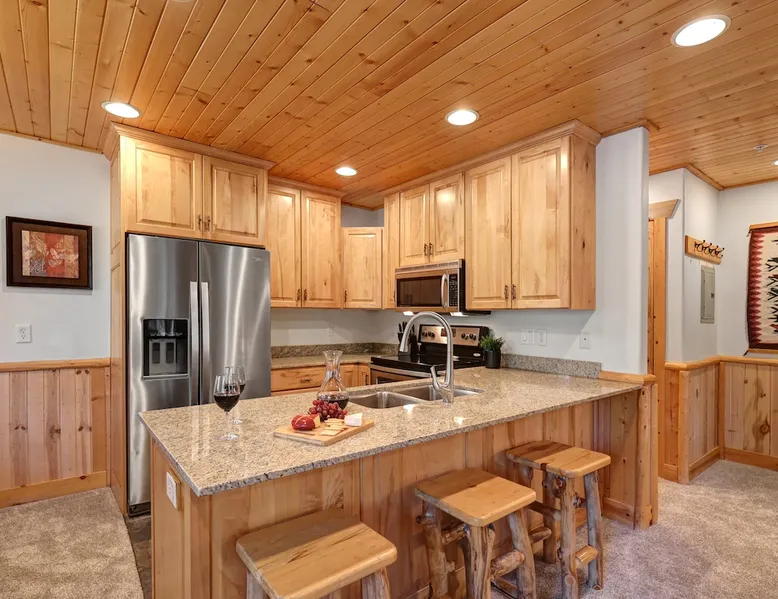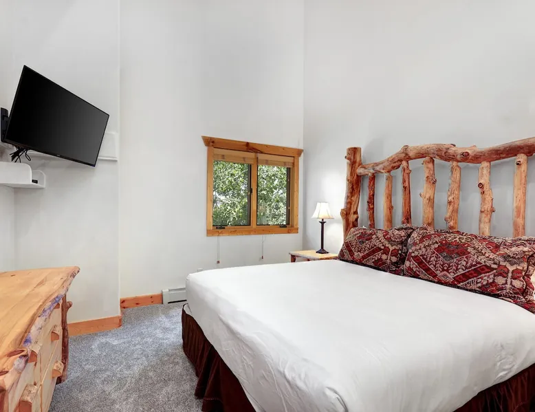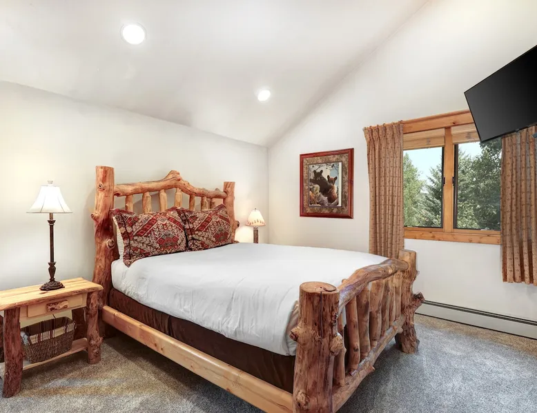 Timber Wolf Lodge is a well-appointed condo near Park City Mountain's Canyons Village that accommodates up to 6 guests. Access the slopes with an easy two-minute walk to the free bus or a short drive to the Canyons Cabriolet. Other things to note This cabin style condo creates the perfect setting for a mountain getaway. After a day exploring Park City, the living room offers a cozy spot to unwind, featuring a gas-burning fireplace with a river rock surround and flat-screen TV. The well-equipped, open-concept kitchen allows the home chef to easily prepare a meal while mingling with friends and family. The dining room table offers seating for 6 and the breakfast bar has seating for 3. A convenient powder room and washer and dryer are located just off the living room. Two bedrooms are located upstairs, and they both have a convenient en suite bathroom and flat-screen TV. The main suite offers a luxurious king-size bed, and the second bedroom has a comfortable queen-size bed. A queen-size sleeper sofa in the living room provides additional sleeping arrangements. Additional amenities include two common area hot tubs- located just steps away from the home, wi-fi, underground parking for 1 car, and outdoor parking for 1 additional car. Additionally, High Valley Transit simplifies free transit access to Deer Valley Resort, historic Main Street, and the Park City Outlets. The accompanying app details bus stops and locations for on-demand microtransit, allowing users to book rides just minutes before departure. Don’t miss all the year-round fun at Canyons Village—our complimentary concierge can keep you up-to-date on all the events. Deluxe rating. As an award-winning green business, Park City Lodging has been proud stewards of environmental and social responsibility in the Park City community since our founding in 1984.