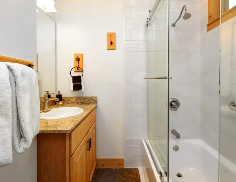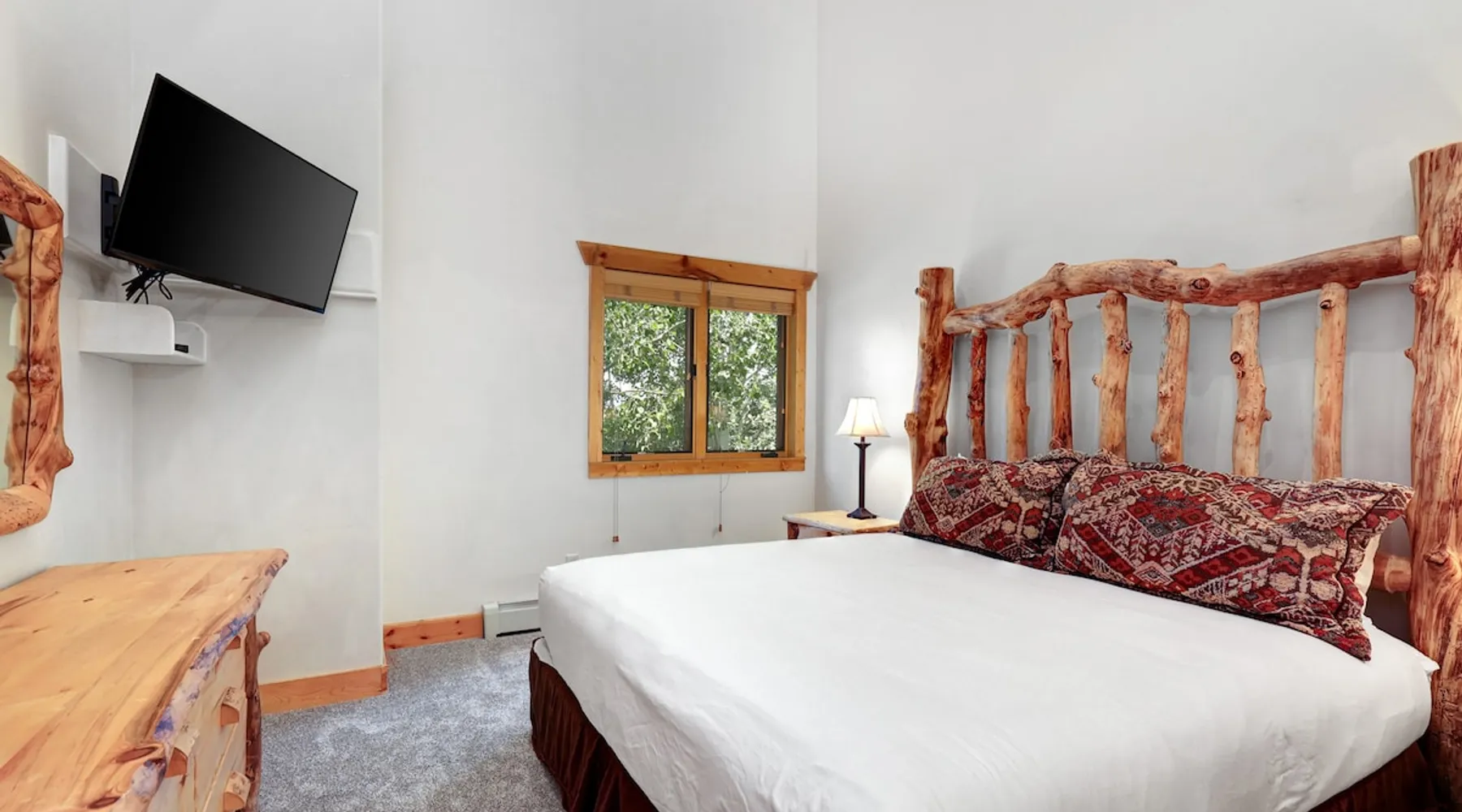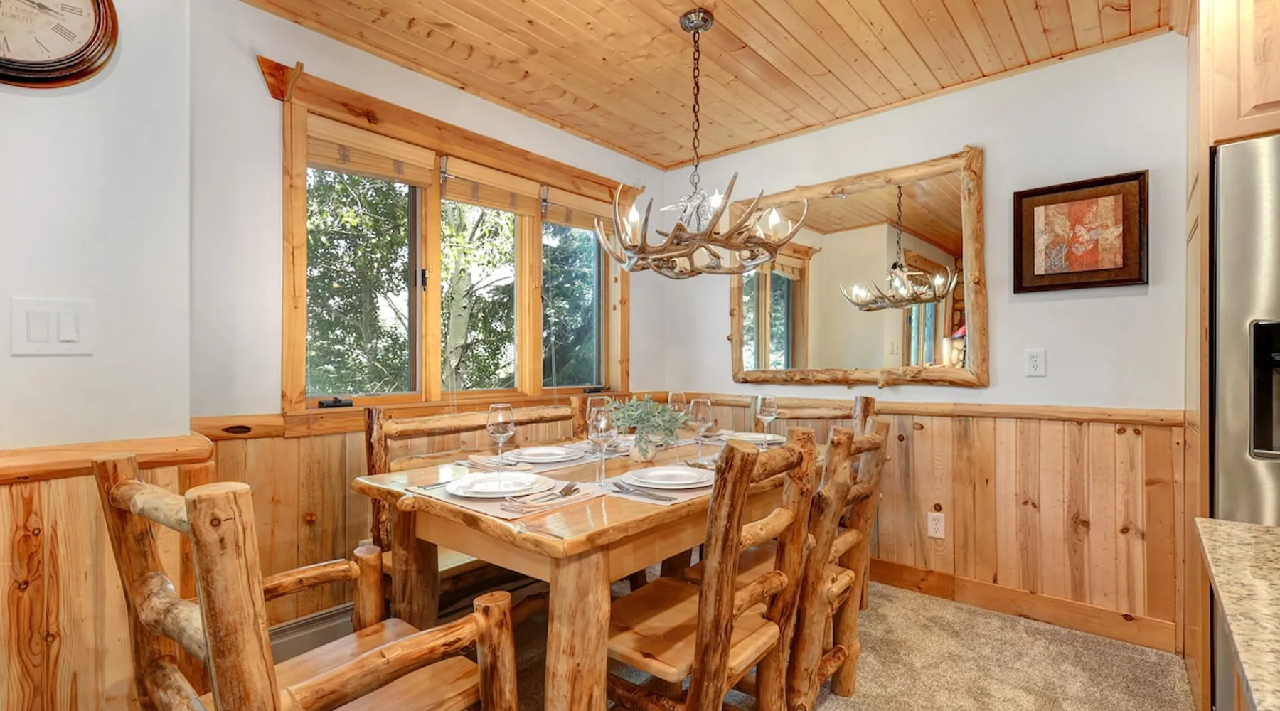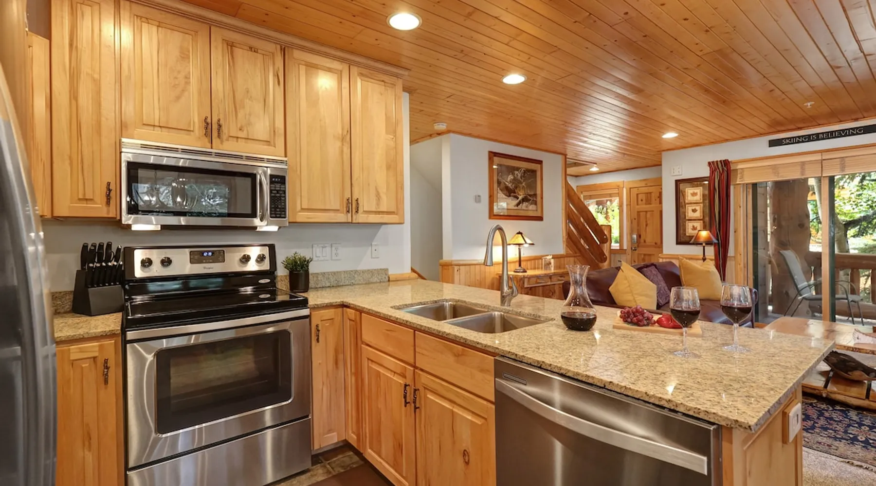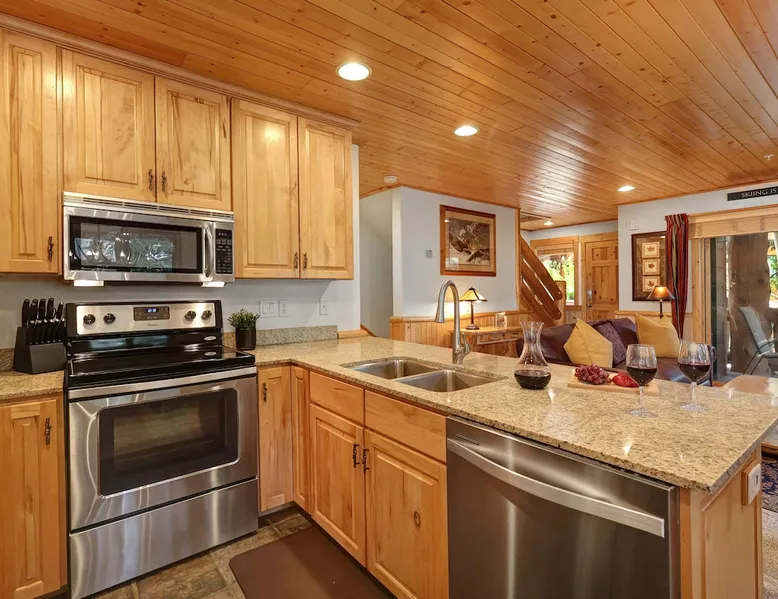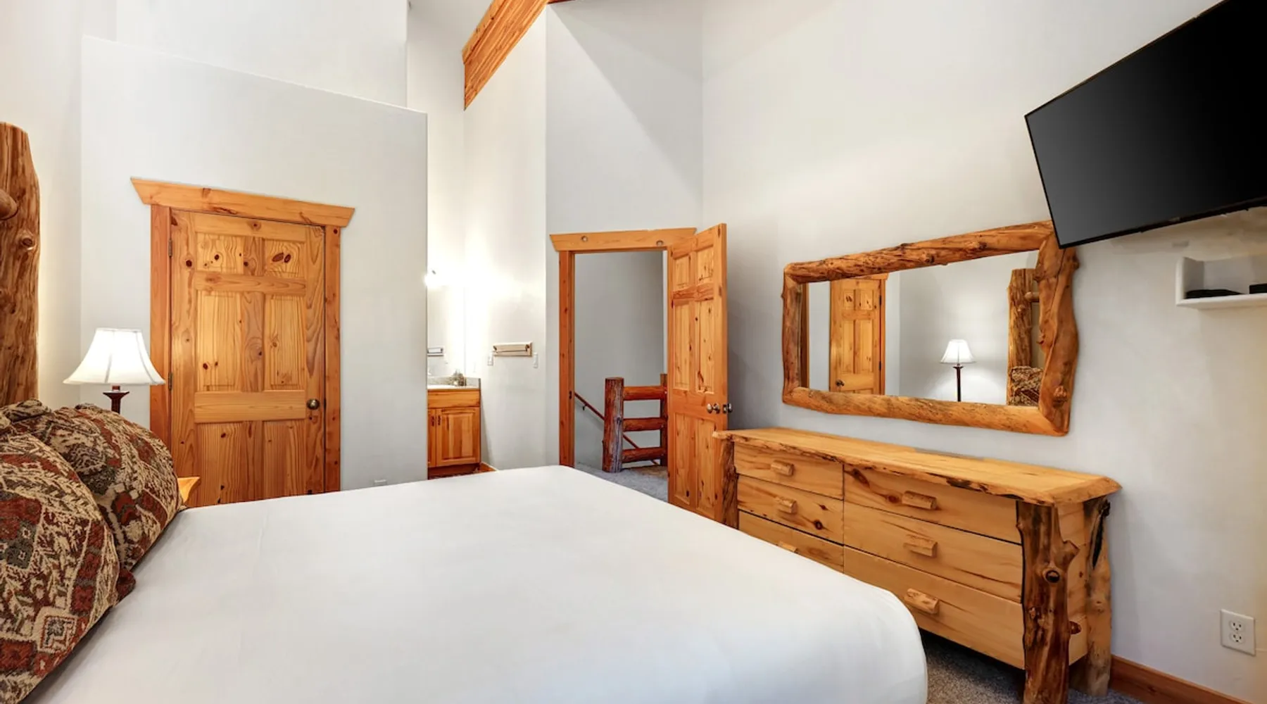 Timber Wolf Lodge is a well-appointed condo near Park City Mountain's Canyons Village that accommodates up to 6 guests. Access the slopes with an easy two-minute walk to the free bus or a short drive to the Canyons Cabriolet. Other things to note This cabin style condo creates the perfect setting for a mountain getaway. After a day exploring Park City, the living room offers a cozy spot to unwind, featuring a gas-burning fireplace with a river rock surround and flat-screen TV. The well-equipped, open-concept kitchen allows the home chef to easily prepare a meal while mingling with friends and family. The dining room table offers seating for 6 and the breakfast bar has seating for 3. A convenient powder room and washer and dryer are located just off the living room. Two bedrooms are located upstairs, and they both have a convenient en suite bathroom and flat-screen TV. The main suite offers a luxurious king-size bed, and the second bedroom has a comfortable queen-size bed. A queen-size sleeper sofa in the living room provides additional sleeping arrangements. Additional amenities include two common area hot tubs- located just steps away from the home, wi-fi, underground parking for 1 car, and outdoor parking for 1 additional car. Additionally, High Valley Transit simplifies free transit access to Deer Valley Resort, historic Main Street, and the Park City Outlets. The accompanying app details bus stops and locations for on-demand microtransit, allowing users to book rides just minutes before departure. Don’t miss all the year-round fun at Canyons Village—our complimentary concierge can keep you up-to-date on all the events. Deluxe rating. As an award-winning green business, Park City Lodging has been proud stewards of environmental and social responsibility in the Park City community since our founding in 1984.