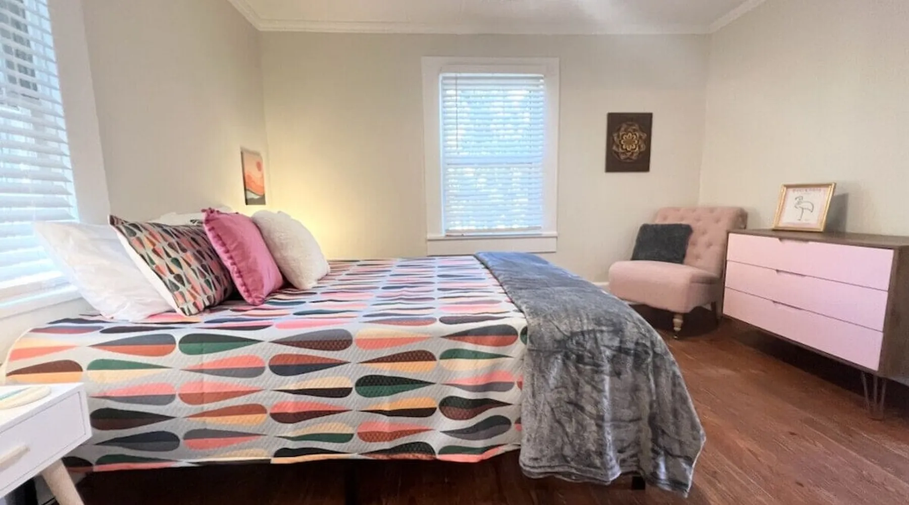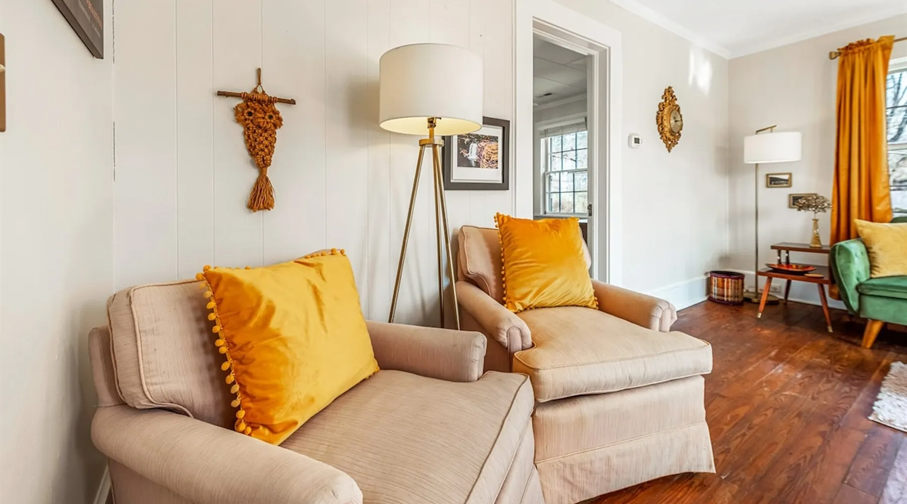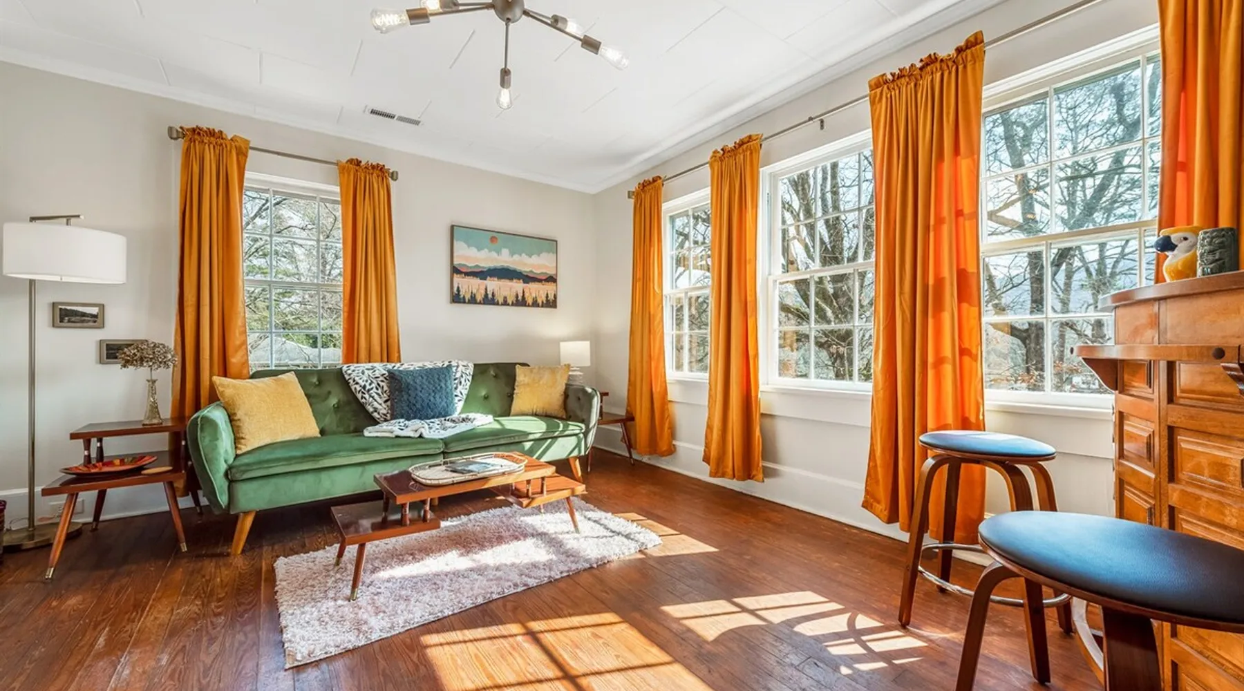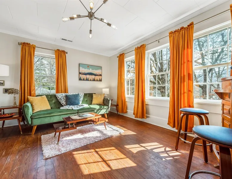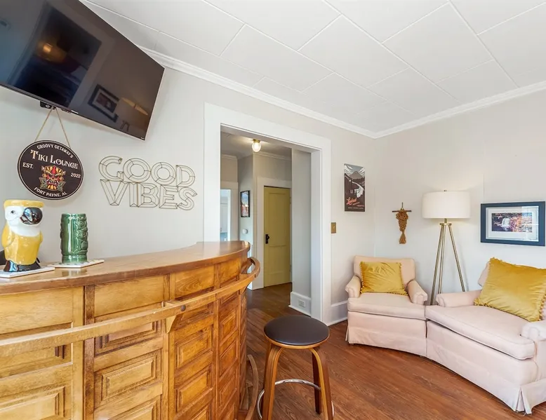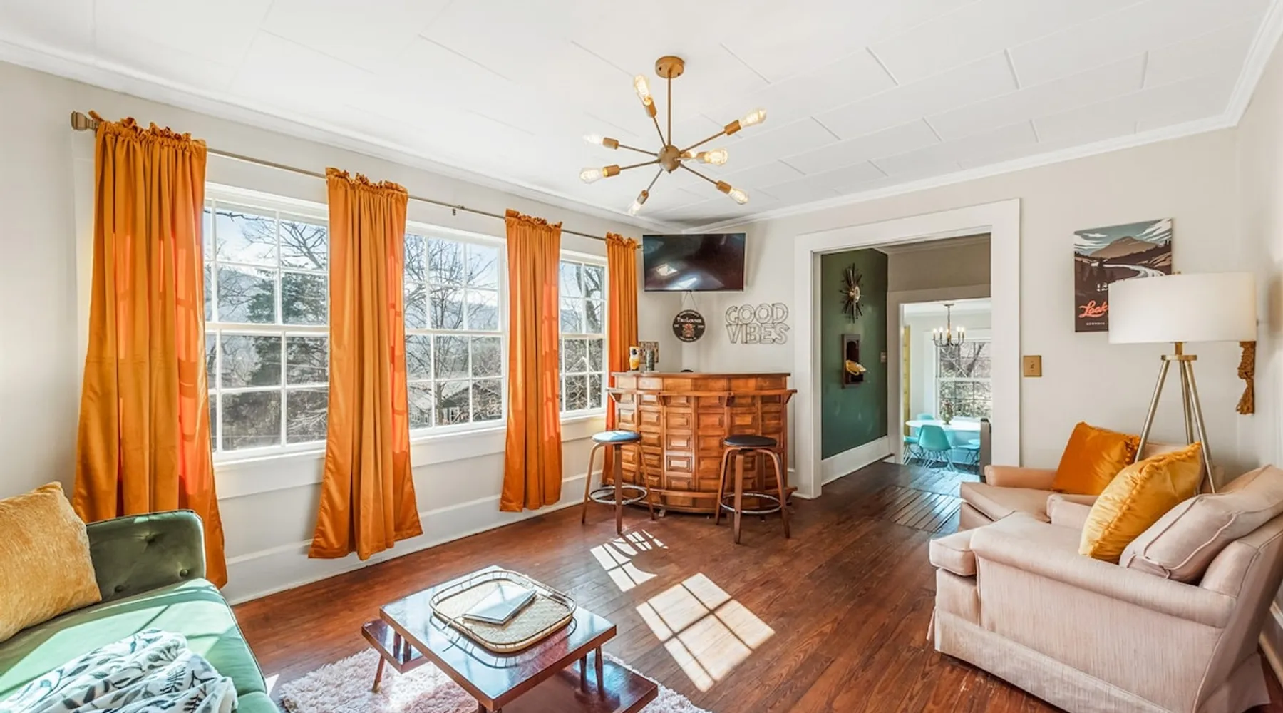 Mid Century Modern Loft | Downtown Fort Payne | Gig Internet Speed & Wi-Fi | 2 Queen Bedrooms | Entertainment and Living Area with “Treehouse” Views | Elegant Kitchen | Laundry Area | Dog Friendly | Sleeps Up to 6 Groovy Getaway Loft is anything but ordinary! A memorable place that’s truly a mid century modern night’s dream in Downtown Fort Payne, Alabama! Built in the 1950s, this loft offers a peaceful retreat in a neighborhood setting of Historic Downtown Fort Payne - centrally located! The space Groovy Getaway Loft | Mid Century Modern Loft | Downtown | Gig Internet Speed & Wi-Fi | Vacation, Corporate and Extended Stays | Entertainment and Living Area with “Treehouse” Views | Elegant Kitchen Laundry Area | Dog Friendly | Hosts up to 6 Guests Groovy Getaway Loft is anything but ordinary! A memorable place that’s truly a mid century modern night’s dream in Downtown Fort Payne, Alabama! Built in the 1950s, this loft offers a peaceful retreat in a neighborhood setting of Historic Downtown Fort Payne - centrally located in the heart of town and walking distance to unique shopping and dining as well as museums, parks and antique malls. Located 8 miles from Little River Canyon National Preserve, you can explore all of the beautiful waterfalls, forests, wildlife, and native plants offered by Lookout Mountain in Alabama! Step back in time - to the 1950s, 60s and 70s as Groovy Getaway Loft is an active part of the retreat property owner’s restoration project of love – be sure to sign their guest book and leave them a note :) The atmosphere is retro and peaceful - full of vibes to go along with concerts and special events or a day of vintage shopping or festivals! There are only GOOD VIBES in Groovy Getaway Loft :) Once you arrive on the property, you will love the groovy murals painted on the garage doors – inspired by sunsets at Lookout Mountain, of course :) This is an excellent location for selfies and group photos! As you enter the bright yellow door in the covered walkway, notice the staircase and railing, beautifully painted with the mid century mod theme the owners love :) Overlooking the staircase is a vintage picture reflecting on Little River Canyon’s mid-century days gone by :) Once you open the blue door, you’ll be standing in the beautiful kitchen and dining area. Granite countertops and brand new stainless appliances reveal the care the owners took to make this an amazing place for their Guests to relax and be refreshed. You will find the kitchen well-equipped with dishes, utensils, pans, dishwasher, microwave, drip coffee maker, electric water kettle, blender, toaster, and cooking spices. Adjoining the kitchen, there is a small laundry area with a washer and dryer available for Guests to use at their convenience. Right off of the kitchen, step up into a foyer area, and you’ll see the living and entertainment area. From the nostalgic lighting to the modern velvet sofa to the authentic chairs designed by Frederick Edward, the mid century mod décor has many of our Guests reflecting on childhood memories. The vintage mid-century bar and stools make for excellent photo prop opportunities. Play a record or two on the record player, play some board games, read a book, or watch TV. There is a 40” Roku HD TV and SUPER FAST Wi-Fi (Gig Internet Speed) for gaming and streaming as you relax after a day of exploring Lookout Mountain. Make sure you checkout the “treehouse” views through the windows :) There are 2 private bedrooms. Each bedroom has a queen size bed with a 10” Dreamer, memory foam mattress and comfy bedding to help every Guest rest well. Antimicrobial encasements are on all mattresses and pillows. In one of the bedrooms, there is a small desk and chair if a designated, private workspace is required. Though Groovy Getaway is ideal for 4 Guests, there is bedding available for up to 2 extra Guests, if needed. The futon sofa in the living area folds out to become a full-size bed. Between the two bedrooms, there is a full bathroom with a shower/tub combo, toilet and pedestal sink. Throughout Groovy Getaway Loft, you’ll enjoy looking at the owners’ vintage finds…and the collection is still growing for this brand new listing :) Groovy Getaway Loft would be perfect for a… - Romantic retreat: Offering unique dining and shopping opportunities! - Remote work retreat: Gig Internet Speed Wi-Fi and central downtown location! - Best friends retreat: Shop-til-you-drop opportunities within walking distance! - Adventure retreat: Explore beautiful waterfalls, forests, wildlife, and native plants offered by Lookout Mountain in Alabama! WHY GUESTS LOVE THIS PEACEFUL RETREAT PROPERTY: 1) It is tastefully decorated with authentic and modern mid-century pieces! 2) It is walking distance to shops, restaurants, parks, and museums! 3) It has “treehouse” views from the entertainment/living area! 4) It has super fast Wi-Fi (Gig Internet Speed)! 5) It is a downtown restoration project for the owners...and that's just groovy! Nearby: .8 miles - The Spot Coffee Shop .8 miles - DeKalb County Courthouse .5 mile - Fort Payne’s City Park .5 mile - Alabama Walking Trail Park 1.5 miles - VFW Fairgrounds .9 miles - Alabama Fan Club & Museum 8.2 miles - Little River Canyon National Preserve 12 miles - Northeast Alabama Agri-Business Center 13 miles - Mentone 8 miles - DeSoto State Park 30 miles - Unclaimed Baggage in Scottsboro, AL 40 miles - Cloudland Canyon State Park, GA 48 miles - Rock City & Ruby Falls 69 miles - Huntsville, AL You will want a car to see the sites and experience why Lookout Mountain in Alabama has so much to offer guests for a perfect vacation experience! You will be given access to a list of favorite attractions and restaurants! Waterfalls, national preserve, state parks, zip lining, hiking, picnicking, rappelling, horseback trail rides, canoeing, kayaking, rock climbing, wild animal preserve, golfing, swimming, museums, glass blowing, making pot