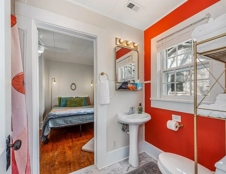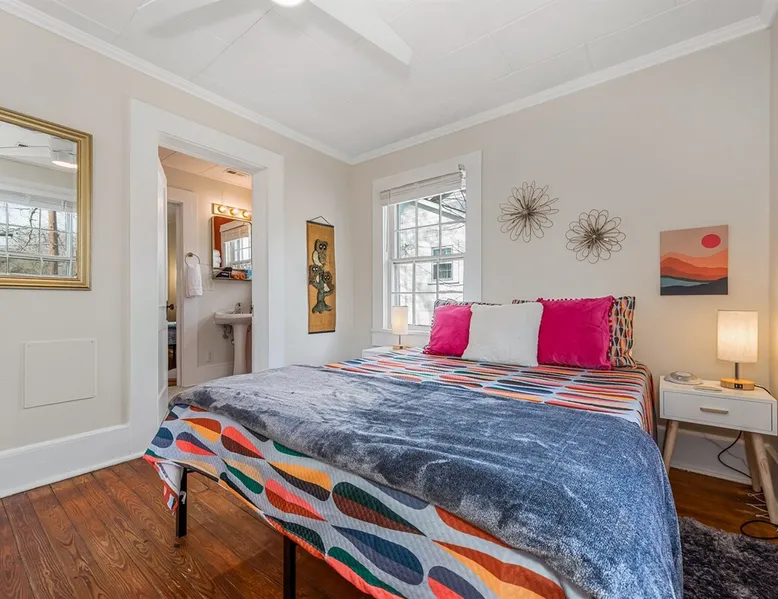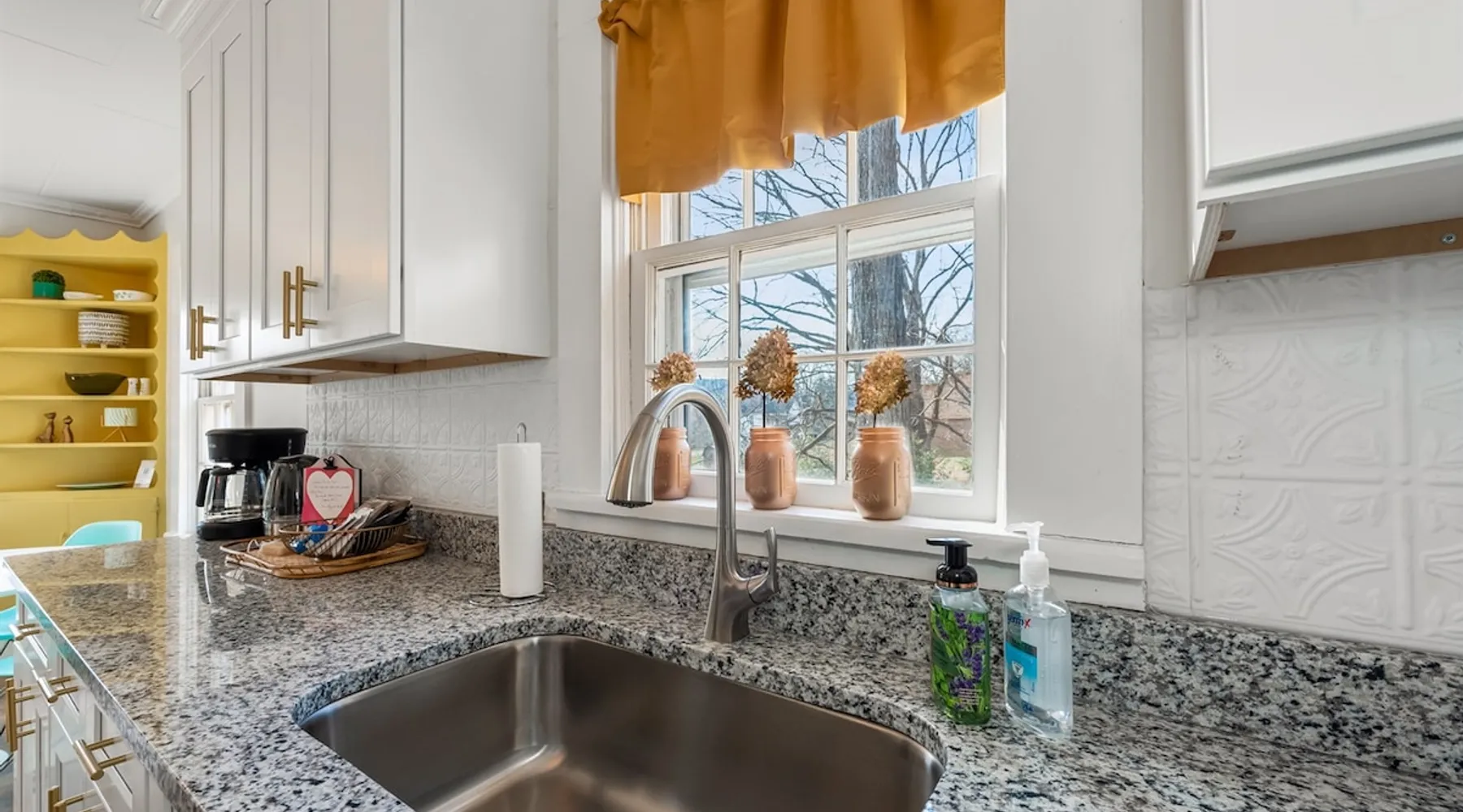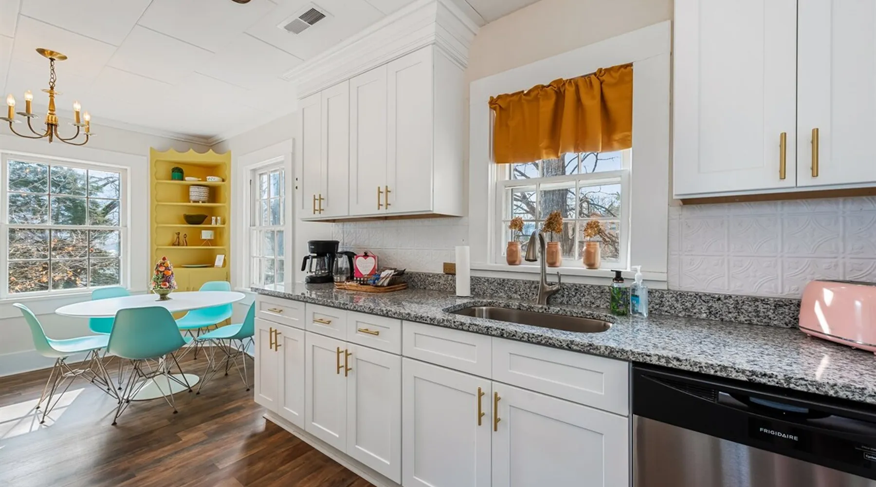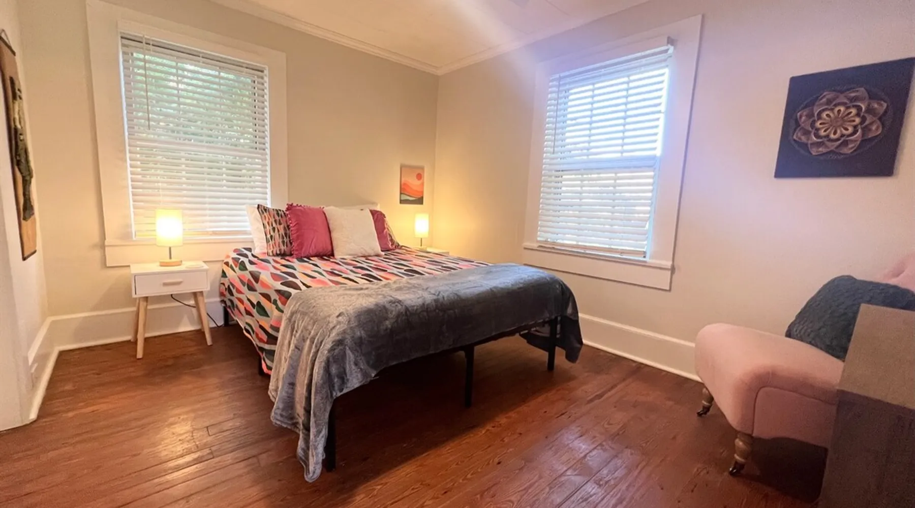 Mid Century Modern Loft | Downtown Fort Payne | Gig Internet Speed & Wi-Fi | 2 Queen Bedrooms | Entertainment and Living Area with “Treehouse” Views | Elegant Kitchen | Laundry Area | Dog Friendly | Sleeps Up to 6 Groovy Getaway Loft is anything but ordinary! A memorable place that’s truly a mid century modern night’s dream in Downtown Fort Payne, Alabama! Built in the 1950s, this loft offers a peaceful retreat in a neighborhood setting of Historic Downtown Fort Payne - centrally located! The space Groovy Getaway Loft | Mid Century Modern Loft | Downtown | Gig Internet Speed & Wi-Fi | Vacation, Corporate and Extended Stays | Entertainment and Living Area with “Treehouse” Views | Elegant Kitchen Laundry Area | Dog Friendly | Hosts up to 6 Guests Groovy Getaway Loft is anything but ordinary! A memorable place that’s truly a mid century modern night’s dream in Downtown Fort Payne, Alabama! Built in the 1950s, this loft offers a peaceful retreat in a neighborhood setting of Historic Downtown Fort Payne - centrally located in the heart of town and walking distance to unique shopping and dining as well as museums, parks and antique malls. Located 8 miles from Little River Canyon National Preserve, you can explore all of the beautiful waterfalls, forests, wildlife, and native plants offered by Lookout Mountain in Alabama! Step back in time - to the 1950s, 60s and 70s as Groovy Getaway Loft is an active part of the retreat property owner’s restoration project of love – be sure to sign their guest book and leave them a note :) The atmosphere is retro and peaceful - full of vibes to go along with concerts and special events or a day of vintage shopping or festivals! There are only GOOD VIBES in Groovy Getaway Loft :) Once you arrive on the property, you will love the groovy murals painted on the garage doors – inspired by sunsets at Lookout Mountain, of course :) This is an excellent location for selfies and group photos! As you enter the bright yellow door in the covered walkway, notice the staircase and railing, beautifully painted with the mid century mod theme the owners love :) Overlooking the staircase is a vintage picture reflecting on Little River Canyon’s mid-century days gone by :) Once you open the blue door, you’ll be standing in the beautiful kitchen and dining area. Granite countertops and brand new stainless appliances reveal the care the owners took to make this an amazing place for their Guests to relax and be refreshed. You will find the kitchen well-equipped with dishes, utensils, pans, dishwasher, microwave, drip coffee maker, electric water kettle, blender, toaster, and cooking spices. Adjoining the kitchen, there is a small laundry area with a washer and dryer available for Guests to use at their convenience. Right off of the kitchen, step up into a foyer area, and you’ll see the living and entertainment area. From the nostalgic lighting to the modern velvet sofa to the authentic chairs designed by Frederick Edward, the mid century mod décor has many of our Guests reflecting on childhood memories. The vintage mid-century bar and stools make for excellent photo prop opportunities. Play a record or two on the record player, play some board games, read a book, or watch TV. There is a 40” Roku HD TV and SUPER FAST Wi-Fi (Gig Internet Speed) for gaming and streaming as you relax after a day of exploring Lookout Mountain. Make sure you checkout the “treehouse” views through the windows :) There are 2 private bedrooms. Each bedroom has a queen size bed with a 10” Dreamer, memory foam mattress and comfy bedding to help every Guest rest well. Antimicrobial encasements are on all mattresses and pillows. In one of the bedrooms, there is a small desk and chair if a designated, private workspace is required. Though Groovy Getaway is ideal for 4 Guests, there is bedding available for up to 2 extra Guests, if needed. The futon sofa in the living area folds out to become a full-size bed. Between the two bedrooms, there is a full bathroom with a shower/tub combo, toilet and pedestal sink. Throughout Groovy Getaway Loft, you’ll enjoy looking at the owners’ vintage finds…and the collection is still growing for this brand new listing :) Groovy Getaway Loft would be perfect for a… - Romantic retreat: Offering unique dining and shopping opportunities! - Remote work retreat: Gig Internet Speed Wi-Fi and central downtown location! - Best friends retreat: Shop-til-you-drop opportunities within walking distance! - Adventure retreat: Explore beautiful waterfalls, forests, wildlife, and native plants offered by Lookout Mountain in Alabama! WHY GUESTS LOVE THIS PEACEFUL RETREAT PROPERTY: 1) It is tastefully decorated with authentic and modern mid-century pieces! 2) It is walking distance to shops, restaurants, parks, and museums! 3) It has “treehouse” views from the entertainment/living area! 4) It has super fast Wi-Fi (Gig Internet Speed)! 5) It is a downtown restoration project for the owners...and that's just groovy! Nearby: .8 miles - The Spot Coffee Shop .8 miles - DeKalb County Courthouse .5 mile - Fort Payne’s City Park .5 mile - Alabama Walking Trail Park 1.5 miles - VFW Fairgrounds .9 miles - Alabama Fan Club & Museum 8.2 miles - Little River Canyon National Preserve 12 miles - Northeast Alabama Agri-Business Center 13 miles - Mentone 8 miles - DeSoto State Park 30 miles - Unclaimed Baggage in Scottsboro, AL 40 miles - Cloudland Canyon State Park, GA 48 miles - Rock City & Ruby Falls 69 miles - Huntsville, AL You will want a car to see the sites and experience why Lookout Mountain in Alabama has so much to offer guests for a perfect vacation experience! You will be given access to a list of favorite attractions and restaurants! Waterfalls, national preserve, state parks, zip lining, hiking, picnicking, rappelling, horseback trail rides, canoeing, kayaking, rock climbing, wild animal preserve, golfing, swimming, museums, glass blowing, making pot