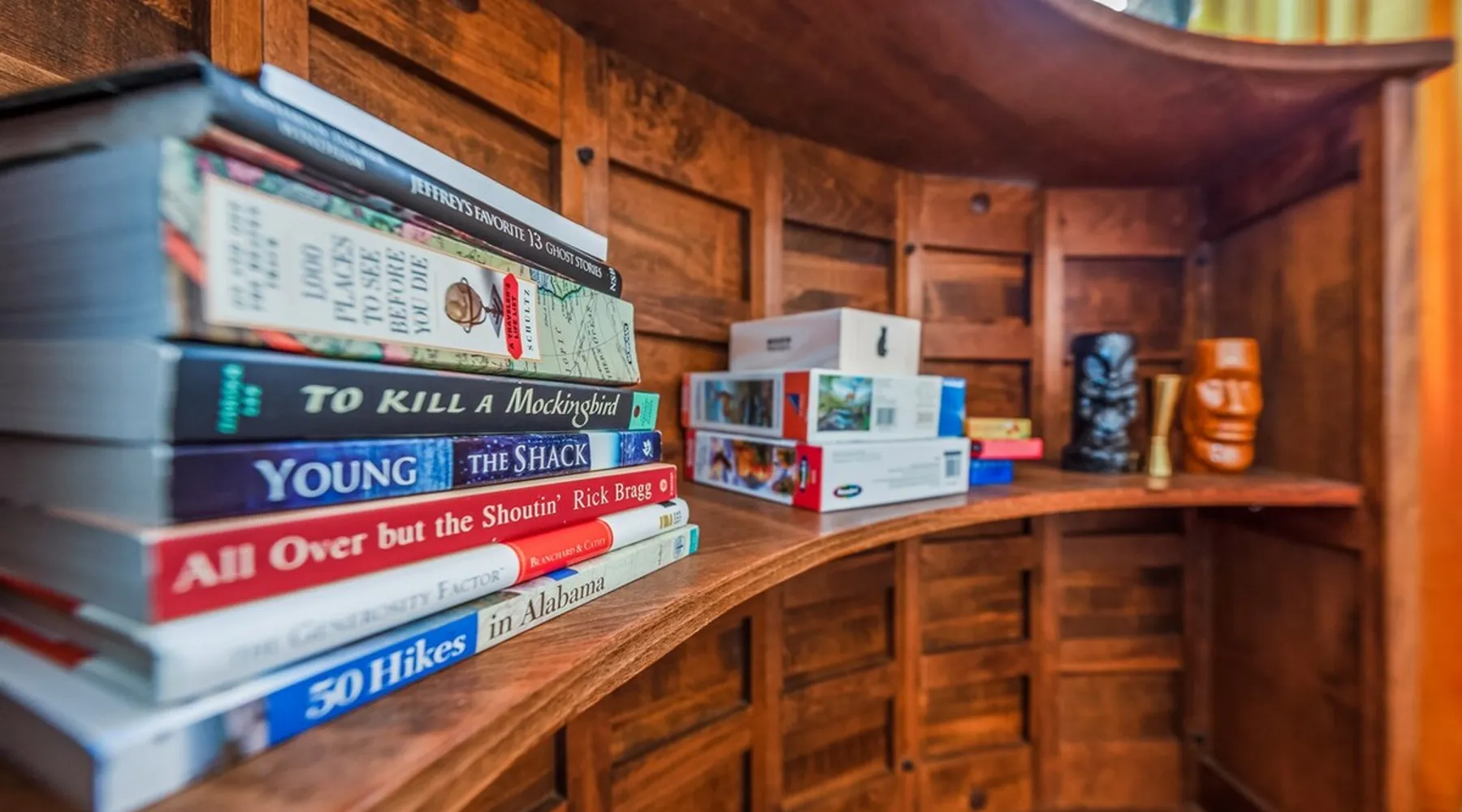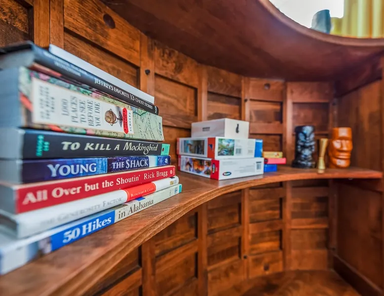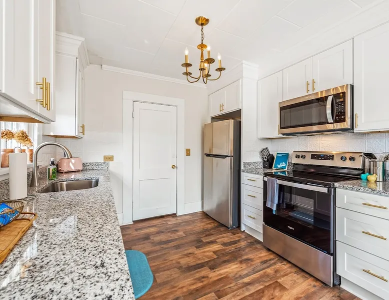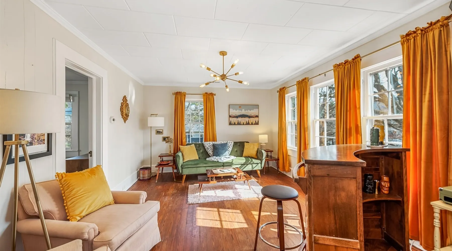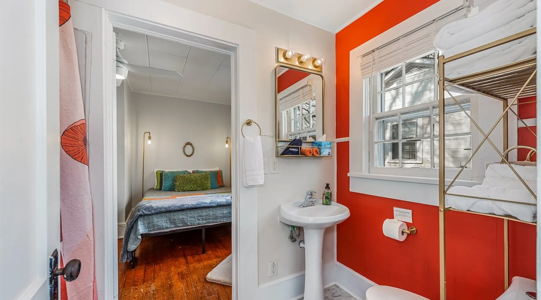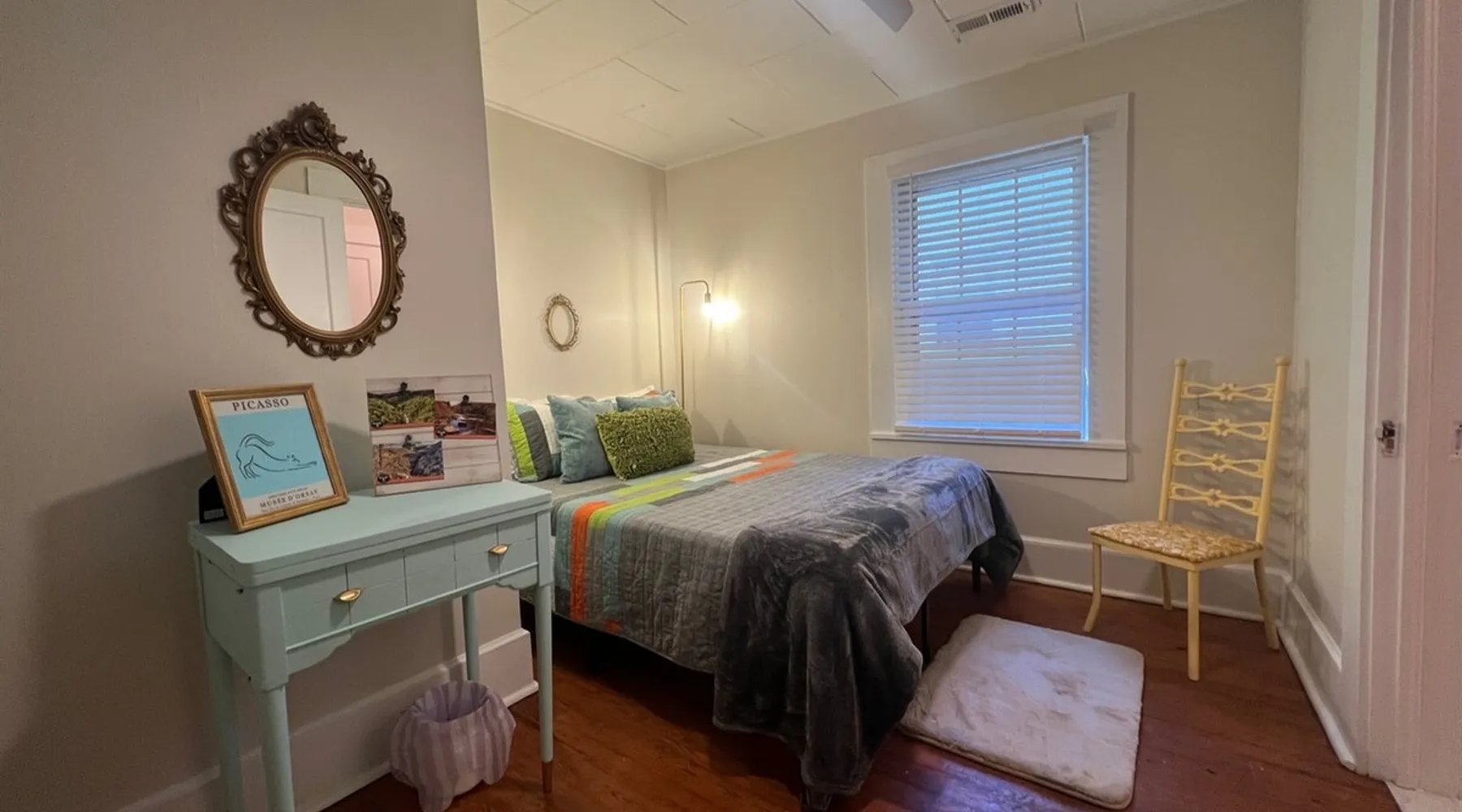 Mid Century Modern Loft | Downtown Fort Payne | Gig Internet Speed & Wi-Fi | 2 Queen Bedrooms | Entertainment and Living Area with “Treehouse” Views | Elegant Kitchen | Laundry Area | Dog Friendly | Sleeps Up to 6 Groovy Getaway Loft is anything but ordinary! A memorable place that’s truly a mid century modern night’s dream in Downtown Fort Payne, Alabama! Built in the 1950s, this loft offers a peaceful retreat in a neighborhood setting of Historic Downtown Fort Payne - centrally located! The space Groovy Getaway Loft | Mid Century Modern Loft | Downtown | Gig Internet Speed & Wi-Fi | Vacation, Corporate and Extended Stays | Entertainment and Living Area with “Treehouse” Views | Elegant Kitchen Laundry Area | Dog Friendly | Hosts up to 6 Guests Groovy Getaway Loft is anything but ordinary! A memorable place that’s truly a mid century modern night’s dream in Downtown Fort Payne, Alabama! Built in the 1950s, this loft offers a peaceful retreat in a neighborhood setting of Historic Downtown Fort Payne - centrally located in the heart of town and walking distance to unique shopping and dining as well as museums, parks and antique malls. Located 8 miles from Little River Canyon National Preserve, you can explore all of the beautiful waterfalls, forests, wildlife, and native plants offered by Lookout Mountain in Alabama! Step back in time - to the 1950s, 60s and 70s as Groovy Getaway Loft is an active part of the retreat property owner’s restoration project of love – be sure to sign their guest book and leave them a note :) The atmosphere is retro and peaceful - full of vibes to go along with concerts and special events or a day of vintage shopping or festivals! There are only GOOD VIBES in Groovy Getaway Loft :) Once you arrive on the property, you will love the groovy murals painted on the garage doors – inspired by sunsets at Lookout Mountain, of course :) This is an excellent location for selfies and group photos! As you enter the bright yellow door in the covered walkway, notice the staircase and railing, beautifully painted with the mid century mod theme the owners love :) Overlooking the staircase is a vintage picture reflecting on Little River Canyon’s mid-century days gone by :) Once you open the blue door, you’ll be standing in the beautiful kitchen and dining area. Granite countertops and brand new stainless appliances reveal the care the owners took to make this an amazing place for their Guests to relax and be refreshed. You will find the kitchen well-equipped with dishes, utensils, pans, dishwasher, microwave, drip coffee maker, electric water kettle, blender, toaster, and cooking spices. Adjoining the kitchen, there is a small laundry area with a washer and dryer available for Guests to use at their convenience. Right off of the kitchen, step up into a foyer area, and you’ll see the living and entertainment area. From the nostalgic lighting to the modern velvet sofa to the authentic chairs designed by Frederick Edward, the mid century mod décor has many of our Guests reflecting on childhood memories. The vintage mid-century bar and stools make for excellent photo prop opportunities. Play a record or two on the record player, play some board games, read a book, or watch TV. There is a 40” Roku HD TV and SUPER FAST Wi-Fi (Gig Internet Speed) for gaming and streaming as you relax after a day of exploring Lookout Mountain. Make sure you checkout the “treehouse” views through the windows :) There are 2 private bedrooms. Each bedroom has a queen size bed with a 10” Dreamer, memory foam mattress and comfy bedding to help every Guest rest well. Antimicrobial encasements are on all mattresses and pillows. In one of the bedrooms, there is a small desk and chair if a designated, private workspace is required. Though Groovy Getaway is ideal for 4 Guests, there is bedding available for up to 2 extra Guests, if needed. The futon sofa in the living area folds out to become a full-size bed. Between the two bedrooms, there is a full bathroom with a shower/tub combo, toilet and pedestal sink. Throughout Groovy Getaway Loft, you’ll enjoy looking at the owners’ vintage finds…and the collection is still growing for this brand new listing :) Groovy Getaway Loft would be perfect for a… - Romantic retreat: Offering unique dining and shopping opportunities! - Remote work retreat: Gig Internet Speed Wi-Fi and central downtown location! - Best friends retreat: Shop-til-you-drop opportunities within walking distance! - Adventure retreat: Explore beautiful waterfalls, forests, wildlife, and native plants offered by Lookout Mountain in Alabama! WHY GUESTS LOVE THIS PEACEFUL RETREAT PROPERTY: 1) It is tastefully decorated with authentic and modern mid-century pieces! 2) It is walking distance to shops, restaurants, parks, and museums! 3) It has “treehouse” views from the entertainment/living area! 4) It has super fast Wi-Fi (Gig Internet Speed)! 5) It is a downtown restoration project for the owners...and that's just groovy! Nearby: .8 miles - The Spot Coffee Shop .8 miles - DeKalb County Courthouse .5 mile - Fort Payne’s City Park .5 mile - Alabama Walking Trail Park 1.5 miles - VFW Fairgrounds .9 miles - Alabama Fan Club & Museum 8.2 miles - Little River Canyon National Preserve 12 miles - Northeast Alabama Agri-Business Center 13 miles - Mentone 8 miles - DeSoto State Park 30 miles - Unclaimed Baggage in Scottsboro, AL 40 miles - Cloudland Canyon State Park, GA 48 miles - Rock City & Ruby Falls 69 miles - Huntsville, AL You will want a car to see the sites and experience why Lookout Mountain in Alabama has so much to offer guests for a perfect vacation experience! You will be given access to a list of favorite attractions and restaurants! Waterfalls, national preserve, state parks, zip lining, hiking, picnicking, rappelling, horseback trail rides, canoeing, kayaking, rock climbing, wild animal preserve, golfing, swimming, museums, glass blowing, making pot