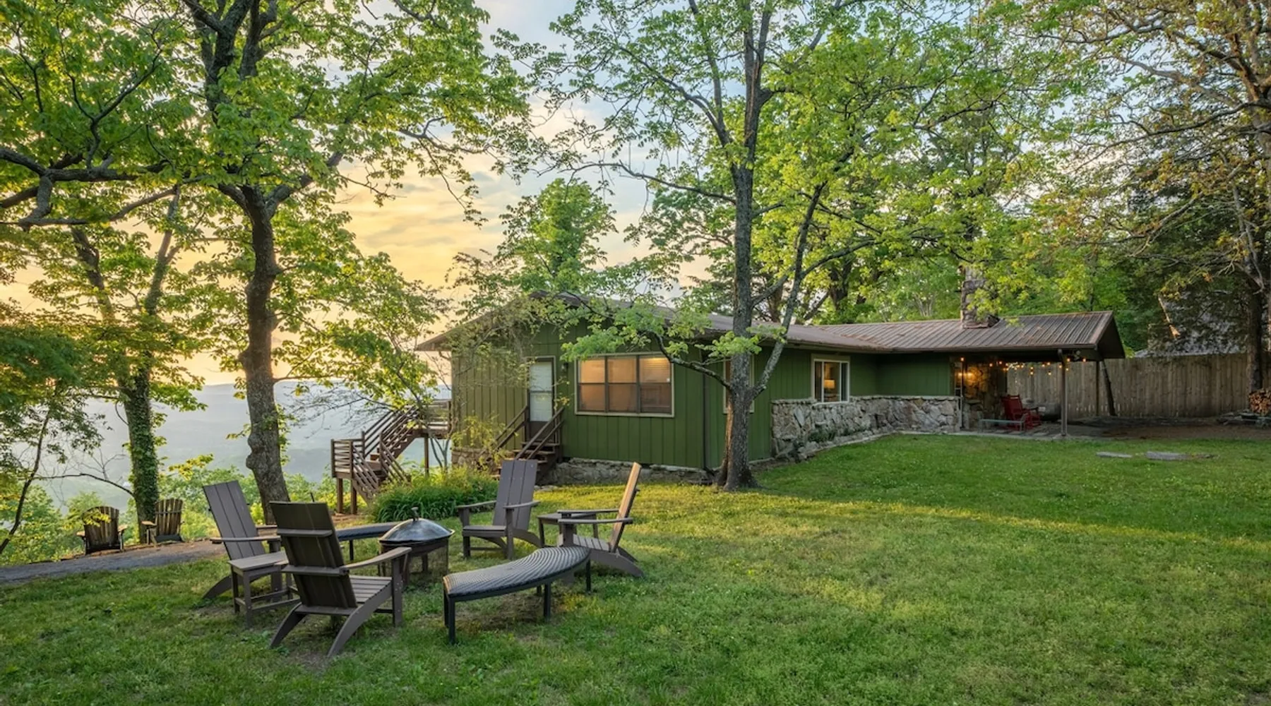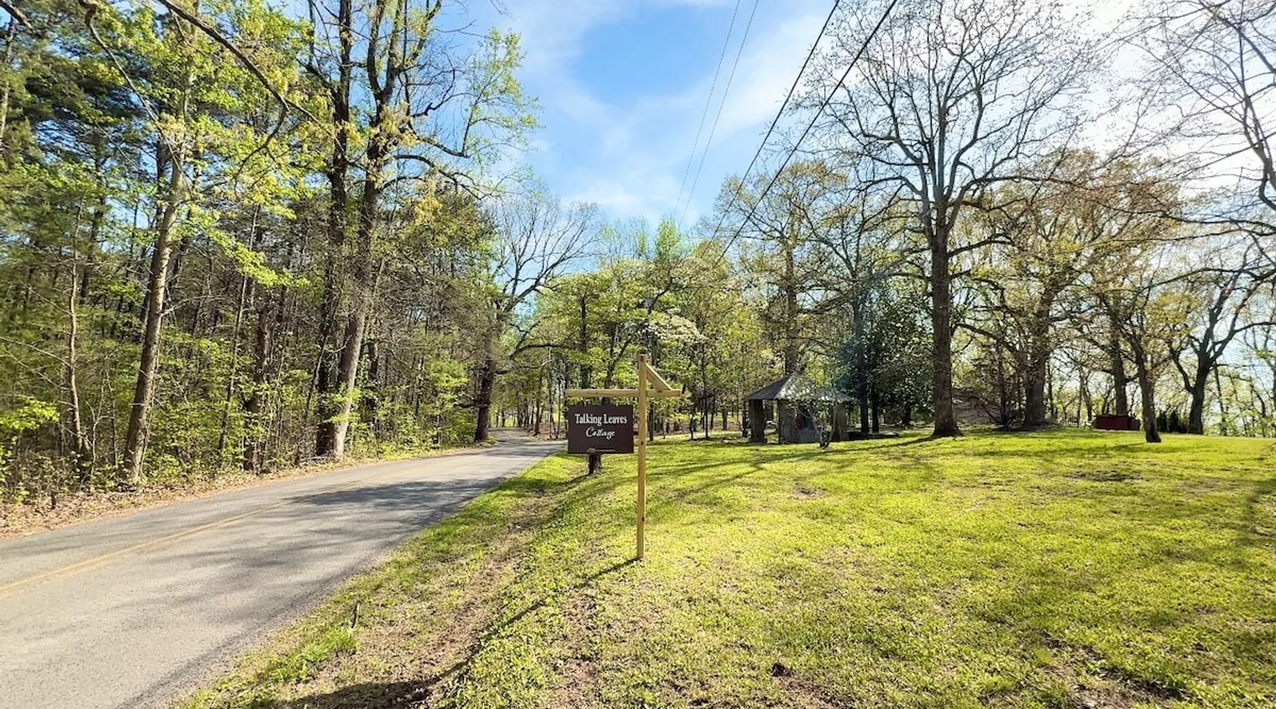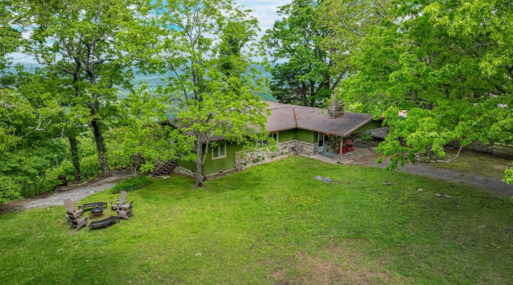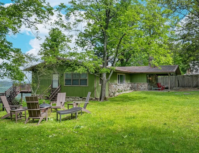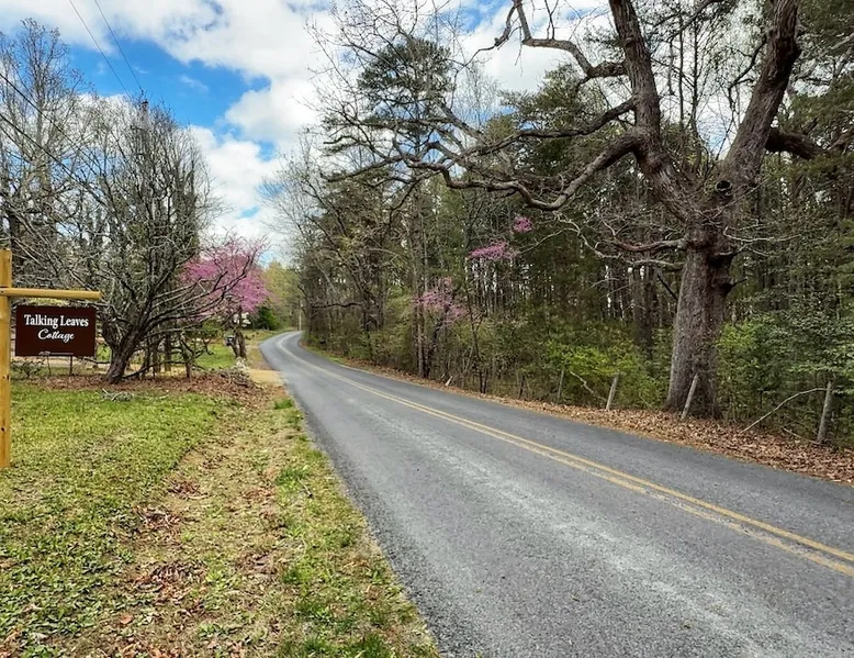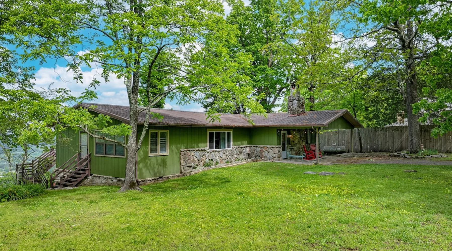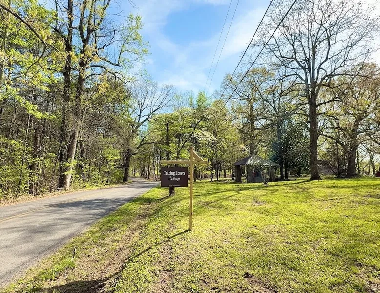 Talking Leaves Cottage is a uniquely-designed, one-level home with a no-stairs entrance that provides a peaceful retreat perched on the brow of Lookout Mountain. With breathtaking sunset views and effortless access, the home's spacious living, dining and deck areas offer the perfect family gathering spaces. Three family rooms, with multiple beds in each room, invite rest and relaxation at the end of each day. Explore waterfalls, parks, shops, and restaurants. Renew, refresh, and be restored! The space Mentone, AL | Talking Leaves Cottage | Scenic Highway | Spacious Deck Overlooking Brow | No-Stairs Entrance | Fire Pit | Fast Wi-Fi | 4 Roku TVs | BBQ Grill | 3 Family Rooms | 2 Bathrooms | Electric Log Fireplace | Front Porch with Rocking Chairs | Dog Friendly | Hosts up to 9 Guests Talking Leaves Cottage, perched on the brow of Lookout Mountain in Alabama and situated on Scenic Highway in Mentone, was built in 1955 and is a uniquely-designed, spacious one-level home. There is a no-stairs front entrance into one of the family bedrooms, so this home offers effortless access to breathtaking brow views. The spacious living, dining and deck areas offer the perfect family gathering spaces, and the three large family rooms, with multiple beds and a large Roku TV in each room, invite rest and relaxation at the end of each day. Talking Leaves Cottage is decorated with a collection of vintage art and antiques. The homeowners' love for history and art is evident throughout the home. Even the story of the "talking leaves" is in honor of Sequoyah, a Cherokee man who invented a written language for his people in the early 1800s. Sequoyah called his words on paper, "talking leaves." Explore waterfalls, parks, shops, and restaurants nearby. Enjoy al fresco dining on the spacious deck as you take in the beautiful sunsets. Relax by the fire pit or on the front covered patio with your morning cup of coffee or hot tea. Wildlife is spotted frequently on the property. Renew, refresh, and be restored! **THE RETREAT PROPERTY** When you turn into the shared graveled driveway, you will see Talking Leaves Cottage on the right, along with your own private parking area near the home (3 cars max). There is a patio area and covered front porch with rocking chairs. This outdoor seating area is an excellent place to unwind at the end of a day full of adventures or enjoy a cup of coffee or hot tea in the morning. Stepping inside the front door, you will love the no-stairs entrance, welcoming you to all that this peaceful retreat offers. The front entrance leads you directly into the Fireside Lodge Family Bedroom. In this room, you're greeted by a large stone fireplace with electric logs, and there is a swing-for-two next to the fireplace that makes this room even more unique and a favorite among guests :) There is a queen bed, and nearby there is a twin bed/reading nook. A 55" Roku TV is above the fireplace mantle for movie nights and streaming your own favorite channel subscriptions. Large sliding barn doors separate this front bedroom from the main living area, and there is also an entrance into the laundry room from this bedroom. In the main living area, there is plenty of lounge seating for up to 9 guests with 3 sofas. There is a 55" Roku TV on the wall for family movie nights, and a large farmhouse-style dining table for gathering. The best feature in this area is the mountain brow view through the sliding glass doors. Nearby, there is the well-equipped kitchen area with an island for meal preparations and a pantry. In the kitchen, there is a refrigerator, stove, microwave, dishwasher, coffee maker, electric water kettle, toaster, blender, cooking pots, can opener, pans and utensils, dishes, drinking glasses, wine glasses, eating utensils, cooking spices, coffee mugs, and more. Between the kitchen and the dining area, there is a door leading to The Patriot Family Bedroom. In this room, there is a queen bed, twin bed and a 43" smart TV in the corner for movie nights and streaming your own favorite channel subscriptions. There is an en suite bathroom with a tub/shower combo and toilet, and next to the bathroom is a larger vanity with sink as seen in photos. Back through the living area, there is an entrance into The Aristopup Family Bedroom. Named for the art in the room, this family room has a large king bed and twin bed. There is a 43" Roku TV on the wall for movie nights and streaming your own favorite channel subscriptions. There is also an en suite bathroom with a walk-in shower, toilet and double sink vanity. Through the sliding glass doors in the living area, there are no stairs required to step out on the back deck that overlooks the brow. The sunset views here are captivating, and there are lounging chairs to take in the views. There is also an outdoor dining table and chairs for al fresco dining, as well as a high-top table and 2 chairs. A propane BBQ grill is located nearby, and grilling utensils are located in a kitchen drawer. Back outside, there is a fire pit with comfortable seating area as seen in photos. You are welcomed to use any small pieces of fallen wood on the property that can safely fit inside the fire pit, and the homeowner has a stack of firewood near the front porch, and you are welcome to use some for your stay also. Please only burn firewood, as the homeowners and guests roast food over this fire pit. Extendable roasters are located in the kitchen for your convenience, so be sure to bring ingredients for s'more memories :) WHY GUESTS LOVE THIS PEACEFUL RETREAT PROPERTY: 1) It is situated on the brow with fantastic views! 2) It has a no-stairs front entrance, providing effortless access to the amazing views! 3) It has three spacious family rooms with multiple beds and a large TV in each room! 4) It has a fire pit area with brow views and comfortable seating! 5) It has spacious dining and living areas for gathering! **EXPLORE THE AREA** 2.1 miles - DeSoto Falls 3.0 miles - The Hatter Cafe in