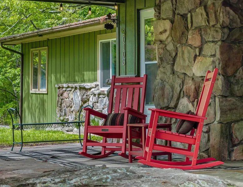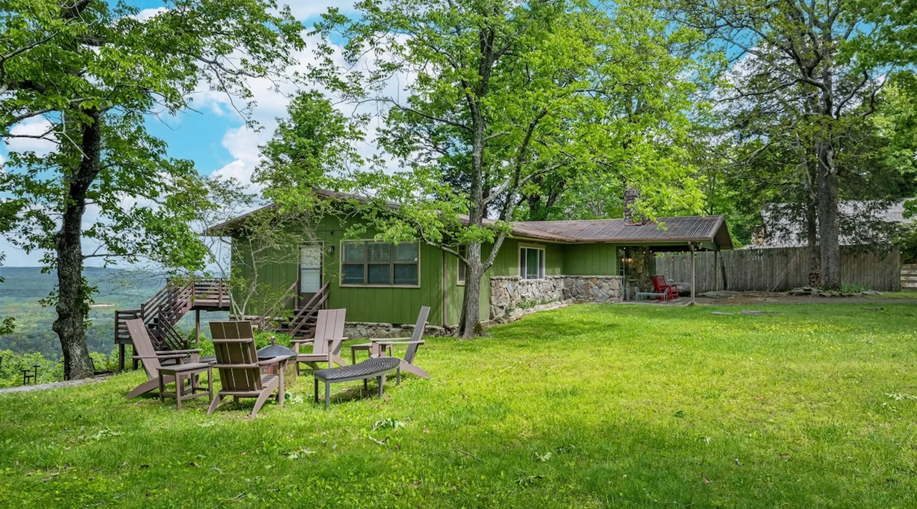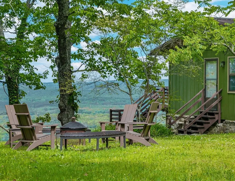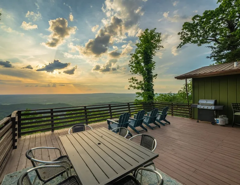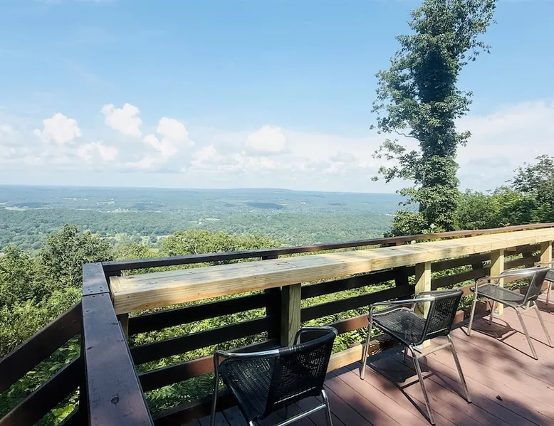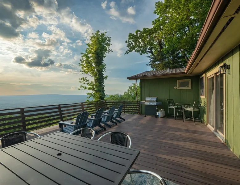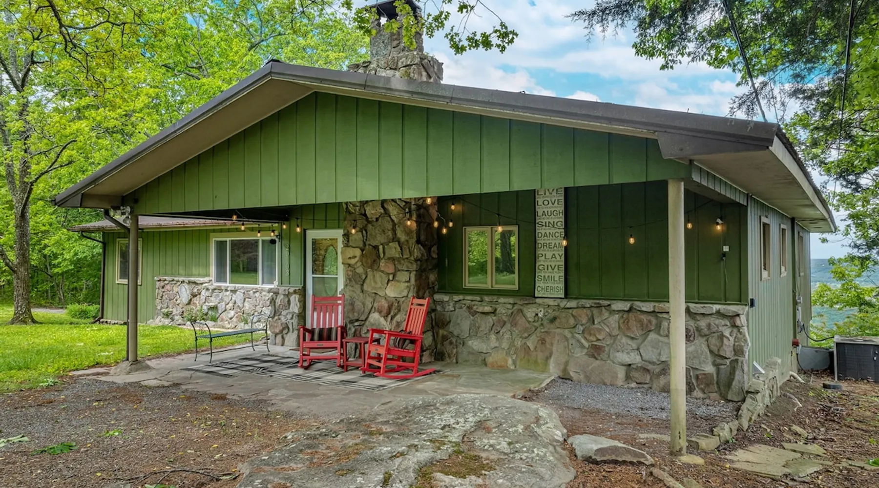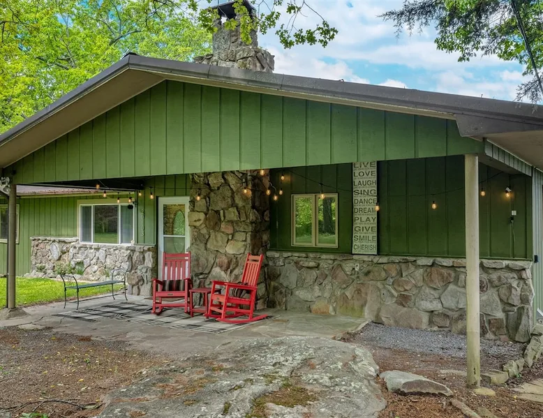Talking Leaves Cottage is a uniquely-designed, one-level home with a no-stairs entrance that provides a peaceful retreat perched on the brow of Lookout Mountain. With breathtaking sunset views and effortless access, the home's spacious living, dining and deck areas offer the perfect family gathering spaces. Three family rooms, with multiple beds in each room, invite rest and relaxation at the end of each day. Explore waterfalls, parks, shops, and restaurants. Renew, refresh, and be restored! The space Mentone, AL | Talking Leaves Cottage | Scenic Highway | Spacious Deck Overlooking Brow | No-Stairs Entrance | Fire Pit | Fast Wi-Fi | 4 Roku TVs | BBQ Grill | 3 Family Rooms | 2 Bathrooms | Electric Log Fireplace | Front Porch with Rocking Chairs | Dog Friendly | Hosts up to 9 Guests Talking Leaves Cottage, perched on the brow of Lookout Mountain in Alabama and situated on Scenic Highway in Mentone, was built in 1955 and is a uniquely-designed, spacious one-level home. There is a no-stairs front entrance into one of the family bedrooms, so this home offers effortless access to breathtaking brow views. The spacious living, dining and deck areas offer the perfect family gathering spaces, and the three large family rooms, with multiple beds and a large Roku TV in each room, invite rest and relaxation at the end of each day. Talking Leaves Cottage is decorated with a collection of vintage art and antiques. The homeowners' love for history and art is evident throughout the home. Even the story of the "talking leaves" is in honor of Sequoyah, a Cherokee man who invented a written language for his people in the early 1800s. Sequoyah called his words on paper, "talking leaves." Explore waterfalls, parks, shops, and restaurants nearby. Enjoy al fresco dining on the spacious deck as you take in the beautiful sunsets. Relax by the fire pit or on the front covered patio with your morning cup of coffee or hot tea. Wildlife is spotted frequently on the property. Renew, refresh, and be restored! **THE RETREAT PROPERTY** When you turn into the shared graveled driveway, you will see Talking Leaves Cottage on the right, along with your own private parking area near the home (3 cars max). There is a patio area and covered front porch with rocking chairs. This outdoor seating area is an excellent place to unwind at the end of a day full of adventures or enjoy a cup of coffee or hot tea in the morning. Stepping inside the front door, you will love the no-stairs entrance, welcoming you to all that this peaceful retreat offers. The front entrance leads you directly into the Fireside Lodge Family Bedroom. In this room, you're greeted by a large stone fireplace with electric logs, and there is a swing-for-two next to the fireplace that makes this room even more unique and a favorite among guests :) There is a queen bed, and nearby there is a twin bed/reading nook. A 55" Roku TV is above the fireplace mantle for movie nights and streaming your own favorite channel subscriptions. Large sliding barn doors separate this front bedroom from the main living area, and there is also an entrance into the laundry room from this bedroom. In the main living area, there is plenty of lounge seating for up to 9 guests with 3 sofas. There is a 55" Roku TV on the wall for family movie nights, and a large farmhouse-style dining table for gathering. The best feature in this area is the mountain brow view through the sliding glass doors. Nearby, there is the well-equipped kitchen area with an island for meal preparations and a pantry. In the kitchen, there is a refrigerator, stove, microwave, dishwasher, coffee maker, electric water kettle, toaster, blender, cooking pots, can opener, pans and utensils, dishes, drinking glasses, wine glasses, eating utensils, cooking spices, coffee mugs, and more. Between the kitchen and the dining area, there is a door leading to The Patriot Family Bedroom. In this room, there is a queen bed, twin bed and a 43" smart TV in the corner for movie nights and streaming your own favorite channel subscriptions. There is an en suite bathroom with a tub/shower combo and toilet, and next to the bathroom is a larger vanity with sink as seen in photos. Back through the living area, there is an entrance into The Aristopup Family Bedroom. Named for the art in the room, this family room has a large king bed and twin bed. There is a 43" Roku TV on the wall for movie nights and streaming your own favorite channel subscriptions. There is also an en suite bathroom with a walk-in shower, toilet and double sink vanity. Through the sliding glass doors in the living area, there are no stairs required to step out on the back deck that overlooks the brow. The sunset views here are captivating, and there are lounging chairs to take in the views. There is also an outdoor dining table and chairs for al fresco dining, as well as a high-top table and 2 chairs. A propane BBQ grill is located nearby, and grilling utensils are located in a kitchen drawer. Back outside, there is a fire pit with comfortable seating area as seen in photos. You are welcomed to use any small pieces of fallen wood on the property that can safely fit inside the fire pit, and the homeowner has a stack of firewood near the front porch, and you are welcome to use some for your stay also. Please only burn firewood, as the homeowners and guests roast food over this fire pit. Extendable roasters are located in the kitchen for your convenience, so be sure to bring ingredients for s'more memories :) WHY GUESTS LOVE THIS PEACEFUL RETREAT PROPERTY: 1) It is situated on the brow with fantastic views! 2) It has a no-stairs front entrance, providing effortless access to the amazing views! 3) It has three spacious family rooms with multiple beds and a large TV in each room! 4) It has a fire pit area with brow views and comfortable seating! 5) It has spacious dining and living areas for gathering! **EXPLORE THE AREA** 2.1 miles - DeSoto Falls 3.0 miles - The Hatter Cafe in