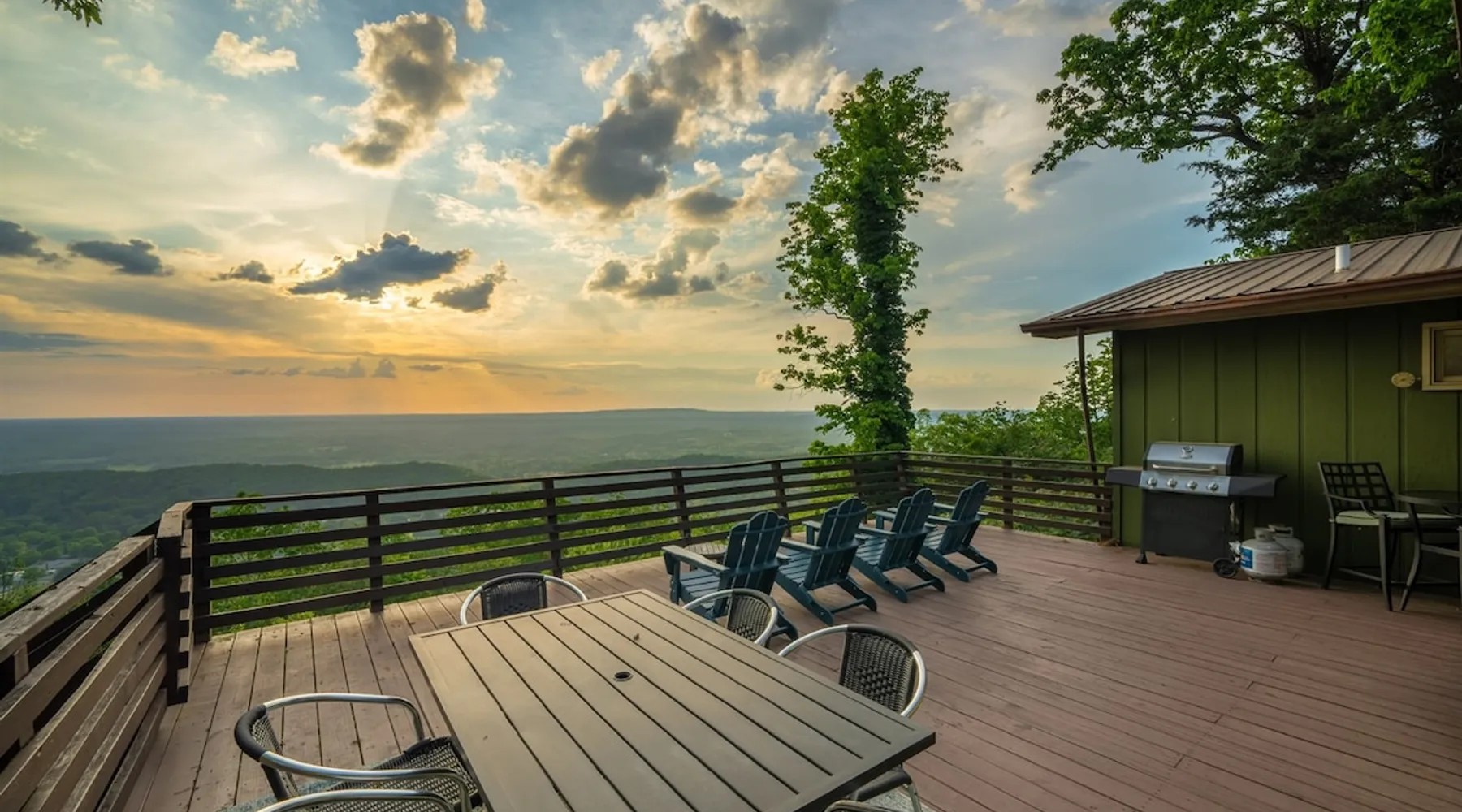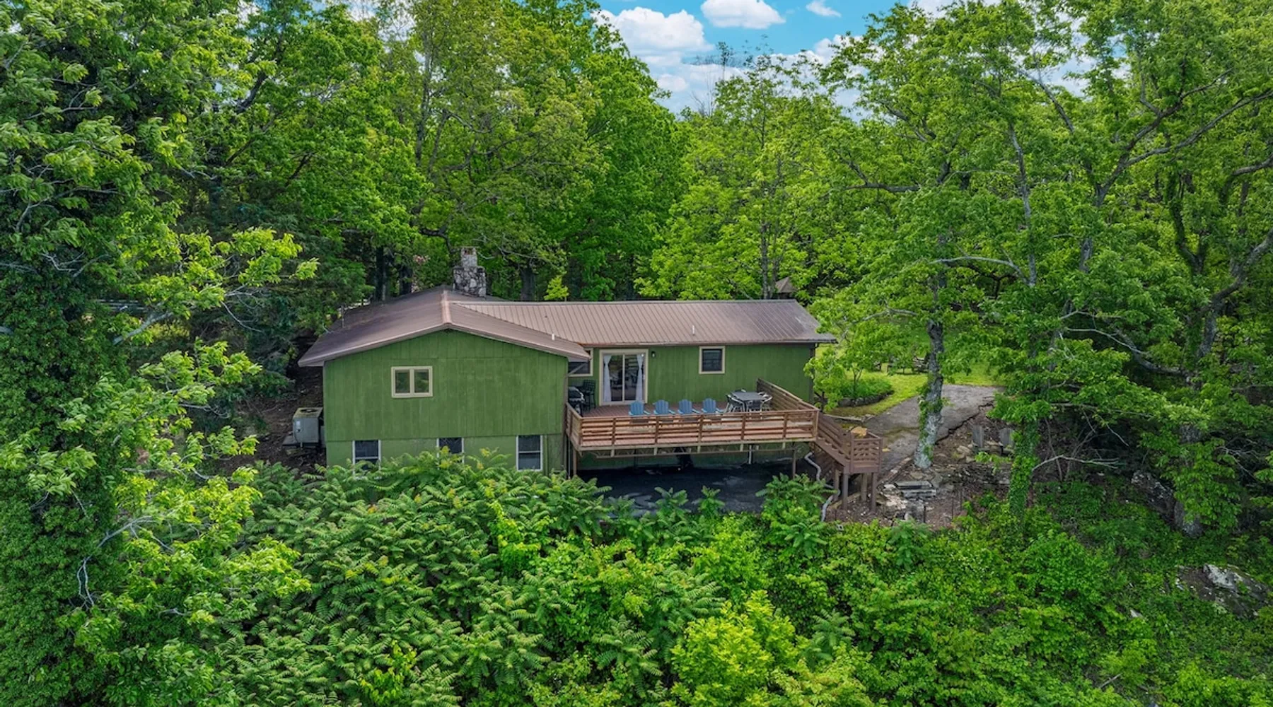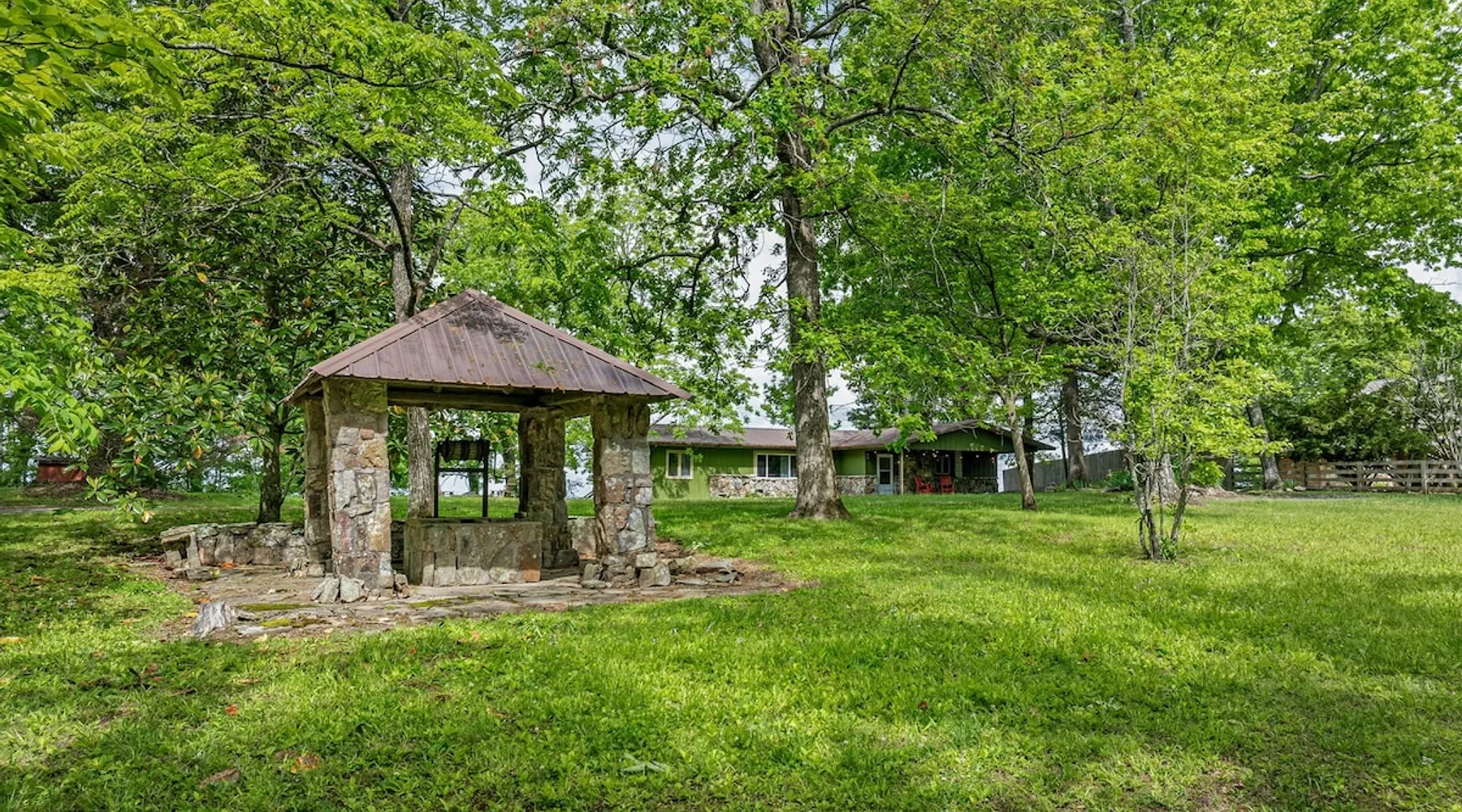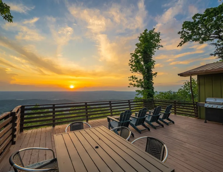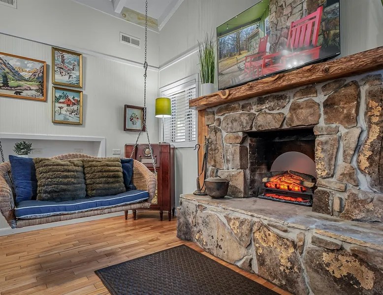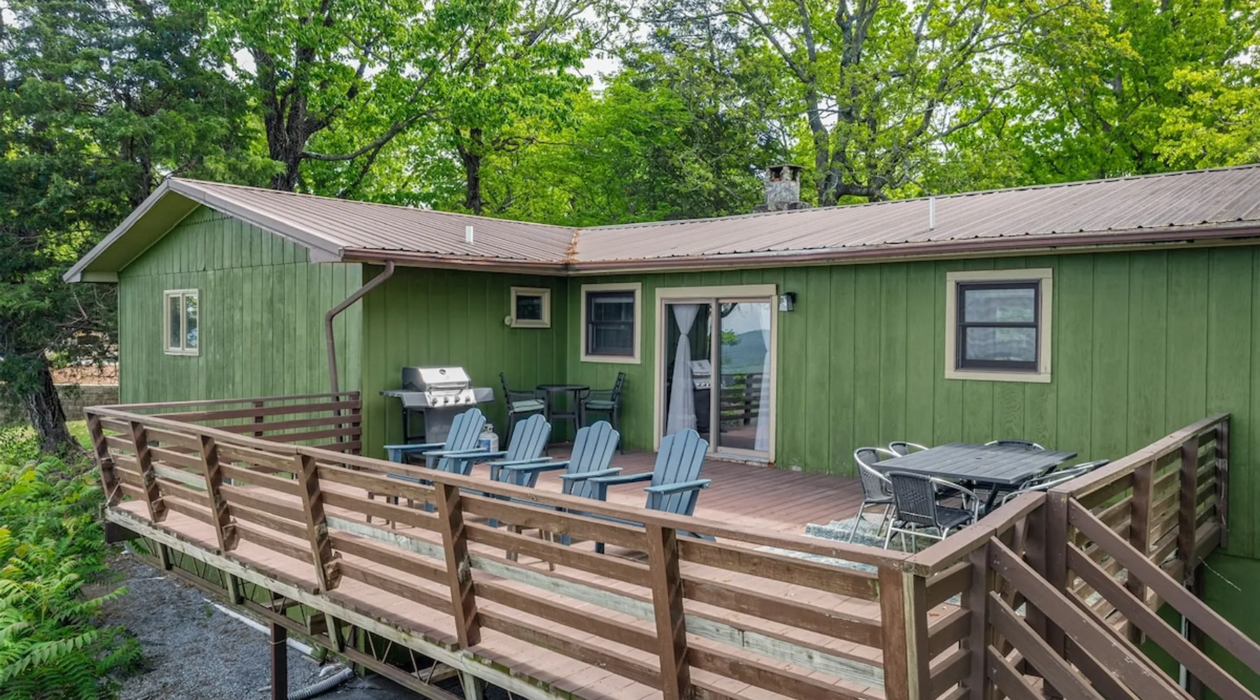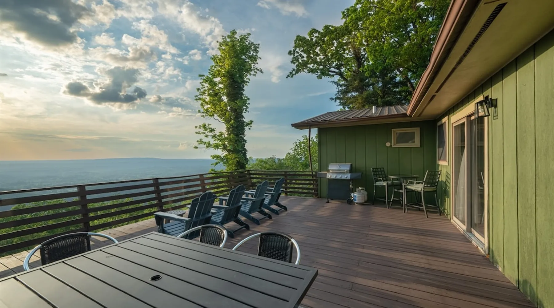 Talking Leaves Cottage is a uniquely-designed, one-level home with a no-stairs entrance that provides a peaceful retreat perched on the brow of Lookout Mountain. With breathtaking sunset views and effortless access, the home's spacious living, dining and deck areas offer the perfect family gathering spaces. Three family rooms, with multiple beds in each room, invite rest and relaxation at the end of each day. Explore waterfalls, parks, shops, and restaurants. Renew, refresh, and be restored! The space Mentone, AL | Talking Leaves Cottage | Scenic Highway | Spacious Deck Overlooking Brow | No-Stairs Entrance | Fire Pit | Fast Wi-Fi | 4 Roku TVs | BBQ Grill | 3 Family Rooms | 2 Bathrooms | Electric Log Fireplace | Front Porch with Rocking Chairs | Dog Friendly | Hosts up to 9 Guests Talking Leaves Cottage, perched on the brow of Lookout Mountain in Alabama and situated on Scenic Highway in Mentone, was built in 1955 and is a uniquely-designed, spacious one-level home. There is a no-stairs front entrance into one of the family bedrooms, so this home offers effortless access to breathtaking brow views. The spacious living, dining and deck areas offer the perfect family gathering spaces, and the three large family rooms, with multiple beds and a large Roku TV in each room, invite rest and relaxation at the end of each day. Talking Leaves Cottage is decorated with a collection of vintage art and antiques. The homeowners' love for history and art is evident throughout the home. Even the story of the "talking leaves" is in honor of Sequoyah, a Cherokee man who invented a written language for his people in the early 1800s. Sequoyah called his words on paper, "talking leaves." Explore waterfalls, parks, shops, and restaurants nearby. Enjoy al fresco dining on the spacious deck as you take in the beautiful sunsets. Relax by the fire pit or on the front covered patio with your morning cup of coffee or hot tea. Wildlife is spotted frequently on the property. Renew, refresh, and be restored! **THE RETREAT PROPERTY** When you turn into the shared graveled driveway, you will see Talking Leaves Cottage on the right, along with your own private parking area near the home (3 cars max). There is a patio area and covered front porch with rocking chairs. This outdoor seating area is an excellent place to unwind at the end of a day full of adventures or enjoy a cup of coffee or hot tea in the morning. Stepping inside the front door, you will love the no-stairs entrance, welcoming you to all that this peaceful retreat offers. The front entrance leads you directly into the Fireside Lodge Family Bedroom. In this room, you're greeted by a large stone fireplace with electric logs, and there is a swing-for-two next to the fireplace that makes this room even more unique and a favorite among guests :) There is a queen bed, and nearby there is a twin bed/reading nook. A 55" Roku TV is above the fireplace mantle for movie nights and streaming your own favorite channel subscriptions. Large sliding barn doors separate this front bedroom from the main living area, and there is also an entrance into the laundry room from this bedroom. In the main living area, there is plenty of lounge seating for up to 9 guests with 3 sofas. There is a 55" Roku TV on the wall for family movie nights, and a large farmhouse-style dining table for gathering. The best feature in this area is the mountain brow view through the sliding glass doors. Nearby, there is the well-equipped kitchen area with an island for meal preparations and a pantry. In the kitchen, there is a refrigerator, stove, microwave, dishwasher, coffee maker, electric water kettle, toaster, blender, cooking pots, can opener, pans and utensils, dishes, drinking glasses, wine glasses, eating utensils, cooking spices, coffee mugs, and more. Between the kitchen and the dining area, there is a door leading to The Patriot Family Bedroom. In this room, there is a queen bed, twin bed and a 43" smart TV in the corner for movie nights and streaming your own favorite channel subscriptions. There is an en suite bathroom with a tub/shower combo and toilet, and next to the bathroom is a larger vanity with sink as seen in photos. Back through the living area, there is an entrance into The Aristopup Family Bedroom. Named for the art in the room, this family room has a large king bed and twin bed. There is a 43" Roku TV on the wall for movie nights and streaming your own favorite channel subscriptions. There is also an en suite bathroom with a walk-in shower, toilet and double sink vanity. Through the sliding glass doors in the living area, there are no stairs required to step out on the back deck that overlooks the brow. The sunset views here are captivating, and there are lounging chairs to take in the views. There is also an outdoor dining table and chairs for al fresco dining, as well as a high-top table and 2 chairs. A propane BBQ grill is located nearby, and grilling utensils are located in a kitchen drawer. Back outside, there is a fire pit with comfortable seating area as seen in photos. You are welcomed to use any small pieces of fallen wood on the property that can safely fit inside the fire pit, and the homeowner has a stack of firewood near the front porch, and you are welcome to use some for your stay also. Please only burn firewood, as the homeowners and guests roast food over this fire pit. Extendable roasters are located in the kitchen for your convenience, so be sure to bring ingredients for s'more memories :) WHY GUESTS LOVE THIS PEACEFUL RETREAT PROPERTY: 1) It is situated on the brow with fantastic views! 2) It has a no-stairs front entrance, providing effortless access to the amazing views! 3) It has three spacious family rooms with multiple beds and a large TV in each room! 4) It has a fire pit area with brow views and comfortable seating! 5) It has spacious dining and living areas for gathering! **EXPLORE THE AREA** 2.1 miles - DeSoto Falls 3.0 miles - The Hatter Cafe in