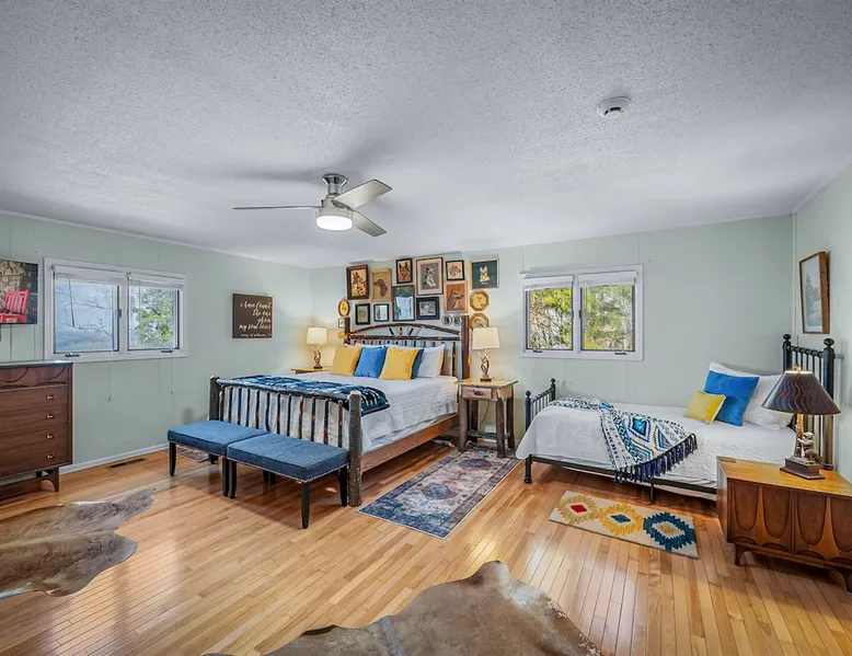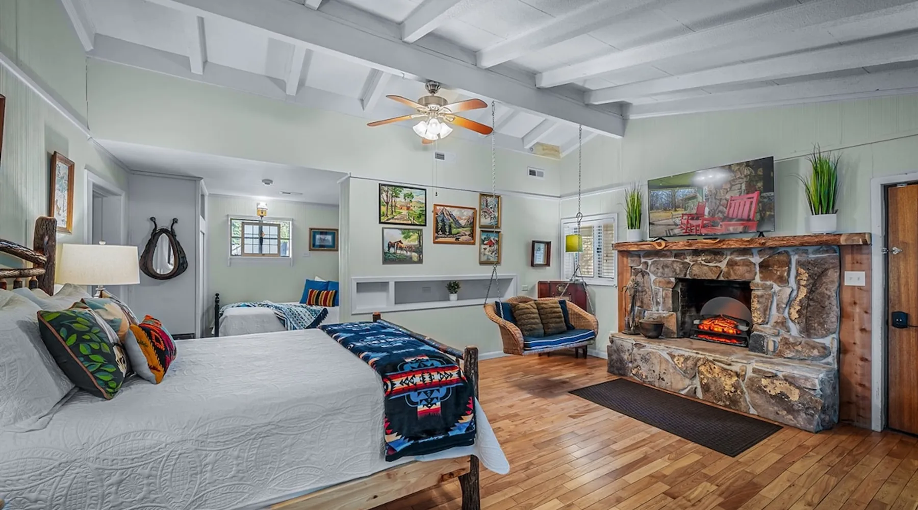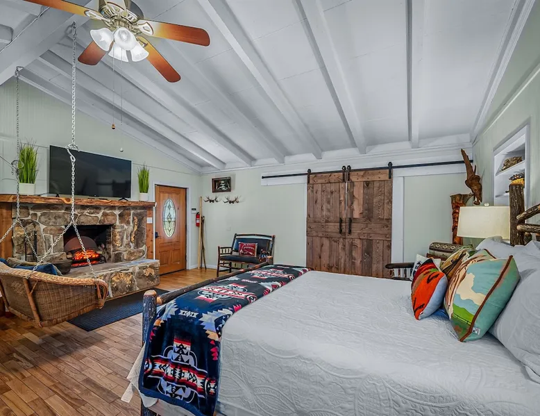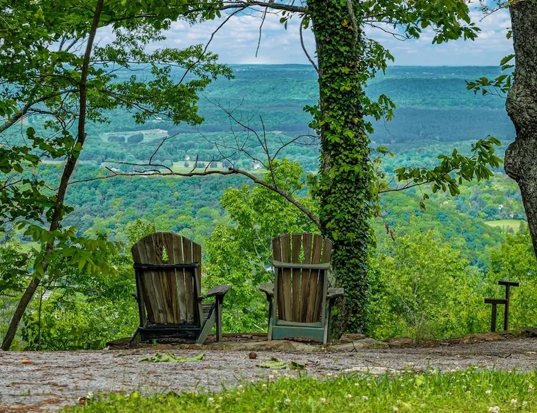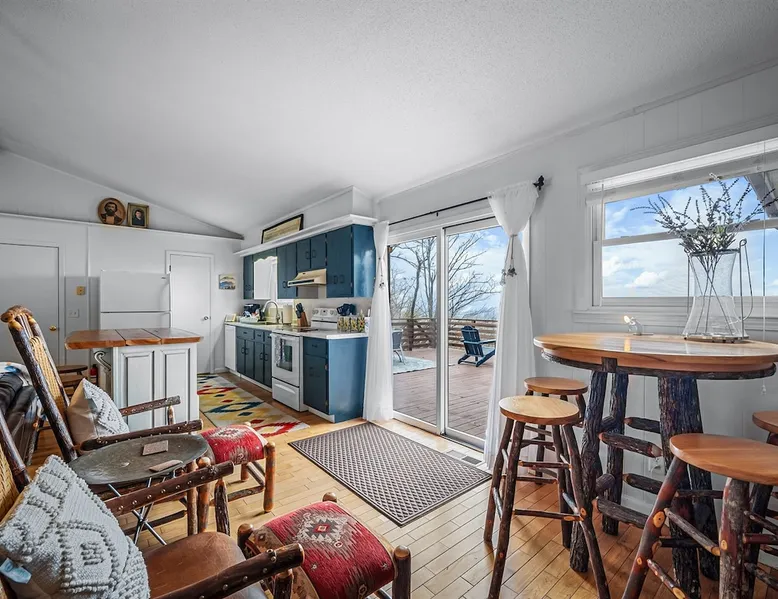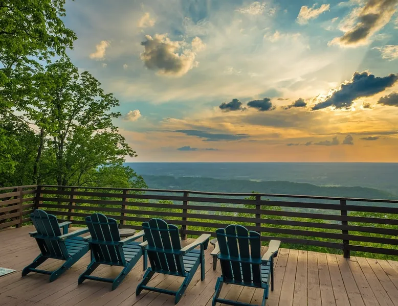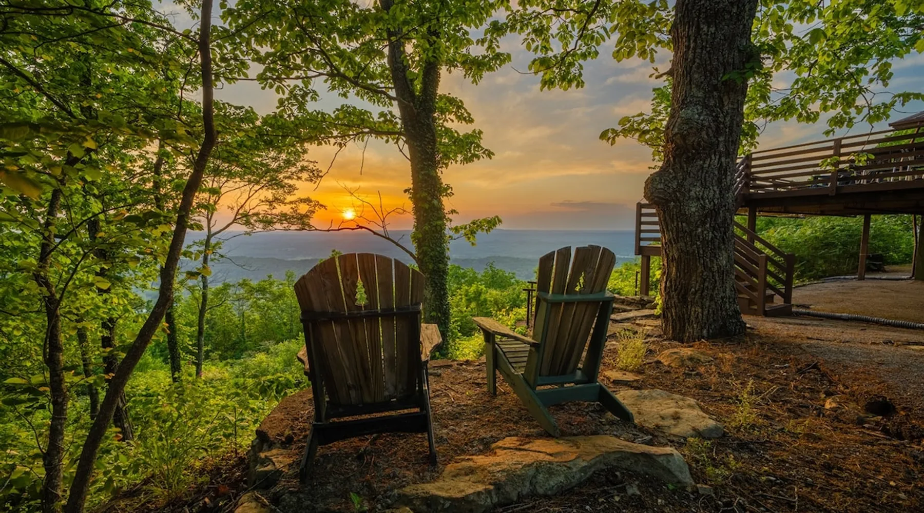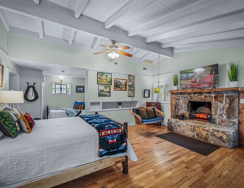 Talking Leaves Cottage is a uniquely-designed, one-level home with a no-stairs entrance that provides a peaceful retreat perched on the brow of Lookout Mountain. With breathtaking sunset views and effortless access, the home's spacious living, dining and deck areas offer the perfect family gathering spaces. Three family rooms, with multiple beds in each room, invite rest and relaxation at the end of each day. Explore waterfalls, parks, shops, and restaurants. Renew, refresh, and be restored! The space Mentone, AL | Talking Leaves Cottage | Scenic Highway | Spacious Deck Overlooking Brow | No-Stairs Entrance | Fire Pit | Fast Wi-Fi | 4 Roku TVs | BBQ Grill | 3 Family Rooms | 2 Bathrooms | Electric Log Fireplace | Front Porch with Rocking Chairs | Dog Friendly | Hosts up to 9 Guests Talking Leaves Cottage, perched on the brow of Lookout Mountain in Alabama and situated on Scenic Highway in Mentone, was built in 1955 and is a uniquely-designed, spacious one-level home. There is a no-stairs front entrance into one of the family bedrooms, so this home offers effortless access to breathtaking brow views. The spacious living, dining and deck areas offer the perfect family gathering spaces, and the three large family rooms, with multiple beds and a large Roku TV in each room, invite rest and relaxation at the end of each day. Talking Leaves Cottage is decorated with a collection of vintage art and antiques. The homeowners' love for history and art is evident throughout the home. Even the story of the "talking leaves" is in honor of Sequoyah, a Cherokee man who invented a written language for his people in the early 1800s. Sequoyah called his words on paper, "talking leaves." Explore waterfalls, parks, shops, and restaurants nearby. Enjoy al fresco dining on the spacious deck as you take in the beautiful sunsets. Relax by the fire pit or on the front covered patio with your morning cup of coffee or hot tea. Wildlife is spotted frequently on the property. Renew, refresh, and be restored! **THE RETREAT PROPERTY** When you turn into the shared graveled driveway, you will see Talking Leaves Cottage on the right, along with your own private parking area near the home (3 cars max). There is a patio area and covered front porch with rocking chairs. This outdoor seating area is an excellent place to unwind at the end of a day full of adventures or enjoy a cup of coffee or hot tea in the morning. Stepping inside the front door, you will love the no-stairs entrance, welcoming you to all that this peaceful retreat offers. The front entrance leads you directly into the Fireside Lodge Family Bedroom. In this room, you're greeted by a large stone fireplace with electric logs, and there is a swing-for-two next to the fireplace that makes this room even more unique and a favorite among guests :) There is a queen bed, and nearby there is a twin bed/reading nook. A 55" Roku TV is above the fireplace mantle for movie nights and streaming your own favorite channel subscriptions. Large sliding barn doors separate this front bedroom from the main living area, and there is also an entrance into the laundry room from this bedroom. In the main living area, there is plenty of lounge seating for up to 9 guests with 3 sofas. There is a 55" Roku TV on the wall for family movie nights, and a large farmhouse-style dining table for gathering. The best feature in this area is the mountain brow view through the sliding glass doors. Nearby, there is the well-equipped kitchen area with an island for meal preparations and a pantry. In the kitchen, there is a refrigerator, stove, microwave, dishwasher, coffee maker, electric water kettle, toaster, blender, cooking pots, can opener, pans and utensils, dishes, drinking glasses, wine glasses, eating utensils, cooking spices, coffee mugs, and more. Between the kitchen and the dining area, there is a door leading to The Patriot Family Bedroom. In this room, there is a queen bed, twin bed and a 43" smart TV in the corner for movie nights and streaming your own favorite channel subscriptions. There is an en suite bathroom with a tub/shower combo and toilet, and next to the bathroom is a larger vanity with sink as seen in photos. Back through the living area, there is an entrance into The Aristopup Family Bedroom. Named for the art in the room, this family room has a large king bed and twin bed. There is a 43" Roku TV on the wall for movie nights and streaming your own favorite channel subscriptions. There is also an en suite bathroom with a walk-in shower, toilet and double sink vanity. Through the sliding glass doors in the living area, there are no stairs required to step out on the back deck that overlooks the brow. The sunset views here are captivating, and there are lounging chairs to take in the views. There is also an outdoor dining table and chairs for al fresco dining, as well as a high-top table and 2 chairs. A propane BBQ grill is located nearby, and grilling utensils are located in a kitchen drawer. Back outside, there is a fire pit with comfortable seating area as seen in photos. You are welcomed to use any small pieces of fallen wood on the property that can safely fit inside the fire pit, and the homeowner has a stack of firewood near the front porch, and you are welcome to use some for your stay also. Please only burn firewood, as the homeowners and guests roast food over this fire pit. Extendable roasters are located in the kitchen for your convenience, so be sure to bring ingredients for s'more memories :) WHY GUESTS LOVE THIS PEACEFUL RETREAT PROPERTY: 1) It is situated on the brow with fantastic views! 2) It has a no-stairs front entrance, providing effortless access to the amazing views! 3) It has three spacious family rooms with multiple beds and a large TV in each room! 4) It has a fire pit area with brow views and comfortable seating! 5) It has spacious dining and living areas for gathering! **EXPLORE THE AREA** 2.1 miles - DeSoto Falls 3.0 miles - The Hatter Cafe in