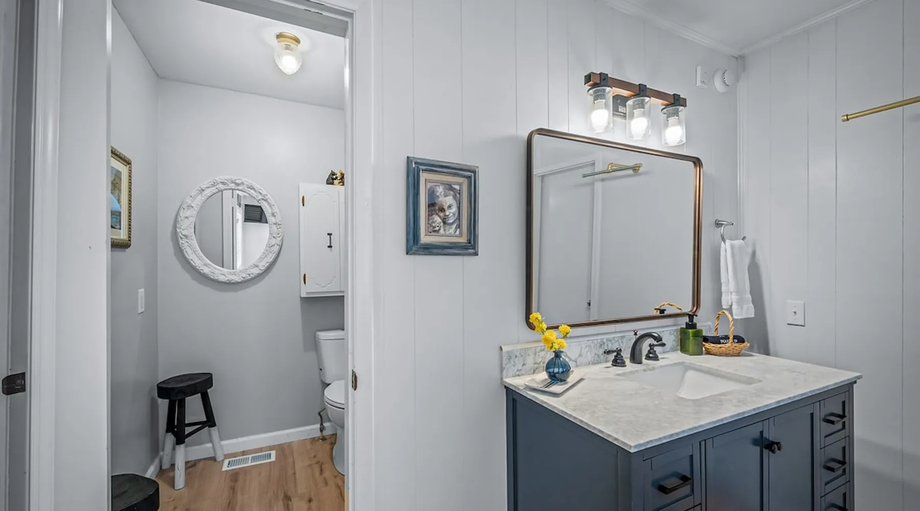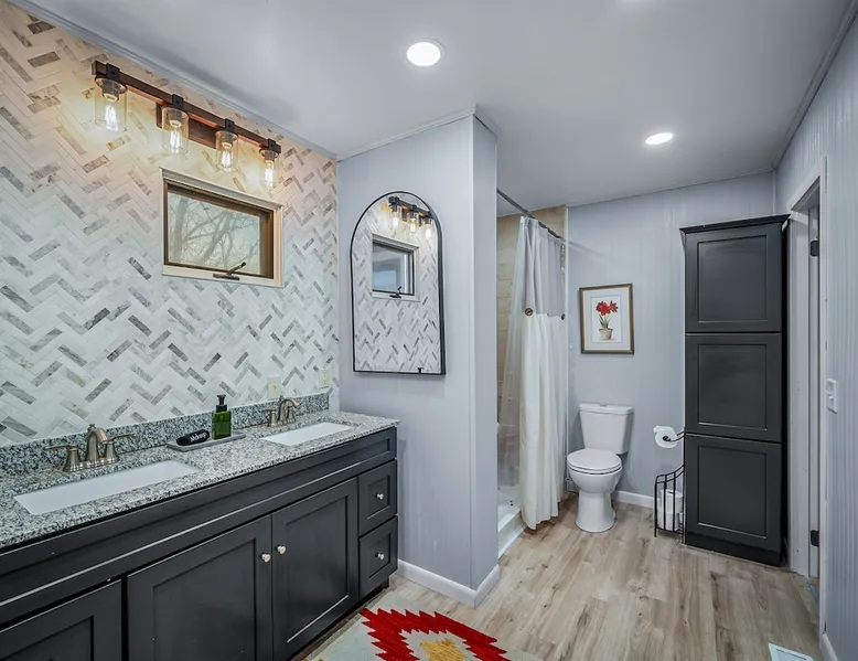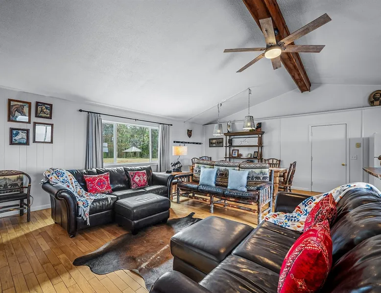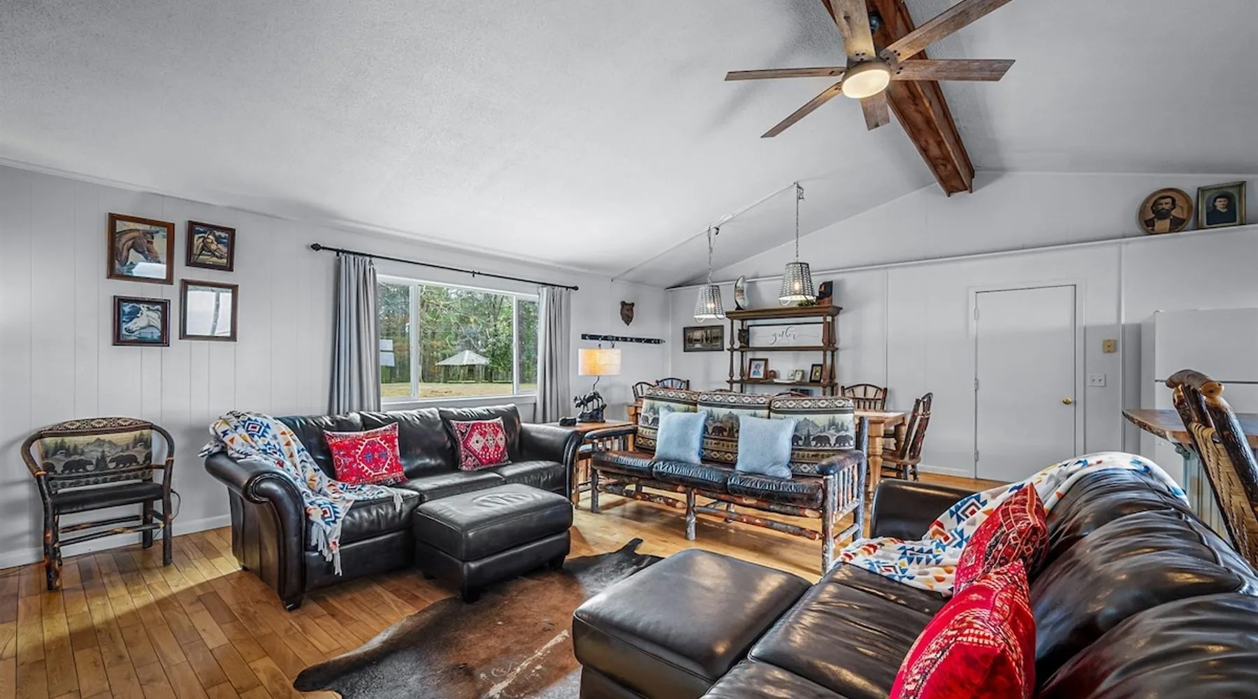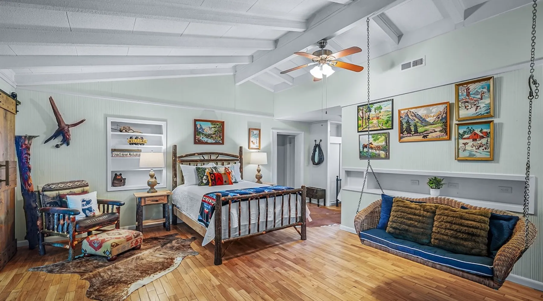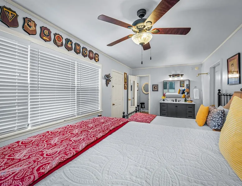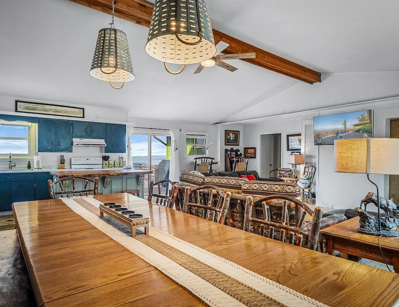 Talking Leaves Cottage is a uniquely-designed, one-level home with a no-stairs entrance that provides a peaceful retreat perched on the brow of Lookout Mountain. With breathtaking sunset views and effortless access, the home's spacious living, dining and deck areas offer the perfect family gathering spaces. Three family rooms, with multiple beds in each room, invite rest and relaxation at the end of each day. Explore waterfalls, parks, shops, and restaurants. Renew, refresh, and be restored! The space Mentone, AL | Talking Leaves Cottage | Scenic Highway | Spacious Deck Overlooking Brow | No-Stairs Entrance | Fire Pit | Fast Wi-Fi | 4 Roku TVs | BBQ Grill | 3 Family Rooms | 2 Bathrooms | Electric Log Fireplace | Front Porch with Rocking Chairs | Dog Friendly | Hosts up to 9 Guests Talking Leaves Cottage, perched on the brow of Lookout Mountain in Alabama and situated on Scenic Highway in Mentone, was built in 1955 and is a uniquely-designed, spacious one-level home. There is a no-stairs front entrance into one of the family bedrooms, so this home offers effortless access to breathtaking brow views. The spacious living, dining and deck areas offer the perfect family gathering spaces, and the three large family rooms, with multiple beds and a large Roku TV in each room, invite rest and relaxation at the end of each day. Talking Leaves Cottage is decorated with a collection of vintage art and antiques. The homeowners' love for history and art is evident throughout the home. Even the story of the "talking leaves" is in honor of Sequoyah, a Cherokee man who invented a written language for his people in the early 1800s. Sequoyah called his words on paper, "talking leaves." Explore waterfalls, parks, shops, and restaurants nearby. Enjoy al fresco dining on the spacious deck as you take in the beautiful sunsets. Relax by the fire pit or on the front covered patio with your morning cup of coffee or hot tea. Wildlife is spotted frequently on the property. Renew, refresh, and be restored! **THE RETREAT PROPERTY** When you turn into the shared graveled driveway, you will see Talking Leaves Cottage on the right, along with your own private parking area near the home (3 cars max). There is a patio area and covered front porch with rocking chairs. This outdoor seating area is an excellent place to unwind at the end of a day full of adventures or enjoy a cup of coffee or hot tea in the morning. Stepping inside the front door, you will love the no-stairs entrance, welcoming you to all that this peaceful retreat offers. The front entrance leads you directly into the Fireside Lodge Family Bedroom. In this room, you're greeted by a large stone fireplace with electric logs, and there is a swing-for-two next to the fireplace that makes this room even more unique and a favorite among guests :) There is a queen bed, and nearby there is a twin bed/reading nook. A 55" Roku TV is above the fireplace mantle for movie nights and streaming your own favorite channel subscriptions. Large sliding barn doors separate this front bedroom from the main living area, and there is also an entrance into the laundry room from this bedroom. In the main living area, there is plenty of lounge seating for up to 9 guests with 3 sofas. There is a 55" Roku TV on the wall for family movie nights, and a large farmhouse-style dining table for gathering. The best feature in this area is the mountain brow view through the sliding glass doors. Nearby, there is the well-equipped kitchen area with an island for meal preparations and a pantry. In the kitchen, there is a refrigerator, stove, microwave, dishwasher, coffee maker, electric water kettle, toaster, blender, cooking pots, can opener, pans and utensils, dishes, drinking glasses, wine glasses, eating utensils, cooking spices, coffee mugs, and more. Between the kitchen and the dining area, there is a door leading to The Patriot Family Bedroom. In this room, there is a queen bed, twin bed and a 43" smart TV in the corner for movie nights and streaming your own favorite channel subscriptions. There is an en suite bathroom with a tub/shower combo and toilet, and next to the bathroom is a larger vanity with sink as seen in photos. Back through the living area, there is an entrance into The Aristopup Family Bedroom. Named for the art in the room, this family room has a large king bed and twin bed. There is a 43" Roku TV on the wall for movie nights and streaming your own favorite channel subscriptions. There is also an en suite bathroom with a walk-in shower, toilet and double sink vanity. Through the sliding glass doors in the living area, there are no stairs required to step out on the back deck that overlooks the brow. The sunset views here are captivating, and there are lounging chairs to take in the views. There is also an outdoor dining table and chairs for al fresco dining, as well as a high-top table and 2 chairs. A propane BBQ grill is located nearby, and grilling utensils are located in a kitchen drawer. Back outside, there is a fire pit with comfortable seating area as seen in photos. You are welcomed to use any small pieces of fallen wood on the property that can safely fit inside the fire pit, and the homeowner has a stack of firewood near the front porch, and you are welcome to use some for your stay also. Please only burn firewood, as the homeowners and guests roast food over this fire pit. Extendable roasters are located in the kitchen for your convenience, so be sure to bring ingredients for s'more memories :) WHY GUESTS LOVE THIS PEACEFUL RETREAT PROPERTY: 1) It is situated on the brow with fantastic views! 2) It has a no-stairs front entrance, providing effortless access to the amazing views! 3) It has three spacious family rooms with multiple beds and a large TV in each room! 4) It has a fire pit area with brow views and comfortable seating! 5) It has spacious dining and living areas for gathering! **EXPLORE THE AREA** 2.1 miles - DeSoto Falls 3.0 miles - The Hatter Cafe in