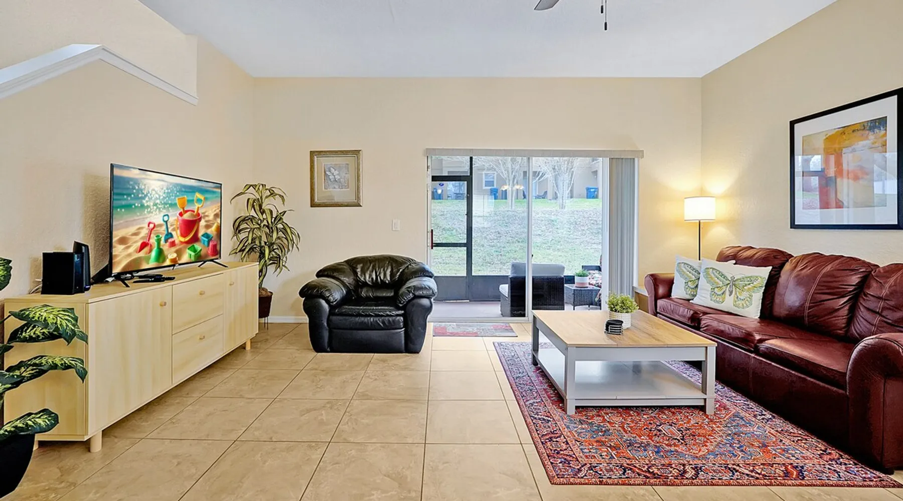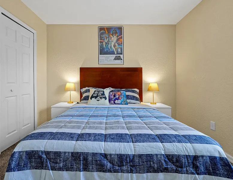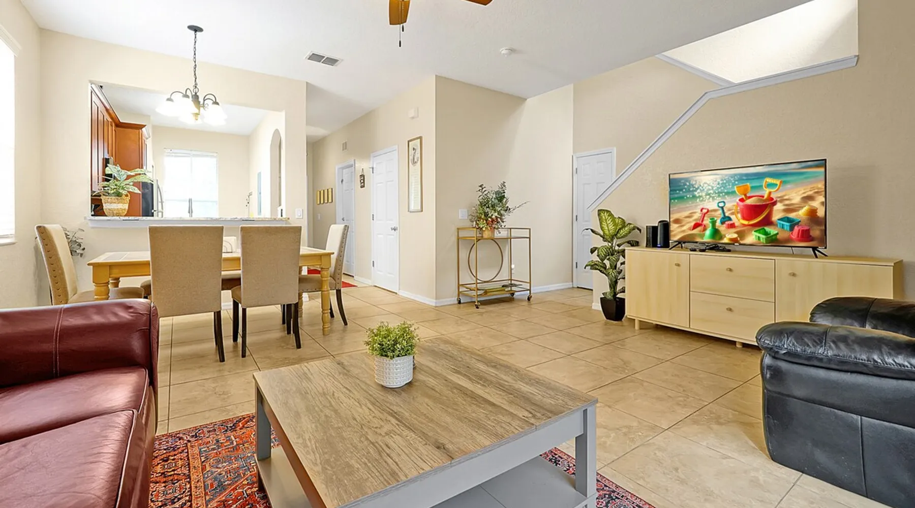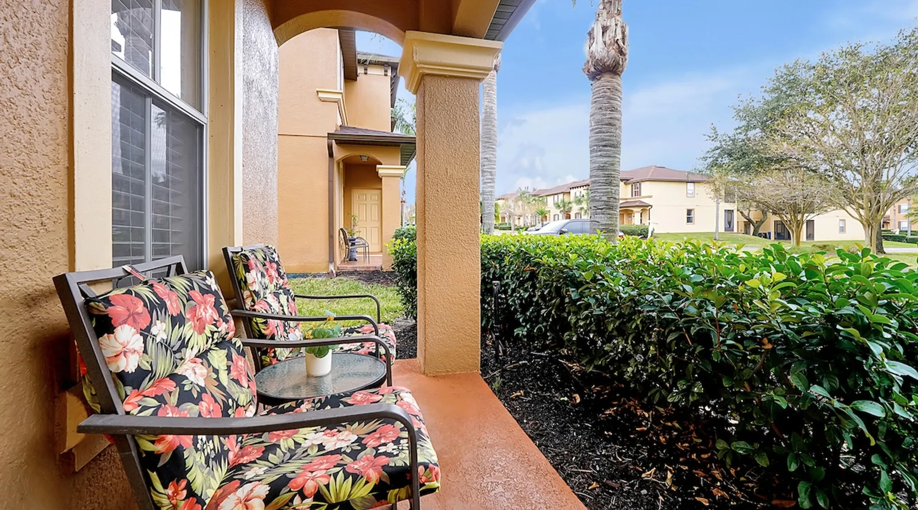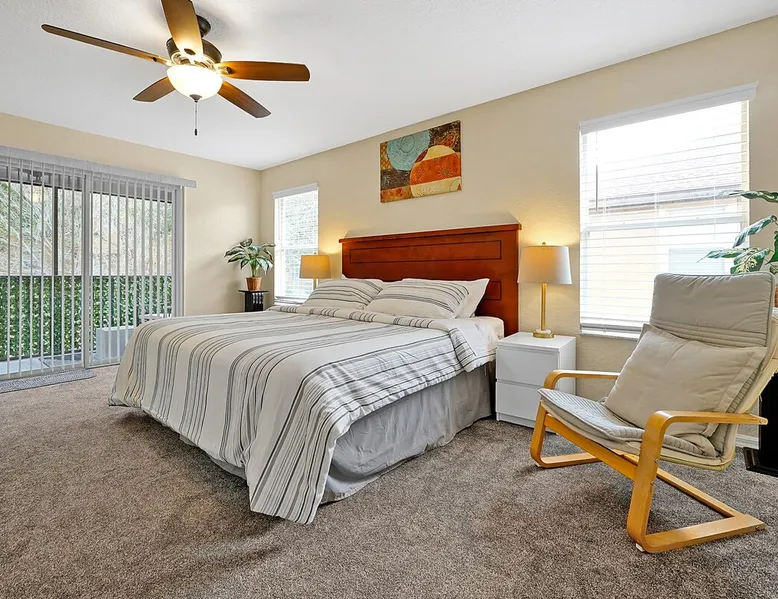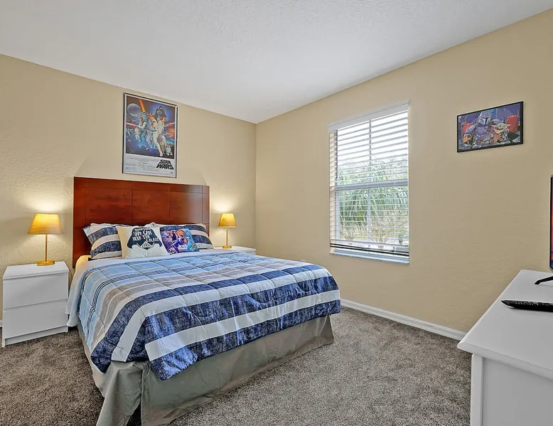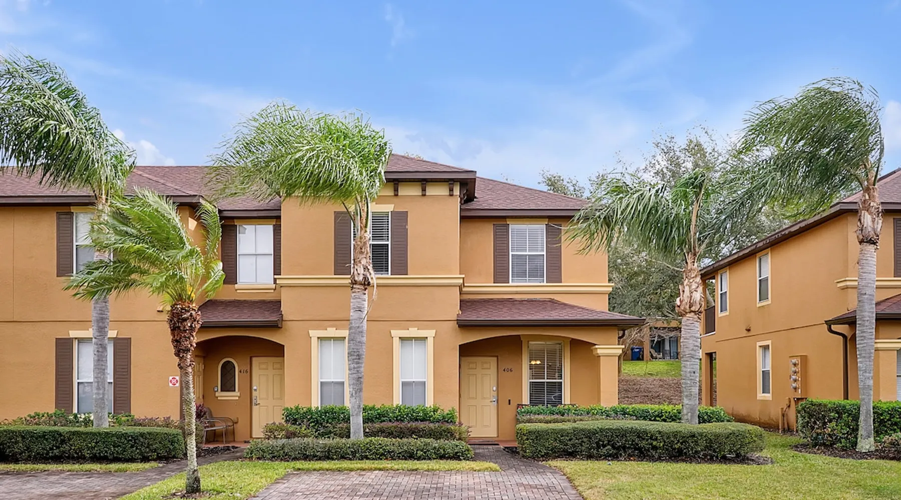 Regal Palms Resort with heated pool, lazy river, water slide, spa, gym, arcade, and on-site bar and restaurant. Just 25 minutes to Disney. Home includes fully equipped kitchen, balcony seating, spacious living areas, and ensuite bedrooms. Ideal for a comfortable family stay. The space BEDROOMS This 3-bedroom, 3-bathroom home in Regal Palms Resort is perfect for a relaxing family getaway. Enjoy access to a heated pool, lazy river, water slide, spa, gym, arcade, and on-site dining. The home features a fully equipped kitchen, balcony seating, and spacious living areas. Bedroom 1: King bed with ensuite (2nd floor) Bedroom 2: Queen bed (2nd floor) Bedroom 3: One full bed and a twin-over-twin bunk bed (2nd floor) KITCHEN, LOUNGE & DINING The living room offers a cozy and open space, with comfortable seating and direct access to the patio through sliding glass doors, allowing for natural light to brighten the area. The dining area is set just behind the living room, furnished with a simple yet functional table for shared meals. The kitchen is equipped with stainless steel appliances and granite countertops, providing a practical layout for daily cooking and basic meal prep. EXTERIOR This unit features two small outdoor seating areas—one fully screened for extra comfort and the other just outside the entrance. Both include cushioned chairs and offer a simple, cozy spot to relax with a garden view. UTILITIES This property includes essential utilities such as air conditioning, heating, and hot water for your comfort. The kitchen is fully equipped with stove, oven, dishwasher, and small appliances. Laundry facilities, Wi-Fi, and safety features like smoke and carbon monoxide detectors are provided. Security cameras and a smart lock offer added peace of mind. SECURITY For your safety, there’s a security camera at the front door monitoring the exterior. The home includes a smoke detector, carbon monoxide detector, fire extinguisher, and first aid kit. Your peace of mind is important to us. COMMUNITY DESCRIPTION Regal Palms Resort offers townhome-style accommodations with a wide array of family-friendly amenities. The highlight is a large pool area featuring a lazy river, waterslide, and hot tub. A full-service clubhouse includes a restaurant, fitness center, spa, and arcade. RESORT AMENITIES • Lazy river and waterslide • Zero-entry pool and hot tub • Clubhouse with restaurant and bar • Spa and fitness center • Game room • Playground DISTANCE TO NEARBY ATTRACTIONS • Walt Disney World Resort (20 min) – 13 miles • Universal Orlando Resort (35 min) – 26 miles • SeaWorld Orlando (30 min) – 22 miles • Disney Springs (25 min) – 16 miles • ChampionsGate Golf Club (10 min) – 5 miles • Posner Park (12 min) – 6 miles • LEGOLAND Florida (40 min) – 29 miles • Orlando Vineland Premium Outlets (30 min) – 20 miles • Old Town Kissimmee (20 min) – 14 miles • Lake Louisa State Park (30 min) – 21 miles EXTRA FEES Pet Fee: $100 / pet (However, due to severe allergies, cats are not allowed) Resort fee: $22 / day Create lifelong memories at this relaxing retreat, complete with resort-style amenities and close proximity to Orlando’s best attractions. Book your stay today and enjoy the perfect mix of relaxation and adventure! Guest access Upon your arrival, head to the clubhouse to check-in. There, you'll pay a $22 per day resort fee for your party—not per person. You'll also register your vehicle to receive a hanging tag and collect wristbands for your group. These wristbands grant access through the Sand Mine Rd. guard gate. After you've passed through, simply take a right to arrive at your townhome. Other things to note Additional Details: Pet-Friendly: Dogs welcome for $100/pet (no cats due to allergies). Christmas Tree Rental: Available for $200 (7ft tree). Pool Heating: Available through the resort for an additional fee. Starter amenities provided for your convenience, including toiletries and kitchen essentials. Enjoy the resort amenities for a $22 per day resort fee for your party