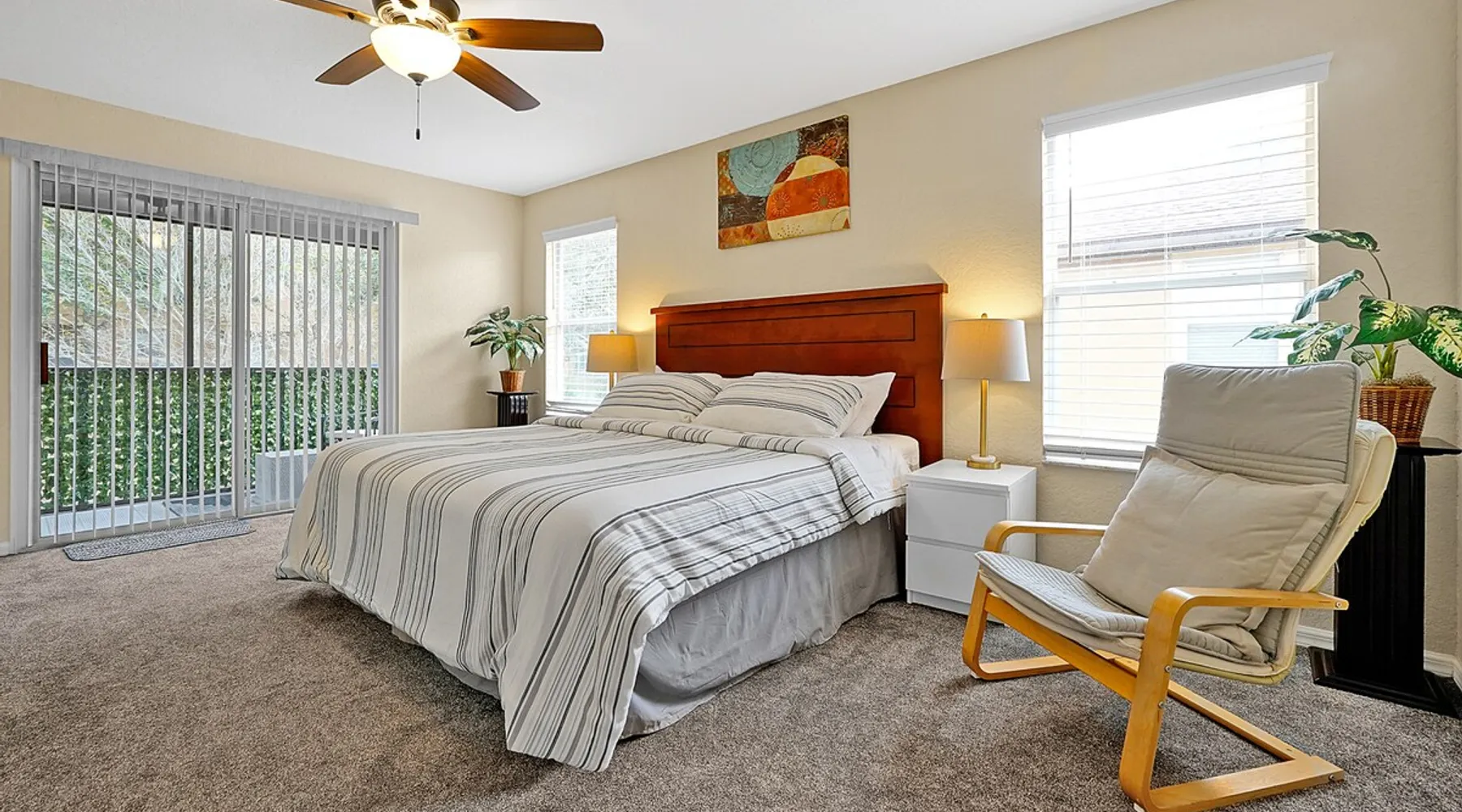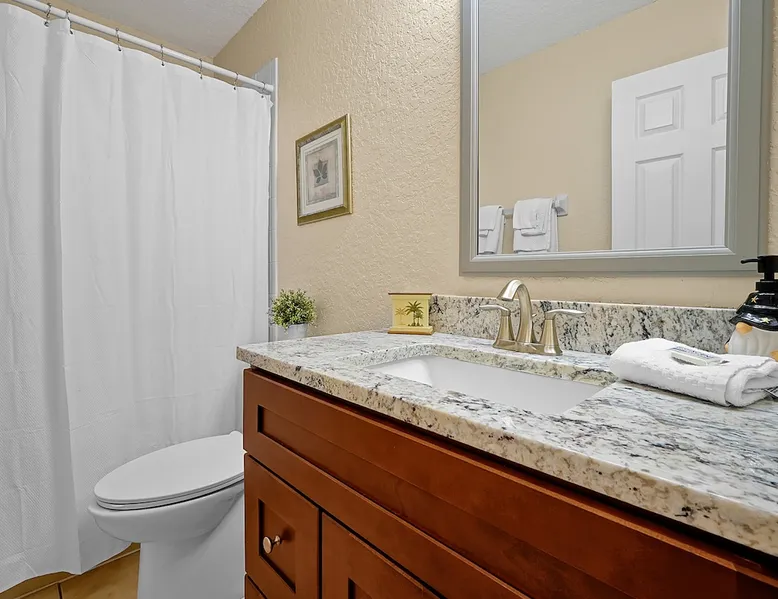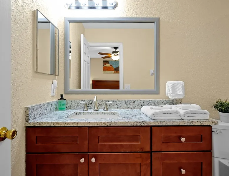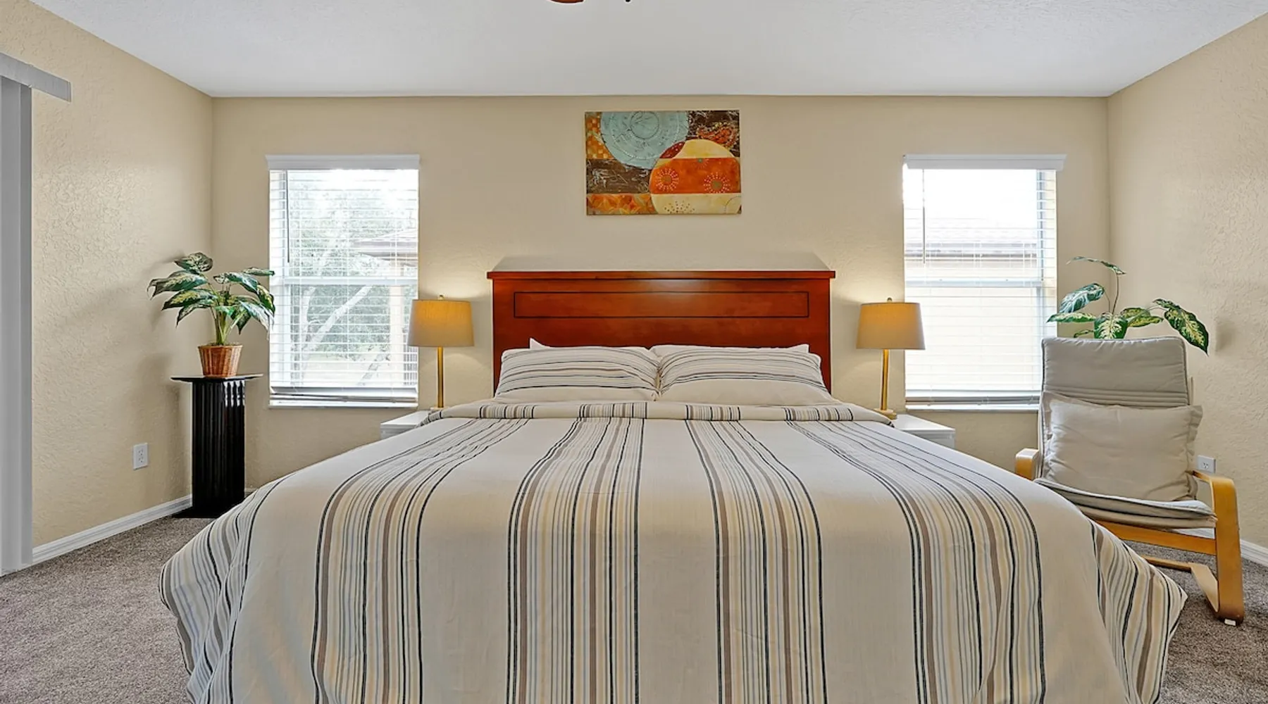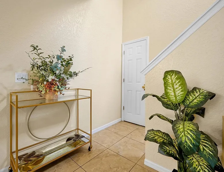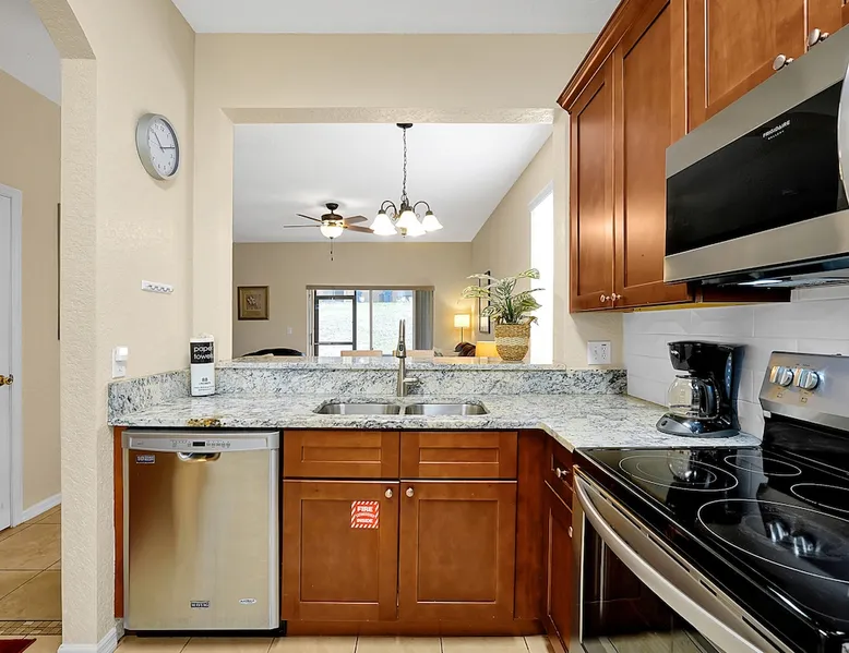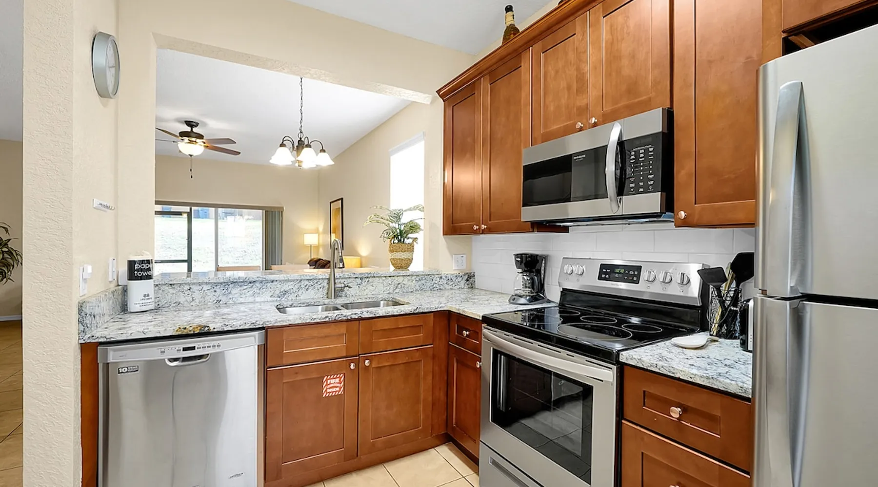 Regal Palms Resort with heated pool, lazy river, water slide, spa, gym, arcade, and on-site bar and restaurant. Just 25 minutes to Disney. Home includes fully equipped kitchen, balcony seating, spacious living areas, and ensuite bedrooms. Ideal for a comfortable family stay. The space BEDROOMS This 3-bedroom, 3-bathroom home in Regal Palms Resort is perfect for a relaxing family getaway. Enjoy access to a heated pool, lazy river, water slide, spa, gym, arcade, and on-site dining. The home features a fully equipped kitchen, balcony seating, and spacious living areas. Bedroom 1: King bed with ensuite (2nd floor) Bedroom 2: Queen bed (2nd floor) Bedroom 3: One full bed and a twin-over-twin bunk bed (2nd floor) KITCHEN, LOUNGE & DINING The living room offers a cozy and open space, with comfortable seating and direct access to the patio through sliding glass doors, allowing for natural light to brighten the area. The dining area is set just behind the living room, furnished with a simple yet functional table for shared meals. The kitchen is equipped with stainless steel appliances and granite countertops, providing a practical layout for daily cooking and basic meal prep. EXTERIOR This unit features two small outdoor seating areas—one fully screened for extra comfort and the other just outside the entrance. Both include cushioned chairs and offer a simple, cozy spot to relax with a garden view. UTILITIES This property includes essential utilities such as air conditioning, heating, and hot water for your comfort. The kitchen is fully equipped with stove, oven, dishwasher, and small appliances. Laundry facilities, Wi-Fi, and safety features like smoke and carbon monoxide detectors are provided. Security cameras and a smart lock offer added peace of mind. SECURITY For your safety, there’s a security camera at the front door monitoring the exterior. The home includes a smoke detector, carbon monoxide detector, fire extinguisher, and first aid kit. Your peace of mind is important to us. COMMUNITY DESCRIPTION Regal Palms Resort offers townhome-style accommodations with a wide array of family-friendly amenities. The highlight is a large pool area featuring a lazy river, waterslide, and hot tub. A full-service clubhouse includes a restaurant, fitness center, spa, and arcade. RESORT AMENITIES • Lazy river and waterslide • Zero-entry pool and hot tub • Clubhouse with restaurant and bar • Spa and fitness center • Game room • Playground DISTANCE TO NEARBY ATTRACTIONS • Walt Disney World Resort (20 min) – 13 miles • Universal Orlando Resort (35 min) – 26 miles • SeaWorld Orlando (30 min) – 22 miles • Disney Springs (25 min) – 16 miles • ChampionsGate Golf Club (10 min) – 5 miles • Posner Park (12 min) – 6 miles • LEGOLAND Florida (40 min) – 29 miles • Orlando Vineland Premium Outlets (30 min) – 20 miles • Old Town Kissimmee (20 min) – 14 miles • Lake Louisa State Park (30 min) – 21 miles EXTRA FEES Pet Fee: $100 / pet (However, due to severe allergies, cats are not allowed) Resort fee: $22 / day Create lifelong memories at this relaxing retreat, complete with resort-style amenities and close proximity to Orlando’s best attractions. Book your stay today and enjoy the perfect mix of relaxation and adventure! Guest access Upon your arrival, head to the clubhouse to check-in. There, you'll pay a $22 per day resort fee for your party—not per person. You'll also register your vehicle to receive a hanging tag and collect wristbands for your group. These wristbands grant access through the Sand Mine Rd. guard gate. After you've passed through, simply take a right to arrive at your townhome. Other things to note Additional Details: Pet-Friendly: Dogs welcome for $100/pet (no cats due to allergies). Christmas Tree Rental: Available for $200 (7ft tree). Pool Heating: Available through the resort for an additional fee. Starter amenities provided for your convenience, including toiletries and kitchen essentials. Enjoy the resort amenities for a $22 per day resort fee for your party