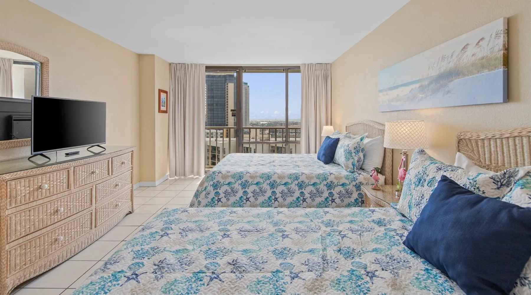 Stunning beachfront condo boasts incredible vistas from every room, showcasing the vibrant turquoise waters of the Gulf of Mexico. Situated on the 14th floor, this unit provides a fantastic perspective of South Padre Island's beautiful beaches and the lush tropical grounds of Saida Condominiums. With 2BD/2BA, the spacious living area is elegantly adorned with island-inspired decor, creating a perfect coastal retreat. Rental agreement completion is mandatory. OUR REQUIREMENTS IN OUR HOUSE RULES. The space 2-bedrooms / 2-baths Beachfront - Situated on the 14th floor, enjoy fantastic vistas of South Padre Island's sandy beaches and the lush grounds of Saida Condominiums. - The spacious living area is elegantly decorated with island-inspired decor, creating a welcoming atmosphere. - Dine with a view in the dining area, perfect for enjoying meals while gazing at the beach. - The fully equipped kitchen comes with all the essentials, including pots, pans, and an ice maker in the refrigerator. - The bar area provides three extra seats for guests to relax and enjoy their drinks. - The master bedroom features a generous layout, a cozy king-size bed, a large bathroom, and a love seat for added comfort. - The guest room is equipped with two queen beds, a full bathroom, a mini fridge, a microwave, and a coffee maker for convenience. Guest access Guests will access with a smart programmable keypad. The code will be sent via a separate email and text within 48-24 hours prior to arrival. Other things to note IMPORTANT: Upon booking our property, you will receive a request to complete and sign our rental agreement. The principal booker must provide specific information required by our Safely insurance. Please note that a light background check will be conducted by Safely on behalf of our beach real estate investment. You are booking a private beach home. As much as we like to please your every need, we do not work as hotels do. We are not a 24/7 service. Any overnight requests, other than REAL emergencies, will be look after the next day. If there is an emergency that threatens a persons life, please call 911. VAYK GEAR is a premier BEACH Equipment Rental Company offering top-of-the-line gear for your perfect beach day. You may receive an email from them regarding a credit from Blue Ocean Vacation Rentals for the rental of your preferred beach equipment. Visit their website to select from a wide range of high-quality beach gear to make the most of your beach getaway. Note: The guard at the entrance of the resort will charge $25/pp plus tax, ages 10-32, for the use of wristbands during the month of March "Spring Break" and Holy Week. The owners of Saida Royale 145 welcome you to their beach home! While staying here, we ask that you follow a few requests that will make everyone’s stay more enjoyable and keep the property looking good year after year. 1. Parking ~ is limited to 1 vehicle. Vehicles must be licensed, operable and registered to the occupants. Unauthorized vehicles will be towed at the owners’ expense. 2. Occupancy ~ Maximum capacity per unit is than 8 guests. There must be at least one adult 21 years of age or older, registered, present and residing in the unit through the duration of the tenancy. 3. Pets ~ We allow 1 dog maximum with a $105/dog cleaning fee. The knowledge or trace of unauthorized pets will mean a fine of $400. 4. Noise ~ Loud noise of any sort; music, loud talking, boom boxes, etc. is not allowed. 5. Garbage and Tidiness ~ Garbage should all be placed outside of your unit from 8am-9am daily. After 9am the trash should be deposited directly into the dumpsters on the sides of the building. Please DO NOT place trash at your door after hours due to local wildlife. Please dispose of cigarette butts, cans, candy wrappers, trash on the ground. We work hard to make certain the property looks good when you check in. Please help us keep it that way by picking up any litter before you leave. 6. Pool ~ Please wash ALL sand from your body BEFORE entering our pool. The pool equipment cannot handle sand from the beach and causes damage and equipment failure. Please DO NOT leave your children unattended. Our pool water gets HOT during the summer months, the only heater ON during the summer months is the good old SUN. 7. BBQ ~ We do not provide a grill on this property. 8. Once booked, we will send a custom Rental Agreement for you to complete and send back to us. Without this agreement we will not be able to host you. Blue Ocean Vacation Rentals provides the disposable amenities necessary to get your vacation off to a comfortable start. These amenities include 1 set of hotel size soaps and shampoos per bathroom, 2 garbage bags, 1 roll of paper towel, 2 rolls of toilet paper per bathroom, 1 dish soap, 1 dish sponge, 4-6 coffee pods and and a small amount of laundry detergent. We do not provide unlimited disposable amenities. It is your responsibility to review what is included in the property and stock with whatever else may be needed for the duration of your stay. Towels and linens must only be used for their intended purpose. Do not stain them with food, grease or any other substance. Do not use towels to clean up any mess. Stained towels/linens will be charged. Do not hang towels from the balcony or windows. A $100 fine may be applied if you break this rule. Subletting not allowed. Note: The owners of this property will NOT allow Spring Break activity on the premises. Check in is easy and available 24 hours a day with a smart lock on the entrance door. The lock box code will be provided to the guest about 48-24 hours before arrival. Hosts will be available for check-in assistance up until 10 pm, we ask that guests arriving late please let us know via text. Service Animals need to be with the person they service 24/7. Service Animals cannot be left alone in the property. A service animal left alone in the property is not a service animal and will be penalized with a $400 fee. "Early" ch