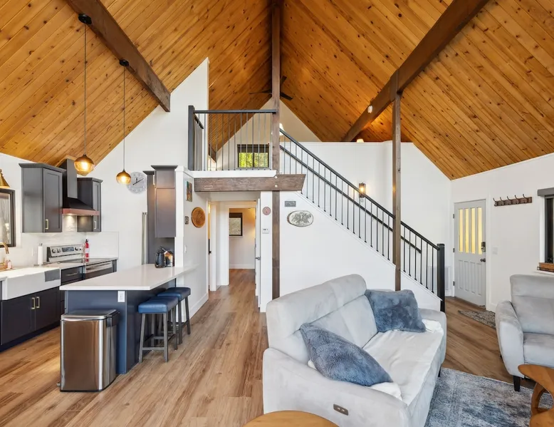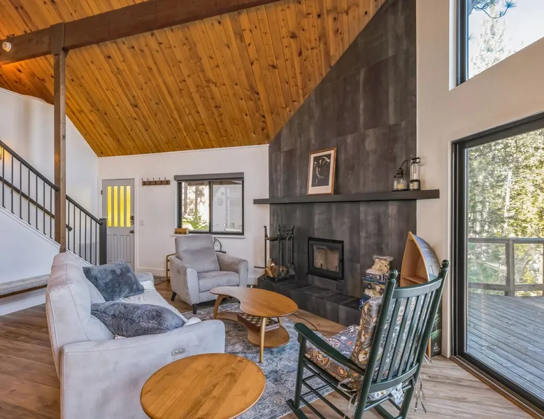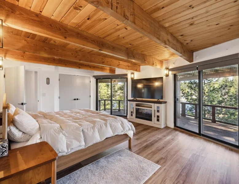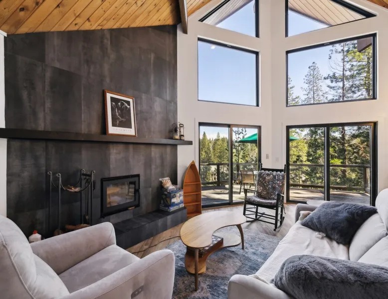 3BD + Loft | 2BA | 3 Levels | Sleeps 8 | Lakefront Cabin | No Pets Allowed Welcome to Golden Peak Cabin, a beautifully renovated lakefront retreat in Pine Mountain Lake. Nestled in a quiet and peaceful setting, this three-level home offers stunning lake views, a private dock, and modern amenities for a comfortable and relaxing getaway. The space FEATURES & AMENITIES This cabin features high vaulted ceilings, a cozy wood-burning fireplace, and an open-beam rustic design while offering modern comforts like central A/C and gas heating. TVs in Master Bedroom and Bedroom 1 Washer/Dryer (located downstairs) High-quality mattresses for a restful sleep Outdoor patio, dining area, and BBQ grill ( propane not includedbut there is a tank that can be refilled at the local market ) Private dock with deep water access (Note: 100 stairs down to the dock) Kayaks included for guest use DINING & SEATING The kitchen is fully equipped with: Refrigerator, freezer, microwave, dishwasher Coffee maker, electric kettle, toaster Cookware, utensils, and dining table seating BEDROOMS & SLEEPING ARRANGEMENTS Private Master Bedroom (1st Floor): King bed Bedroom 1 (Second floor / Main Floor): Full bed Bedroom 2 (Second floor / Main Floor): Queen bed Open Loft (Upper Level): Two Queen beds The home comfortably sleeps up to 8 guests in beds. BATHROOMS Full Bathroom (Main Floor): Shower/Tub Combo, His & Her Sinks, Hair Dryer Full Bathroom (Downstairs): Standalone Shower BOATS & WATER ACTIVITIES Guests have access to kayaks to enjoy the lake. Life jackets are required and provided. Private dock with deep water access Expansive lake views from all levels Swimming permitted up to 30 feet from the dock (per Pine Mountain Lake regulations) IMPORTANT POLICIES & HOUSE RULES No pets allowed. No smoking, candles, outdoor fires, firearms, or fireworks permitted on the property. Propane for the gas BBQ is not provided but there is a tank that can be refilled at the local market Golden Peak Cabin has multiple stairways, including 100 stairs leading to the dock. Guests must turn off A/C and lights upon checkout and place trash in the designated bin. PARKING Driveway parking for up to 4 vehicles. GATED COMMUNITY ACCESS PERMITS Pine Mountain Lake HOA requires a one-time access permit fee of $50 per vehicle to enter the gated community. This fee is non-refundable and paid directly to the HOA. Stays over 8 nights require additional fees. ADDITIONAL NOTES Golden Peak Cabin is located in the exclusive Pine Mountain Lake community, offering access to amenities such as: Marina, boat launch, seasonal concession & rentals 3 beaches with swim areas 18-hole public golf course Tennis & pickleball courts Horse stables & walking trails Just 35 miles from Yosemite National Park, this home is perfect for outdoor lovers and those seeking a peaceful retreat. VISITING YOSEMITE IN 2025? PLAN AHEAD! Yosemite requires reservations on peak days for personal vehicle entry. We can guide you on how to secure one! If you can’t get a reservation, no worries—daily shuttles leave from Pine Mountain Lake. Message us after booking for help Book your stay at Golden Peak Cabin and experience lakefront tranquility!