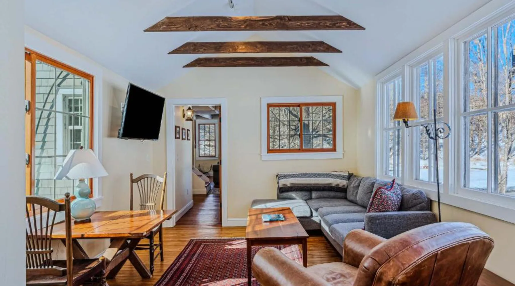 Spacious Holiday Home in Woodstock: Historic Charm Located On the River - Rustic Chic offers a spacious holiday home in Woodstock. The property features two bedrooms and a bathroom, providing ample space for guests. Essential Facilities: Guests can enjoy a beautiful garden and free WiFi throughout the property. Free on-site parking is available, ensuring convenience for all visitors. Comfortable Amenities: The holiday home includes air-conditioning, a washing machine, and a fully equipped kitchen with modern appliances. Additional amenities include a fireplace, TV, and outdoor furniture. Local Attractions: Located 12 mi from Lebanon Municipal Airport, the property is close to Killington Mountain (27 mi) and Mount Tom (4.3 mi). Other nearby attractions include Dartmouth College (16 mi) and Quechee Gorge (8.7 mi). This apartment offers a fireplace. Featuring a private entrance, this spacious apartment also consists of 2 separate bedrooms and 1 bathroom with a bath and a hairdryer. Meals can be prepared in the kitchen, which comes with a stovetop, a refrigerator, a dishwasher and kitchenware. The air-conditioned apartment provides a TV, a washing machine, a tea and coffee maker, a wardrobe as well as garden views. The unit offers 3 beds.