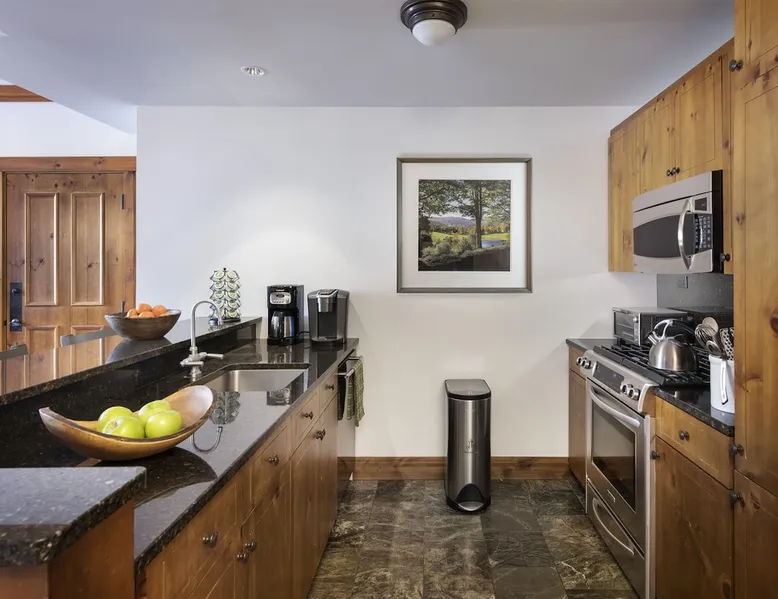 Choose Steps Away - Fabulous stay featuring amenities from Restoration Hardware, Mitchell Gold+Bob Williams, Pottery Barn, Crate & Barrel - Gourmet kitchen, 72" living room TV, full-sized washer & dryer - Dreamy view of Mt. Mansfield and the Over Easy gondola - Pet & smoke-free policy The pampering starts as soon as you pull up to the five-star lodge, with everything you need just “Steps Away”. The friendly bellmen greet you, taking your equipment to the ski valet and your luggage to the condo The space When you vacation at Steps Away, just worry about getting to the Lodge at Spruce Peak and our team will take care of the rest! The pampering starts as soon as you pull up to the five-star lodge, with everything you need just “Steps Away”. The friendly bellmen greet you at your car, taking your equipment to the ski valet and your luggage to the condo. Valet parking is available for $35/night, or you can self-park your first car for free. Each morning you’re greeted with gorgeous views of Mount Mansfield and glimpses of Smugglers Notch. After you fuel up with breakfast in our fully-equipped gourmet kitchen, head down to the ski valet where you’re just steps from the Over Easy gondola and Spruce Peak chairlifts. Don’t feel like cooking? Call room service or visit one of the many on-site dining venues. Steps Away offers plenty of room for everyone to get a good night's sleep with three bedrooms and three bathrooms. The first bedroom has a king bed and full bath with a separate tub and shower, the second bedroom features two queens and a full bath with a separate tub and shower. If the kids (or you!) need a little break from the hustle and bustle of the base lodge, sneak back to our nearby condo for some rest before getting back on the mountain for more skiing and snowboarding. The Stowe area also offers other snow-related activities like ice skating, snowshoeing, sleigh rides, dog sledding, and snowmobiling. Thaw out and have fun in the heated outdoor pool and hot tub when you're not on the slopes. Non-skiers have plenty to do too. They can take in the high-end retail stores, get pampered at the world-class spa, or visit the fitness center for a yoga class. Just down Mountain Road, there are even more terrific shopping and luncheon venues. When it's time to come in for the day, snuggle up in front of the fireplace and our huge 72” television in the living room to host your own movie night. Rather go out for the night? Leave the little ones in good hands with "kids night out" where they'll have their own fun while you head out to the Pub or have a romantic dinner at the on-premise Tipsy Trout or Alpine Hall restaurants. The fun at Steps Away doesn’t stop when the snow melts. The summer months are a wonderful time to enjoy sailing on nearby Lake Champlain or remaining on the resort, where you'll find farm-to-table dinners, golf, hiking and a rock-climbing wall. There's even a farmers' market on-site every Friday! Throughout the year, enjoy local bands and interesting musicians at the outdoor Whistle Pig Pavilion or see popular entertainers at the Spruce Peak Arts Center. Both venues are a 5-minute walk from our unit. Other Stowe-area activities include terrific Mountain Road restaurants, cycling, movies, mini-golf, bowling, and fly fishing. No matter what time of the year you visit, Steps Away will delight and relax you with incredible amenities just steps from your doorstep! Guest access Guests have access to the entire condo