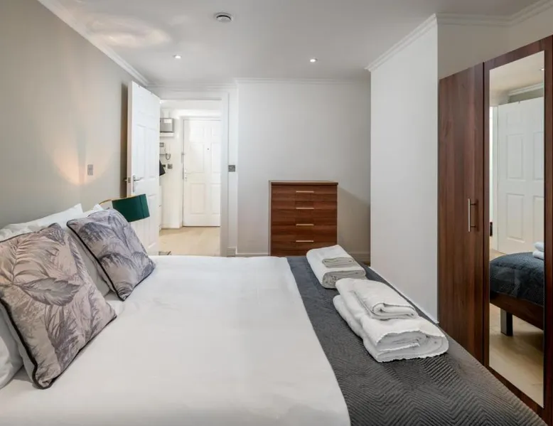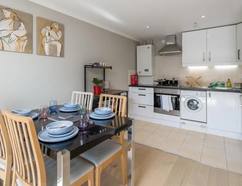 Modern Comforts: The recently renovated apartment in London offers a washing machine, fully equipped kitchen, and a hairdryer. Guests can enjoy a elevator for easy access to the property. Spacious Living: Featuring one bedroom and one bathroom, the apartment provides ample space for relaxation and comfort. Convenient Location: Located 11 mi from London Heathrow Airport, the property is a short walk from Olympia Exhibition Center (17 minutes) and Eventim Apollo (1 mi). Nearby attractions include Stamford Bridge (1.4 mi) and the Natural History Museum (2.1 mi). Local Activities: Guests can enjoy water sports and boating in the surrounding area, enhancing their London experience. This apartment comes with 1 bedroom, a kitchen and 1 bathroom with a hairdryer. The apartment's kitchen is available for cooking and storing food. The apartment features a washing machine and heating. The unit has 2 beds.