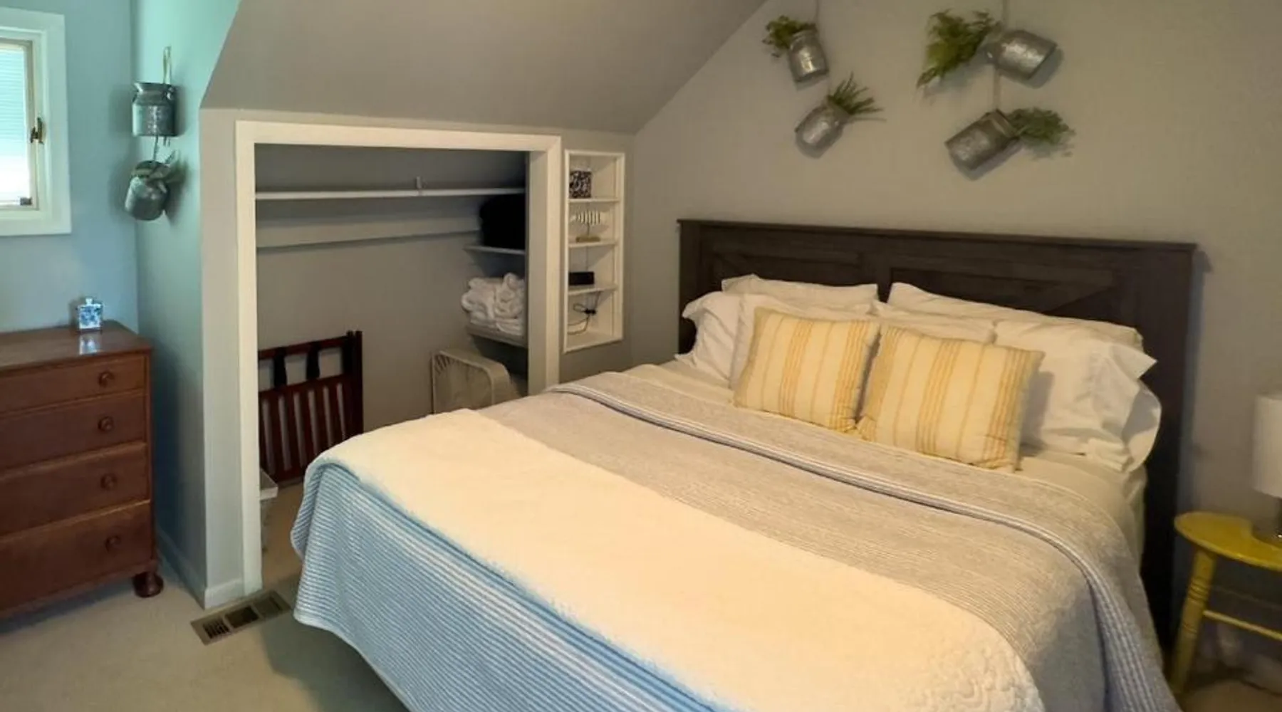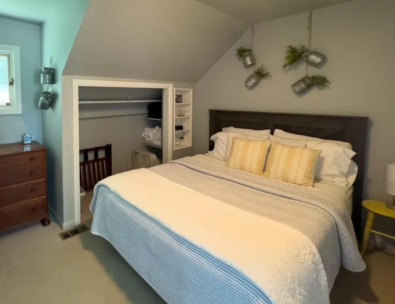 Comfortable Living: Lakefront Cottage in Colchester offers a holiday home with one bedroom and a living room. The property features a terrace, balcony, and garden views. Modern Amenities: Guests enjoy free WiFi, air-conditioning, and a fully equipped kitchen with a dishwasher and microwave. Additional amenities include a washing machine, TV, and free toiletries. Pet Friendly: The cottage welcomes pets, making it ideal for travelers with animals. Convenient Location: Located 7.5 mi from Burlington International Airport, the property is near attractions such as the University of Vermont (6.2 mi) and Ethan Allen Homestead (5.6 mi). The fully equipped kitchen features a stovetop, a refrigerator, a dishwasher and kitchenware. The air-conditioned holiday home provides a flat-screen TV, a washing machine, a tea and coffee maker, a seating area as well as lake views. The unit offers 2 beds.