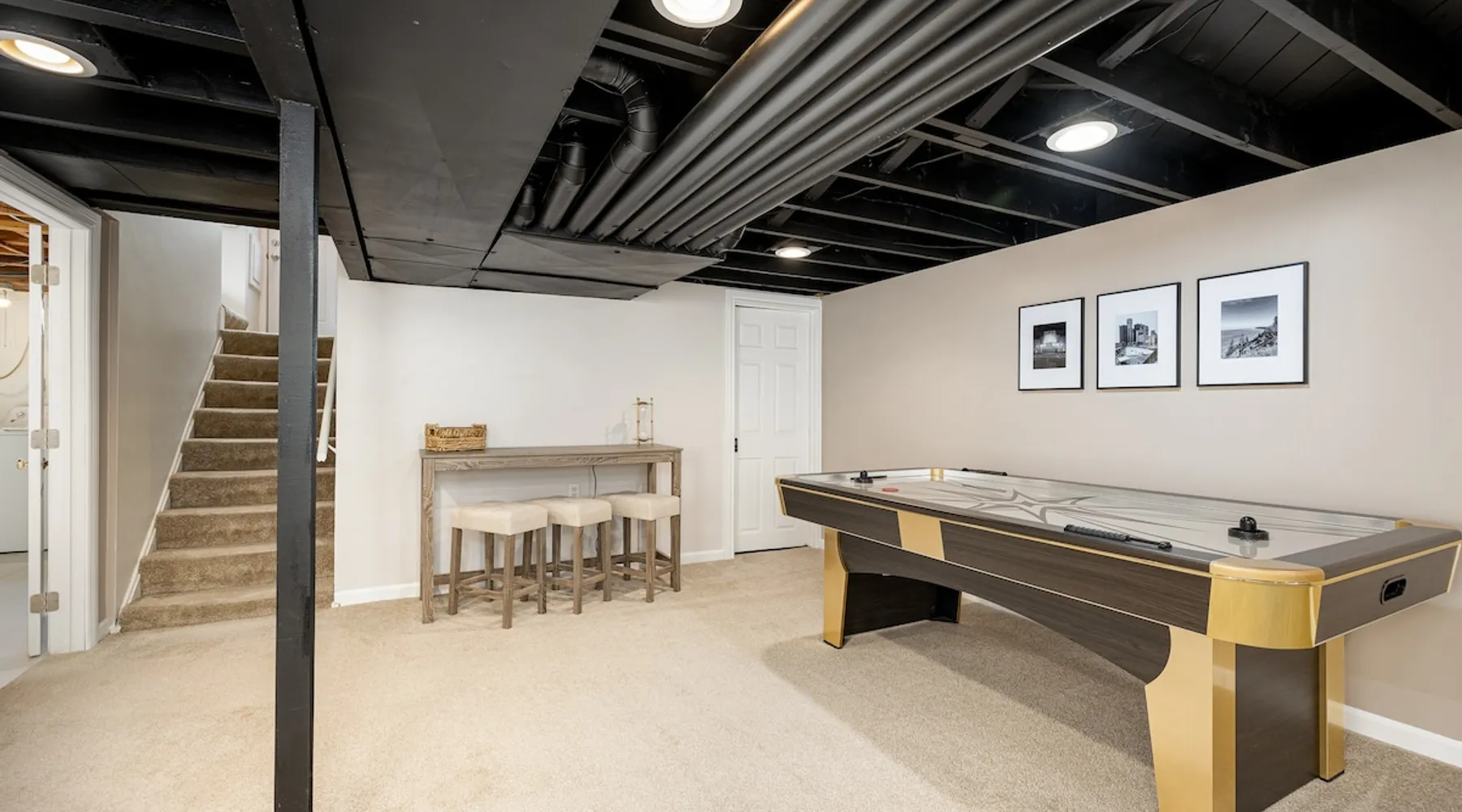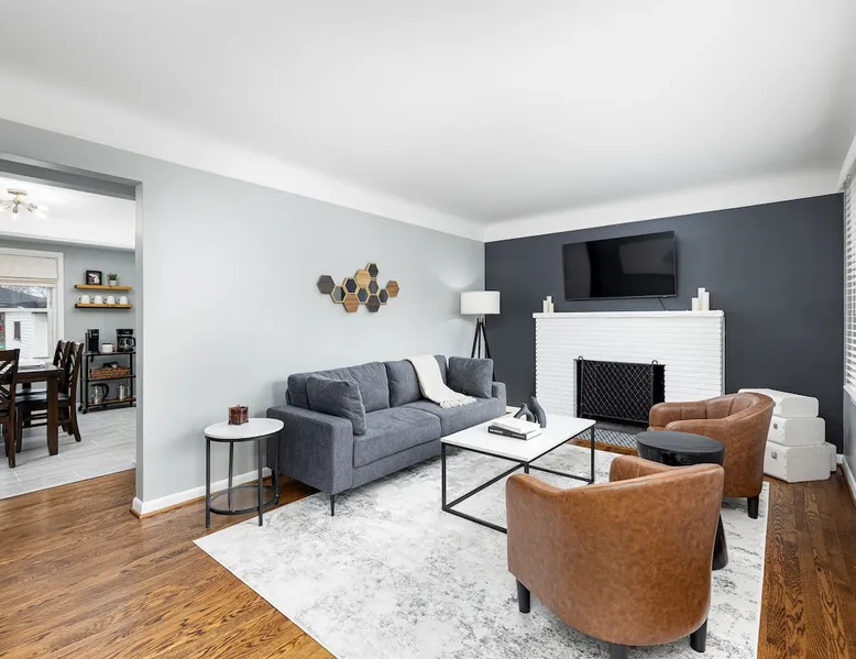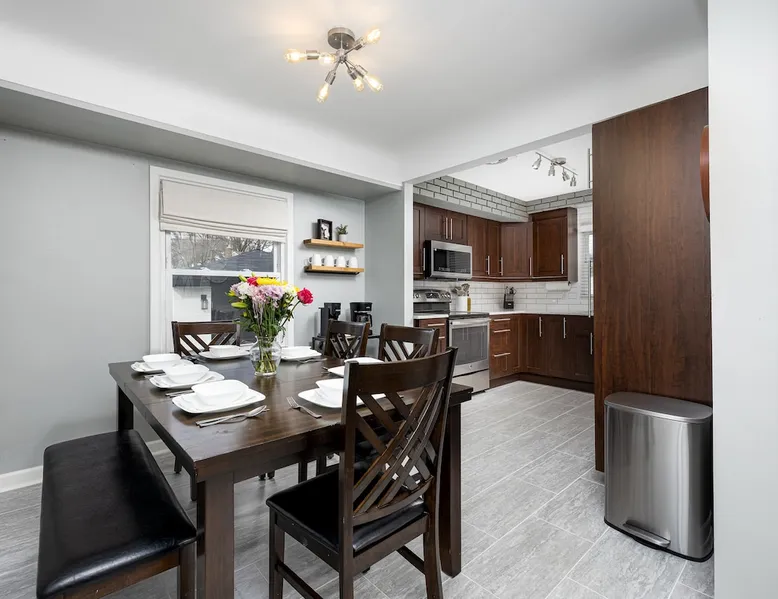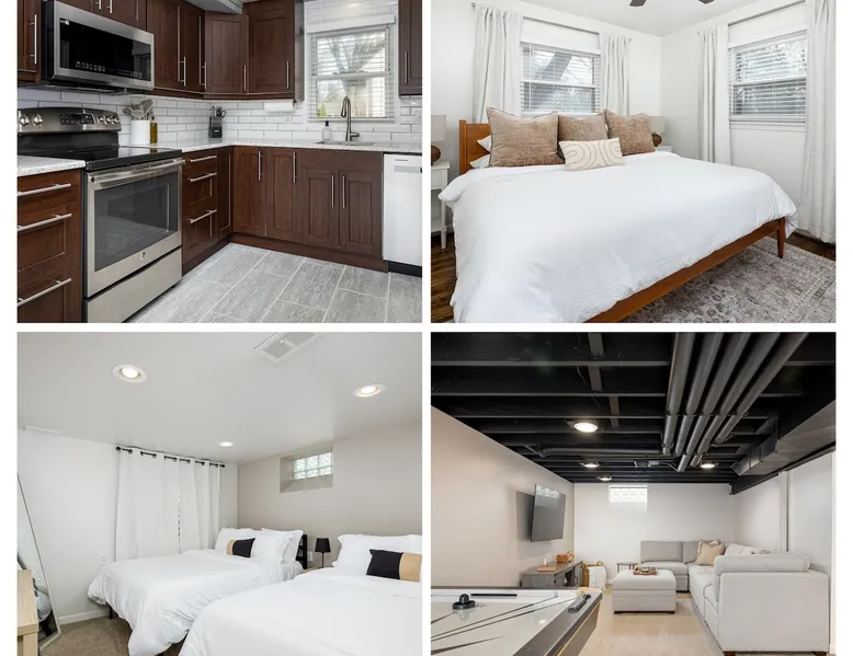 Welcome to our 4-bedroom, 2-bathroom home in Plymouth! Perfect for families and groups, this beautifully designed space offers a fully stocked kitchen, a coffee bar, and an entertainment-packed lower level. Just 1 mile from downtown Plymouth and local attractions, it’s the ideal spot to relax and explore! The space Our home is a fantastic place to visit year-round. Please reach out for personalized recommendations or any questions during your stay. We’re happy to help! Key Features: ▪️4 Bedrooms with memory foam mattresses (1 King, 2 Queens, 2 Full beds) ▪️2 Full Bathrooms ▪️Fully Stocked Kitchen with stainless steel appliances ▪️Cozy Lower-Level Hangout: Finished basement with a large sectional couch, TV, gaming options, and a bar area ▪️Entertainment for All: Air hockey, giant Connect 4, board games, and puzzles ▪️Dedicated Workspace ▪️In-unit Washer + Dryer ▪️High-speed Wifi + Flat-Screen TVs ▪️Prime Location: 1-mile walk to downtown Plymouth, near grocery stores and restaurants Living Room: 55-inch TV for streaming Natural light from large windows Kitchen: Fully stocked with cookware and essentials New stainless steel appliances Coffee - Keurig, Mr. Coffee drip coffee maker, French press Cocktail mixology kit Bedrooms: All bedrooms offer plush bedding and blackout curtains or blinds Main Floor: 1 King Bed + 2 Queen Beds Basement: 2 Full Beds Bathrooms: Main Floor: Full bath with tub & shower combo Basement: Full bath with stand-up shower Entertainment & Fun: Flat-Screen TVs Air Hockey, Giant Connect-4, and board games for friendly competition Outdoor Space: Relax in the backyard on our Adirondack chairs or patio set and enjoy the fresh air Additional Amenities: Dedicated Workspace Washer & Dryer Parking: Driveway parking for up to 4 cars Guest Access: Easy self-check-in with a private code for the front door keypad Full access to the entire home and backyard Note: The utility closet in the basement and garage are locked and not accessible during your stay Other Things to Note: External Security Cameras (facing outward, active during your stay) The fireplace is not a working fireplace, so it is not available for use Location Highlights: 📍1 mile from Downtown Plymouth 💒 ⛳️ 3.7 miles from Saint John’s Resort 🏕️ 8.7 miles from Maybury State Park ✈️ 17 miles from Detroit Metro Airport 〽️ 18 miles from Ann Arbor 🏙️ 27 miles from Detroit Guest access Guests will have access to the whole house and backyard. The utility closet in the basement and garage are locked and not accessible during your stay.