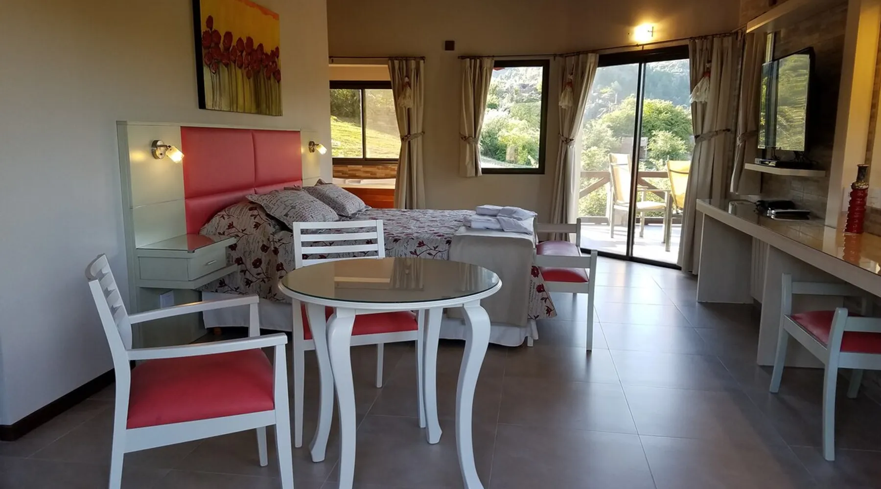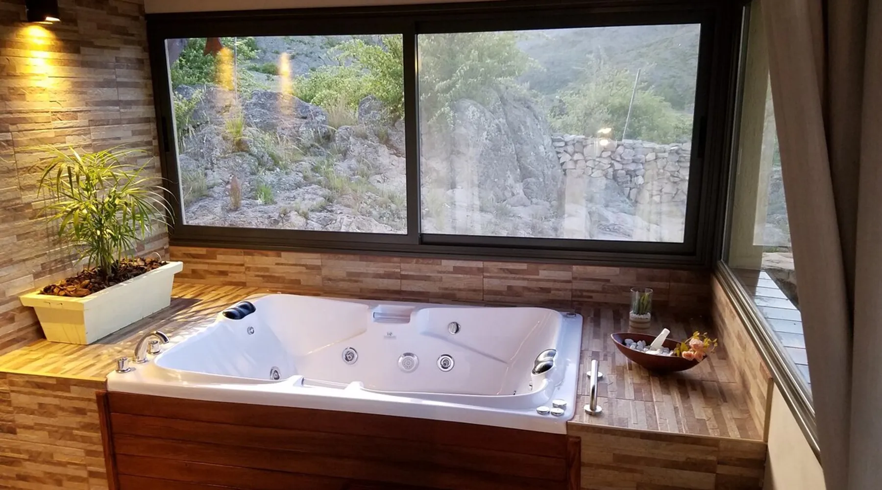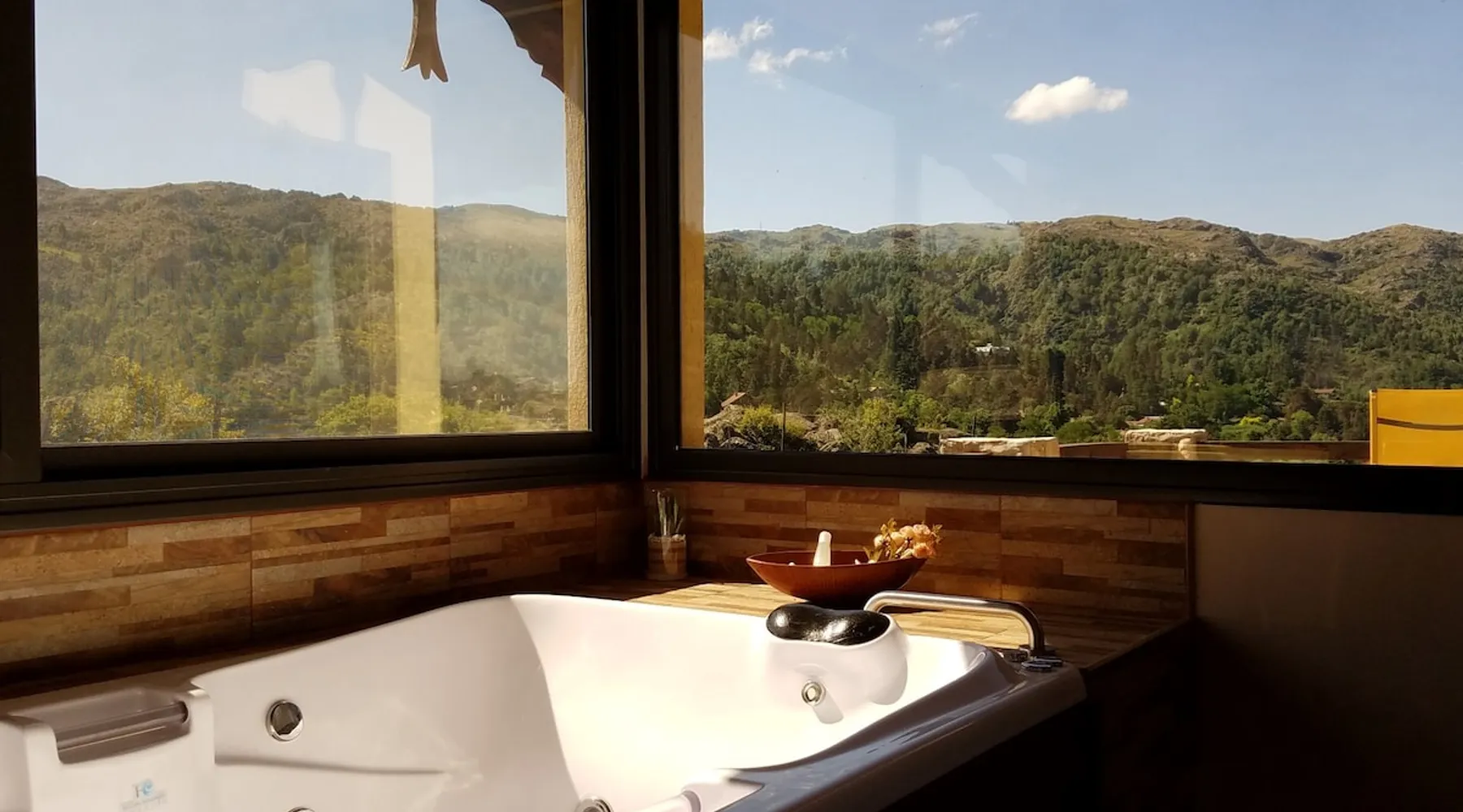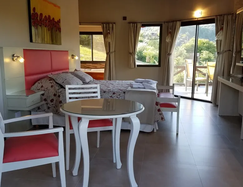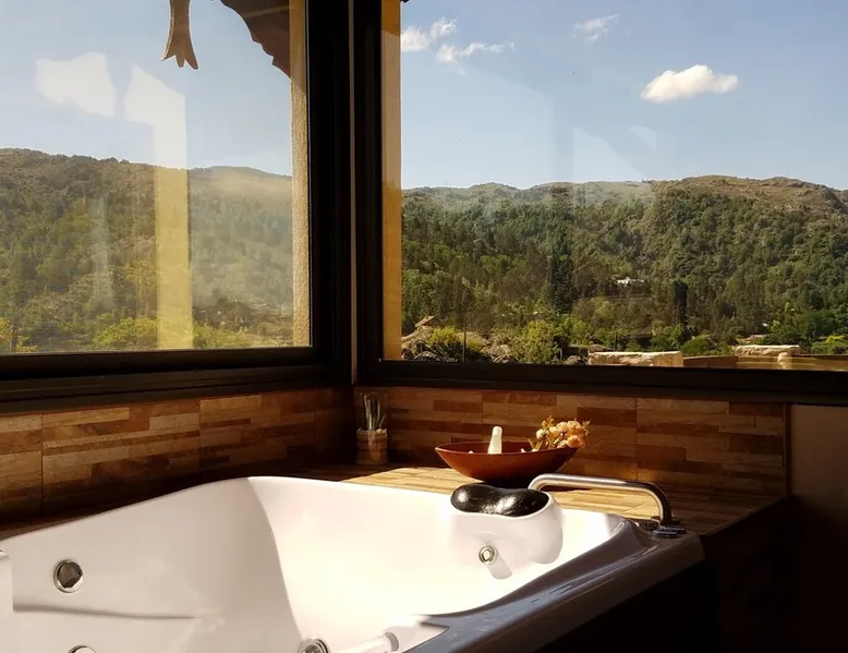 Aires Serranos is a complex of rooms in Suite for exclusive use for couples. We are located on the main access to the Summit 300 meters from the center of the village. The space All suites feature a Jacuzzi for two people, 42"LED TV with Directv HD, DvD with more than 30 movies inside the suite, desk, safe, 2 clothes storage, separate kitchen with gas stove 4 burners, refrigerator, microwave, electric jug, hot/cold air conditioning, compartmentalized bathroom with shower cabinet with hydromassage column, robes, hairdryer, central heating by radiators, individual grill and a balcony with stunning panoramic views. Guest access Breakfast included, covered carport included, free WiFi, access to open pool with solarium.