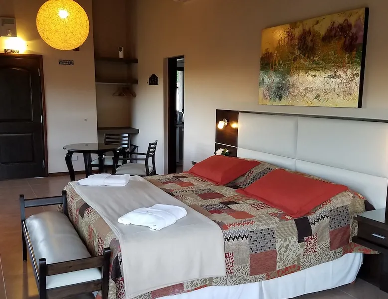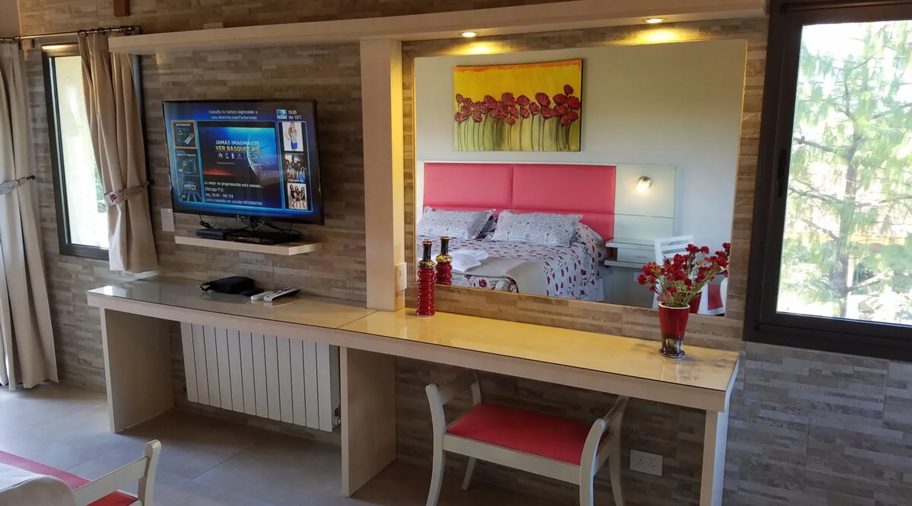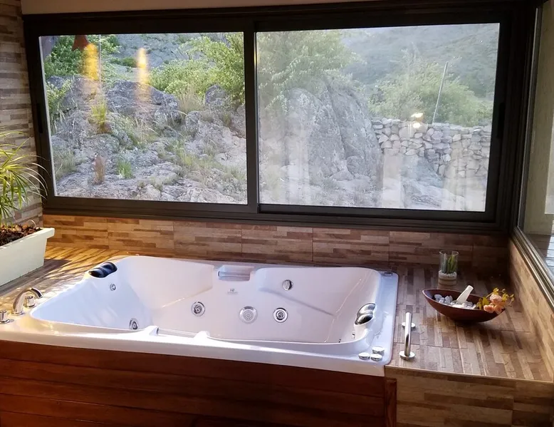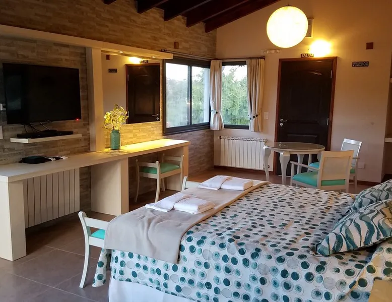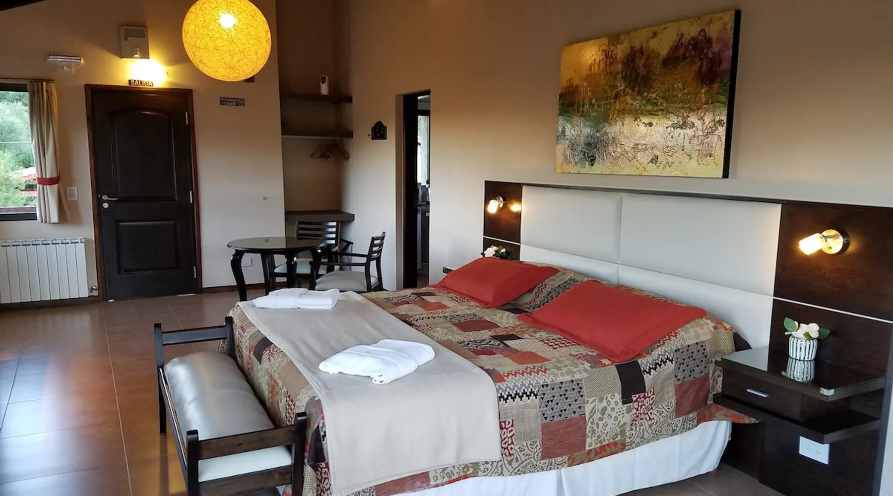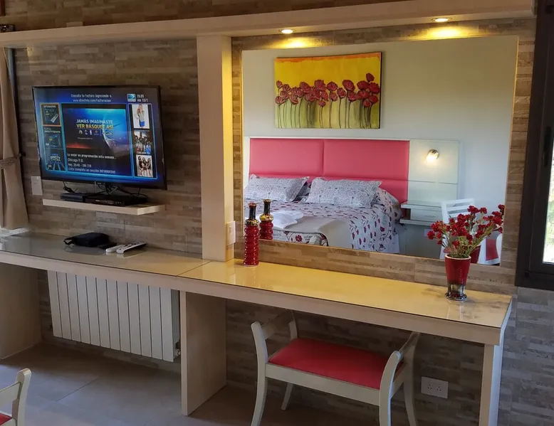 Aires Serranos is a complex of rooms in Suite for exclusive use for couples. We are located on the main access to the Summit 300 meters from the center of the village. The space All suites feature a Jacuzzi for two people, 42"LED TV with Directv HD, DvD with more than 30 movies inside the suite, desk, safe, 2 clothes storage, separate kitchen with gas stove 4 burners, refrigerator, microwave, electric jug, hot/cold air conditioning, compartmentalized bathroom with shower cabinet with hydromassage column, robes, hairdryer, central heating by radiators, individual grill and a balcony with stunning panoramic views. Guest access Breakfast included, covered carport included, free WiFi, access to open pool with solarium.