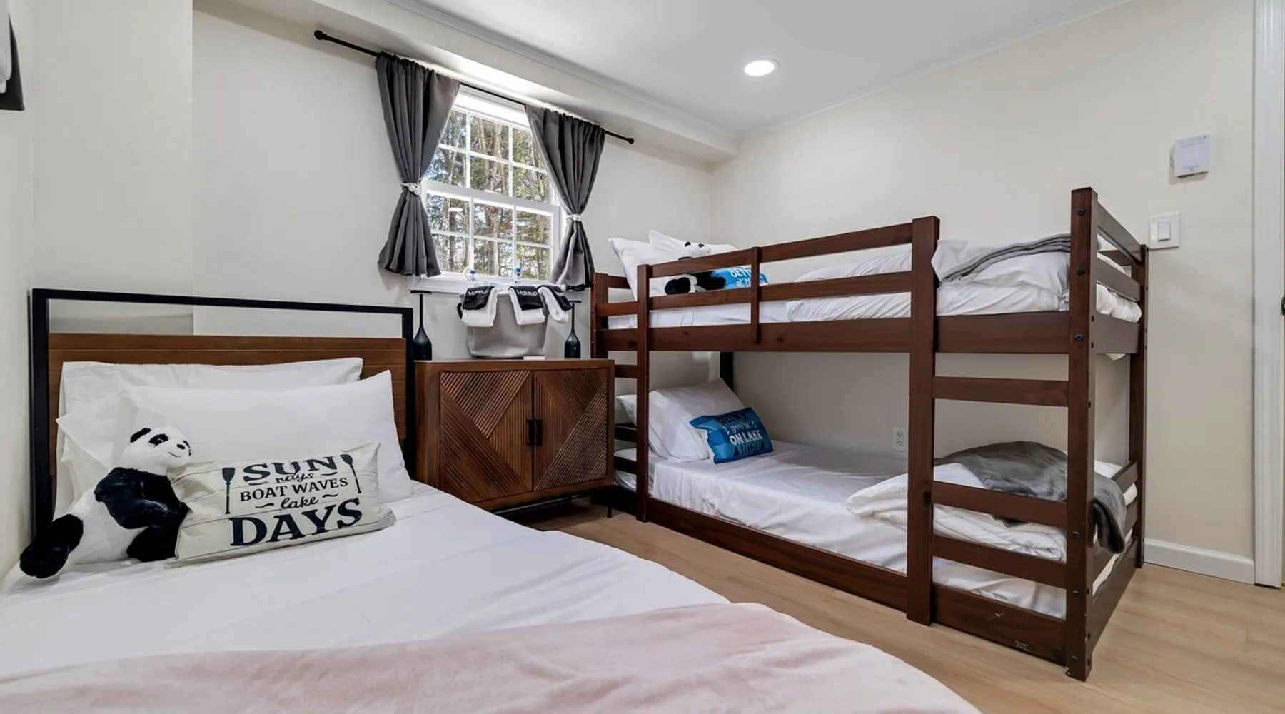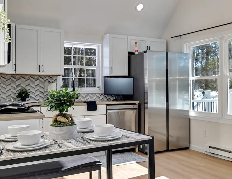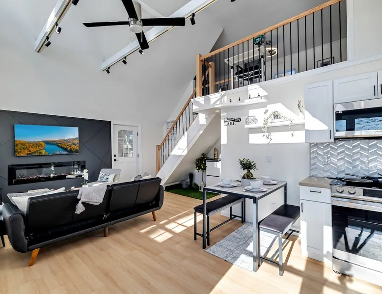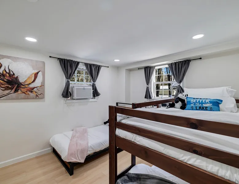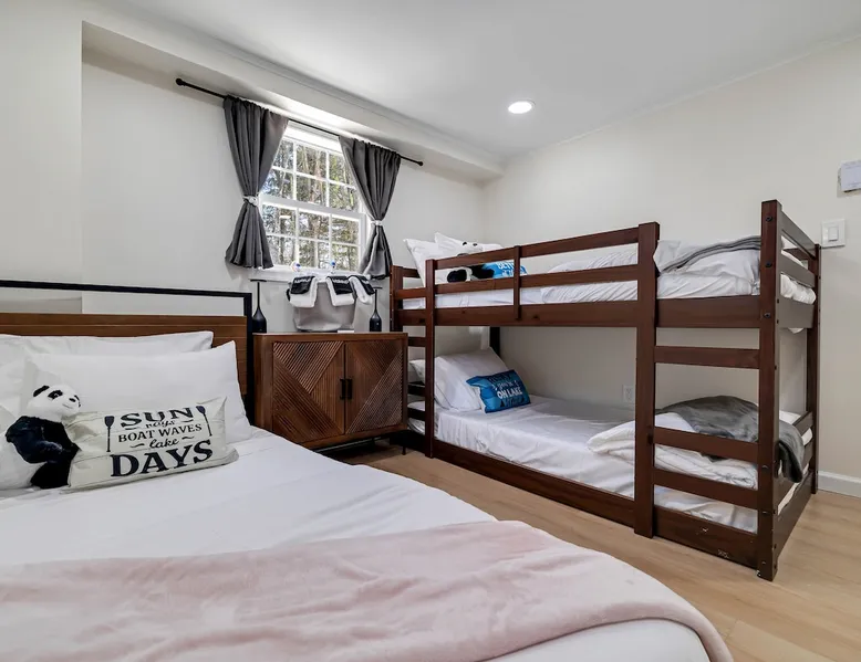 Lakeside Bliss – Modern Comfort, Steps from Island Pool! Dogs OK! Escape to a serene lakefront getaway, just a 2-minute walk to the Island Pool in the gated, private Arrowhead Lake community. This freshly remodeled, pet friendly home offers the perfect mix of modern amenities and cozy charm, making it an ideal destination for families and friends. We are close to skiing: Camelback, Jack Frost, Big Boulder. And Kalahari Water indoor water park! (community fees are extra and not included) The space Why Choose This Home? ✅ Prime Location – Enjoy lakefront views and quick access to community amenities. ✅ Newly Renovated – Fresh interiors, stylish furnishings, and updated appliances. ✅ Entertainment for Everyone – Large smart TV, foosball table, and arcade game for fun-filled nights. ✅ You can bring your dog! ✅ We have kayaks! Spacious & Stylish Accommodations: 🛏 Loft Bedroom: King bed + small workspace 🛏 Bedroom 2: Queen bed 🛏 Bedroom 3: Twin bed + bunk bed (twin over twin) 🚿 Two Full Bathrooms: One on each floor, both with stand-up showers Modern Comforts: 🌬 Air Conditioning – Cool down in the summer, all bedrooms have AC 🍽 Sleek Kitchen – Stainless steel appliances & large fridge for all your cooking needs 📡 Wi-Fi & Smart TV – Stay connected & entertained 🔥 Cozy Baseboard Heating – Stay warm in the winter months Outdoor Fun & Community Perks: 🔥 Fire Pit – Relax under the stars 🌊 Lake Access – Enjoy peaceful water views & nearby fishing spots 🏊♂️ 3 Heated Outdoor Pools (seasonal) 🏖 2 Lakes with Beaches & Playgrounds 🎾 Sports Courts – Tennis, basketball & volleyball 🚣♂️ Kayak & Boat Rentals Available (seasonal) Adventure & Attractions Nearby: ⛷ Jack Frost & Big Boulder Ski Resorts – 15-20 min 💦 Kalahari Indoor Waterpark – 20 min 🎢 Camelback Mountain & Waterpark – 25 min 🎰 Mt. Airy Casino – 30 min 🛍️ Pocono Premium Outlets - 30 min 📍 Convenient Access: Just 15 minutes from I-380 & I-80 for easy travel! Please Note: 1) Arrowhead Lake community does have additional mandatory fees not included in house rental rate (see "Other things to note") 2) Our community is located in a somewhat remote area, 🌿 Perfect for those seeking a peaceful retreat away from city noise! A car is required to reach both the community and our property. 3) We supply essential items to cover stays of approximately 2–3 nights. 🛒 Nearby Stores: Ahart, CVS, Weis, Walmart, ALDI for any extra supplies. Whether you’re looking for adventure or relaxation, your Poconos escape awaits! Guest access Access to full house, except crawlspace and locked supply/owner closets and shed Other things to note **COMMUNITY (HOA) FEES** (mandatory, not included in booking price): Arrowhead Lake Community Fees (to be paid separately online 1+ days prior to arrival): 1) HOA Temporary membership: a) IN SEASON (May 24 to Sept 2): $8.50 per person, per day. or $42.50 per person, per week. b) OFF SEASON (Sept 3 to May 23): $2 per person, per day. c) Children under 6 are free 2) HOA Gate Pass: $20 per vehicle, per stay 3) HOA Administration: $20 one time, per stay (Non-refundable) 4) HOA Late fee (for bookings and registrations submitted within 3 days of arrival date): $100 NOTE: All HOA fees must be paid at least 3+ days prior to arrival to avoid late fee. Community does not accept registrations/payments/changes/additions less than 1 day prior to arrival. **Fees are imposed by the community association (HOA); we are unable to waive or discount them. We will collect following info to be submitted to community with payment: number of guests and kids, names of every driver, full car info and guest names. Temporary Membership grants access to all community facilities and events, as well as access to pools, lakes, beaches, playgrounds, basketball and tennis courts, to Community Lodge with 3 fireplaces, library, fitness room (gym), game rooms and banquet hall. Note: Pools are open starting Memorial Day weekend, until Labor Day. TEMPORARY MEMBERSHIP FEE IS REQUIRED WHETHER AMENITIES/FACILITIES ARE OPEN/USED OR NOT. Community amenities are owned and operated by Arrowhead Lake Community Association. Some amenities are seasonal (pools, beaches, rental shack etc) or maybe closed due to staffing, weather, maintenance or other reasons out of our control. Please double check with us on status of specific amenity. **TRASH RULES**: To avoid attracting wild animals and rodents, all trash must be removed from the house upon departure. The Trash Center is located within the same community, and you can find the address in the Guidebook provided in the house. You can also pick up a flyer with the Trash Center address during check-in at the Rental Office.
