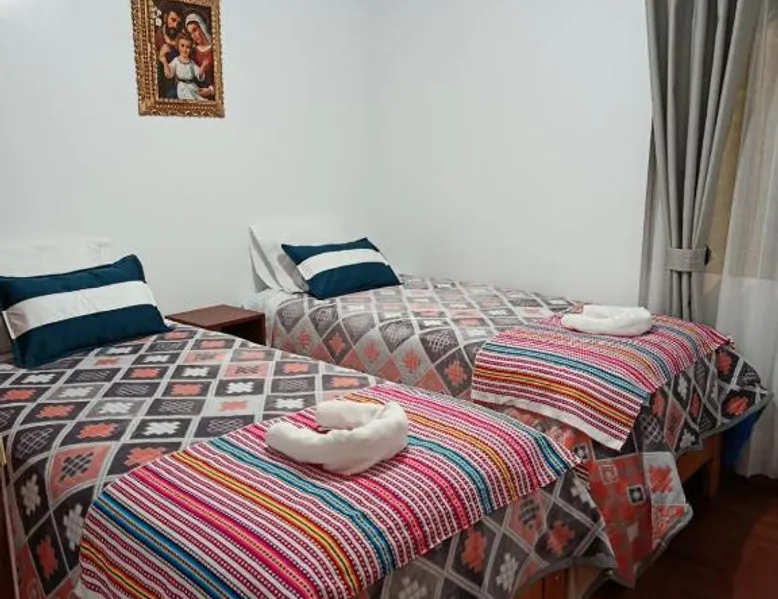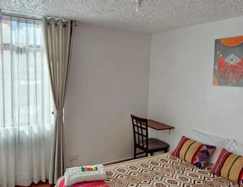 Spacious Accommodations: Departamento Calido y Confortable in Cusco offers a spacious apartment with two bedrooms and a living room. The property features family rooms and a dining area, ensuring comfort for all guests. Modern Amenities: Guests enjoy free WiFi, a fully equipped kitchenette, and streaming services. Additional amenities include a washing machine, dishwasher, and a range of kitchenware. Convenient Location: Located 1.2 mi from Alejandro Velasco Astete International Airport, the apartment is a short walk from Wanchaq Train station (14 minutes) and Santo Domingo Church (18 minutes). Nearby attractions include Hatun Rumiyoc and the Religious Art Museum, each 1.2 mi away. This spacious apartment comes with 1 living room, 2 separate bedrooms and 1 bathroom with a shower and a hairdryer. Guests can make meals in the kitchen that features a refrigerator, a dishwasher, kitchenware and a microwave. The apartment features a washing machine, a tea and coffee maker, a dining area, a flat-screen TV with streaming services, as well as garden views. The unit has 4 beds.