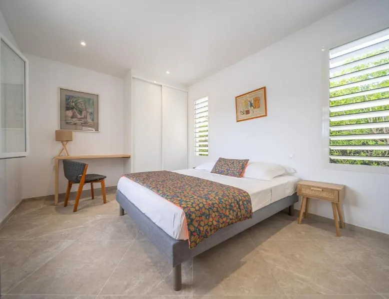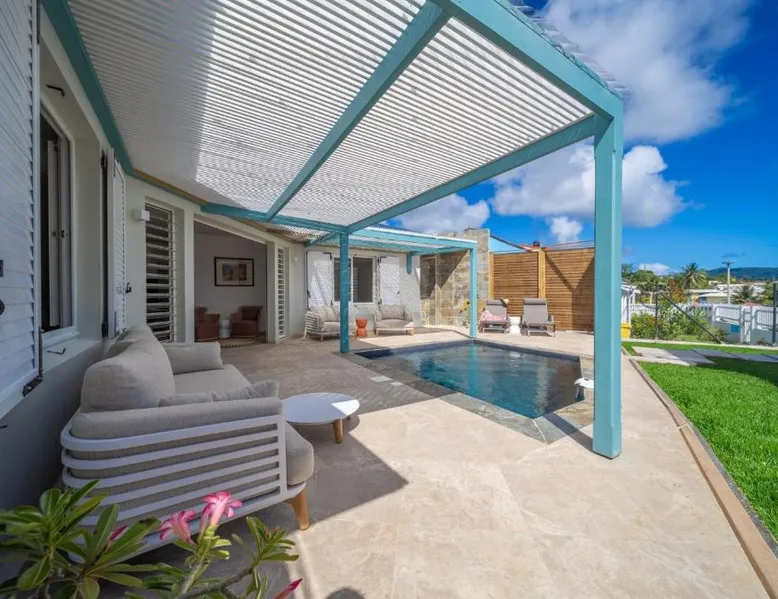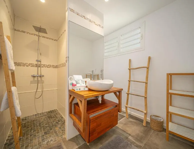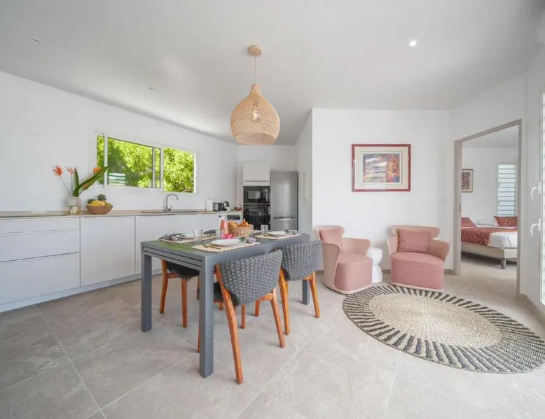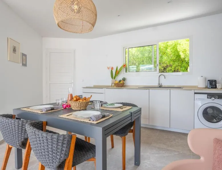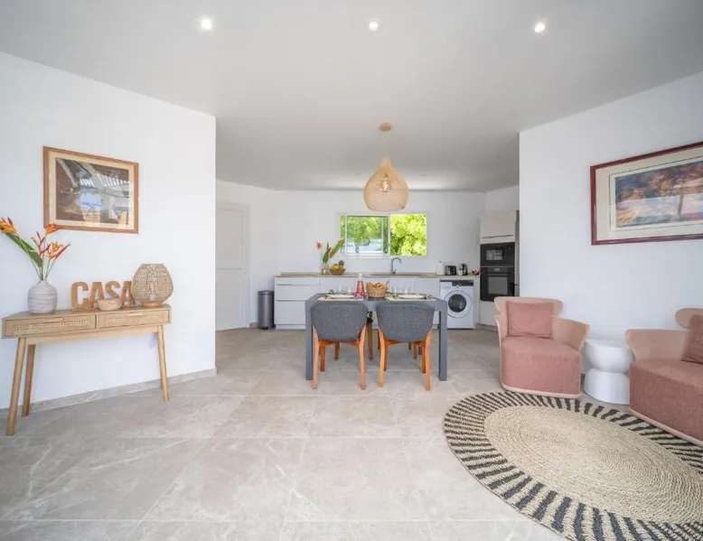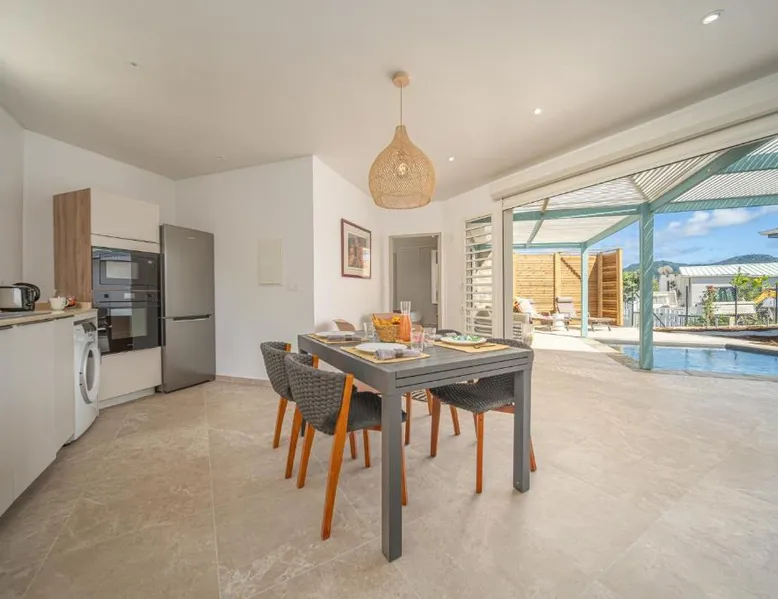 Modern Comforts: Douceur Créole in Sainte-Luce offers a recently renovated villa with air-conditioning, a private bathroom, and a fully equipped kitchen. Guests enjoy free WiFi, a saltwater swimming pool, and a sun terrace. Outdoor Amenities: The property features an outdoor seating area, barbecue facilities, and free on-site private parking. Additional amenities include a washing machine, dishwasher, and streaming services. Convenient Location: Located 13 mi from Martinique Aime Cesaire International Airport, the villa is an 8-minute walk from Gros Raisin Beach and 1.2 mi from Corps de Garde Est Beach. Highly rated by guests. The private pool is the special feature of this villa. Featuring a private entrance, this air-conditioned villa consists of 1 living room, 2 separate bedrooms and 2 bathrooms with a walk-in shower and a hairdryer. Guests will find a stovetop, a refrigerator, a dishwasher and kitchenware in the well-fitted kitchen. The villa also provides guests with a barbecue. Boasting a terrace with pool views, this villa also provides a washing machine and a flat-screen TV with streaming services. The unit offers 3 beds.