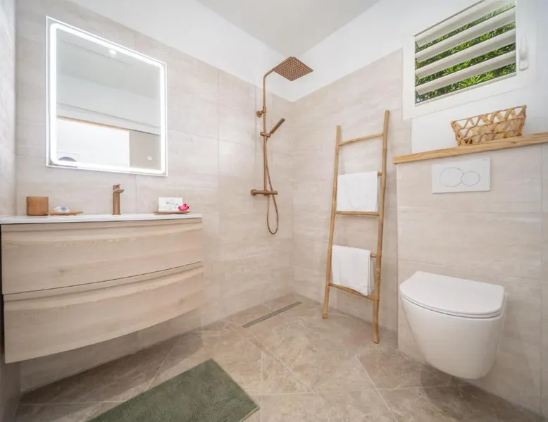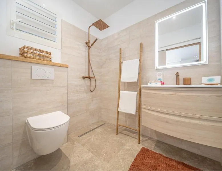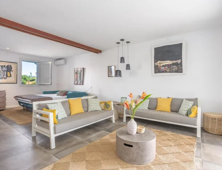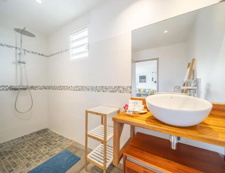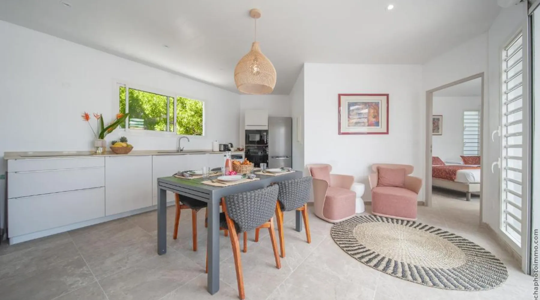 Modern Comforts: Douceur Créole in Sainte-Luce offers a recently renovated villa with air-conditioning, a private bathroom, and a fully equipped kitchen. Guests enjoy free WiFi, a saltwater swimming pool, and a sun terrace. Outdoor Amenities: The property features an outdoor seating area, barbecue facilities, and free on-site private parking. Additional amenities include a washing machine, dishwasher, and streaming services. Convenient Location: Located 13 mi from Martinique Aime Cesaire International Airport, the villa is an 8-minute walk from Gros Raisin Beach and 1.2 mi from Corps de Garde Est Beach. Highly rated by guests. The private pool is the special feature of this villa. Featuring a private entrance, this air-conditioned villa consists of 1 living room, 2 separate bedrooms and 2 bathrooms with a walk-in shower and a hairdryer. Guests will find a stovetop, a refrigerator, a dishwasher and kitchenware in the well-fitted kitchen. The villa also provides guests with a barbecue. Boasting a terrace with pool views, this villa also provides a washing machine and a flat-screen TV with streaming services. The unit offers 3 beds.