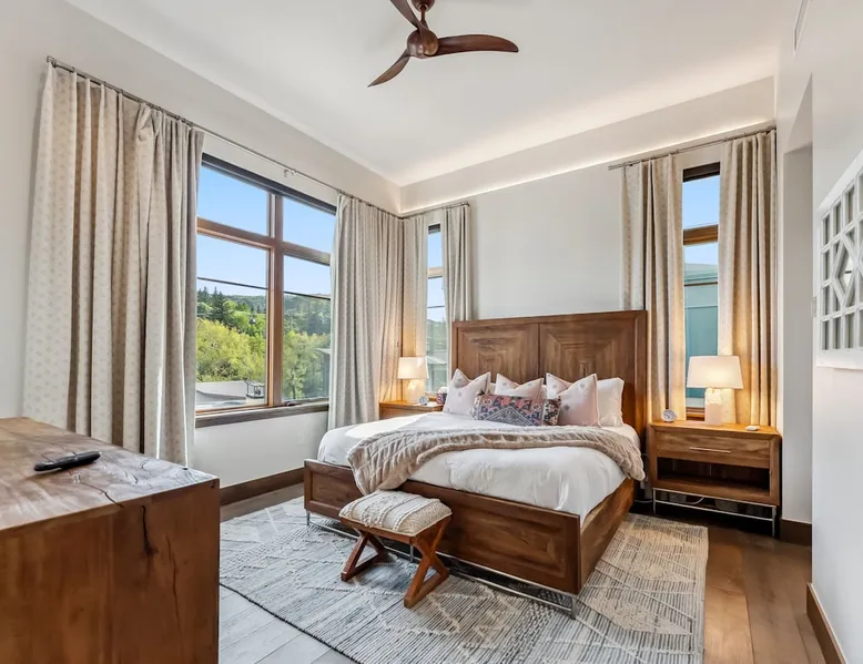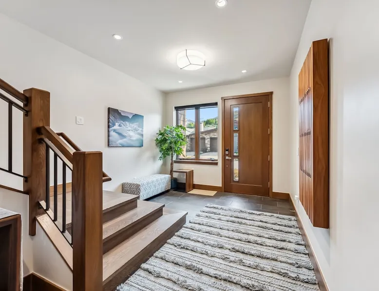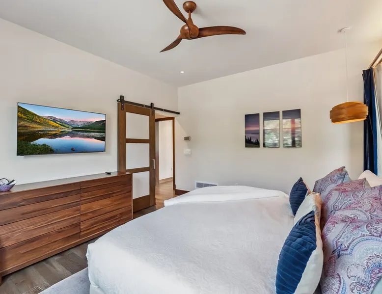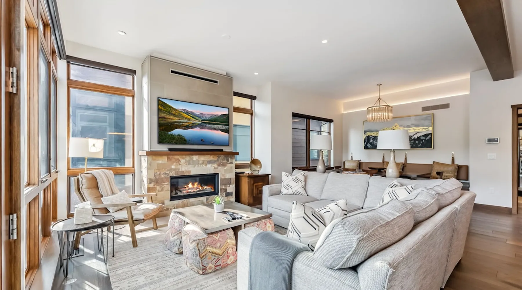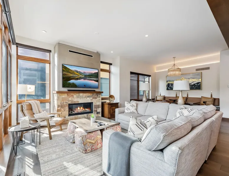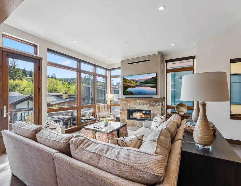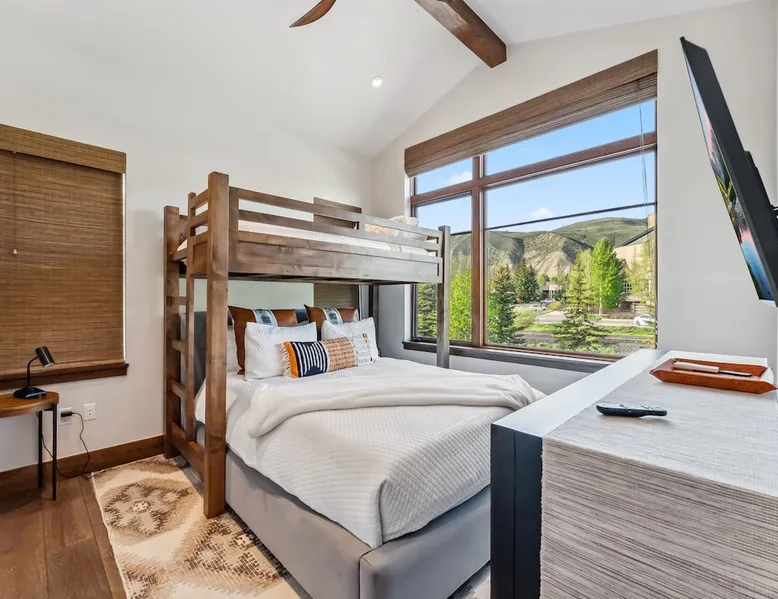 This stunning, newly built luxury townhome offers the ultimate home base for your Rocky Mountain getaway. Just a short walk from the Gondola and set along the beautiful Eagle River and scenic bike path, it combines unparalleled convenience with spectacular beauty. Featuring a great room with panoramic floor-to-ceiling windows and high end finishes, this home epitomizes ultra-luxury mountain living. Enjoy exclusive access to shared world-class resort amenities for a truly elevated lifestyle! The space Everything you need for a truly spectacular rocky mountain luxury vacation is at your fingertips at One Riverfront! Enjoy easy access to world class slopes- just steps to the gondola or hop on the convenient resort shuttle right from the front door. After an adventurous day on the slopes or trails- unwind in one of the luxurious pools or hot tubs, indulge in a rejuvenating spa treatment, or get a workout in at the state-of-the-art gym. This home truly has it all! BEDROOMS: This home features 3 spacious bedrooms plus a versatile bonus room to comfortably accommodate your group. Each room is designed with designer furnishings and stylish decor to create a relaxing retreat. Bedroom 1: The primary bedroom is a serene escape with gorgeous views and bright lighting. This room features a plush King bed, smart TV, and an en-suite bathroom. Enjoy a restful nights' sleep and wake up ready to explore all that the area has to offer. Bedroom 2: Thoughtfully designed with a King bed, smart TV, and an en-suite bathroom, this bedroom blends comfort and style, ensuring a restful and refreshing stay. Bedroom 3: This inviting bedroom is furnished with a Twin over Queen bunk bed, with a smart TV and an attached en-suite full bathroom, providing a cozy yet sophisticated space to unwind after a day on the slopes or trails. Bonus Room - A versatile space featuring a Queen Murphy bed on the 1st floor with a smart TV, perfect for extra guests or family members looking for a comfortable place to rest. BATHROOMS: This home offers 3 well-appointed and fully stocked en-suite bathrooms with large mirrors, bright lighting, and hotel-grade towels. Bathroom 1: A pristine full bathroom with dual vanity and walk-in shower, stocked with essentials for your convenience. Bathroom 2: A bright and luxurious en suite bathroom with dual vanities and a shower/tub combo. Stocked with essentials for your convenience. Bathroom 3: Equipped with dual vanities and a huge walk-in shower, this full en suite bathroom provides ultimate relaxation and is stocked with essentials for your convenience. KITCHEN & LOUNGE The fully equipped kitchen is perfect for preparing everything from quick breakfasts to gourmet meals. Modern appliances, beautiful countertops, and ample cookware make meal prep a breeze. The open-concept dining and lounge area is ideal for gathering with friends and family. Large, floor to ceiling windows fill the space with natural light and spectacular mountain views, while comfortable seating ensures a welcoming atmosphere whether you're dining, planning your next adventure, or simply unwinding. OUTSIDE SPACE: Step out onto the second-floor deck, complete with a BBQ grill, where you can soak in the fresh mountain air and the breathtaking mountain and riverfront views while enjoying a meal or a drink with your group. You will have access to the One Riverfront pool and hot tubs in addition to the shared amenities at the Riverfront Resort and Spa. AMENITIES & HIGHLIGHTS: ☆ 3 bedrooms plus bonus room, 5 beds total ☆ Second-floor deck with grill ☆ Modern Luxury Finishes ☆Stunning views from every room ☆ Floor to ceiling windows ☆PRIME LOCATION ☆ Approximately 300 steps to the gondola ☆ Private residential garage + 1 additional spot on driveway ☆ Fully equipped kitchen ☆ One Riverfront community pool and hot tubs ☆ Air conditioning ☆ Large washer and dryer ☆ High-speed WiFi for seamless connectivity ☆ Access to Riverfront Resort & Spa amenities, including: - Gym - Pools & hot tubs - Shuttle service - Ski storage Experience the best of mountain living with easy access to world-class skiing, dining, hiking, fishing and relaxation. STR license number: 014154 Guest access You’ll have access to every room and feature of this home except the locked owner’s closets, the garage refrigerator, and the bikes in the garage. Make yourself at home; your hosts are just a phone call or text away if you have any questions or want recommendations for things to do nearby. There is a keypad on the front door for easy and secure access to the home. Other things to note Reservations may be subject to extra guest fees as well as additional charges for optional services such as early check-ins. Early check ins may be requested the day of check in through your electronic guidebook. We do our best to accommodate these requests, however it depends on our calendar and the cleaners schedule. If approved, there is a $50 charge for early check in. Reservations may be subject to extra guest fees Early check ins may be requested the day of check in through your electronic guidebook. We do our best to accommodate these requests, however it depends on our calendar and the cleaners schedule. If approved, there is a $50 charge for early check in. Booking Fee: A booking fee is required for all paying guests for entry of a reservation into the system and nightly occupancy reporting. Current booking fee is $75/reservation and will be charged upon checking in at the front desk. Check-In: Guests MUST check in at the front desk located on the first floor of the adjacent Riverfront Lodge. Upon checking in you will need to pay