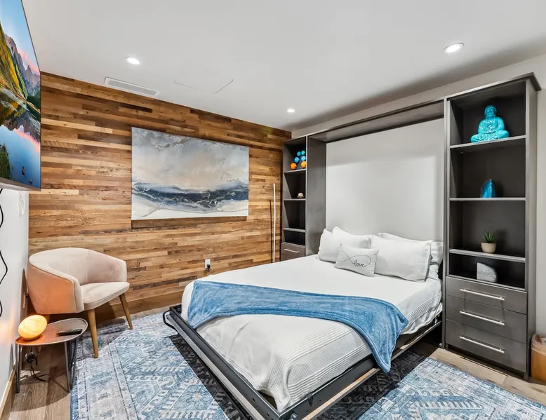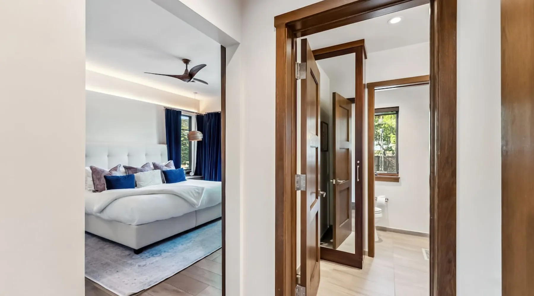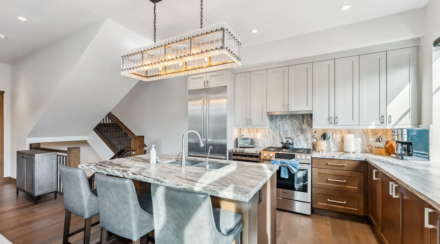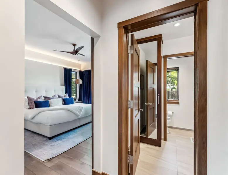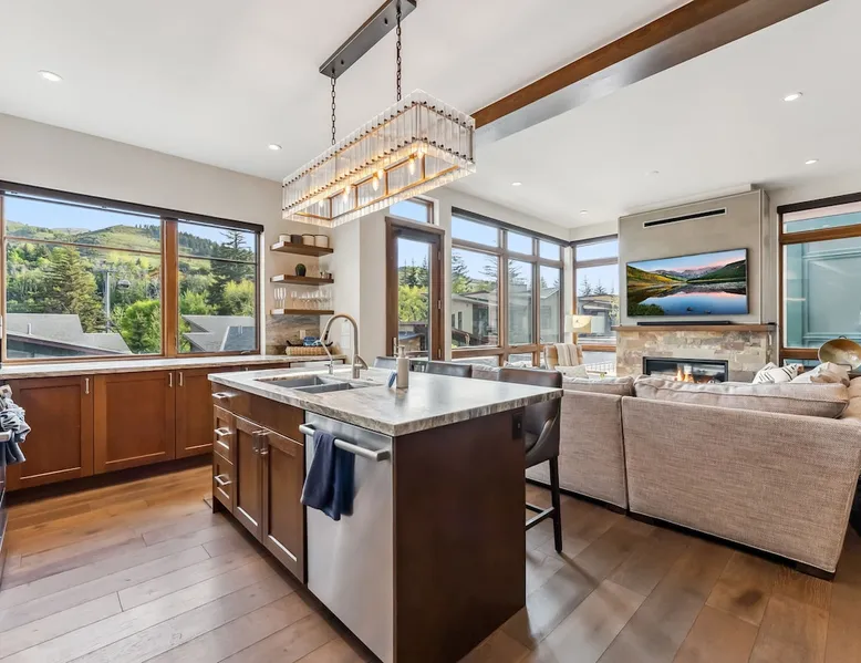 This stunning, newly built luxury townhome offers the ultimate home base for your Rocky Mountain getaway. Just a short walk from the Gondola and set along the beautiful Eagle River and scenic bike path, it combines unparalleled convenience with spectacular beauty. Featuring a great room with panoramic floor-to-ceiling windows and high end finishes, this home epitomizes ultra-luxury mountain living. Enjoy exclusive access to shared world-class resort amenities for a truly elevated lifestyle! The space Everything you need for a truly spectacular rocky mountain luxury vacation is at your fingertips at One Riverfront! Enjoy easy access to world class slopes- just steps to the gondola or hop on the convenient resort shuttle right from the front door. After an adventurous day on the slopes or trails- unwind in one of the luxurious pools or hot tubs, indulge in a rejuvenating spa treatment, or get a workout in at the state-of-the-art gym. This home truly has it all! BEDROOMS: This home features 3 spacious bedrooms plus a versatile bonus room to comfortably accommodate your group. Each room is designed with designer furnishings and stylish decor to create a relaxing retreat. Bedroom 1: The primary bedroom is a serene escape with gorgeous views and bright lighting. This room features a plush King bed, smart TV, and an en-suite bathroom. Enjoy a restful nights' sleep and wake up ready to explore all that the area has to offer. Bedroom 2: Thoughtfully designed with a King bed, smart TV, and an en-suite bathroom, this bedroom blends comfort and style, ensuring a restful and refreshing stay. Bedroom 3: This inviting bedroom is furnished with a Twin over Queen bunk bed, with a smart TV and an attached en-suite full bathroom, providing a cozy yet sophisticated space to unwind after a day on the slopes or trails. Bonus Room - A versatile space featuring a Queen Murphy bed on the 1st floor with a smart TV, perfect for extra guests or family members looking for a comfortable place to rest. BATHROOMS: This home offers 3 well-appointed and fully stocked en-suite bathrooms with large mirrors, bright lighting, and hotel-grade towels. Bathroom 1: A pristine full bathroom with dual vanity and walk-in shower, stocked with essentials for your convenience. Bathroom 2: A bright and luxurious en suite bathroom with dual vanities and a shower/tub combo. Stocked with essentials for your convenience. Bathroom 3: Equipped with dual vanities and a huge walk-in shower, this full en suite bathroom provides ultimate relaxation and is stocked with essentials for your convenience. KITCHEN & LOUNGE The fully equipped kitchen is perfect for preparing everything from quick breakfasts to gourmet meals. Modern appliances, beautiful countertops, and ample cookware make meal prep a breeze. The open-concept dining and lounge area is ideal for gathering with friends and family. Large, floor to ceiling windows fill the space with natural light and spectacular mountain views, while comfortable seating ensures a welcoming atmosphere whether you're dining, planning your next adventure, or simply unwinding. OUTSIDE SPACE: Step out onto the second-floor deck, complete with a BBQ grill, where you can soak in the fresh mountain air and the breathtaking mountain and riverfront views while enjoying a meal or a drink with your group. You will have access to the One Riverfront pool and hot tubs in addition to the shared amenities at the Riverfront Resort and Spa. AMENITIES & HIGHLIGHTS: ☆ 3 bedrooms plus bonus room, 5 beds total ☆ Second-floor deck with grill ☆ Modern Luxury Finishes ☆Stunning views from every room ☆ Floor to ceiling windows ☆PRIME LOCATION ☆ Approximately 300 steps to the gondola ☆ Private residential garage + 1 additional spot on driveway ☆ Fully equipped kitchen ☆ One Riverfront community pool and hot tubs ☆ Air conditioning ☆ Large washer and dryer ☆ High-speed WiFi for seamless connectivity ☆ Access to Riverfront Resort & Spa amenities, including: - Gym - Pools & hot tubs - Shuttle service - Ski storage Experience the best of mountain living with easy access to world-class skiing, dining, hiking, fishing and relaxation. STR license number: 014154 Guest access You’ll have access to every room and feature of this home except the locked owner’s closets, the garage refrigerator, and the bikes in the garage. Make yourself at home; your hosts are just a phone call or text away if you have any questions or want recommendations for things to do nearby. There is a keypad on the front door for easy and secure access to the home. Other things to note Reservations may be subject to extra guest fees as well as additional charges for optional services such as early check-ins. Early check ins may be requested the day of check in through your electronic guidebook. We do our best to accommodate these requests, however it depends on our calendar and the cleaners schedule. If approved, there is a $50 charge for early check in. Reservations may be subject to extra guest fees Early check ins may be requested the day of check in through your electronic guidebook. We do our best to accommodate these requests, however it depends on our calendar and the cleaners schedule. If approved, there is a $50 charge for early check in. Booking Fee: A booking fee is required for all paying guests for entry of a reservation into the system and nightly occupancy reporting. Current booking fee is $75/reservation and will be charged upon checking in at the front desk. Check-In: Guests MUST check in at the front desk located on the first floor of the adjacent Riverfront Lodge. Upon checking in you will need to pay