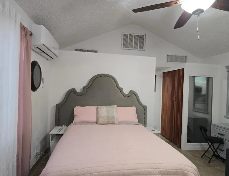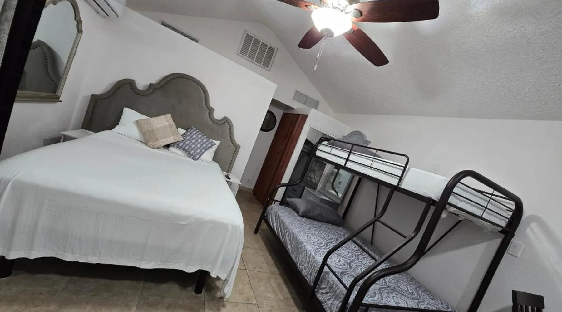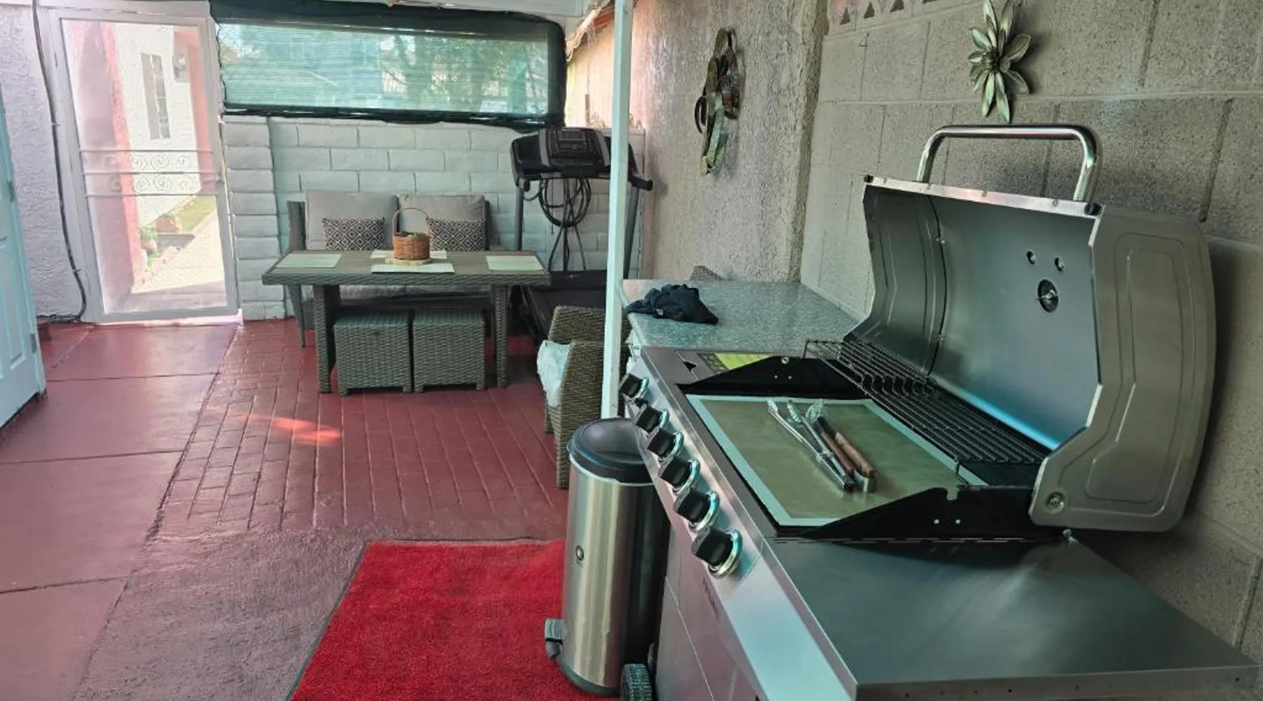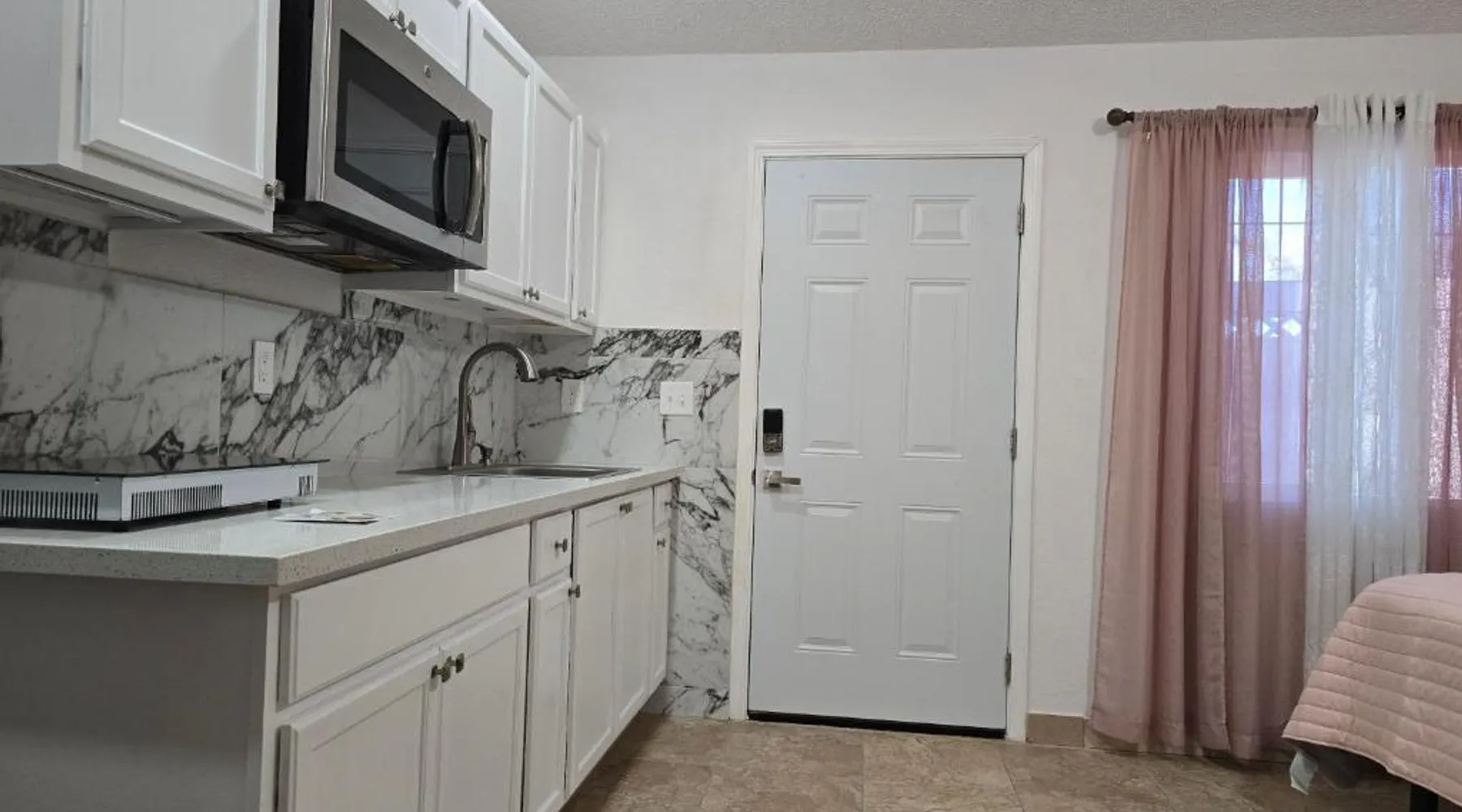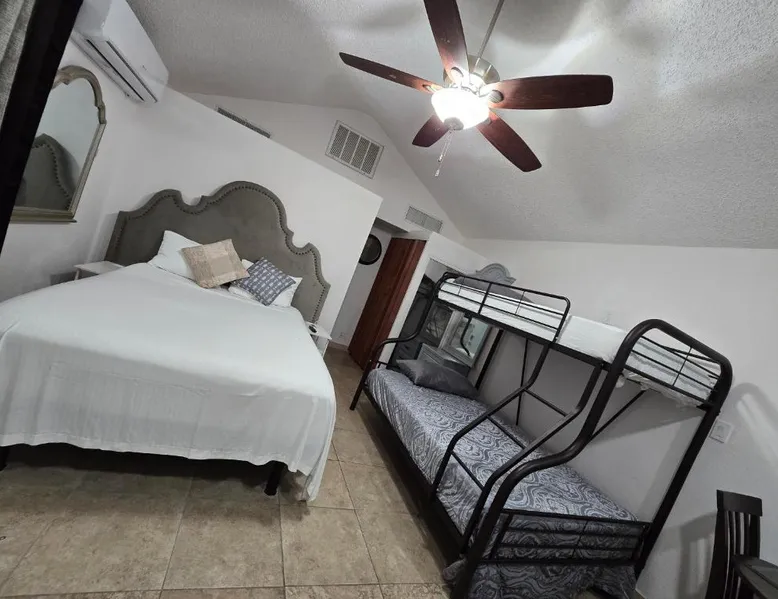 Comfortable Living: Rocas del sol in Las Vegas offers a one-bedroom apartment with a terrace and free WiFi. The property features family rooms, full-day security, and free on-site private parking. Modern Amenities: The apartment includes air-conditioning, a kitchenette, kitchen, hairdryer, seating area, free toiletries, shower, TV, tiled floors, and a wardrobe. Convenient Location: Located 11 mi from Harry Reid International Airport, the apartment is near attractions such as The Neon Museum (5.6 mi), Mob Museum (6.8 mi), and Fremont Street Experience (6.8 mi). This apartment comes with 1 living room, 1 separate bedroom and 1 bathroom with a shower and free toiletries. The apartment's kitchen is available for cooking and storing food. The apartment has tiled floors, a seating area with a flat-screen TV, air conditioning, a wardrobe, as well as heating. The unit has 2 beds.