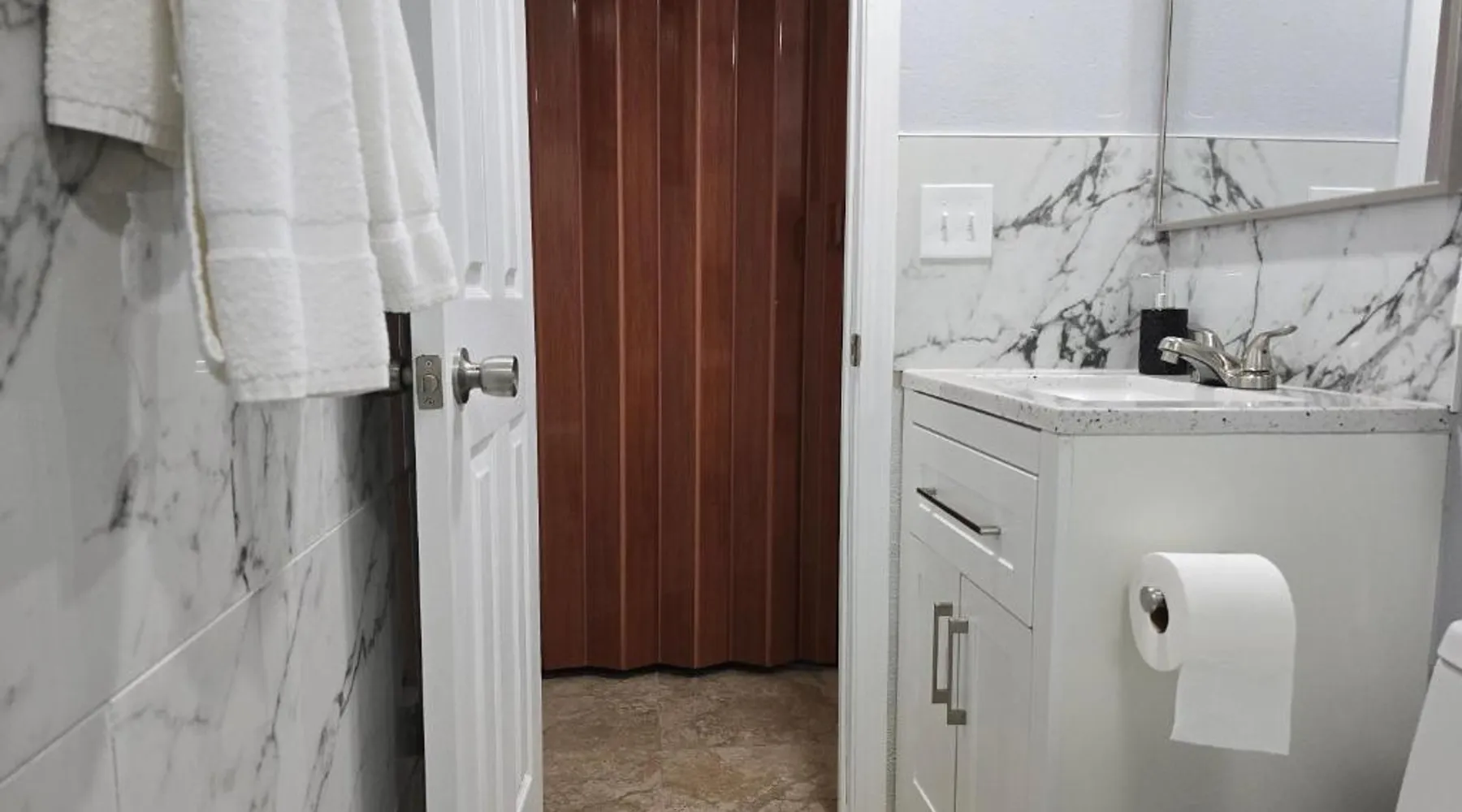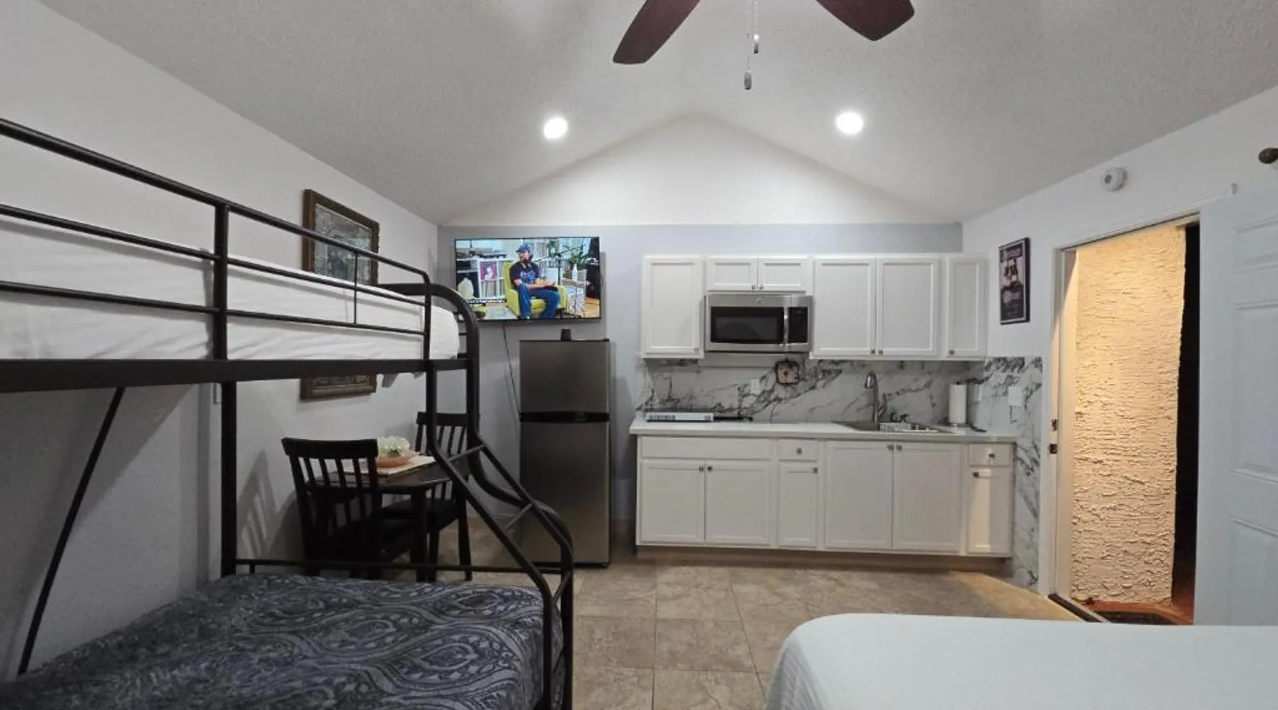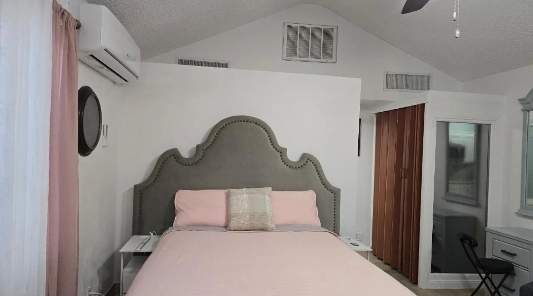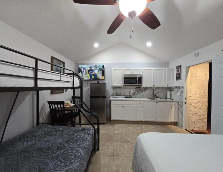 Comfortable Living: Rocas del sol in Las Vegas offers a one-bedroom apartment with a terrace and free WiFi. The property features family rooms, full-day security, and free on-site private parking. Modern Amenities: The apartment includes air-conditioning, a kitchenette, kitchen, hairdryer, seating area, free toiletries, shower, TV, tiled floors, and a wardrobe. Convenient Location: Located 11 mi from Harry Reid International Airport, the apartment is near attractions such as The Neon Museum (5.6 mi), Mob Museum (6.8 mi), and Fremont Street Experience (6.8 mi). This apartment comes with 1 living room, 1 separate bedroom and 1 bathroom with a shower and free toiletries. The apartment's kitchen is available for cooking and storing food. The apartment has tiled floors, a seating area with a flat-screen TV, air conditioning, a wardrobe, as well as heating. The unit has 2 beds.