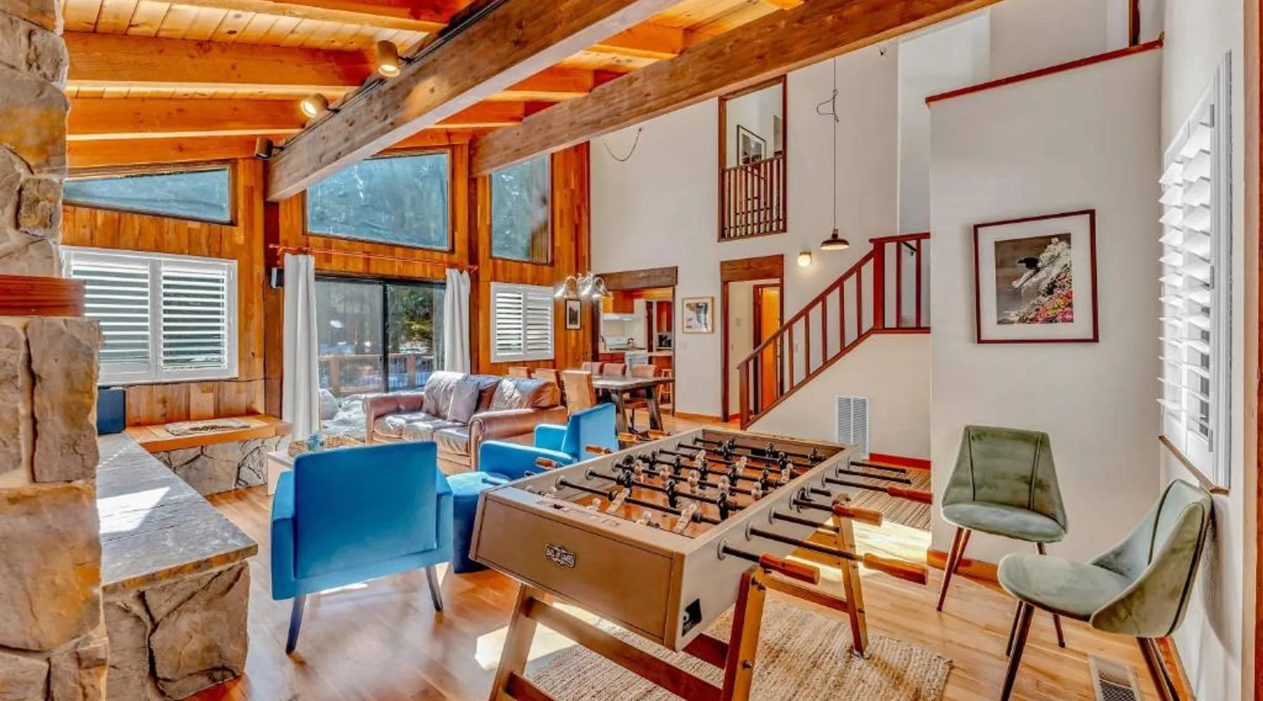 Spacious Accommodations: Cozy Carnelian Bay Escape with Deck and Foosball in Carnelian Bay offers a spacious holiday home with four bedrooms and three bathrooms. Guests enjoy free WiFi and free on-site parking. Modern Amenities: The property features a fully equipped kitchen with a dishwasher, microwave, and oven. Additional amenities include a washing machine, fireplace, barbecue, and streaming services. Outdoor Spaces: A patio provides lake and mountain views, while a deck offers relaxation. The property includes a dining table and a private entrance. Convenient Location: Reno-Tahoe International Airport is 39 mi away. Nearby attractions include Lake Tahoe and the Sierra Nevada Mountains. The fireplace is a top feature of this holiday home. Boasting a private entrance, this spacious holiday home also comes with 4 separate bedrooms and 3 bathrooms with a hairdryer. Guests will find a stovetop, a refrigerator, a dishwasher and kitchenware in the kitchen. The holiday home also includes a barbecue. The holiday home features a washing machine, a tea and coffee maker, a wardrobe, a TV with streaming services, as well as lake views. The unit has 5 beds.
