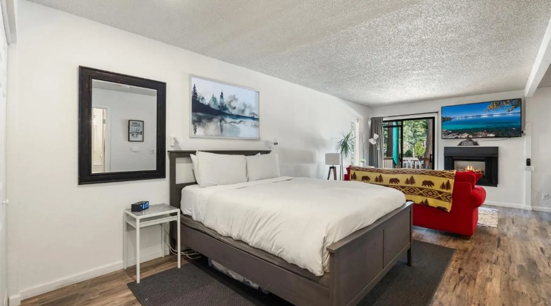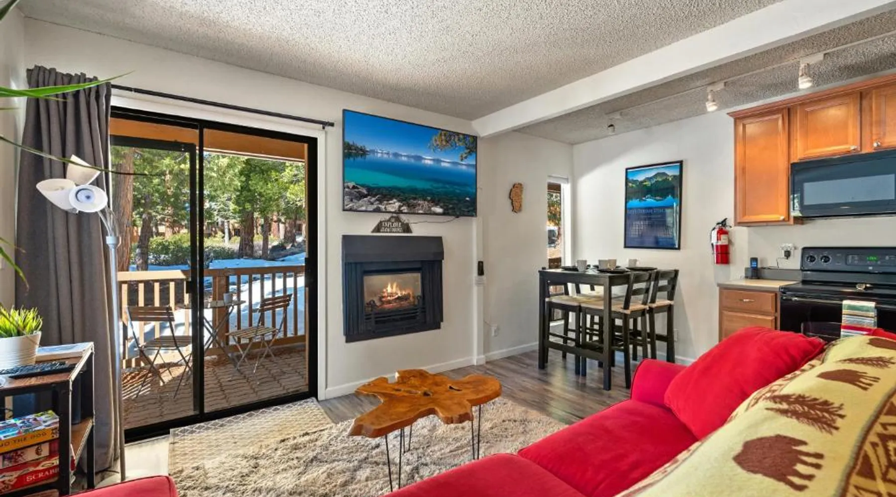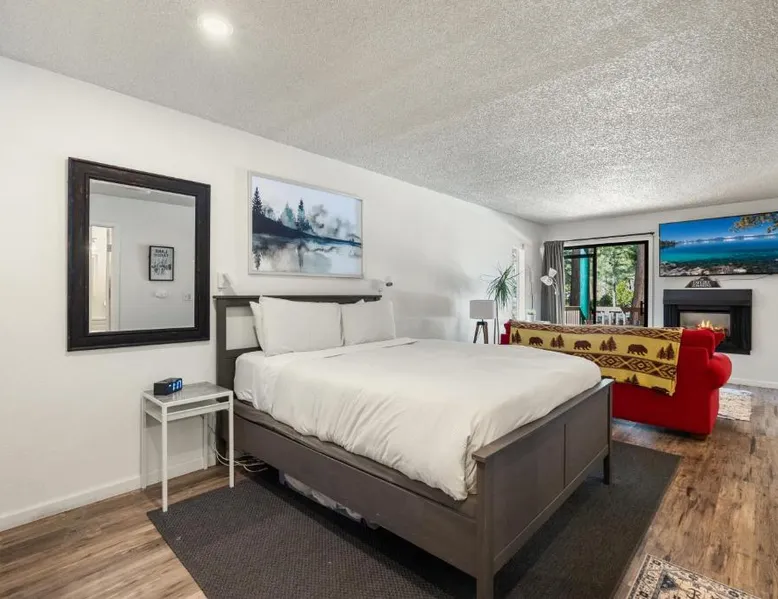 Comfortable Living Space: Private/Cozy Kings Beach Retreat in Tahoe Vista offers a one-bedroom apartment with a living room. The property includes a balcony, kitchen, and dining area. Relaxing Facilities: Guests can enjoy a sauna, seasonal outdoor swimming pool, and hot tub. Free WiFi is available throughout the apartment. Convenient Amenities: The apartment features a fireplace, sofa bed, and dishwasher. Free on-site parking is provided, along with a private entrance. Highly Rated by Guests: Private/Cozy Kings Beach Retreat is highly rated by guests for its comfortable accommodations and excellent facilities. This apartment's standout features are the private pool, hot tub and sauna. Featuring a private entrance, this apartment is consisted of of 1 living room, 1 separate bedroom and 1 bathroom with a bath and a shower. The fully equipped kitchen features a stovetop, a refrigerator, a dishwasher and kitchenware. This apartment has a tea and coffee maker, a seating area, flat-screen TV, as well as chocolate for guests. The unit offers 3 beds.