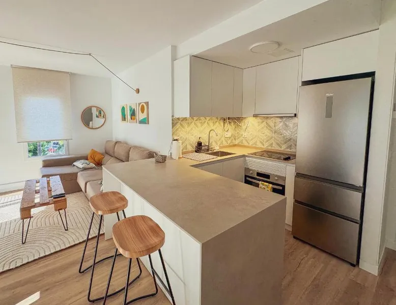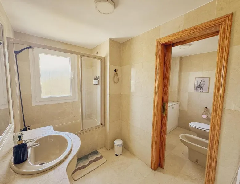 Spacious Accommodations: Almar Albir in El Albir offers a spacious, recently renovated apartment with two bedrooms and two bathrooms. The living room features a sofa bed and parquet floors, ensuring comfort for all guests. Outdoor Amenities: Guests can enjoy a sun terrace and a seasonal outdoor swimming pool. The property includes a kids' pool and an outdoor seating area, perfect for relaxation. Free WiFi is available throughout the apartment. Convenient Location: Located a few steps from Cap Blanch Beach, Almar Albir is 40 mi from Alicante–Elche Miguel Hernández Airport. Nearby attractions include Benidorm Palace (3.7 mi) and Aqualandia (4.3 mi). The private pool is a top feature of this apartment. This spacious apartment comes with 1 living room, 2 separate bedrooms and 2 bathrooms with a bath and a shower. The well-equipped kitchen has a stovetop, a refrigerator, kitchenware and an oven. The air-conditioned apartment features a flat-screen TV, a washing machine, a coffee machine, a seating area as well as garden views. The unit has 3 beds.