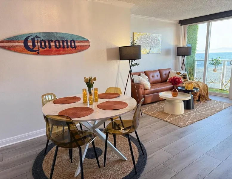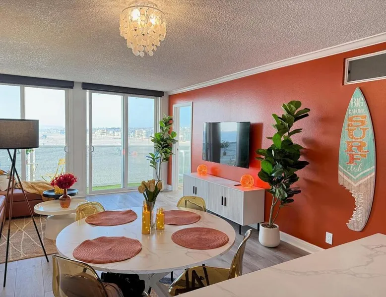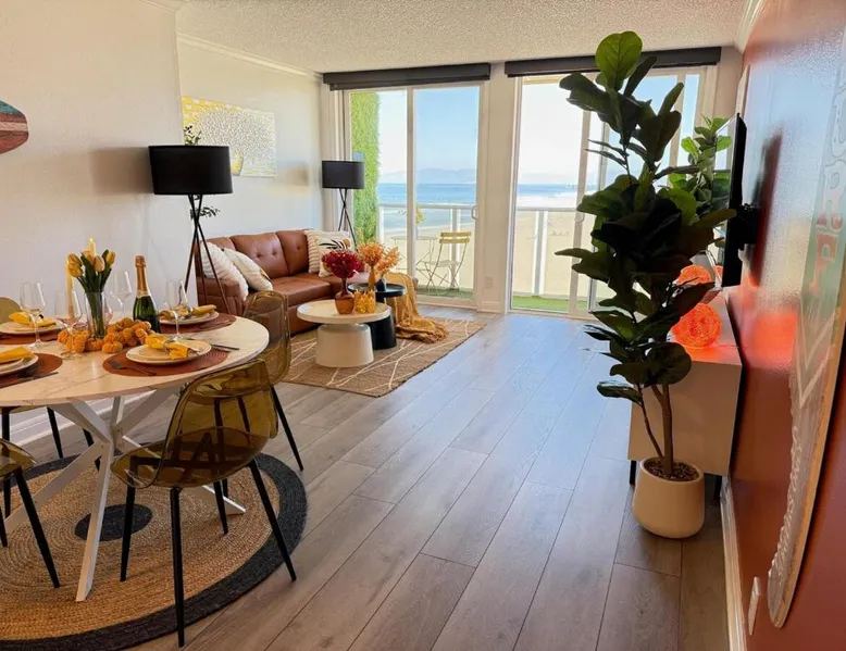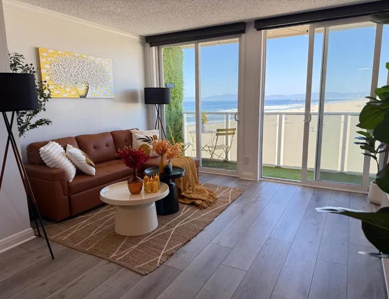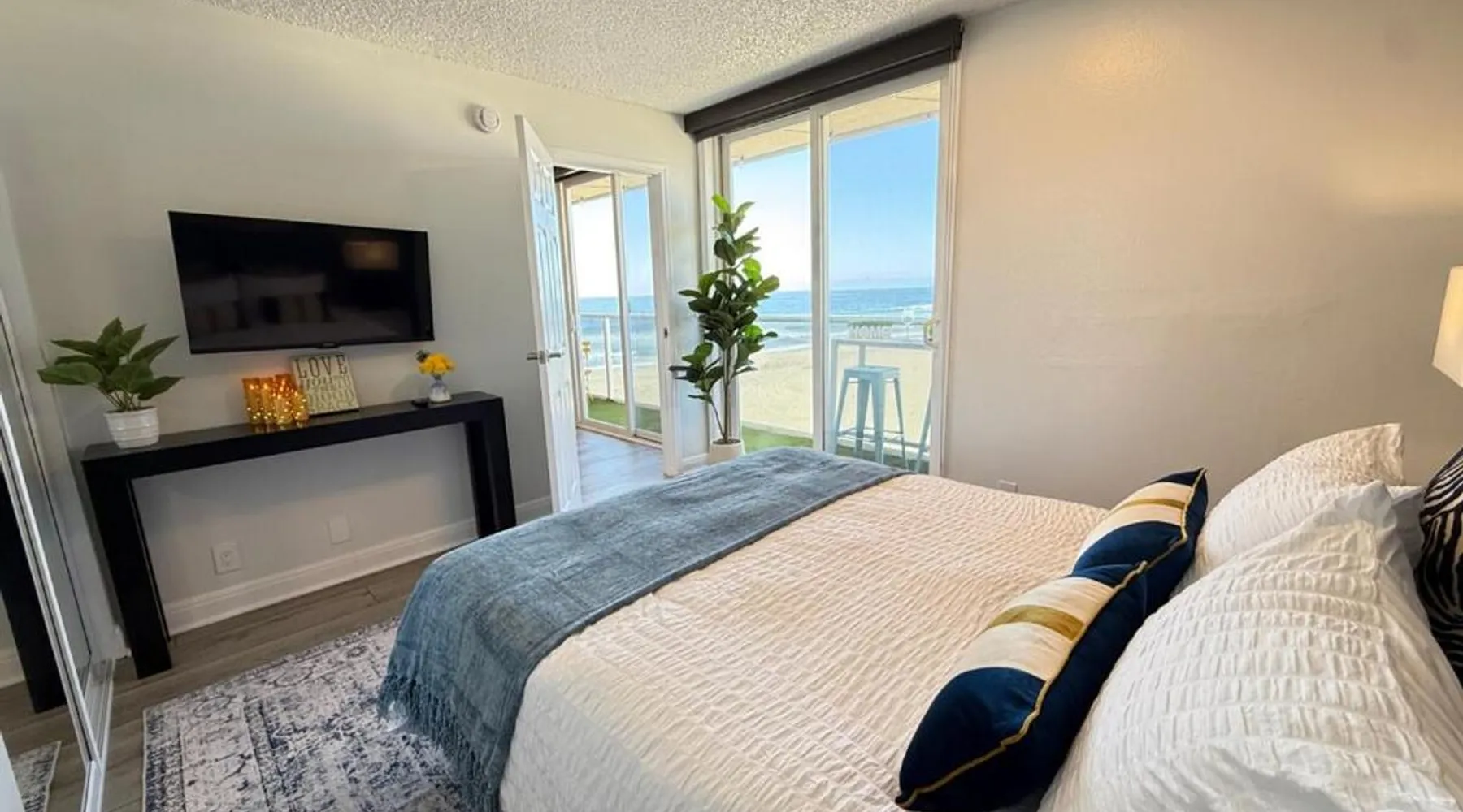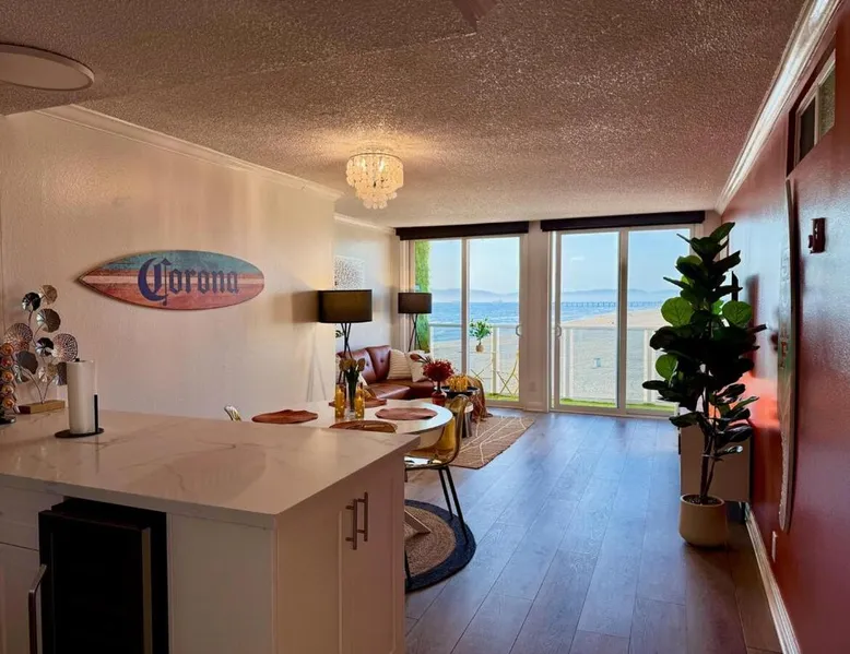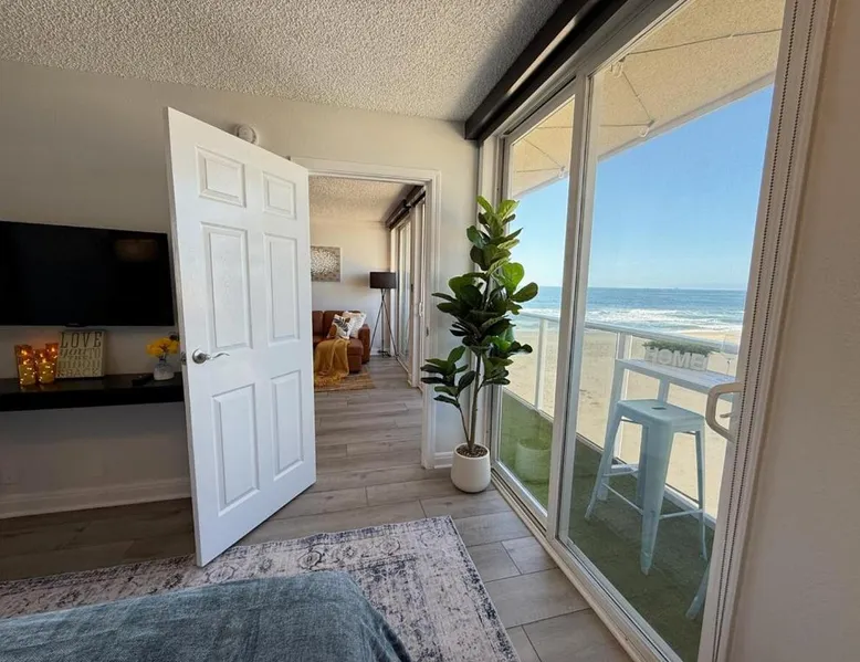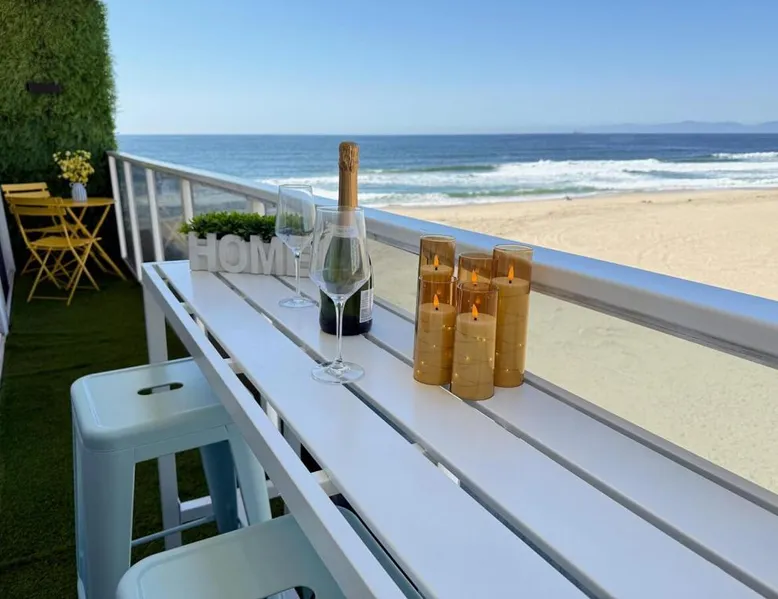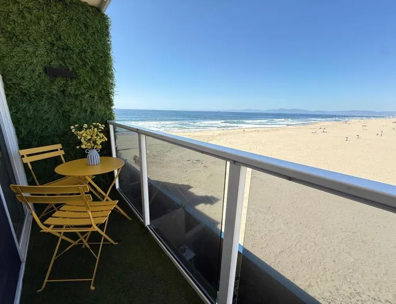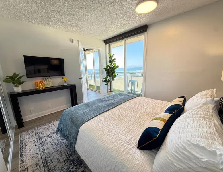 Beachfront Location: Oceanfront 2 BR w Pool & Parking 234 in Hermosa Beach offers direct beachfront access with a private beach area. Guests enjoy sea views and a terrace, perfect for relaxation. Spacious Accommodations: The apartment features one bedroom, one bathroom, and a living room. Amenities include a fully equipped kitchen, washing machine, and free WiFi. Leisure Facilities: An outdoor swimming pool, heated pool, and outdoor seating area provide entertainment. Free on-site private parking is available. Nearby Attractions: Hermosa Beach is just a few steps away, while Los Angeles International Airport is 5.6 mi distant. Other attractions include SoFi Stadium (11 mi) and Venice Beach Boardwalk (13 mi). The private pool is a top feature of this apartment. The well-fitted kitchen has a stovetop, a refrigerator, a dishwasher and an oven. The spacious apartment features a washing machine, a tea and coffee maker, a dining area, a flat-screen TV, as well as sea views. The unit has 3 beds.