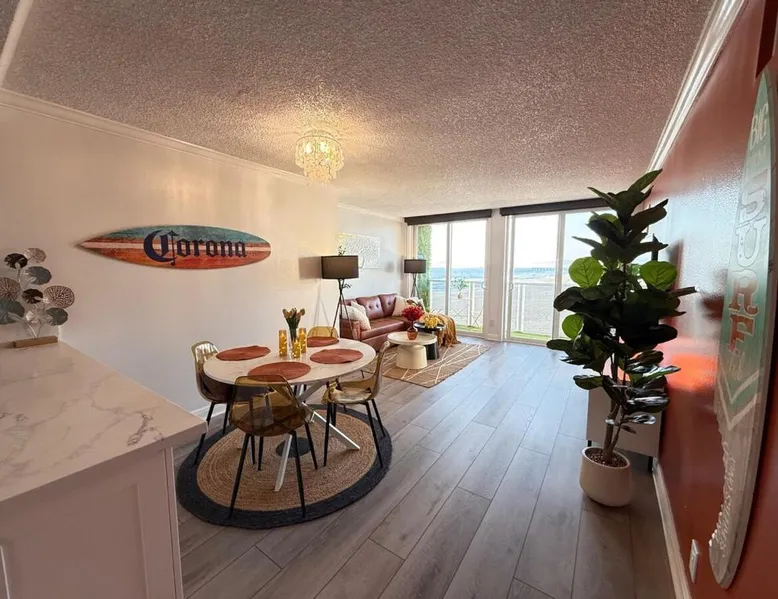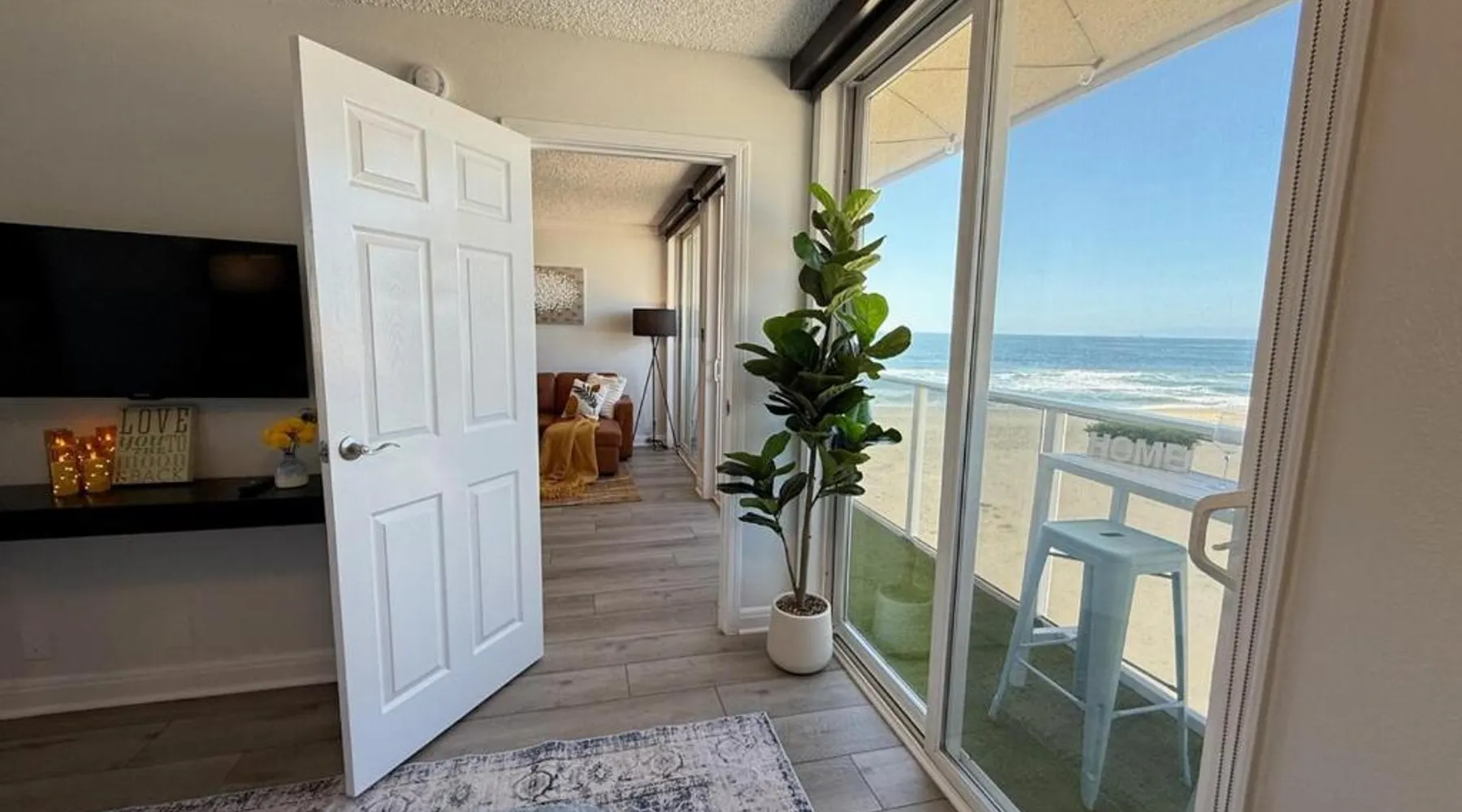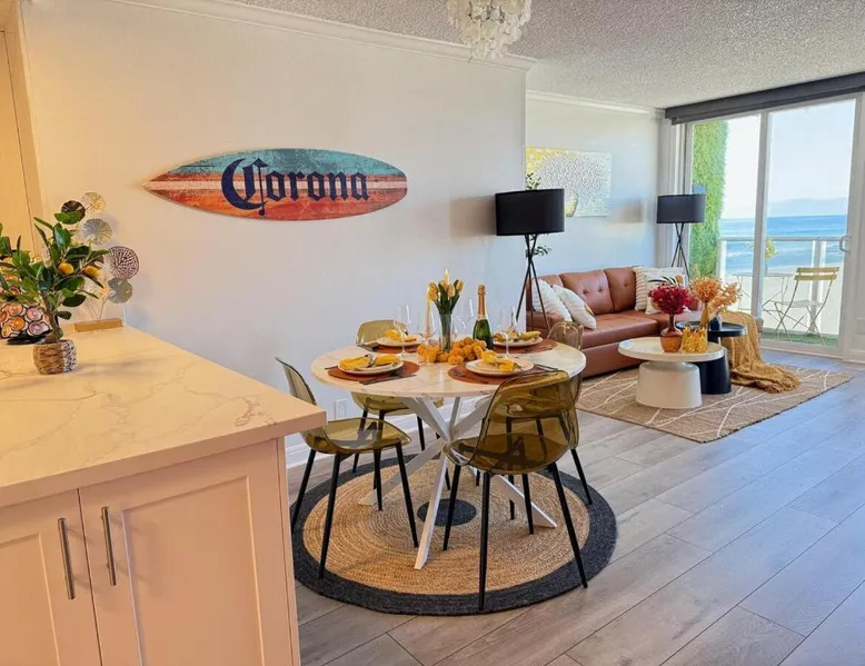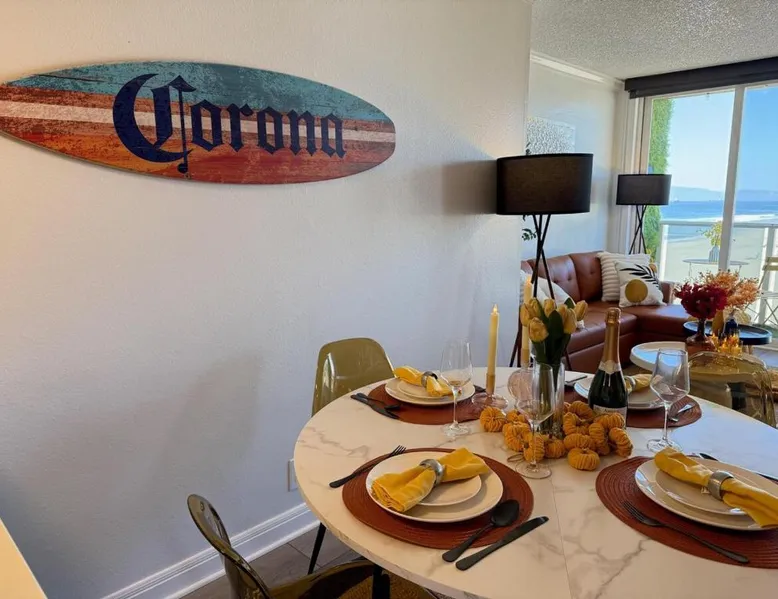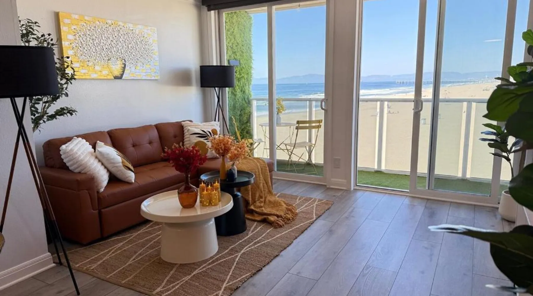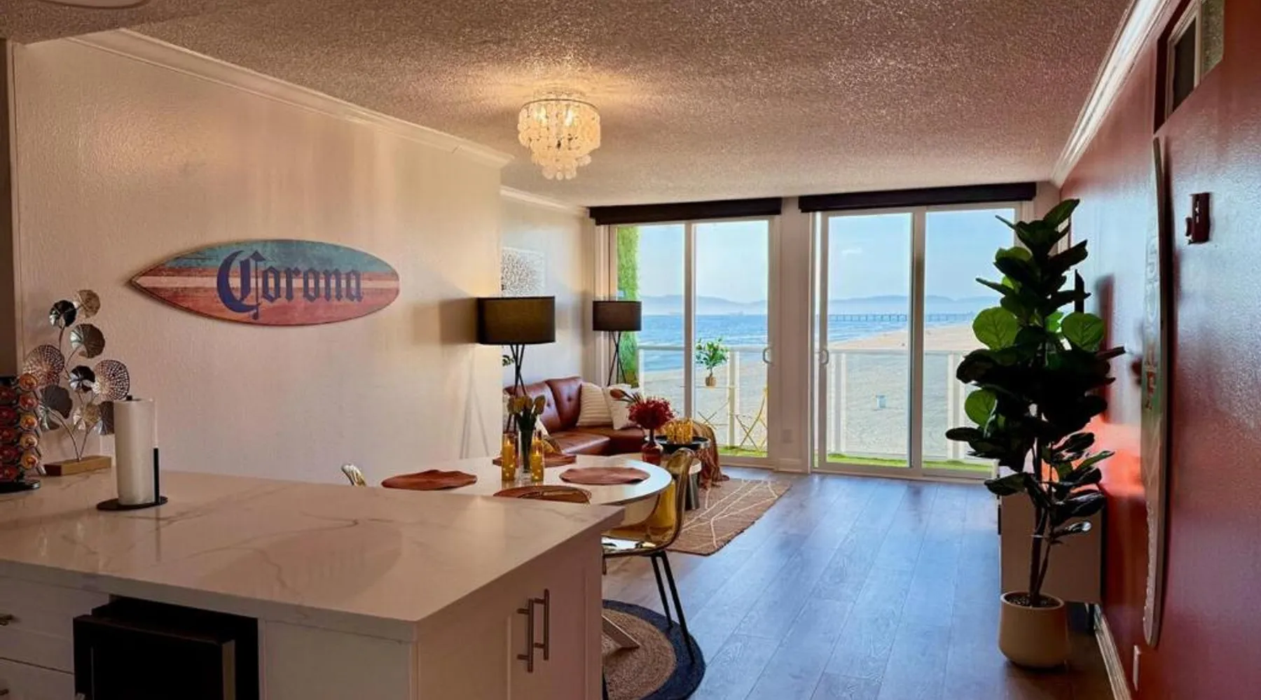 Beachfront Location: Oceanfront 2 BR w Pool & Parking 234 in Hermosa Beach offers direct beachfront access with a private beach area. Guests enjoy sea views and a terrace, perfect for relaxation. Spacious Accommodations: The apartment features one bedroom, one bathroom, and a living room. Amenities include a fully equipped kitchen, washing machine, and free WiFi. Leisure Facilities: An outdoor swimming pool, heated pool, and outdoor seating area provide entertainment. Free on-site private parking is available. Nearby Attractions: Hermosa Beach is just a few steps away, while Los Angeles International Airport is 5.6 mi distant. Other attractions include SoFi Stadium (11 mi) and Venice Beach Boardwalk (13 mi). The private pool is a top feature of this apartment. The well-fitted kitchen has a stovetop, a refrigerator, a dishwasher and an oven. The spacious apartment features a washing machine, a tea and coffee maker, a dining area, a flat-screen TV, as well as sea views. The unit has 3 beds.