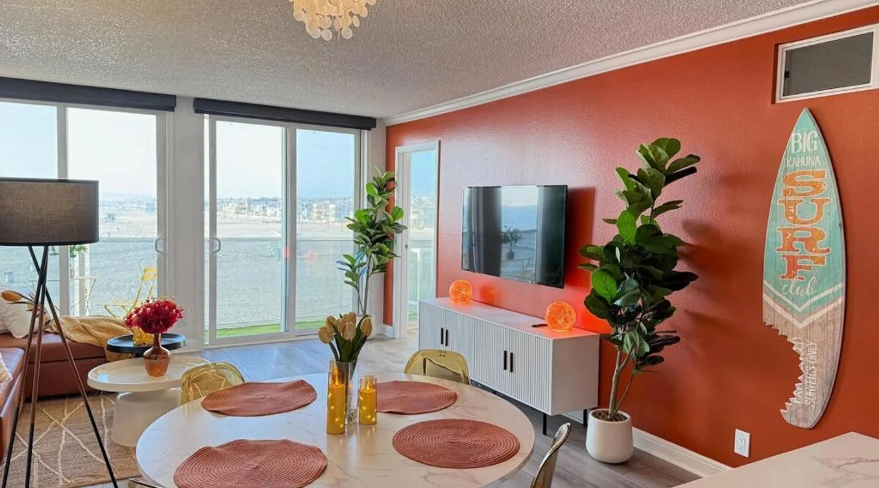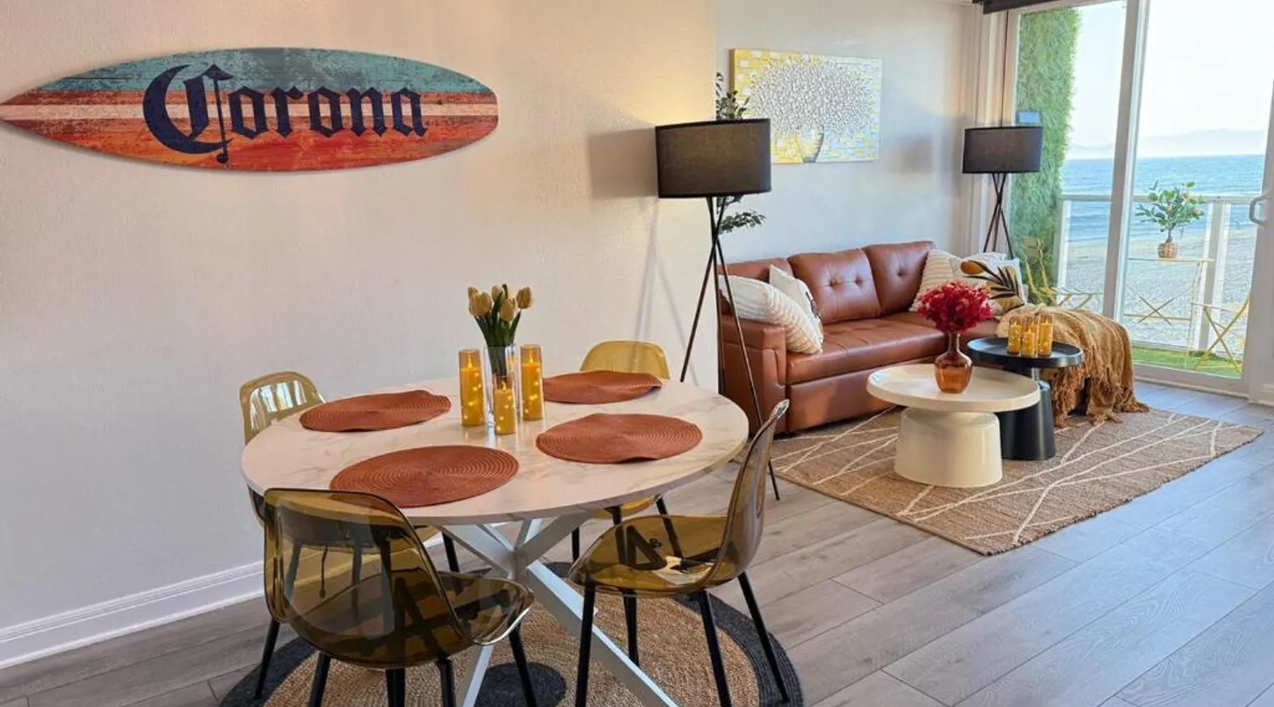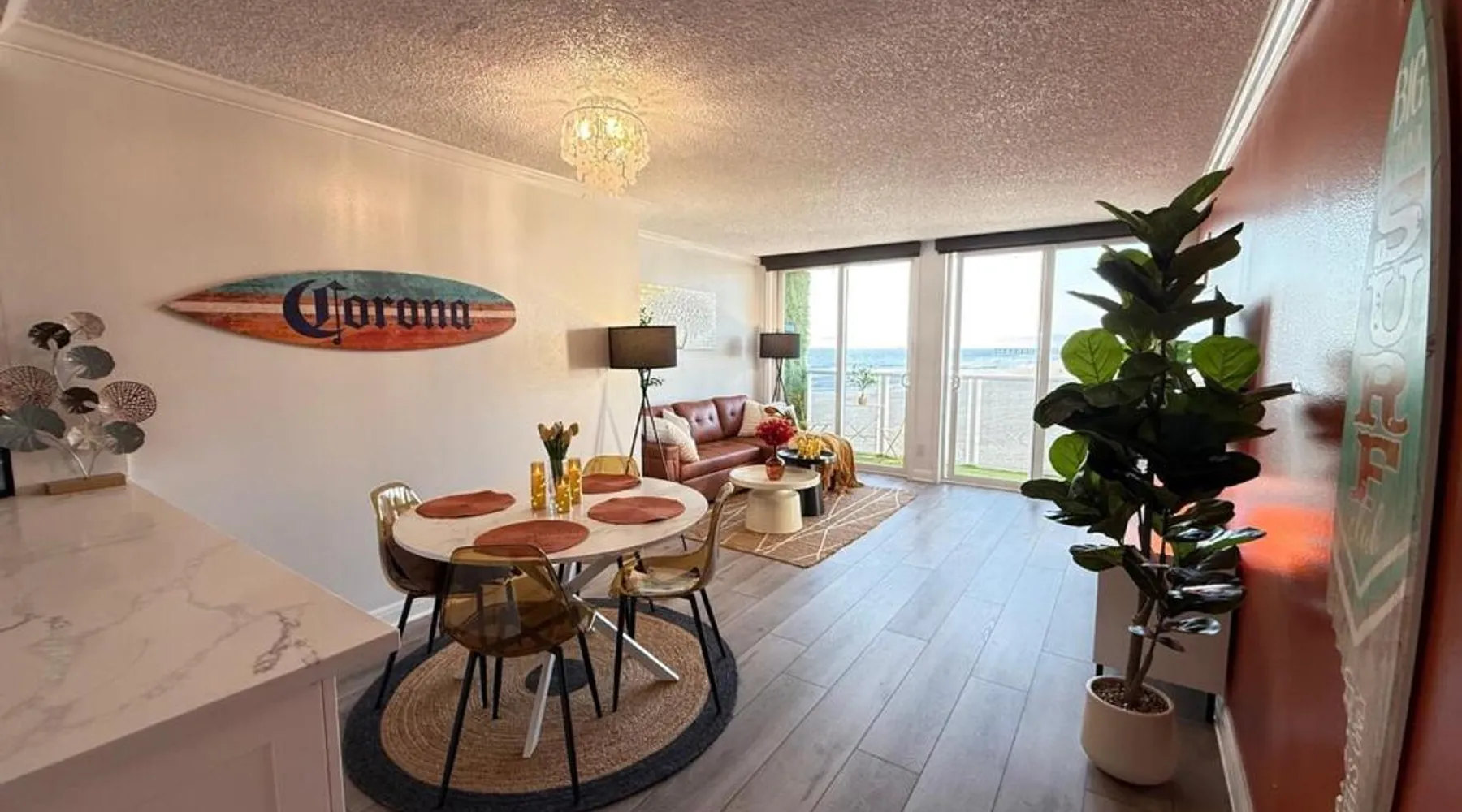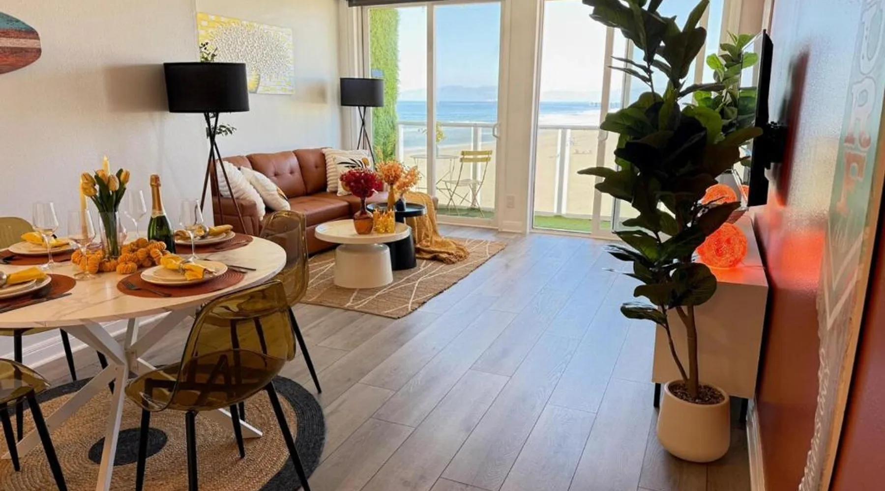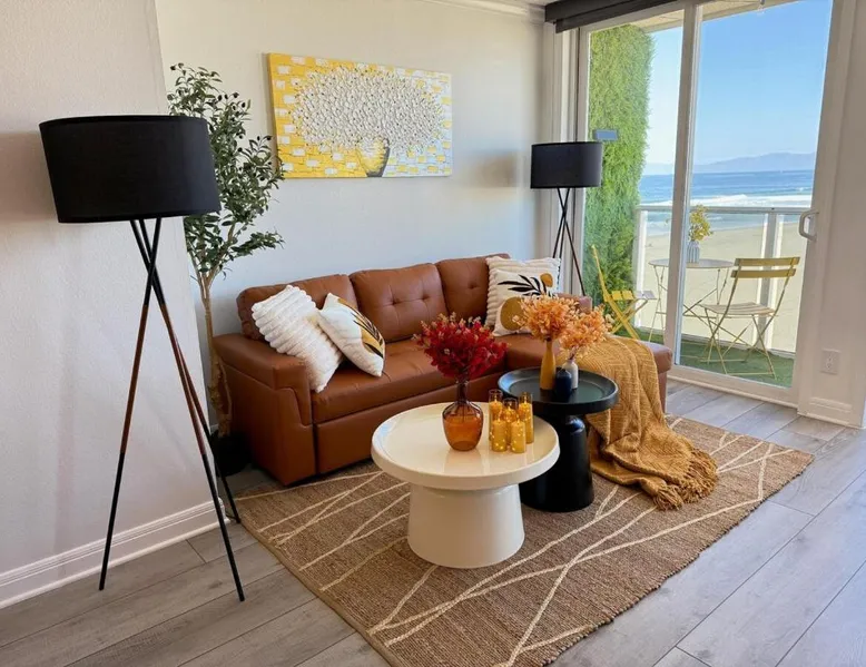 Beachfront Location: Oceanfront 2 BR w Pool & Parking 234 in Hermosa Beach offers direct beachfront access with a private beach area. Guests enjoy sea views and a terrace, perfect for relaxation. Spacious Accommodations: The apartment features one bedroom, one bathroom, and a living room. Amenities include a fully equipped kitchen, washing machine, and free WiFi. Leisure Facilities: An outdoor swimming pool, heated pool, and outdoor seating area provide entertainment. Free on-site private parking is available. Nearby Attractions: Hermosa Beach is just a few steps away, while Los Angeles International Airport is 5.6 mi distant. Other attractions include SoFi Stadium (11 mi) and Venice Beach Boardwalk (13 mi). The private pool is a top feature of this apartment. The well-fitted kitchen has a stovetop, a refrigerator, a dishwasher and an oven. The spacious apartment features a washing machine, a tea and coffee maker, a dining area, a flat-screen TV, as well as sea views. The unit has 3 beds.