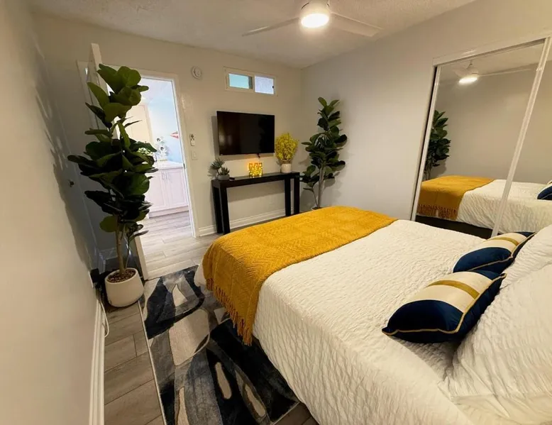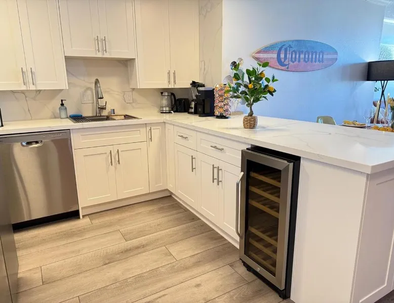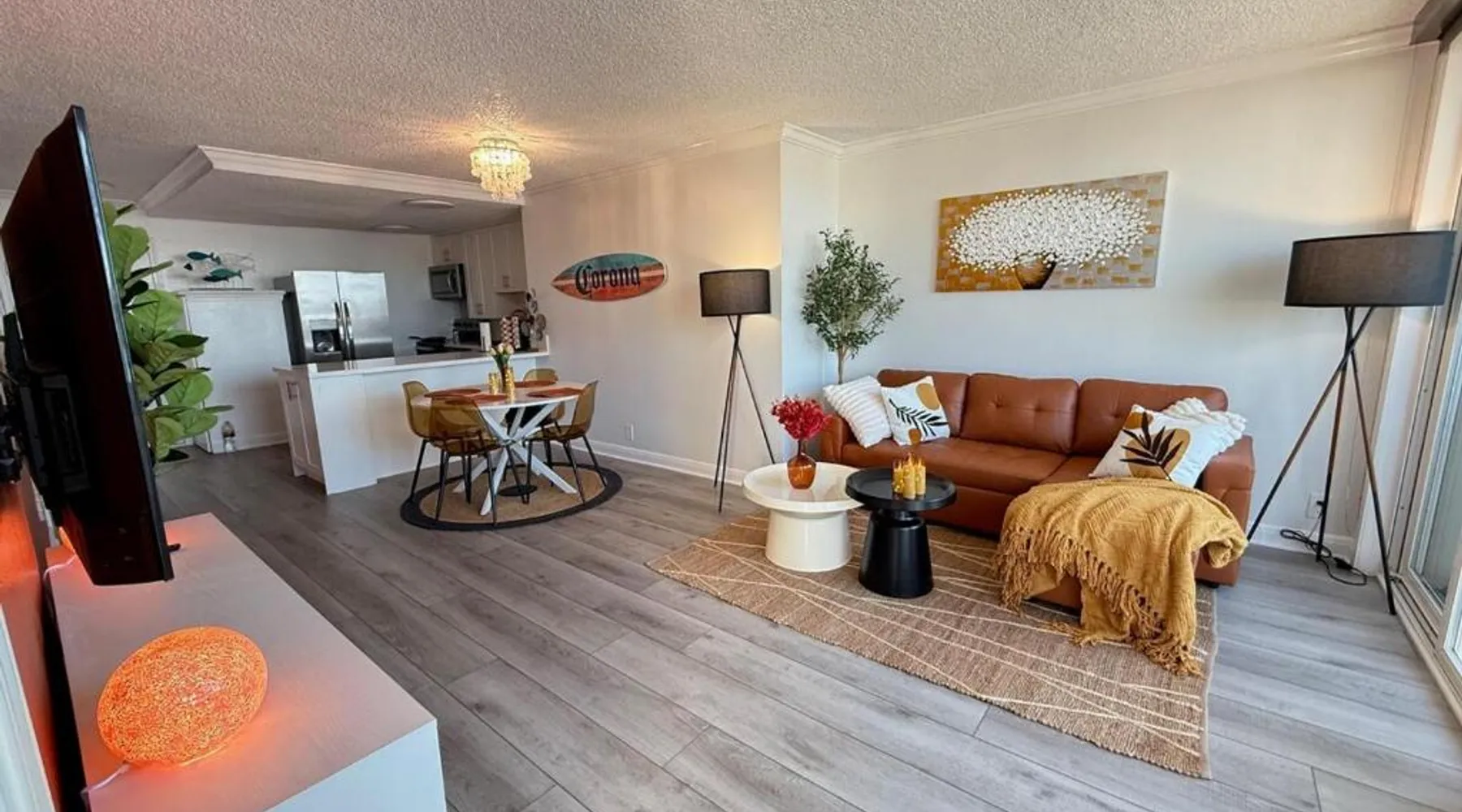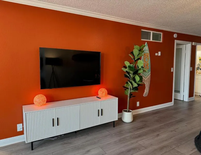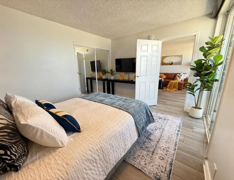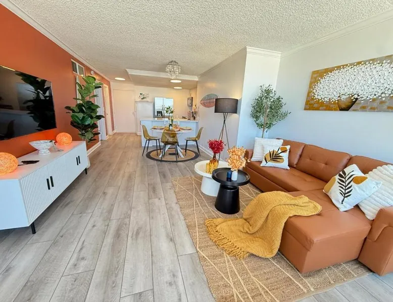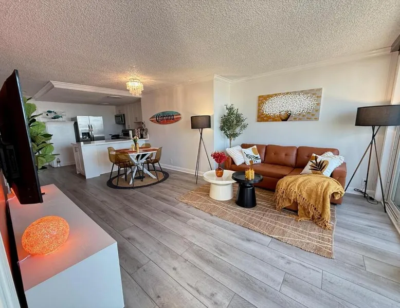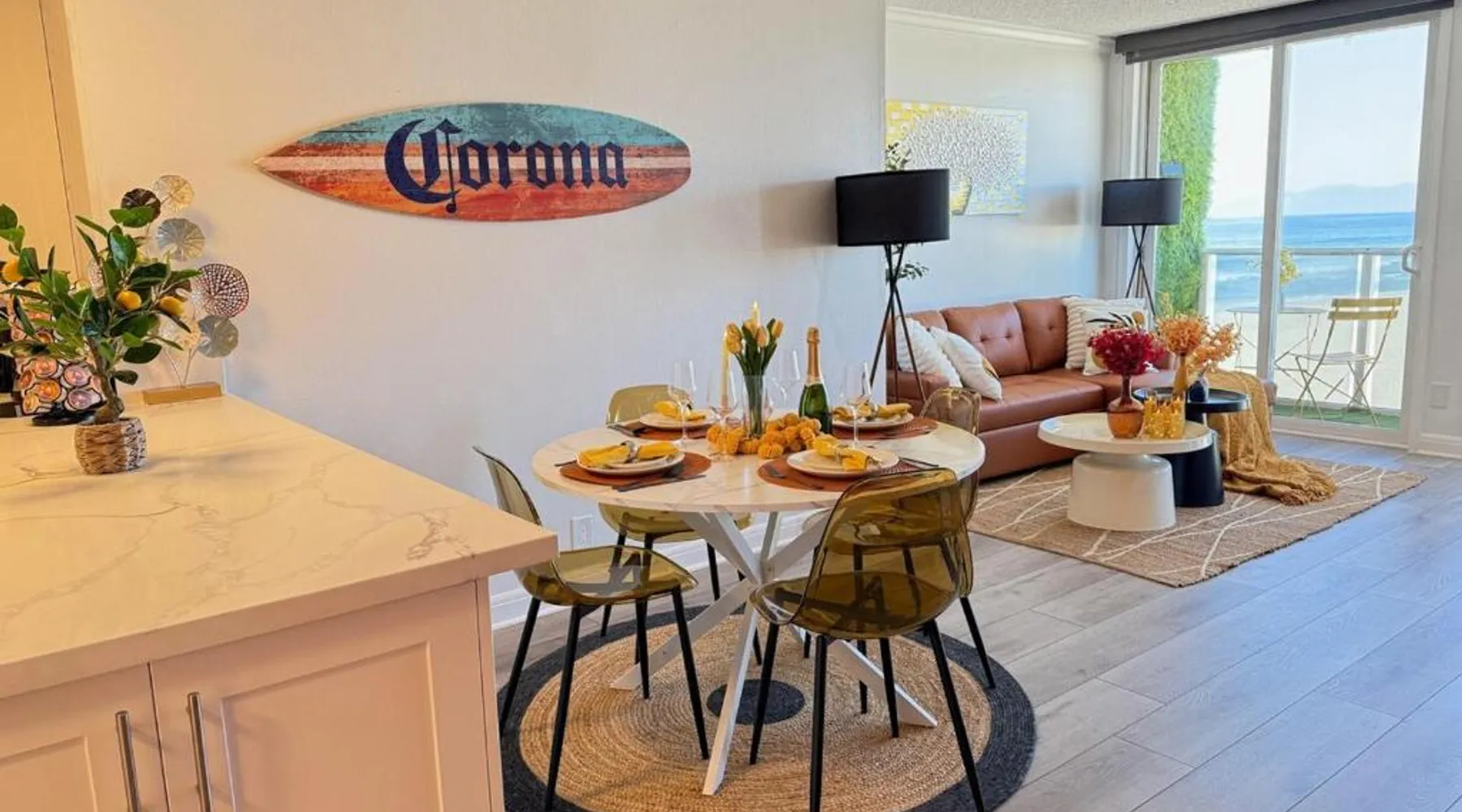 Beachfront Location: Oceanfront 2 BR w Pool & Parking 234 in Hermosa Beach offers direct beachfront access with a private beach area. Guests enjoy sea views and a terrace, perfect for relaxation. Spacious Accommodations: The apartment features one bedroom, one bathroom, and a living room. Amenities include a fully equipped kitchen, washing machine, and free WiFi. Leisure Facilities: An outdoor swimming pool, heated pool, and outdoor seating area provide entertainment. Free on-site private parking is available. Nearby Attractions: Hermosa Beach is just a few steps away, while Los Angeles International Airport is 5.6 mi distant. Other attractions include SoFi Stadium (11 mi) and Venice Beach Boardwalk (13 mi). The private pool is a top feature of this apartment. The well-fitted kitchen has a stovetop, a refrigerator, a dishwasher and an oven. The spacious apartment features a washing machine, a tea and coffee maker, a dining area, a flat-screen TV, as well as sea views. The unit has 3 beds.
