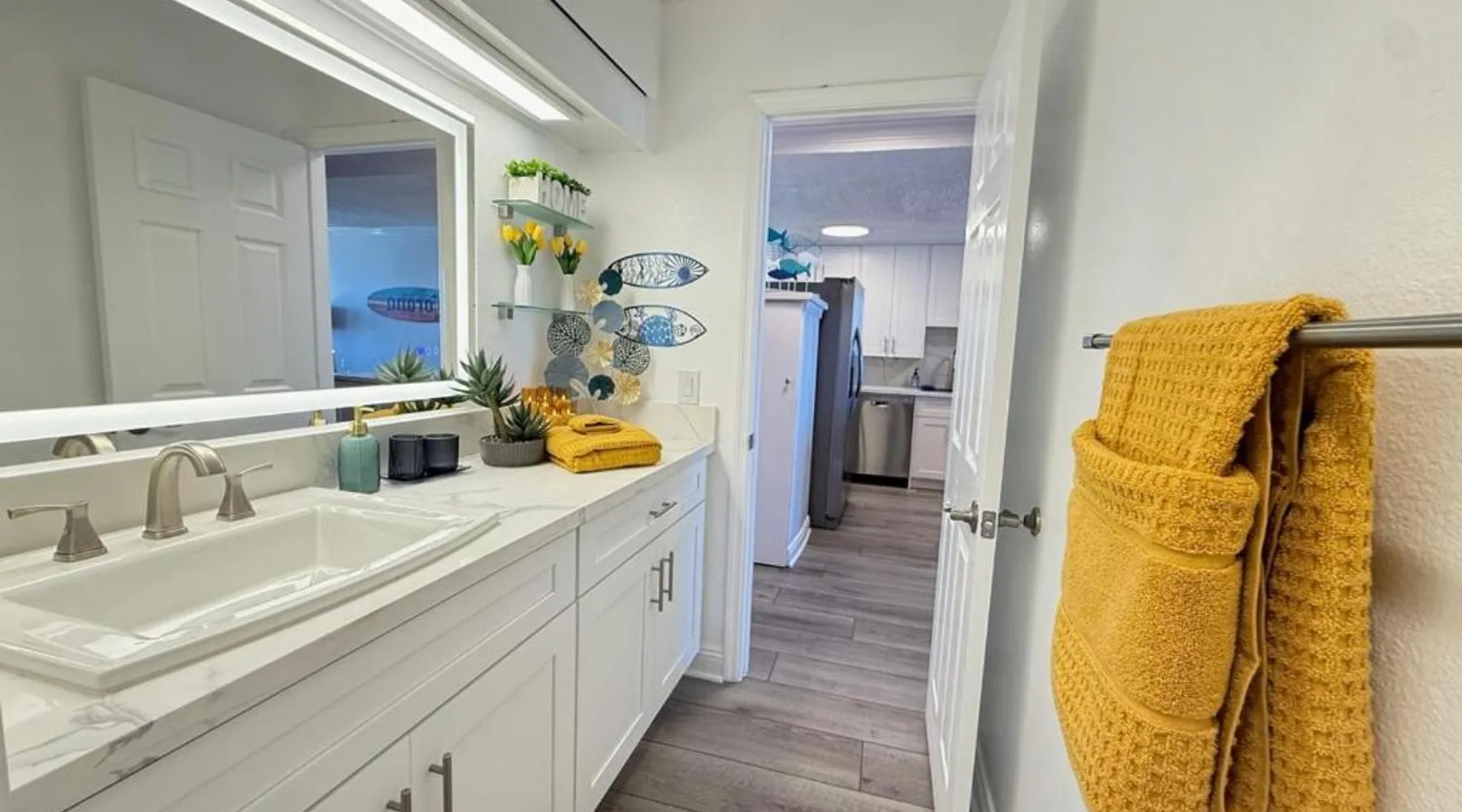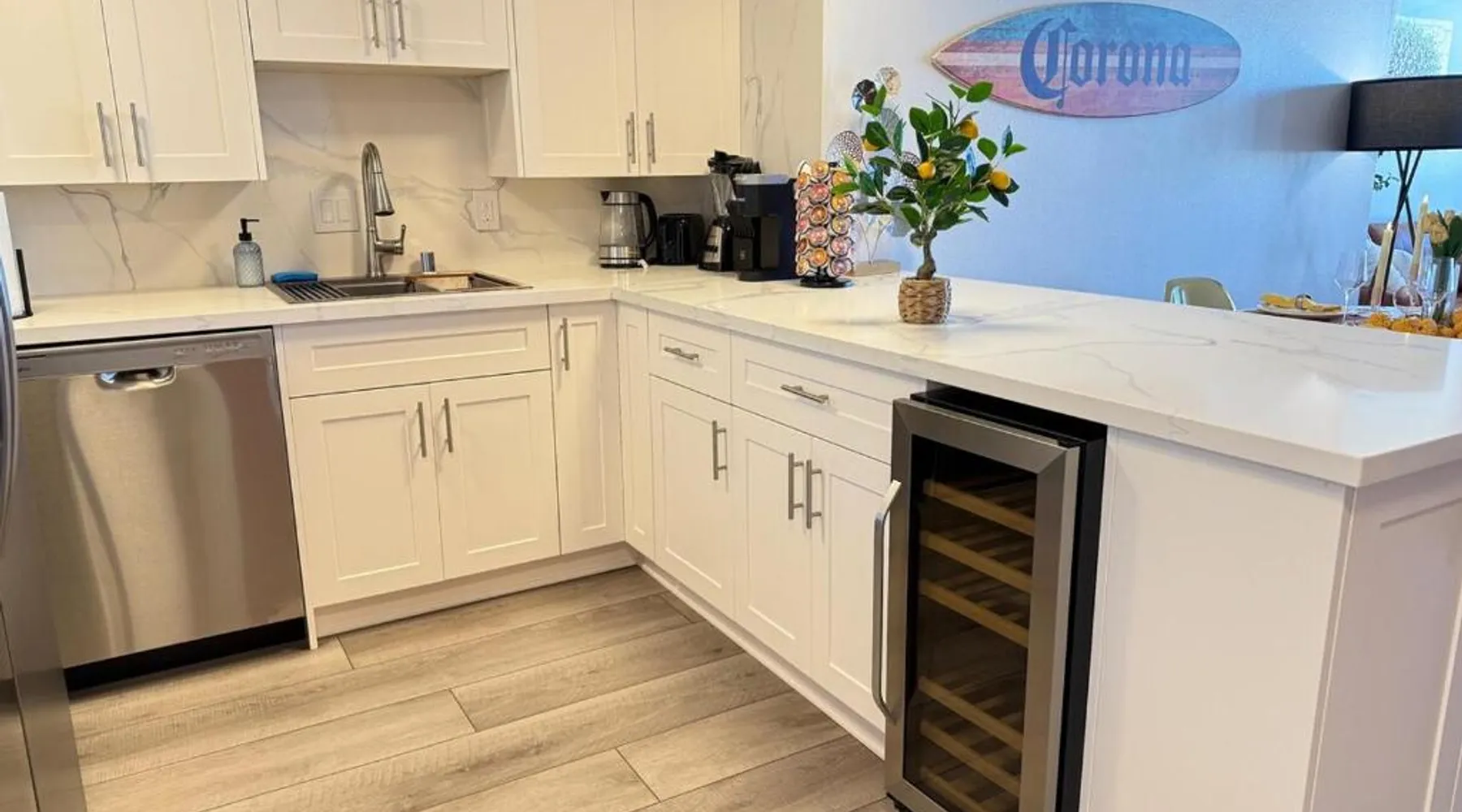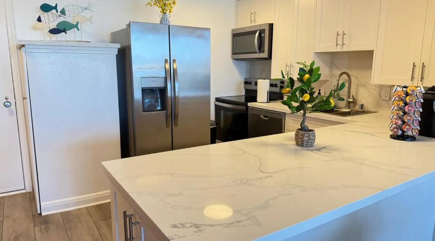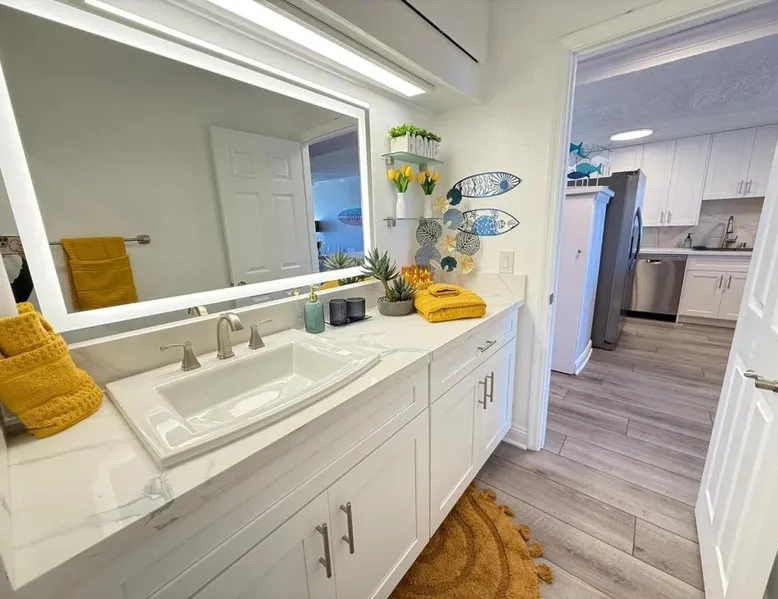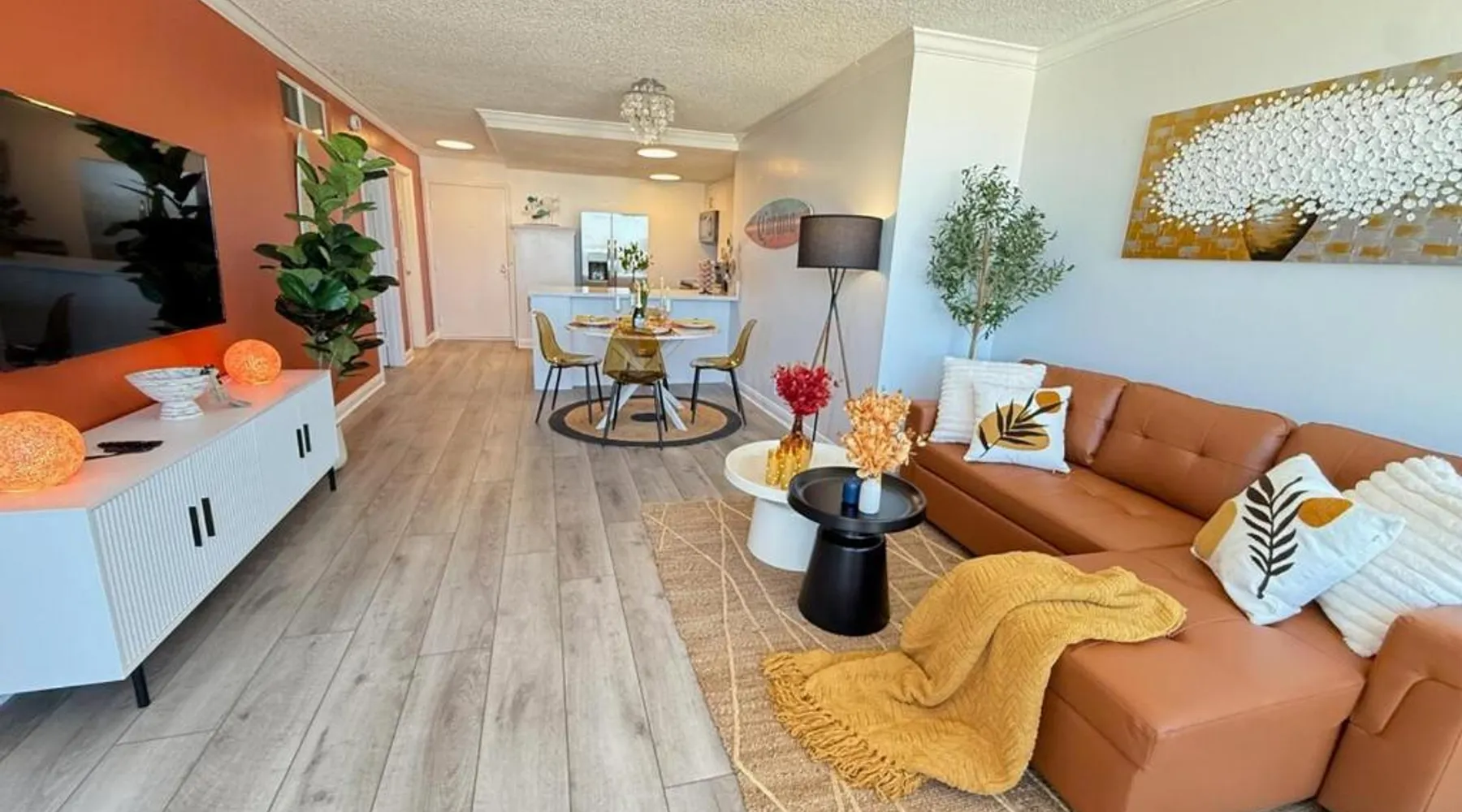 Beachfront Location: Oceanfront 2 BR w Pool & Parking 234 in Hermosa Beach offers direct beachfront access with a private beach area. Guests enjoy sea views and a terrace, perfect for relaxation. Spacious Accommodations: The apartment features one bedroom, one bathroom, and a living room. Amenities include a fully equipped kitchen, washing machine, and free WiFi. Leisure Facilities: An outdoor swimming pool, heated pool, and outdoor seating area provide entertainment. Free on-site private parking is available. Nearby Attractions: Hermosa Beach is just a few steps away, while Los Angeles International Airport is 5.6 mi distant. Other attractions include SoFi Stadium (11 mi) and Venice Beach Boardwalk (13 mi). The private pool is a top feature of this apartment. The well-fitted kitchen has a stovetop, a refrigerator, a dishwasher and an oven. The spacious apartment features a washing machine, a tea and coffee maker, a dining area, a flat-screen TV, as well as sea views. The unit has 3 beds.