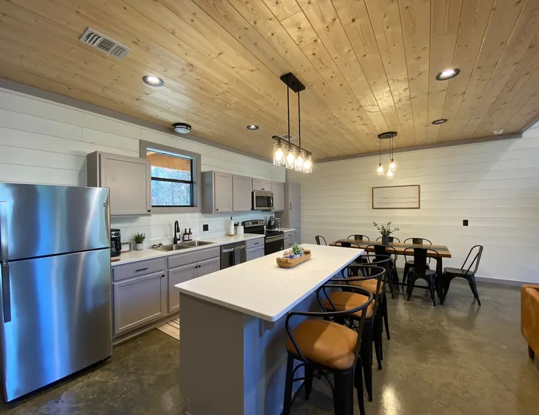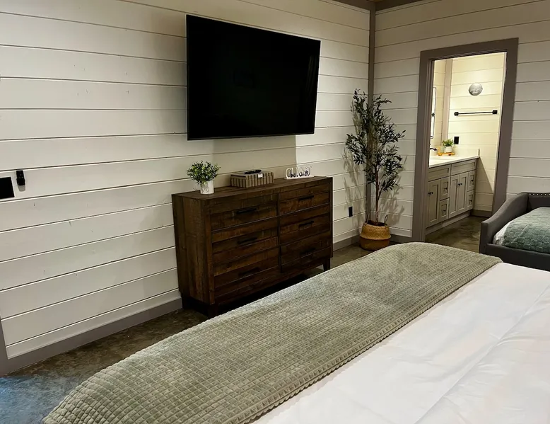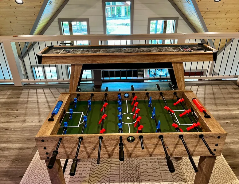 "Restful Ridge" features and fun ✔ Large 4-person hot tub with LED lighting ✔ Arcade ✔ Foosball ✔ Shuffleboard ✔ Air Hockey ✔ Fun climbing structure for kids (and Dads) ✔ Board games including GIANT Sorry ✔ Wood burning Firepit ready to roast s'mores. ✔ Large Smart TVs in the bedrooms, living room & gaming loft area for guest enjoyment ✔ 1 Gbps high speed Wi-Fi ✔ Lots of board and card games ✔ Indoor cozy gas fireplace ✔ Baby gate & baby dining seat with straps ✔ Highchair and pack n play The space ✔ Self-Check in (Smart locks) ✔ Full size washer & dryer in cabin ✔ Coffee maker ✔ Gas Grill to cook your favorite meals Restful Ridge is a beautifully designed cabin featuring both fun things to do indoors and out! Nestled back in the small neighborhood of Cedar Hills Cabins, it combines privacy, comfort and fun all families to enjoy. There is plenty of room for 1 or even 2 families to come enjoy everything Broken Bow has to offer. ☆☆ Gaming Loft ☆☆ Lets' start with fun room! You'll have a hard time getting the kids to come down for dinner while they are hanging out in this room. We have a foosball table, air hockey, 2-person arcade, shuffleboard and a GIANT size Sorry board game along with TV and pub table. streaming movies and hanging out. ☆☆ BEDROOMS ☆☆ The cabin accommodates nine guests comfortably, offering two private bedrooms with attached full bathrooms. 1 king bed with a twin over twin trundle in 1 room and the 2nd bedroom offers a twin Queen size beds. Upstairs in the game room/loft area you will find another twin over twin trundle. Both rooms have 65" HD smart TVs. ☆☆ BATHROOMS ☆☆ Two stylish bathrooms provide modern fixtures and ample space. One master bathroom boasts a double sink vanity, and shower/tub. A second full bathroom for the 2nd master bedroom as floor to ceiling tile shower. ☆☆ KITCHEN & LOUNGE ☆☆ The open-concept kitchen features stainless-steel appliances, large island, electric stove and all the accessories you need to cook a meal for your hungry family members. The granite kitchen island is perfect for family gatherings. The living room offers a cozy space with a leather sofa, chairs, an indoor fireplace, a smart TV, and plenty of board games for some friendly competition. ☆☆ OUTSIDE SPACE ☆☆ Stepping outside you will find a BBQ, hot tub, firepit, kids climbing structure and plenty of seating to enjoy the quiet evenings. Take the time to outdoor fun games and amenities all for your family to connect and have fun. The fire pit area is perfect for moonlit conversations and s'mores, while the hot tub can soothe you after a long busy week. Kids will love climbing outdoor play structure or using it as a fort. The outside lighting will allow you to enjoy your evenings long after dark! Conveniently located near Dallas, Fort Worth, Oklahoma City, Tulsa, Little Rock, and Shreveport, "Restful Ridge" in Broken Bow, Oklahoma, offers a fantastic cabin experience. Whether it's a quick trip or a relaxing vacation, this chalet promises a wonderful time amid nature activities, hiking trails, entertainment and great restaurants. ☆☆ DISTANCE TO AREA ATTRACTIONS ☆☆ 19 Mins Drive to Beaver's Bend Marina on Broken Bow Lake 11 Mins Drive to Hochatown Petting Zoo 14 Mins Drive to Beavers Bend Brewery 20 Mins to Beavers Bend Train Depot and Trail Rides 13 Mins to many restaurants 14 Mins to The Maze and mini golf ★☆ Book Today & Let Us Host You in Broken Bow! ☆★ Guest access As guests, your group will have this entire cozy cabin all to yourselves. This includes comfy bedrooms, cozy living spaces tastefully decorated furnishings, and fun indoor/outdoor amenities. There is so much to do just at the cabin, you won't want to leave! There’s plenty of free parking on the property. Fast wifi (speeds up to 1 Gbps) is available throughout the property, so you’ll be able to stream for fun or work. Other things to note ACCESS: Check in is at 4pm and checkout is at 10am. We are not able to accommodate early or late checkins/outs during busy times or same day checkins/outs for guests. The property features self-checkin using an electronic smart lock keypad. A unique door code will be provided at least 48 hours before check-in. RULES ✔ No more than the max number of guests allowed at the property based on the reservation. ✔ Quiet hours are from 10pm to 9am in respect of other surrounding properties. ✔ Avoid the use of hair dyes, hair coloring and other products that could stain linens. ✔ No fireworks, candles or discharging of firearms allowed. ✔ If the property is left excessively dirty it could require an additional cleaning fee. ✔ An adult of at least 18 years old must supervise all kids around the hot tub & fire features. DAMAGE WAIVER OR DEPOSIT: As part of the reservation, we do require a damage waiver fee charged or damage deposit. RENTAL AGREEMENT: We ask guests to sign a rental agreement for their reservation. RECOMMENDATIONS: We encourage all guests to purchase rental insurance should something unexpected come up and impact your stay. We must follow our refund policy. NO SMOKING: or use of fire permitted in the rental. Guest acknowledges that no “smoking” includes the use of vape pens and marijuana and “use of fire” includes lighting of candles, incense or sage. There will be a $500 charge if this rule is not followed. SECURITY CAMERAS: Renters acknowledge and accept that the property is monitored by outdoor security cameras to protect the property. GAS FIREPLACE(S): These are turned off from Mid-May to Mid-September in the warmer months. PETS: Pets are not allowed. Some guests have medical or allergy reasons for staying at places that don't allow pets, and some people simply prefer it. We have to maintain that consistency for our guests. We can't be partly pet friendly and partly not. While we wish we could accommodate this, it is just a policy we can't bend on. NOTICE: All gues