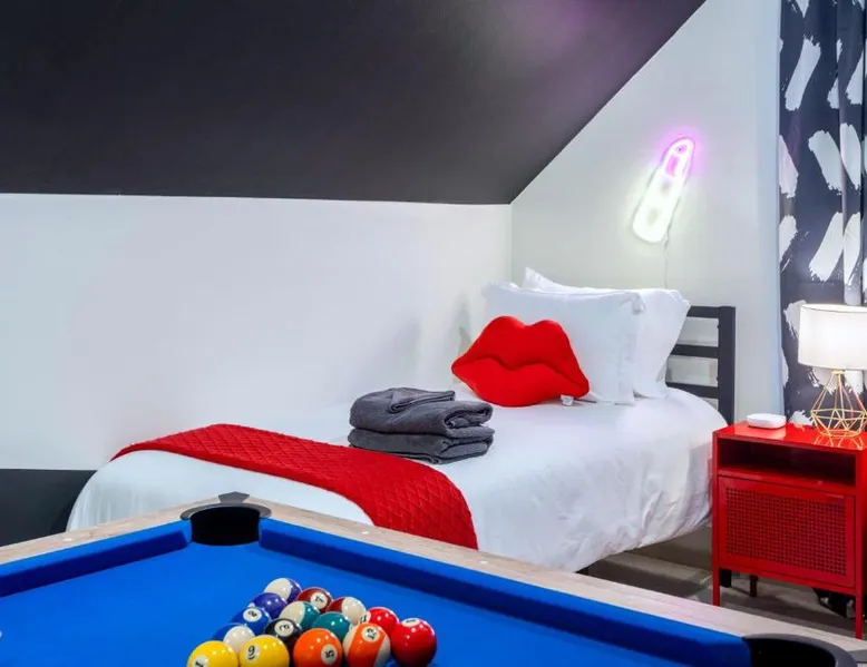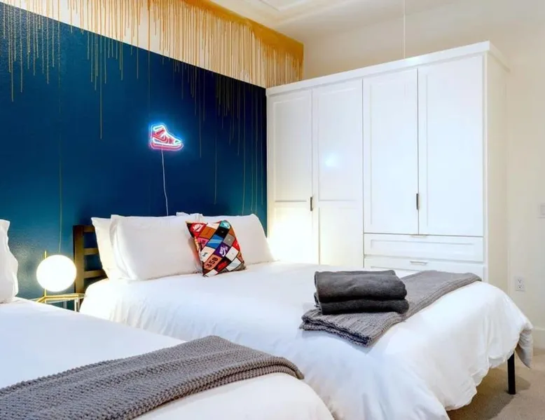 Spacious Holiday Home in Austin: Check-Mate Sleeps 18 & only 7min to Downtown ATX offers a spacious holiday home in Austin. The property features six bedrooms and three bathrooms, ensuring ample space for all guests. Modern Amenities: Guests enjoy free WiFi, air-conditioning, and a fully equipped kitchen with a dishwasher and microwave. Additional amenities include a washing machine, patio, and outdoor furniture. Convenient Location: Located 5.6 mi from Austin-Bergstrom International Airport and 1.1 mi from Disch-Falk Field, the property provides easy access to local attractions. Nearby points include the Capitol Building (2.1 mi) and Circuit of the Americas (15 mi). Boasting a private entrance, this spacious holiday home also includes 6 separate bedrooms and 3 bathrooms with a bath and a hairdryer. In the well-fitted kitchen, guests will find a stovetop, a refrigerator, a dishwasher and kitchenware. The air-conditioned holiday home offers a TV with cable channels, a washing machine, a tea and coffee maker, a wardrobe as well as city views. The unit has 9 beds.