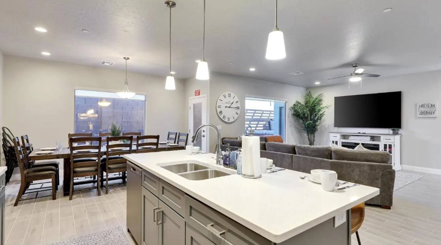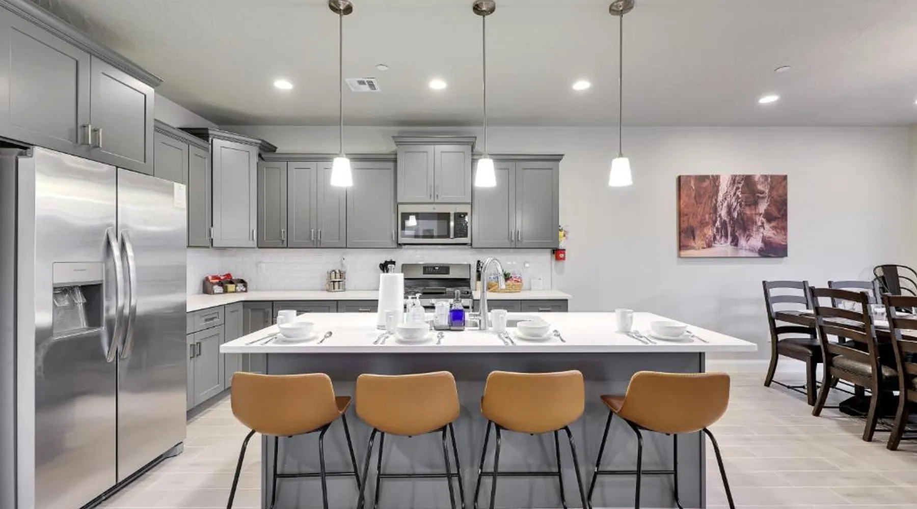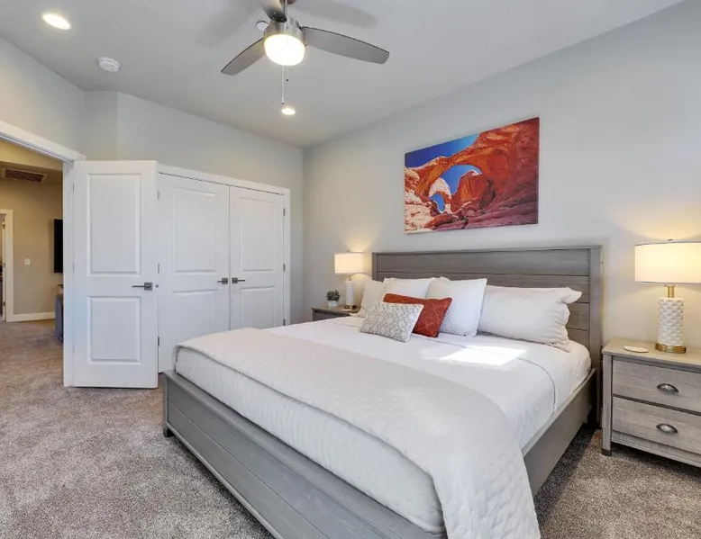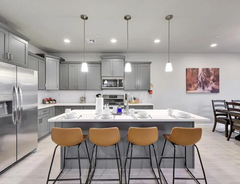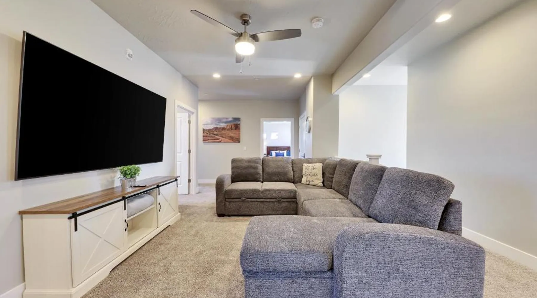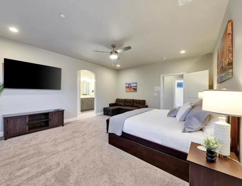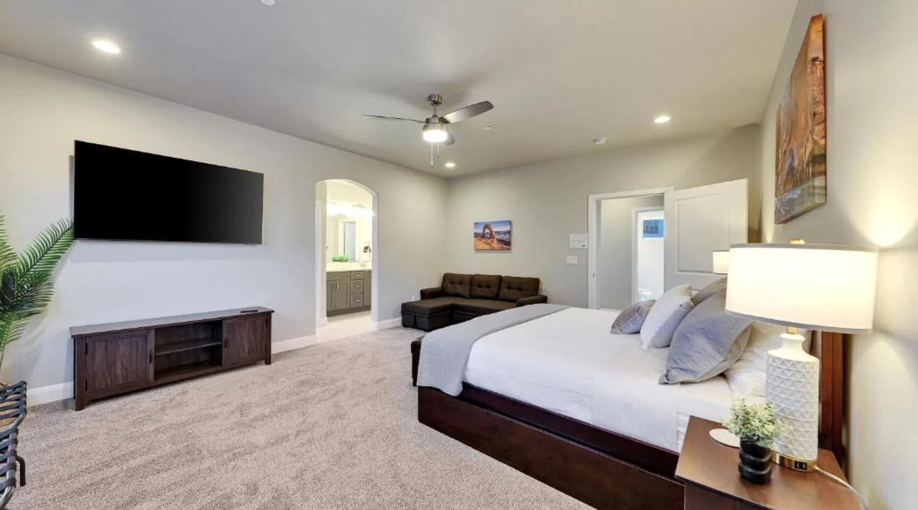 Spacious Accommodations: Zion Village PLAYcation - 2 in Hurricane offers a spacious holiday home with six bedrooms and four bathrooms. The property features a terrace, balcony, and mountain views. Leisure Facilities: Guests can enjoy an outdoor swimming pool, outdoor fireplace, steam room, fitness room, hot tub, and children's playground. Additional amenities include a games room and outdoor seating area. Convenient Location: Located 22 mi from St. George Regional Airport, the property is near attractions such as St George Temple (17 mi) and Pine Valley Chapel (13 mi). Skiing and cycling activities are available nearby. This holiday home's special feature is the hot tub. Featuring a private entrance, this spacious holiday home also consists of 6 bedrooms, a seating area and 4 bathrooms with a walk-in shower and a hairdryer. Guests will find a stovetop, a refrigerator, a dishwasher and kitchenware in the fully equipped kitchen. The holiday home also provides guests with a barbecue. This air-conditioned holiday home consists of a dining area, a TV with streaming services a washing machine and a terrace. The unit offers 13 beds.