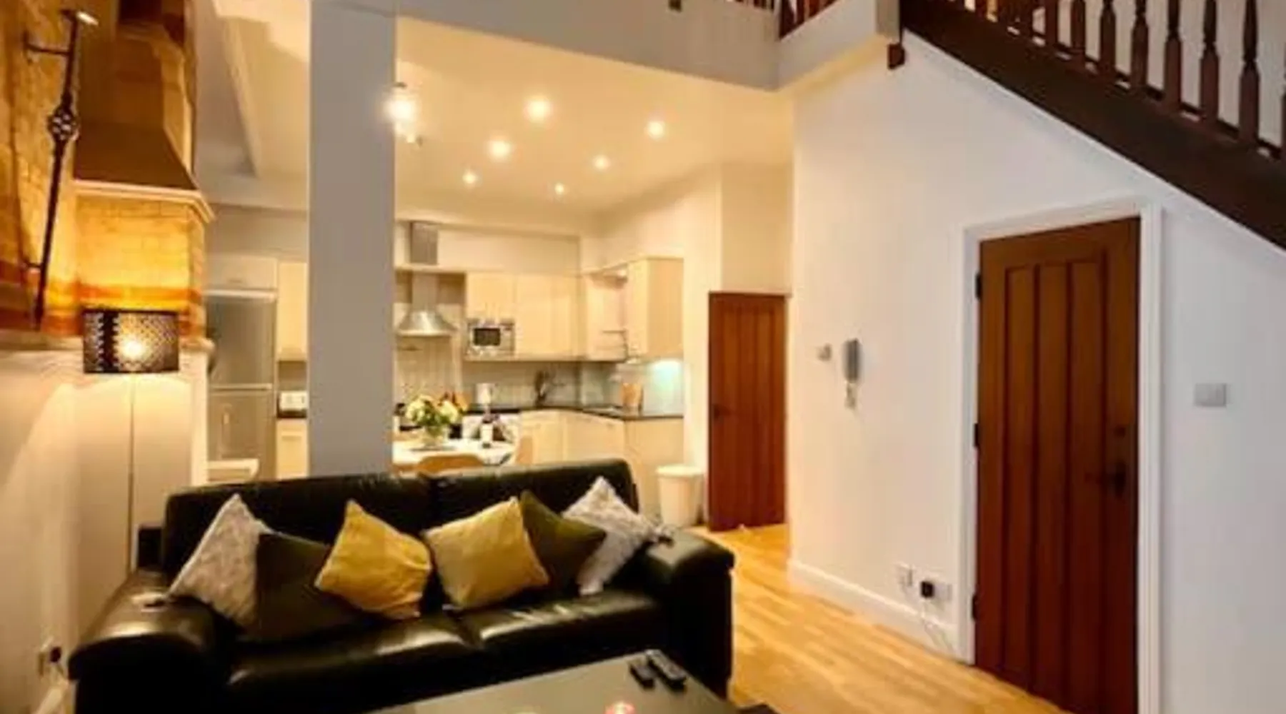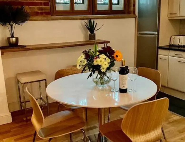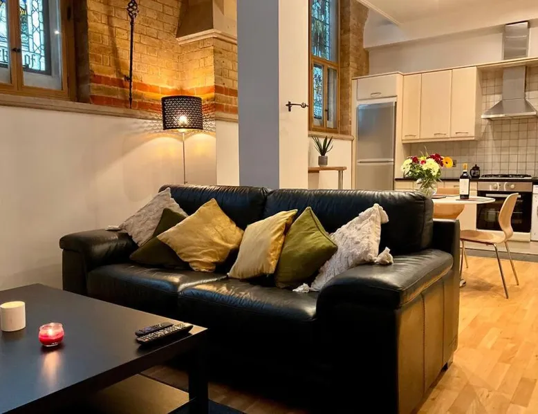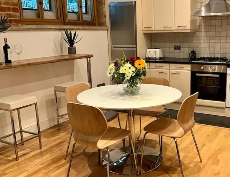 Historic Setting: Magical Church Conversion in Watford is housed in a historic building, offering a spacious apartment with garden views. The property features parquet floors and a dining area, providing a comfortable and unique stay. Modern Amenities: Guests enjoy free WiFi, a fully equipped kitchen, washing machine, and streaming services. The apartment includes three bedrooms and two bathrooms, ensuring ample space for relaxation and comfort. Convenient Location: Located 17 mi from London Luton Airport, the apartment is a short walk from Watford Junction and Watford Stadium. Nearby attractions include The Grove and Watford Central Library, each within 0.7 mi. Local Activities: Boating is available in the surrounding area, providing additional leisure options for visitors. The spacious apartment has 3 bedrooms and 2 bathrooms with a bath and free toiletries. The well-equipped kitchen features a stovetop, a refrigerator, a dishwasher and kitchenware. The apartment offers a washing machine, a dining area, a wardrobe, a flat-screen TV with streaming services, as well as garden views. The unit has 4 beds.