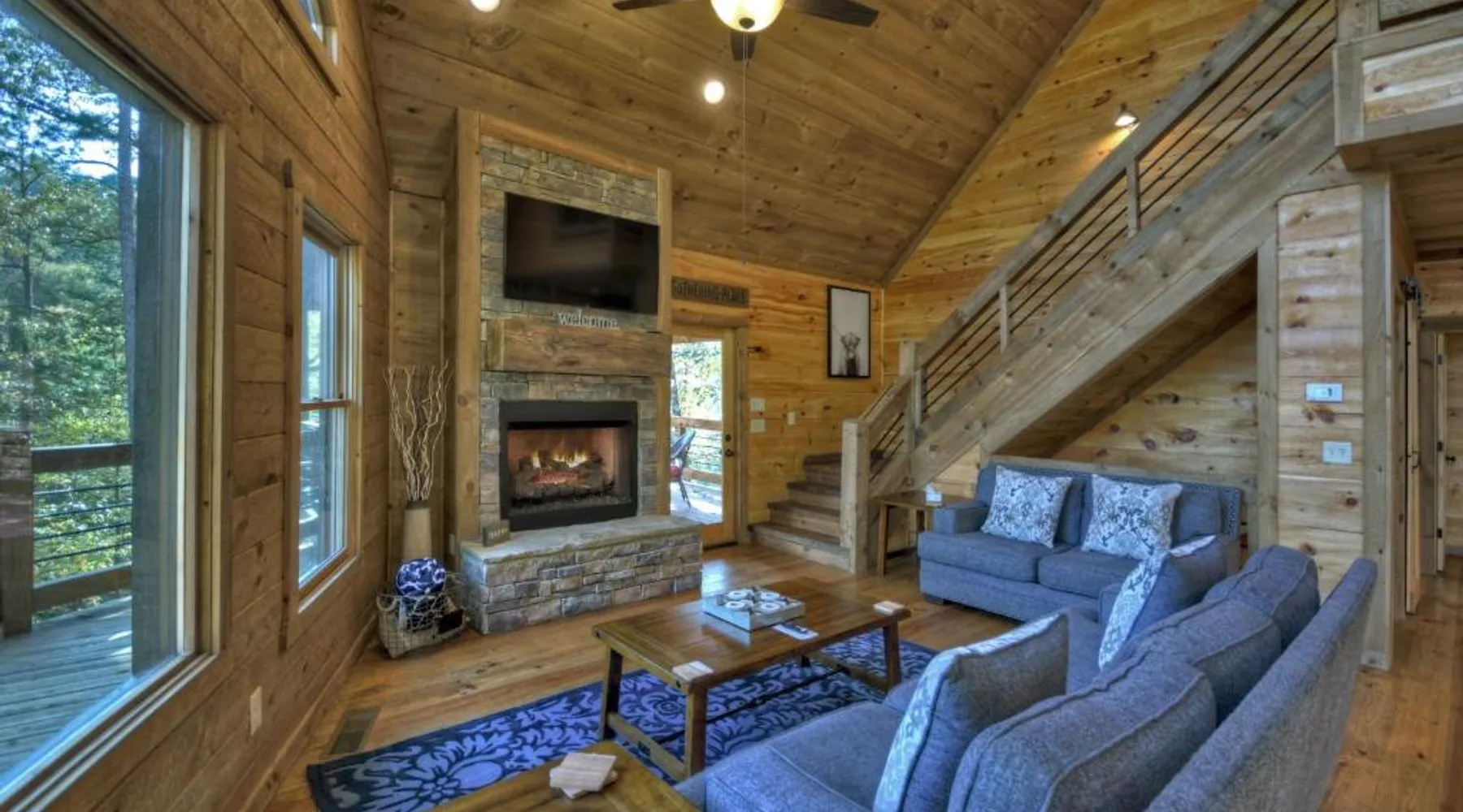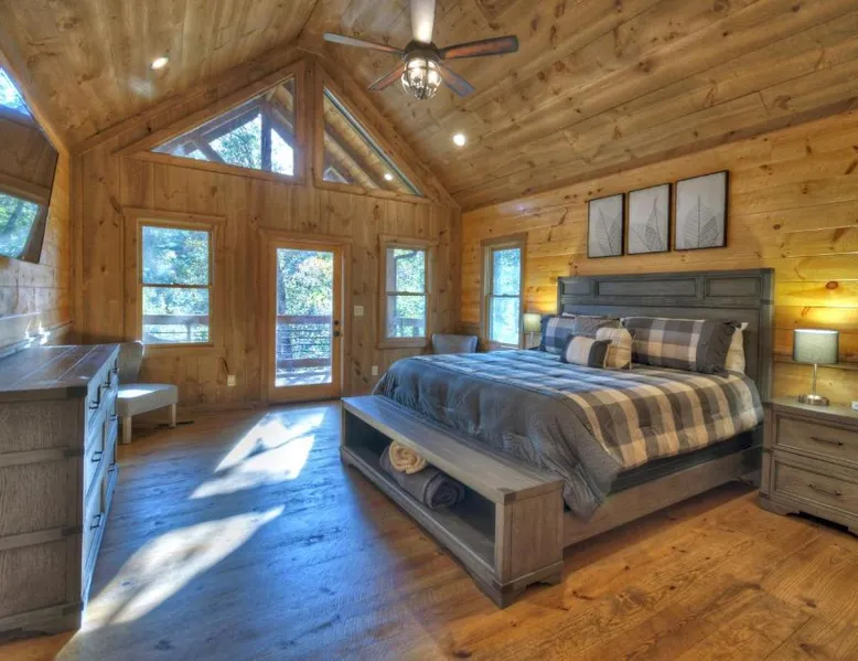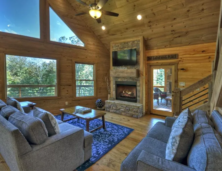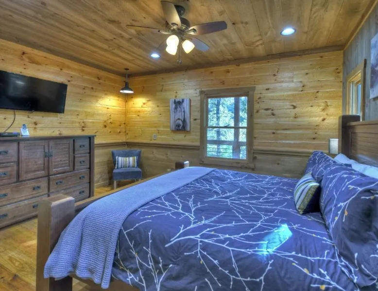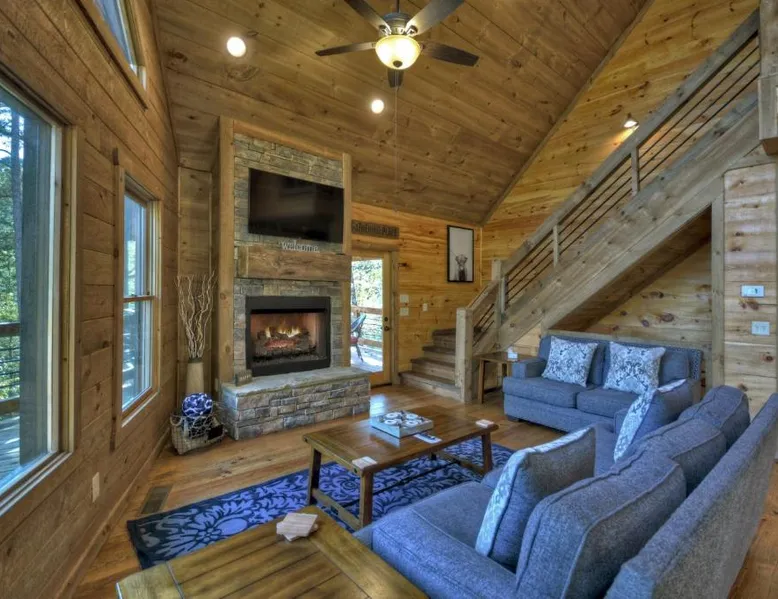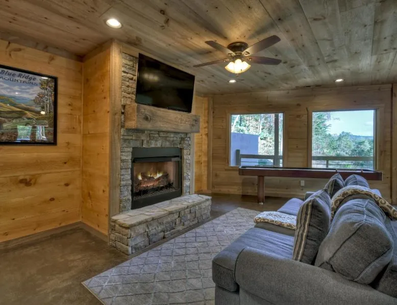 Spacious Accommodations: Cedar Ridge - Secluded Mineral Bluff Cabin in Mineral Bluff offers three bedrooms and three bathrooms. The property features a private entrance and a spacious layout, ensuring comfort for all guests. Modern Amenities: Guests enjoy free WiFi, air-conditioning, and a fully equipped kitchen with a refrigerator, oven, stovetop, microwave, dishwasher, and toaster. Additional amenities include a washing machine, dining table, sofa, and outdoor seating area. Outdoor Leisure: The holiday home offers a hot tub, outdoor fireplace, and games room. Mountain views enhance the relaxing atmosphere, while the outdoor furniture provides ample space for outdoor activities. Convenient Location: Located 73 mi from Chattanooga Metropolitan Airport, the property provides free on-site parking and is surrounded by stunning scenery. This holiday home's special feature is the fireplace. Featuring a private entrance, this air-conditioned holiday home consists of 3 bedrooms, 3 bathrooms and a kitchen. Guests will find a stovetop, a refrigerator, a dishwasher and kitchenware in the kitchen. The holiday home also offers a barbecue. The spacious holiday home provides a washing machine, a mini-bar, tumble dryer, as well as outdoor furniture. The unit offers 3 beds.