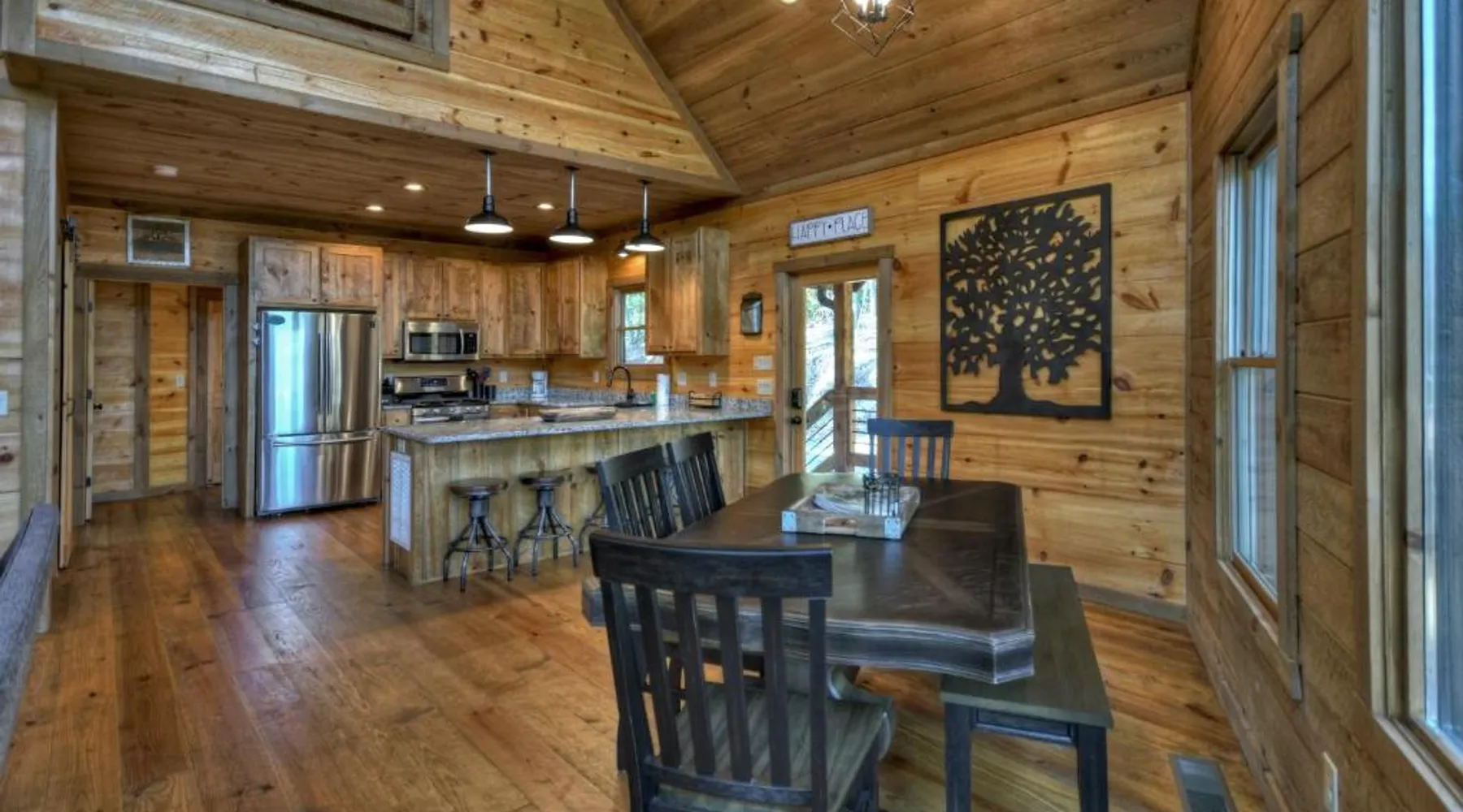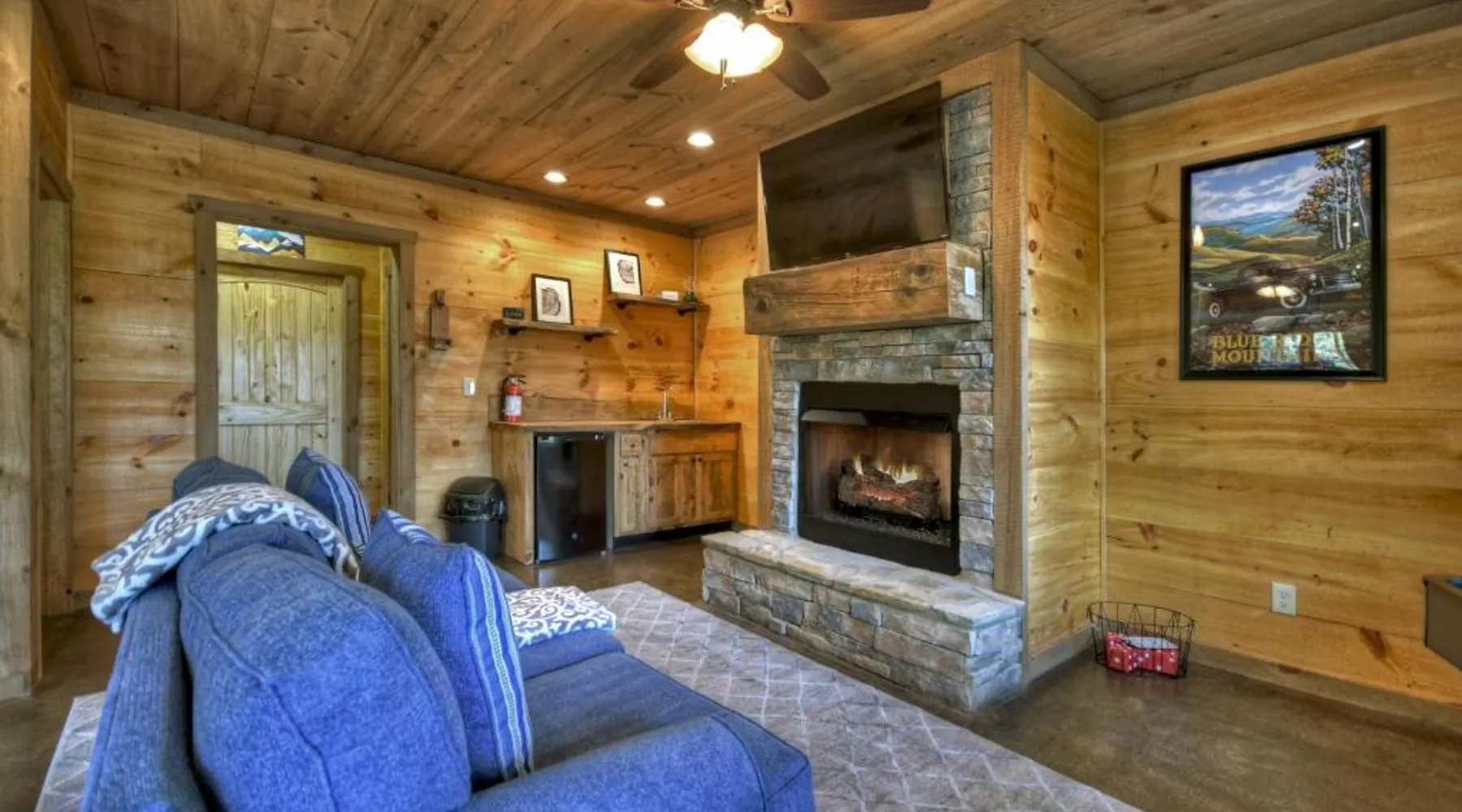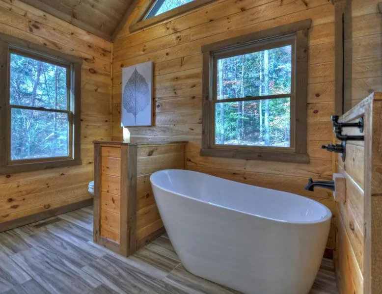Spacious Accommodations: Cedar Ridge - Secluded Mineral Bluff Cabin in Mineral Bluff offers three bedrooms and three bathrooms. The property features a private entrance and a spacious layout, ensuring comfort for all guests. Modern Amenities: Guests enjoy free WiFi, air-conditioning, and a fully equipped kitchen with a refrigerator, oven, stovetop, microwave, dishwasher, and toaster. Additional amenities include a washing machine, dining table, sofa, and outdoor seating area. Outdoor Leisure: The holiday home offers a hot tub, outdoor fireplace, and games room. Mountain views enhance the relaxing atmosphere, while the outdoor furniture provides ample space for outdoor activities. Convenient Location: Located 73 mi from Chattanooga Metropolitan Airport, the property provides free on-site parking and is surrounded by stunning scenery. This holiday home's special feature is the fireplace. Featuring a private entrance, this air-conditioned holiday home consists of 3 bedrooms, 3 bathrooms and a kitchen. Guests will find a stovetop, a refrigerator, a dishwasher and kitchenware in the kitchen. The holiday home also offers a barbecue. The spacious holiday home provides a washing machine, a mini-bar, tumble dryer, as well as outdoor furniture. The unit offers 3 beds.
