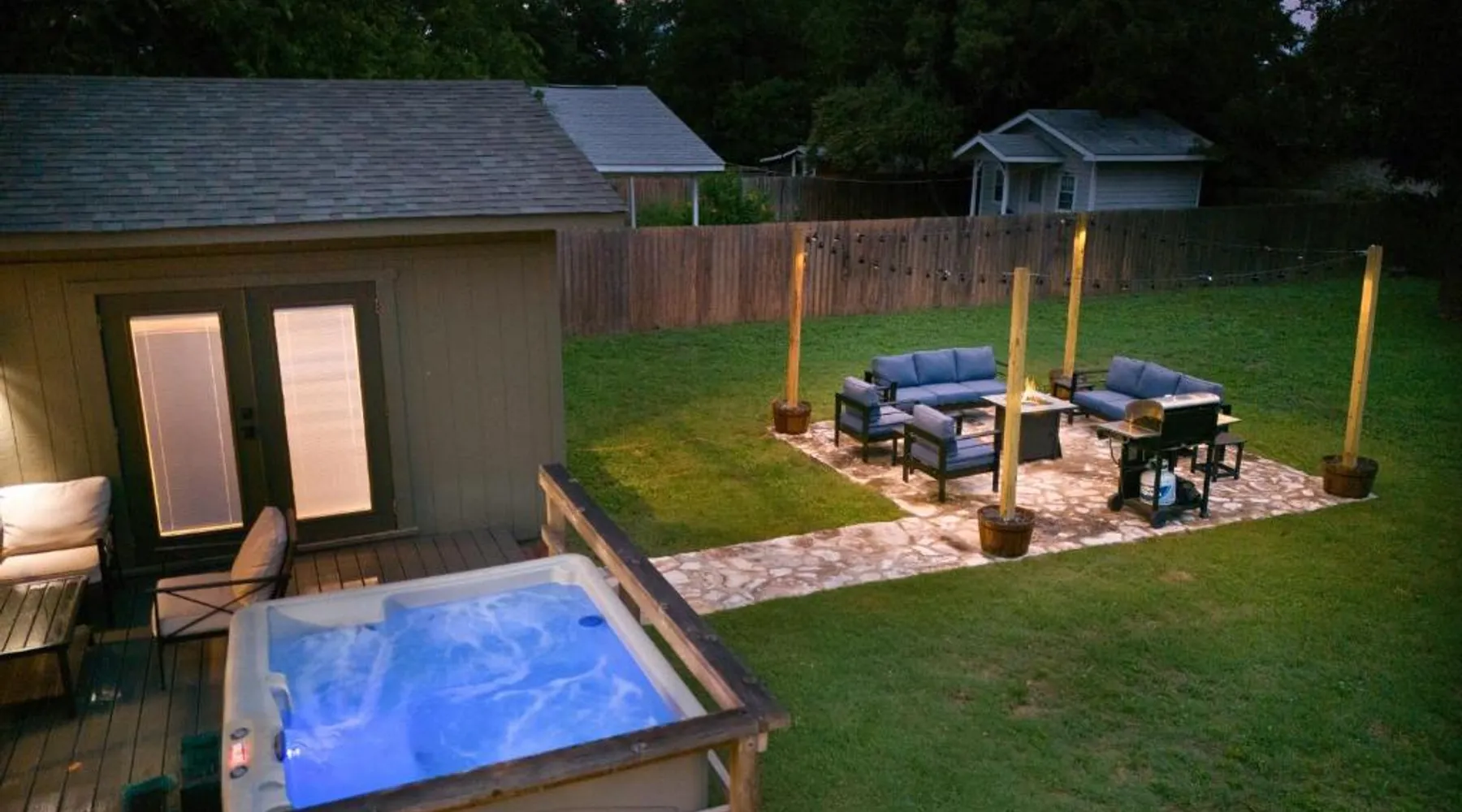 Spacious Accommodations: The Olive Branch in Fredericksburg offers a spacious holiday home with three bedrooms and two bathrooms. Guests enjoy a private entrance and a fully equipped kitchen with modern appliances. Outdoor Amenities: The property features a beautiful garden and a patio area. A hot tub provides relaxation, while free WiFi ensures connectivity. A games room offers entertainment for all ages. Convenient Facilities: Free on-site parking is available. Additional amenities include air-conditioning, a washing machine, and a barbecue. The kitchen is equipped with a refrigerator, microwave, dishwasher, and oven. Local Attractions: Enchanted Rock State Natural Area is 19 mi away, and San Antonio International Airport is 68 mi from the property. This holiday home features a hot tub. Boasting a private entrance, this spacious holiday home also includes 3 separate bedrooms and 2 bathrooms with a bath and a hairdryer. Guests will find a stovetop, a refrigerator, a dishwasher and kitchenware in the fully equipped kitchen. The holiday home also features a barbecue. Featuring a patio, this holiday home also offers air conditioning, a washing machine and a TV. The unit has 4 beds.
