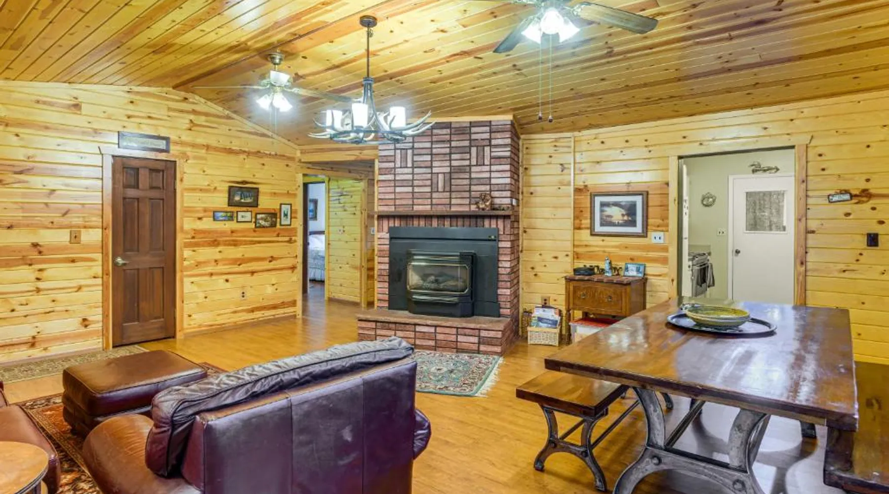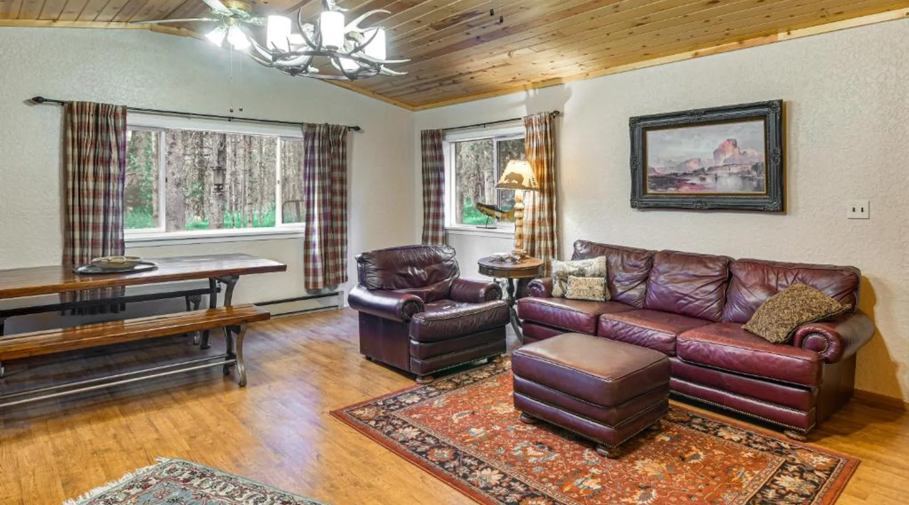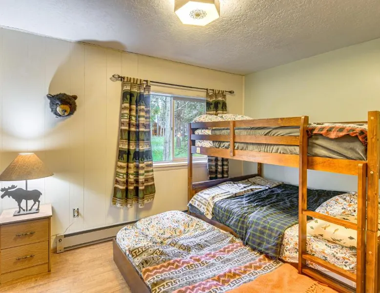 Spacious Accommodations: Island Park Fishing Cabin in Island Park offers a spacious holiday home with four bedrooms and two bathrooms. The living room features a comfortable seating area, ideal for relaxation. Modern Amenities: Guests enjoy free WiFi, a fully equipped kitchen with a refrigerator, oven, stovetop, and kitchenware. Additional amenities include a washing machine, fireplace, dining table, and outdoor dining area. Convenient Location: Located 29 mi from Yellowstone National Park, the property is also close to the National Geographic Imax Theater, Yellowstone Historic Center Museum, and Grizzly & Wolf Discovery Center, each 30 mi away. This holiday home features a fireplace. This spacious holiday home features 1 living room, 4 separate bedrooms and 2 bathrooms with a shower and free toiletries. In the fully equipped kitchen, guests will find a stovetop, a refrigerator, kitchenware and an oven. The holiday home features a washing machine, a private entrance, tumble dryer along with an outdoor dining area. The unit has 7 beds.