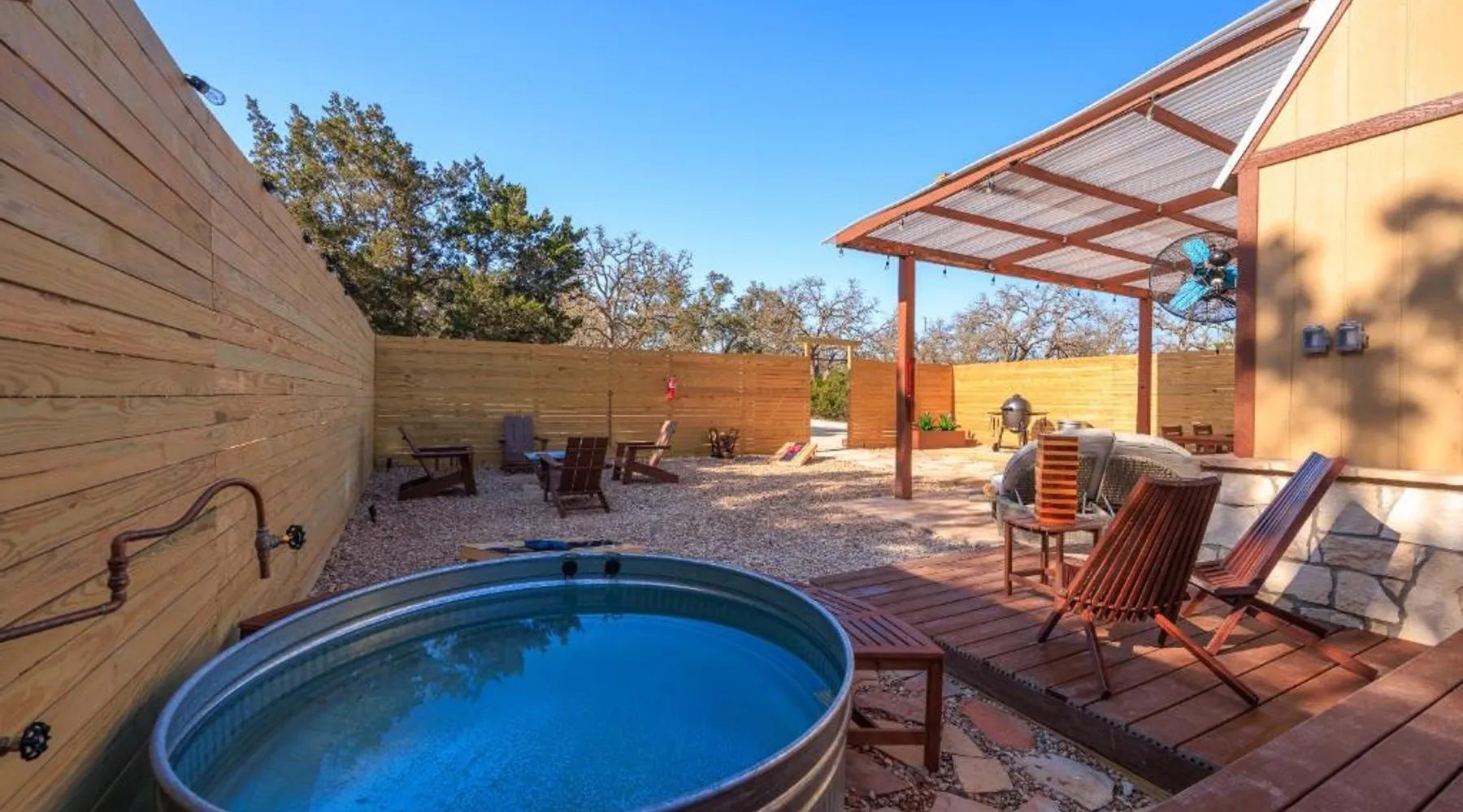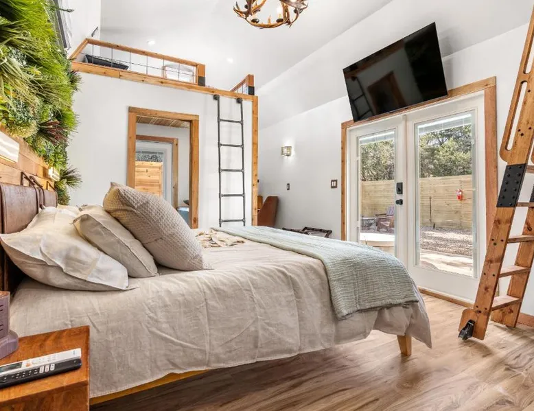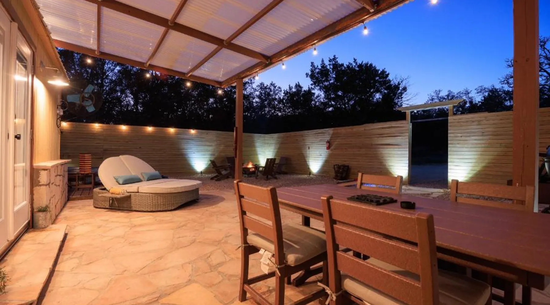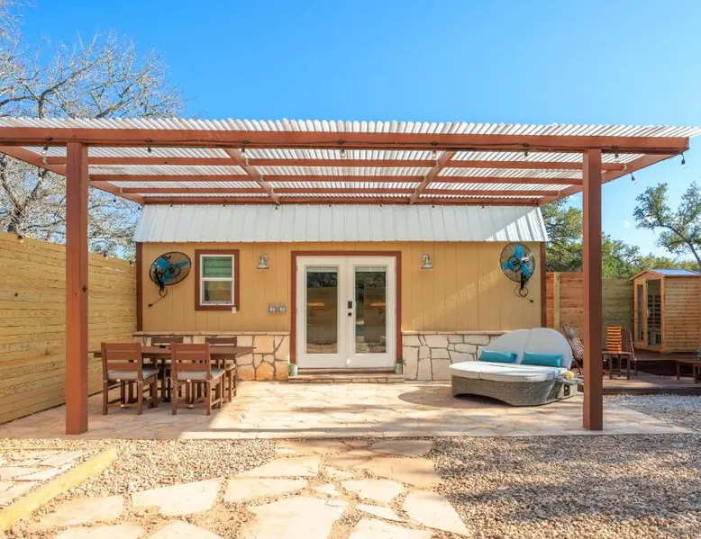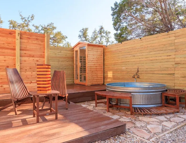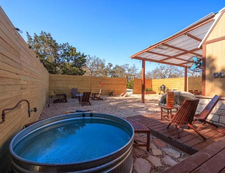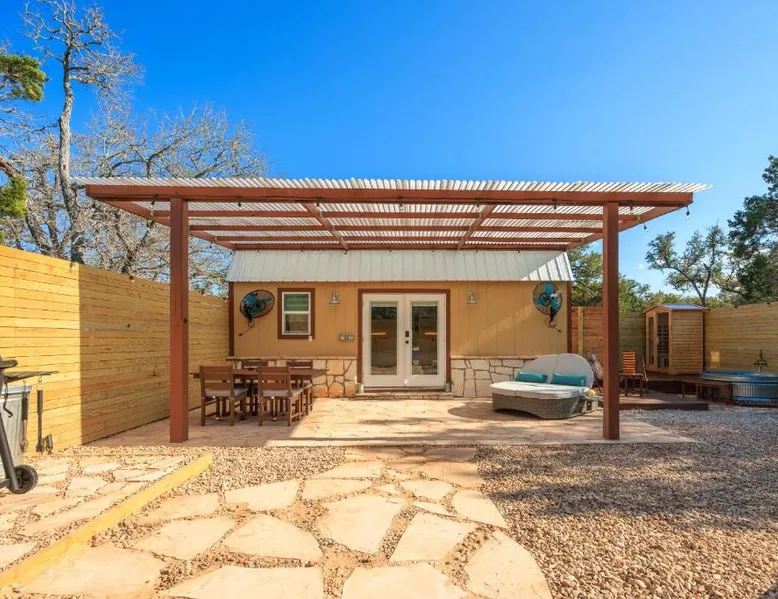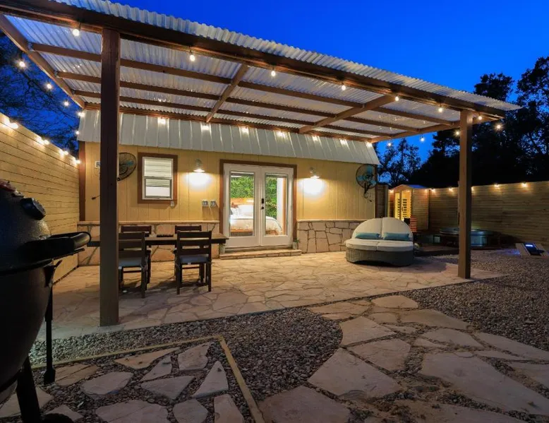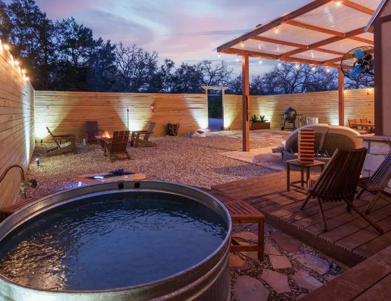 Elegant Accommodations: Romantic Luxury Retreat hot cold pool & sauna in Wimberley offers a villa with two bedrooms and a private pool. Guests enjoy a garden, sauna, and free WiFi. Comfortable Amenities: The property features air-conditioning, a hot tub, bathrobes, and streaming services. Additional amenities include a kitchen, patio, and barbecue facilities. Convenient Location: Located 38 mi from Austin-Bergstrom International Airport, the villa is 22 mi from Texas State University and 31 mi from Schlitterbahn Waterpark Resort. Highly Rated by Guests: Guests appreciate the private check-in and check-out services, express services, and free on-site parking. This villa features a private pool, hot tub and sauna. Featuring a private entrance, this air-conditioned villa consists of a kitchen, 2 bedrooms and 1 bathroom with a walk-in shower and a hairdryer. Guests will find a stovetop, a refrigerator, a dishwasher and kitchenware in the kitchen. The villa also provides guests with a barbecue. The villa provides a tea and coffee maker, a seating area, a dining area, a flat-screen TV with streaming services, as well as garden views. The unit offers 2 beds.