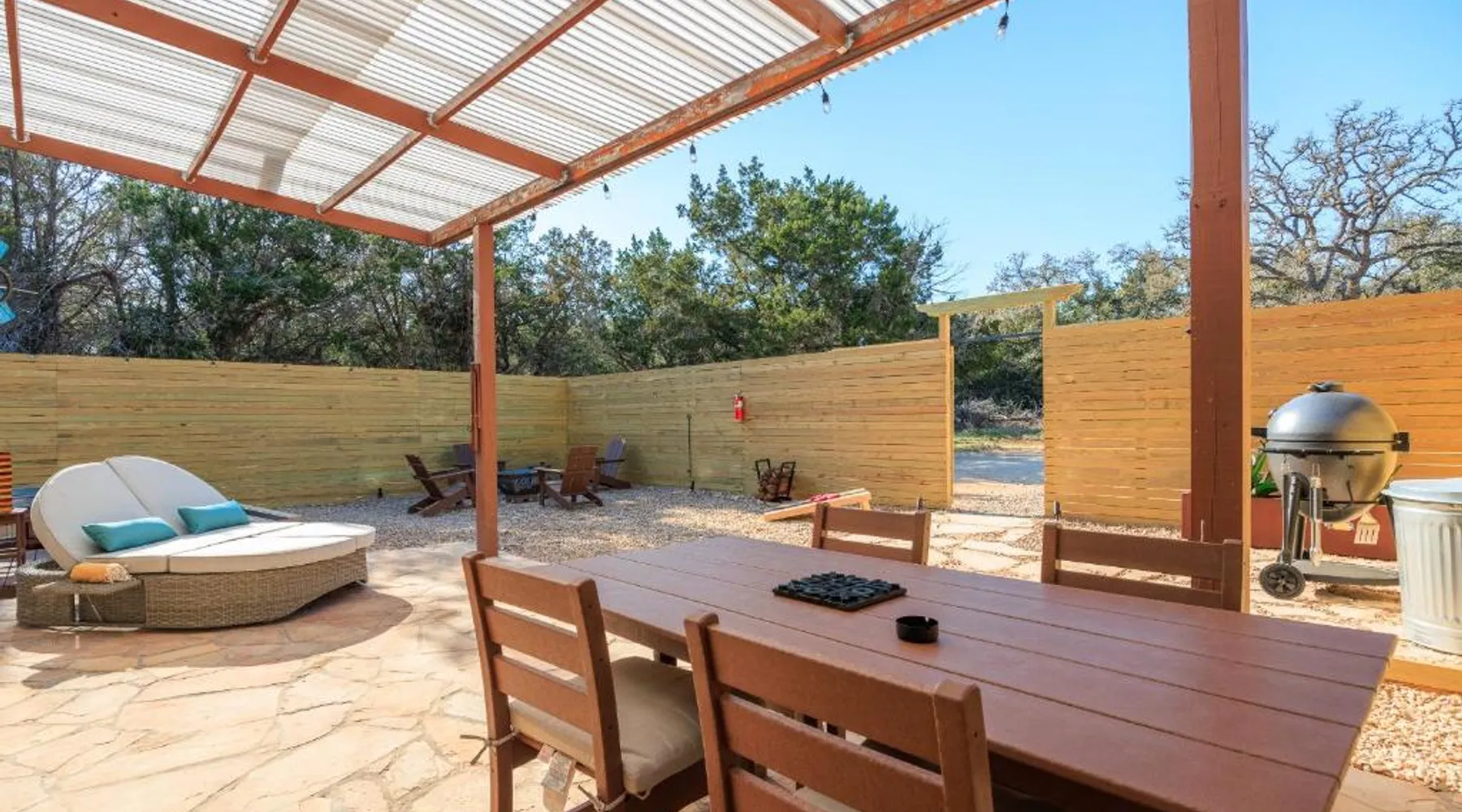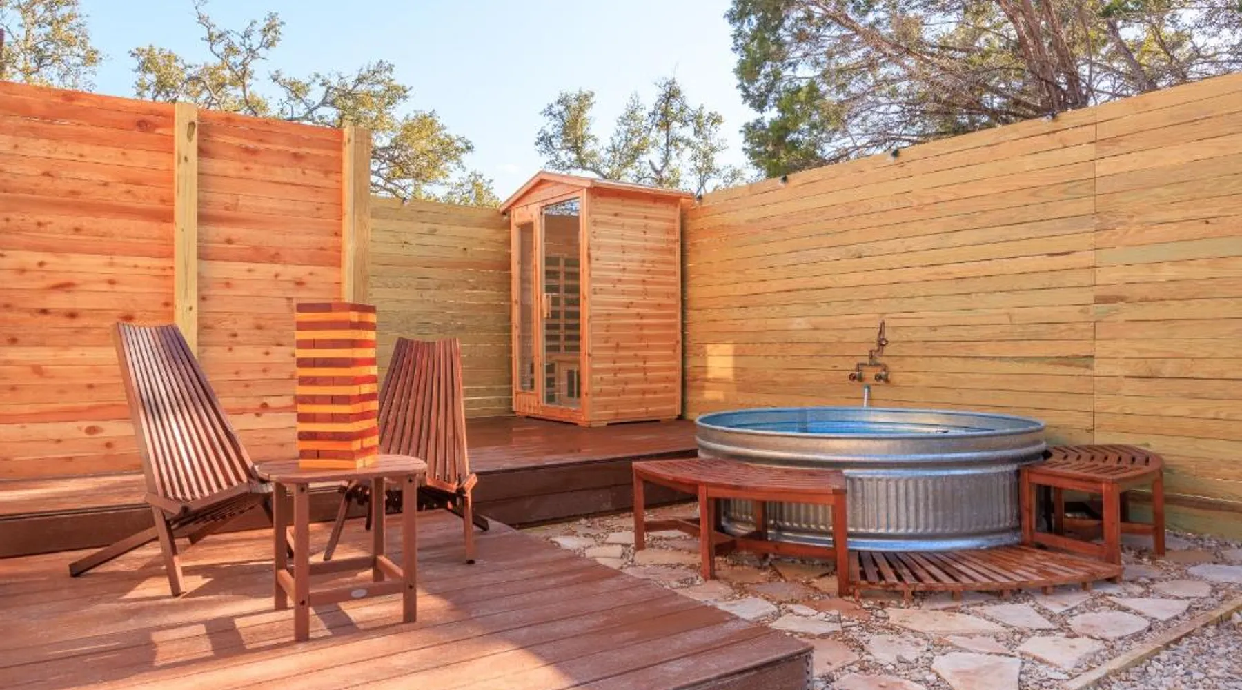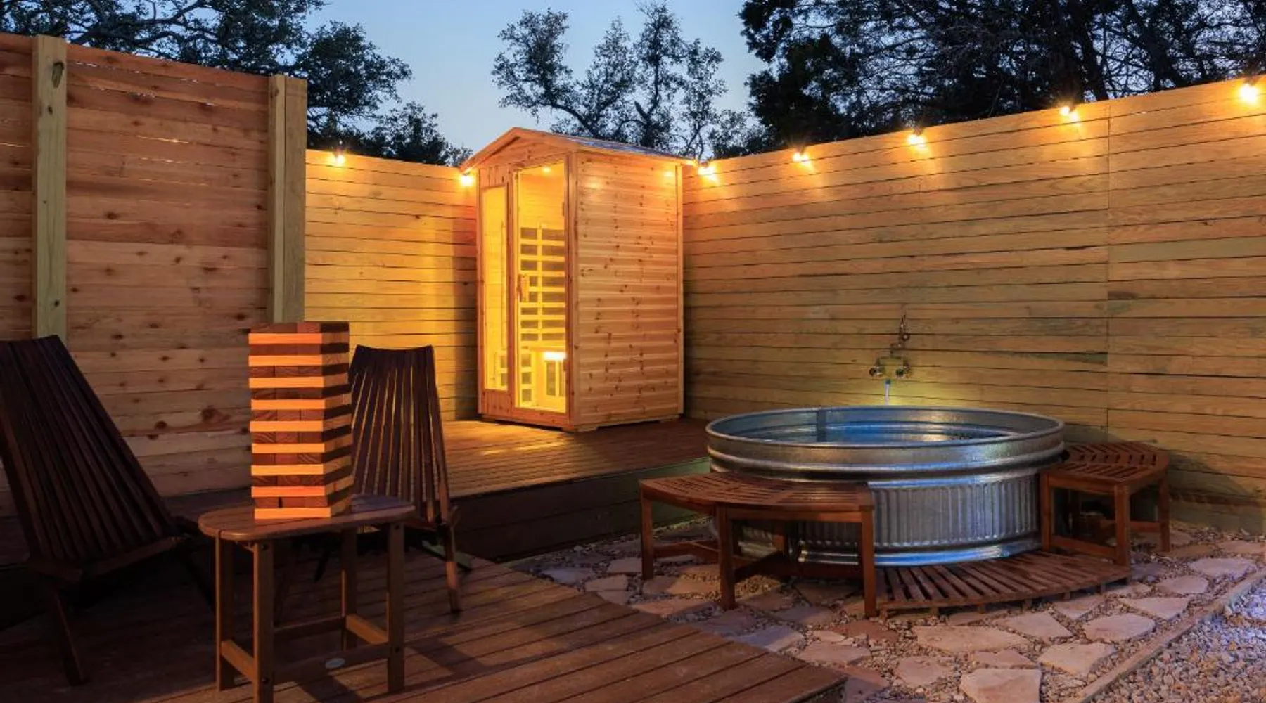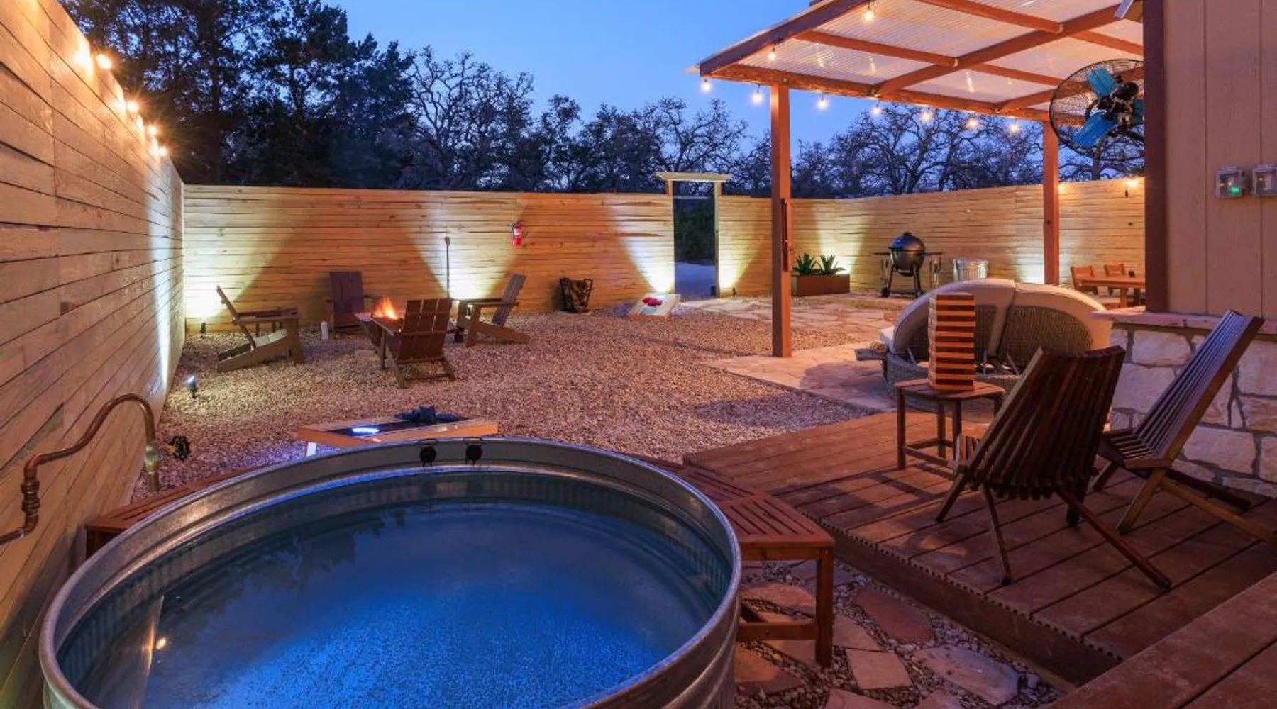 Elegant Accommodations: Romantic Luxury Retreat hot cold pool & sauna in Wimberley offers a villa with two bedrooms and a private pool. Guests enjoy a garden, sauna, and free WiFi. Comfortable Amenities: The property features air-conditioning, a hot tub, bathrobes, and streaming services. Additional amenities include a kitchen, patio, and barbecue facilities. Convenient Location: Located 38 mi from Austin-Bergstrom International Airport, the villa is 22 mi from Texas State University and 31 mi from Schlitterbahn Waterpark Resort. Highly Rated by Guests: Guests appreciate the private check-in and check-out services, express services, and free on-site parking. This villa features a private pool, hot tub and sauna. Featuring a private entrance, this air-conditioned villa consists of a kitchen, 2 bedrooms and 1 bathroom with a walk-in shower and a hairdryer. Guests will find a stovetop, a refrigerator, a dishwasher and kitchenware in the kitchen. The villa also provides guests with a barbecue. The villa provides a tea and coffee maker, a seating area, a dining area, a flat-screen TV with streaming services, as well as garden views. The unit offers 2 beds.
