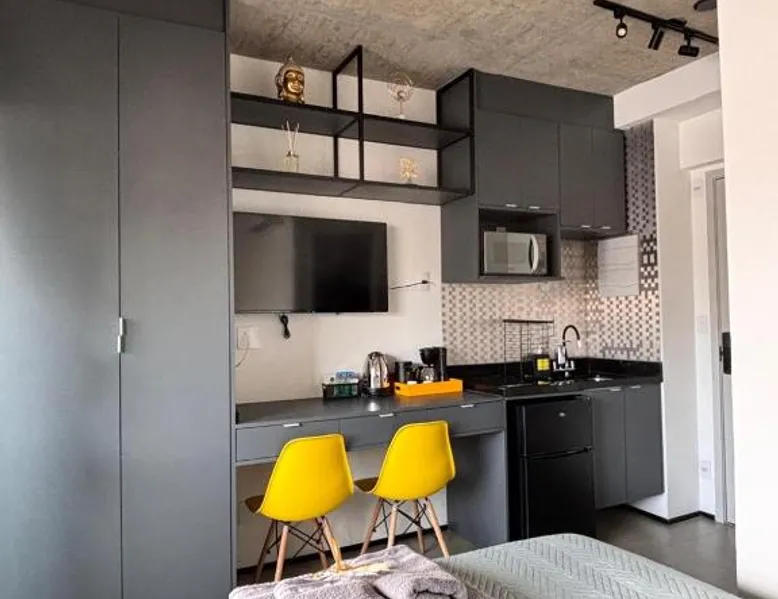 Essential Facilities: Work & Stay no Jardins in São Paulo offers a rooftop swimming pool, sun terrace, and free WiFi. Guests can also enjoy a fitness room, elevator, 24-hour front desk, minimarket, business area, full-day security, bicycle parking, meeting rooms, and luggage storage. Comfortable Amenities: The apartment features air-conditioning, a kitchenette, balcony, washing machine, tea and coffee maker, hairdryer, coffee machine, city view, refrigerator, work desk, mini-bar, microwave, shower, TV, tiled floors, dining area, electric kettle, kitchenware, wardrobe, and stovetop. Prime Location: Located 6.2 mi from São Paulo/Congonhas Airport, the property is a 13-minute walk from MASP São Paulo. Nearby attractions include Pacaembu Stadium (1.9 mi), Copan Building (2.1 mi), Ciccillo Matarazzo Pavilion (2.1 mi), Ibirapuera Park (2.5 mi), and São Paulo Metropolitan Cathedral (2.5 mi). Guests will have a special experience as this apartment offers a rooftop pool. The air-conditioned apartment features 1 bedroom and 1 bathroom with a shower and a hairdryer. In the kitchenette, guests will find a stovetop, a refrigerator, kitchenware and a microwave. The apartment provides a flat-screen TV, a washing machine, a mini-bar, a tea and coffee maker as well as city views. The unit offers 1 bed.